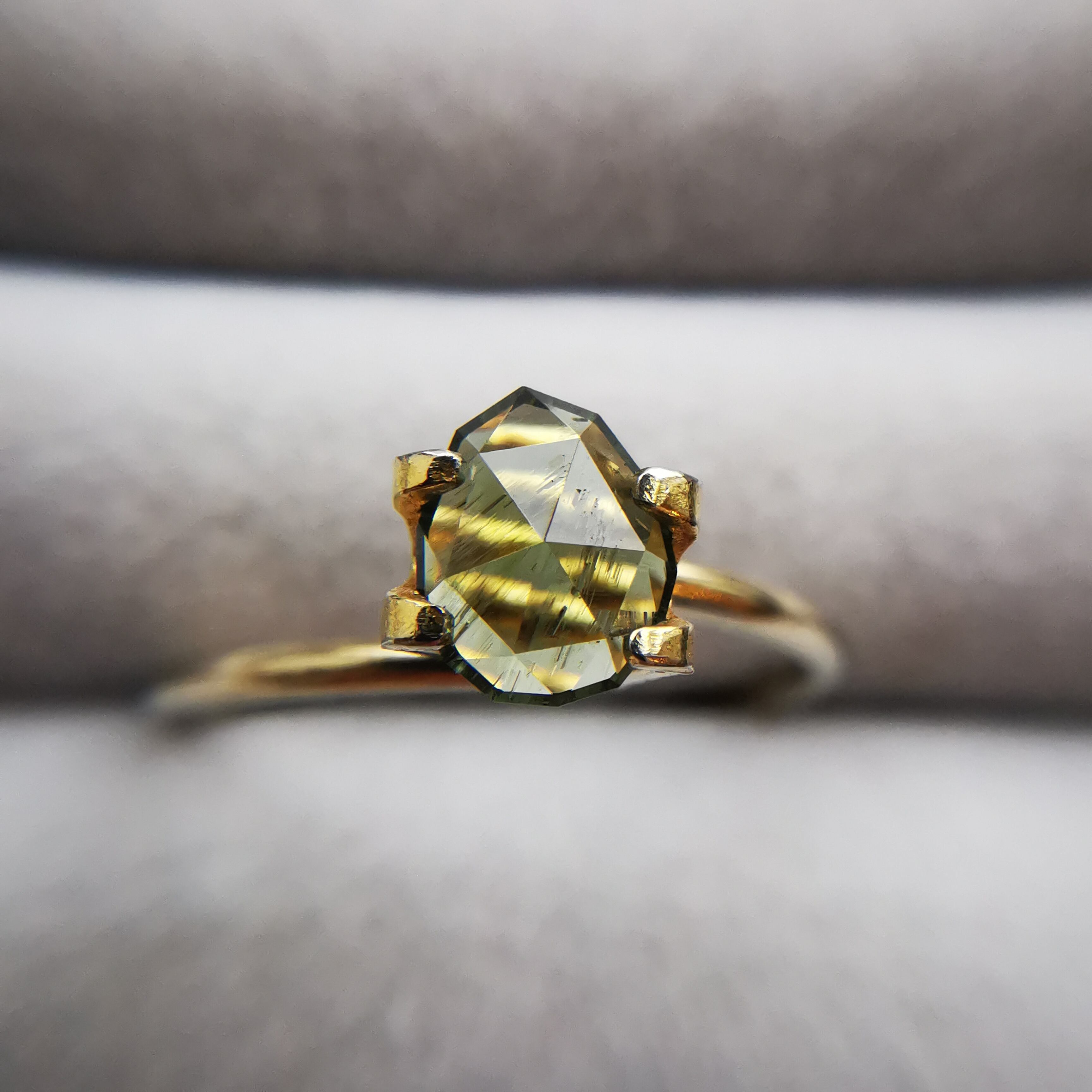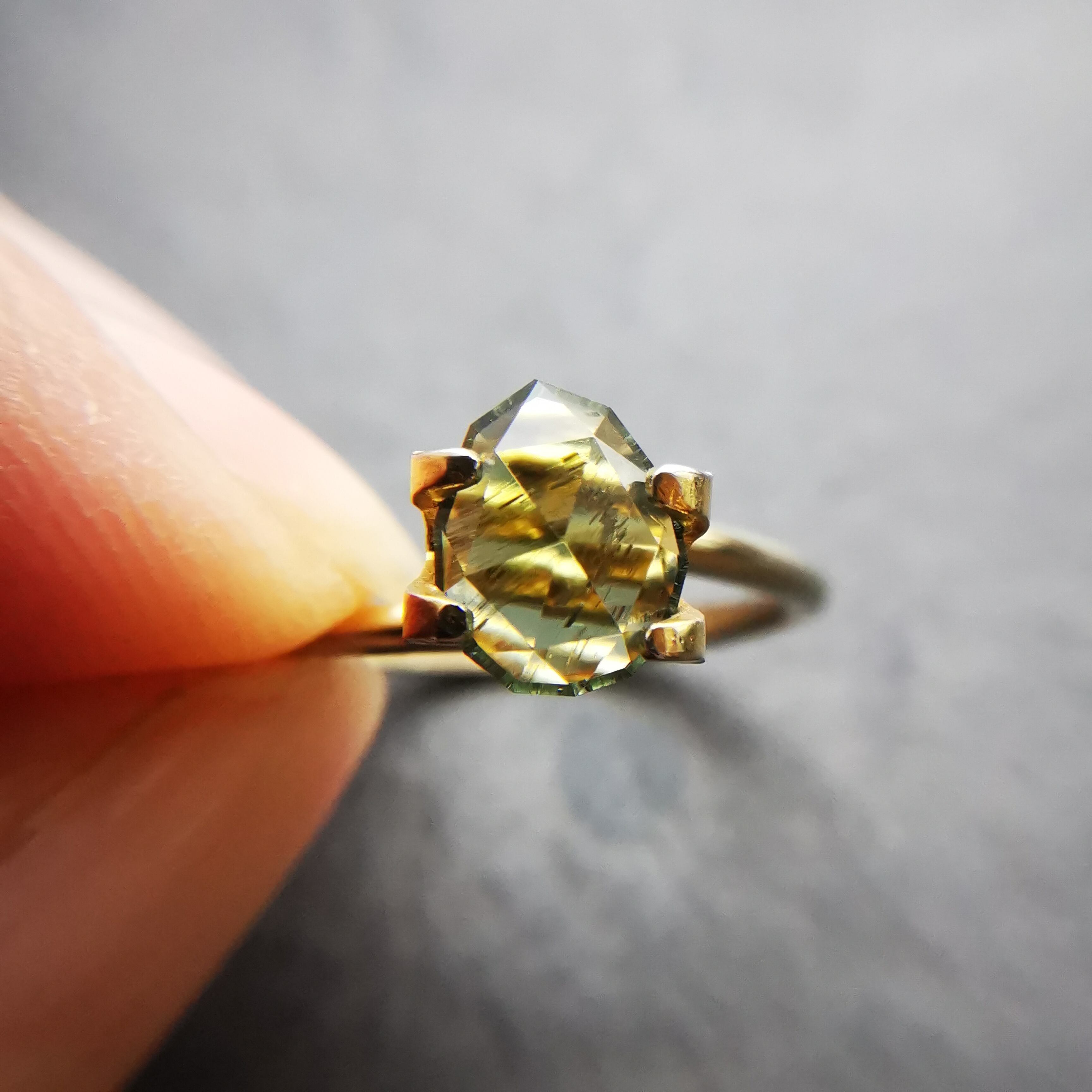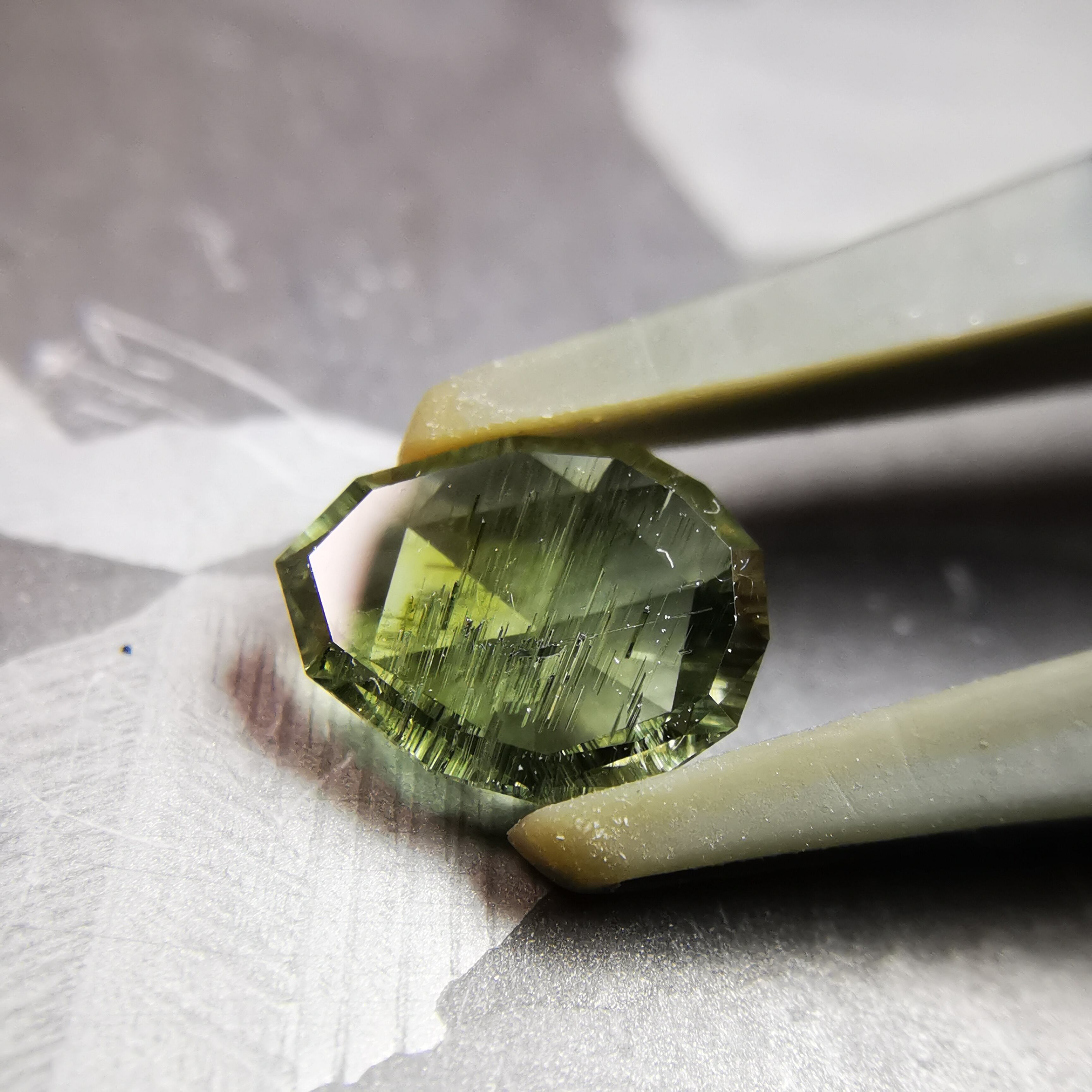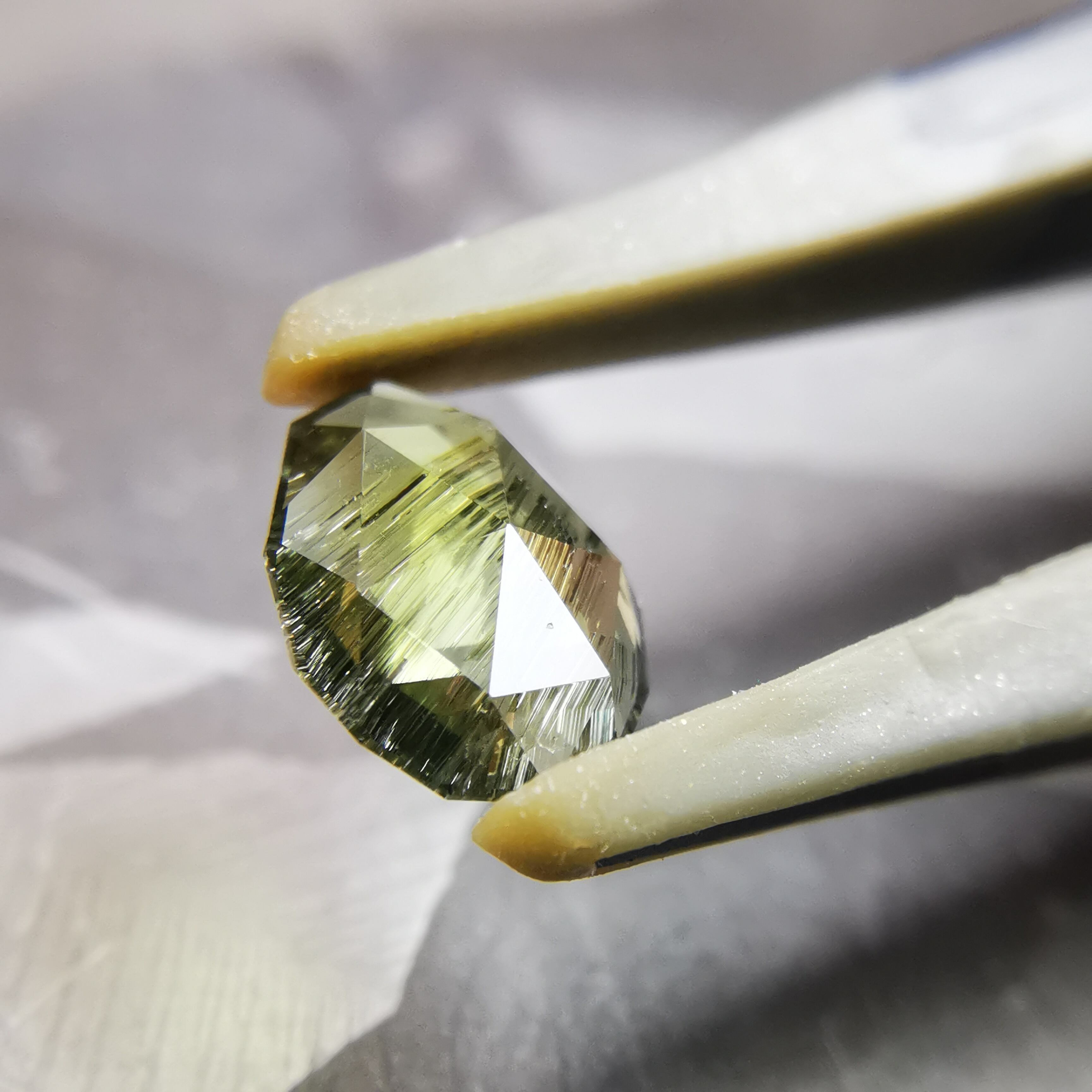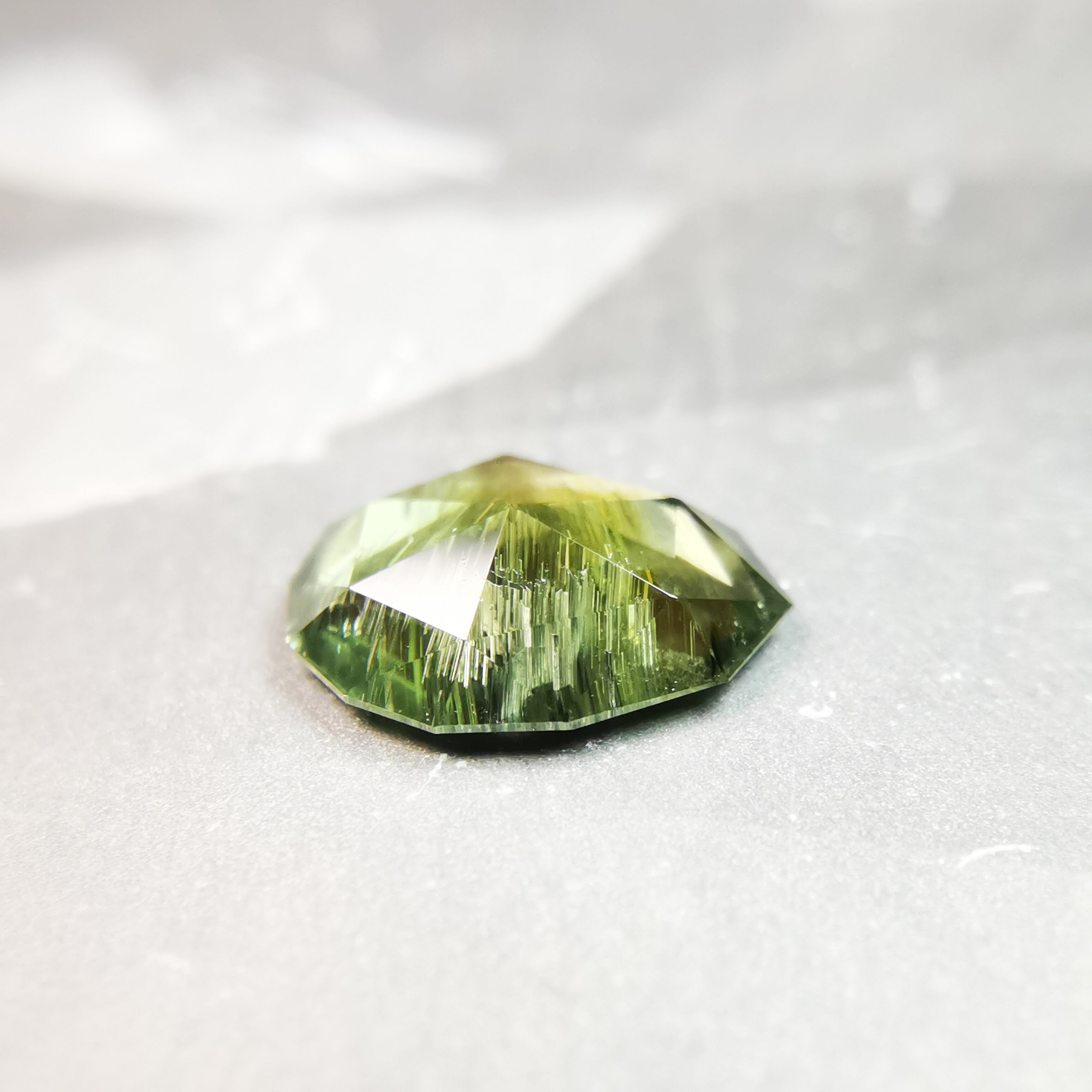 傾けると、チューブインクルージョンが光る様子が、まるで星が一斉に落ちてくるような景色です。