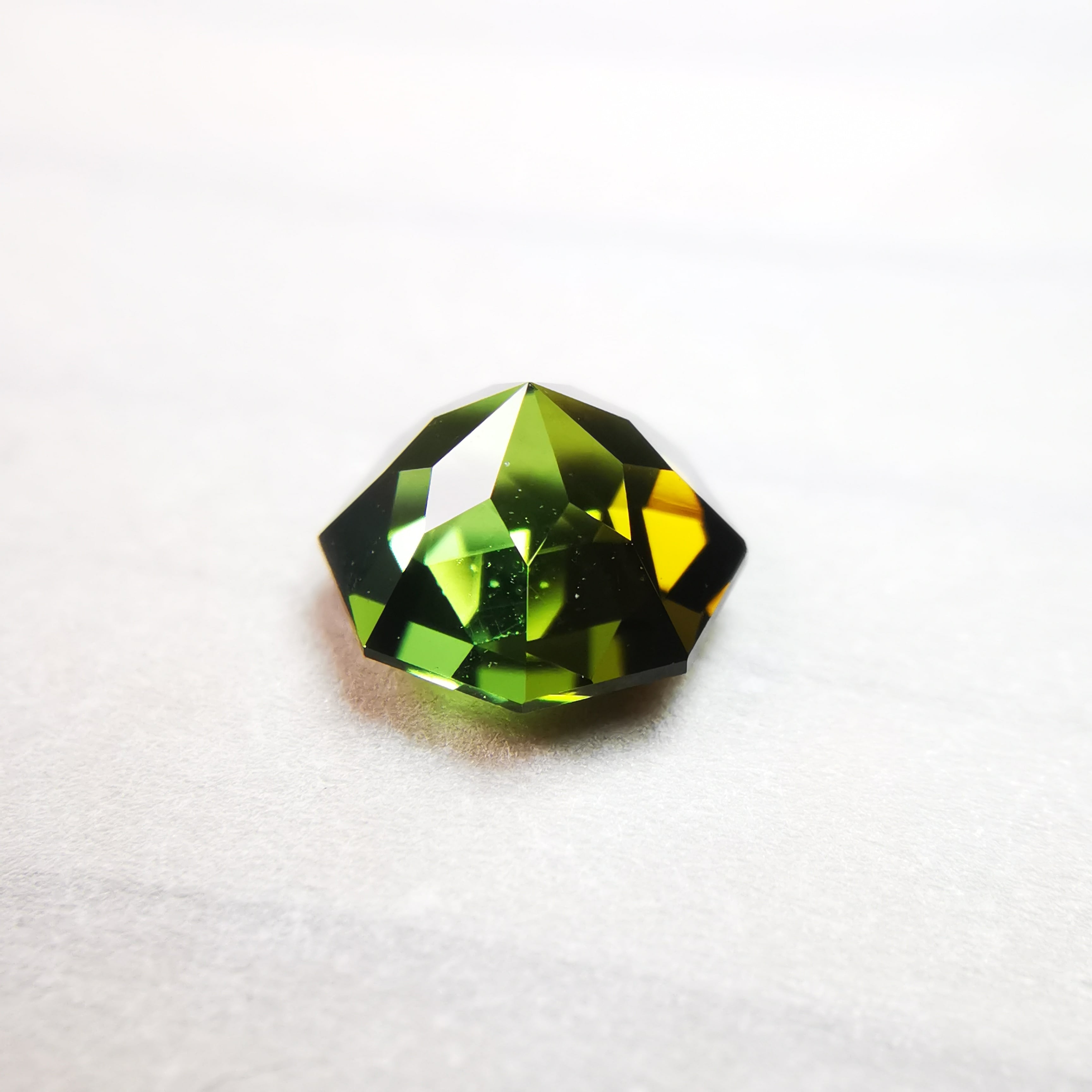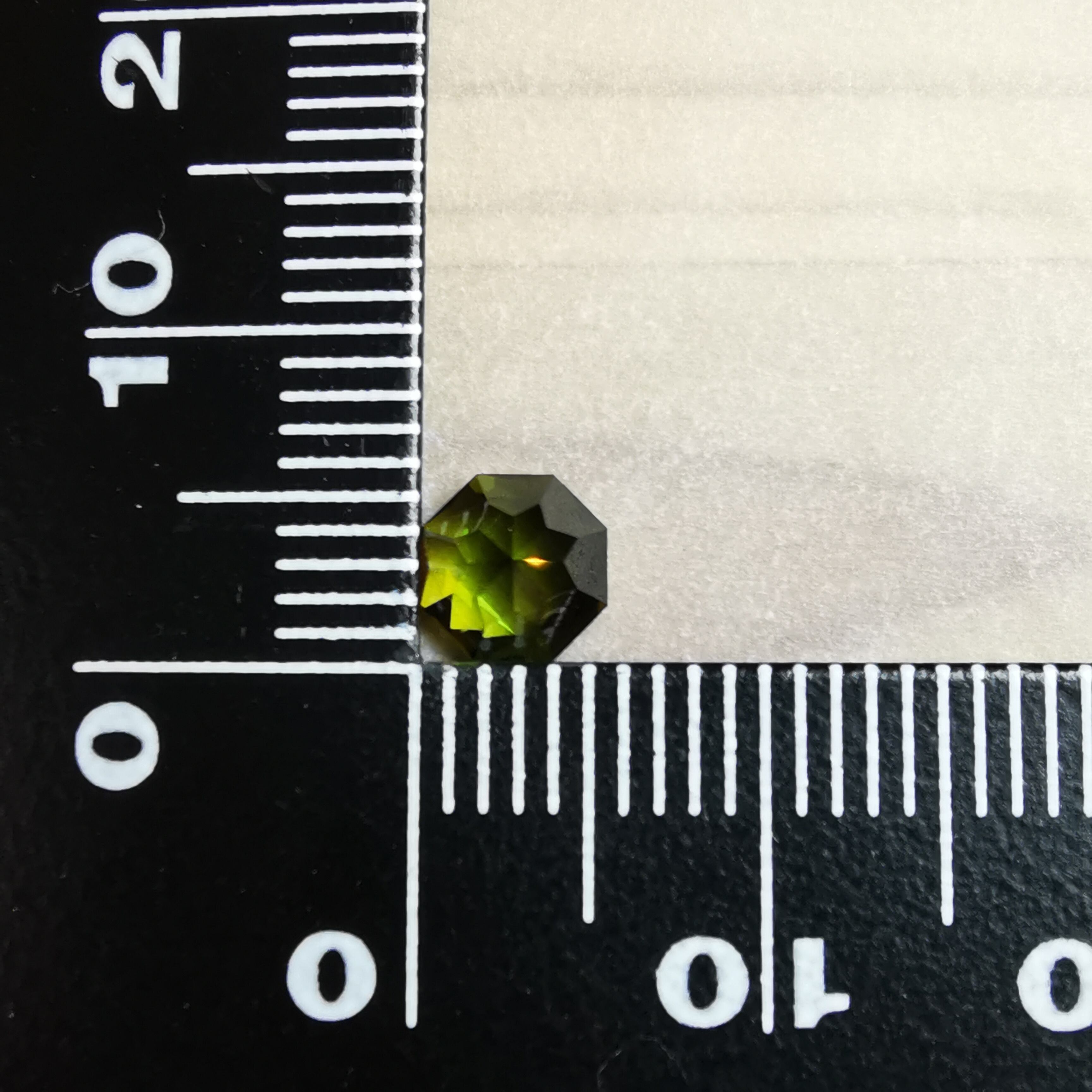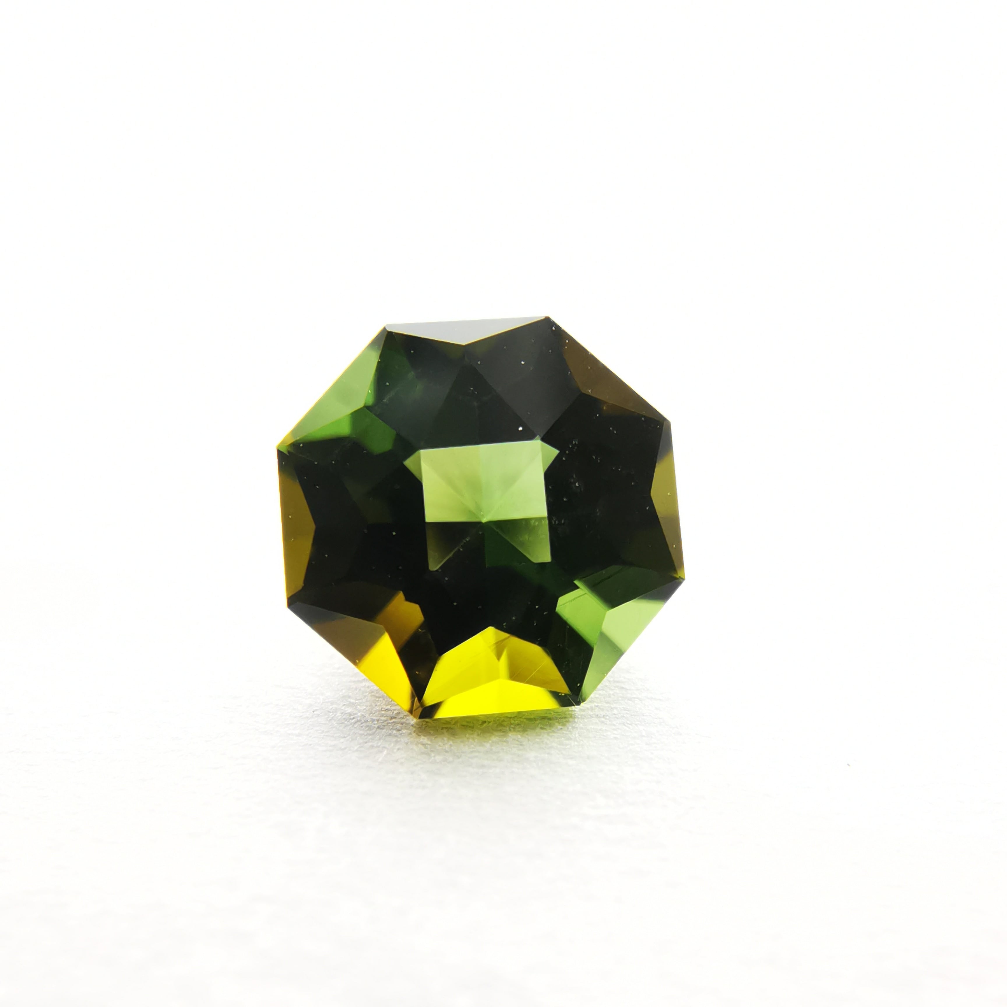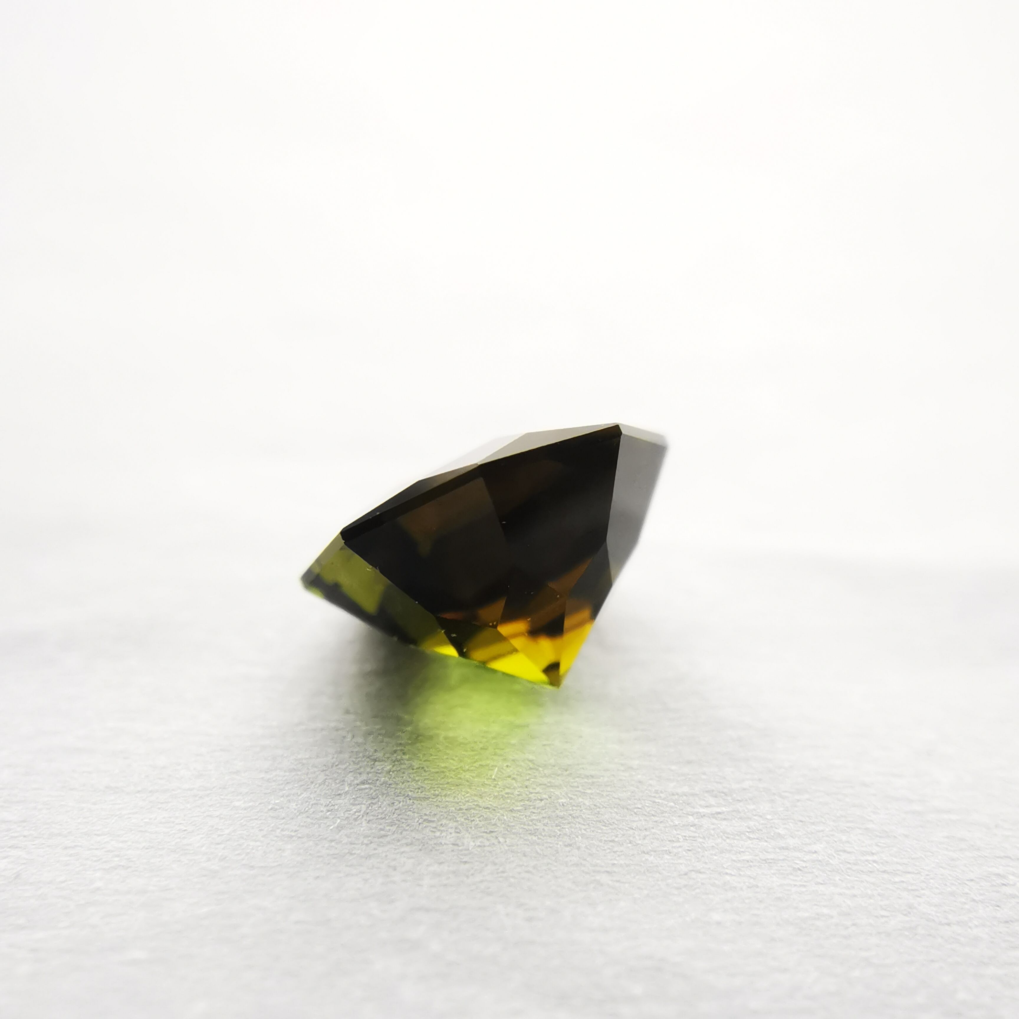 バイカラートルマリンかと思いましたが、どこから見ても色の境目が分からず、多色性による見え方かもしれません。