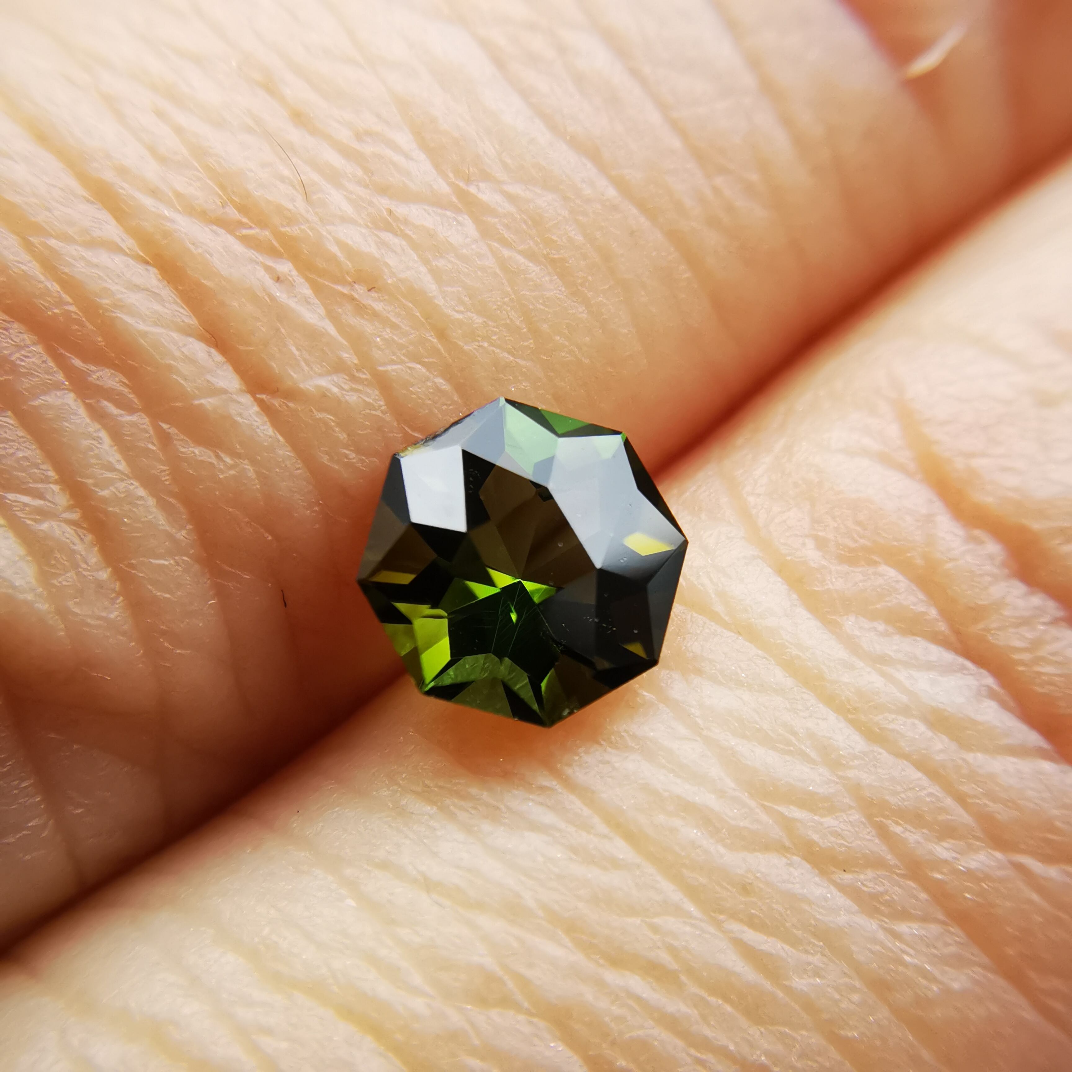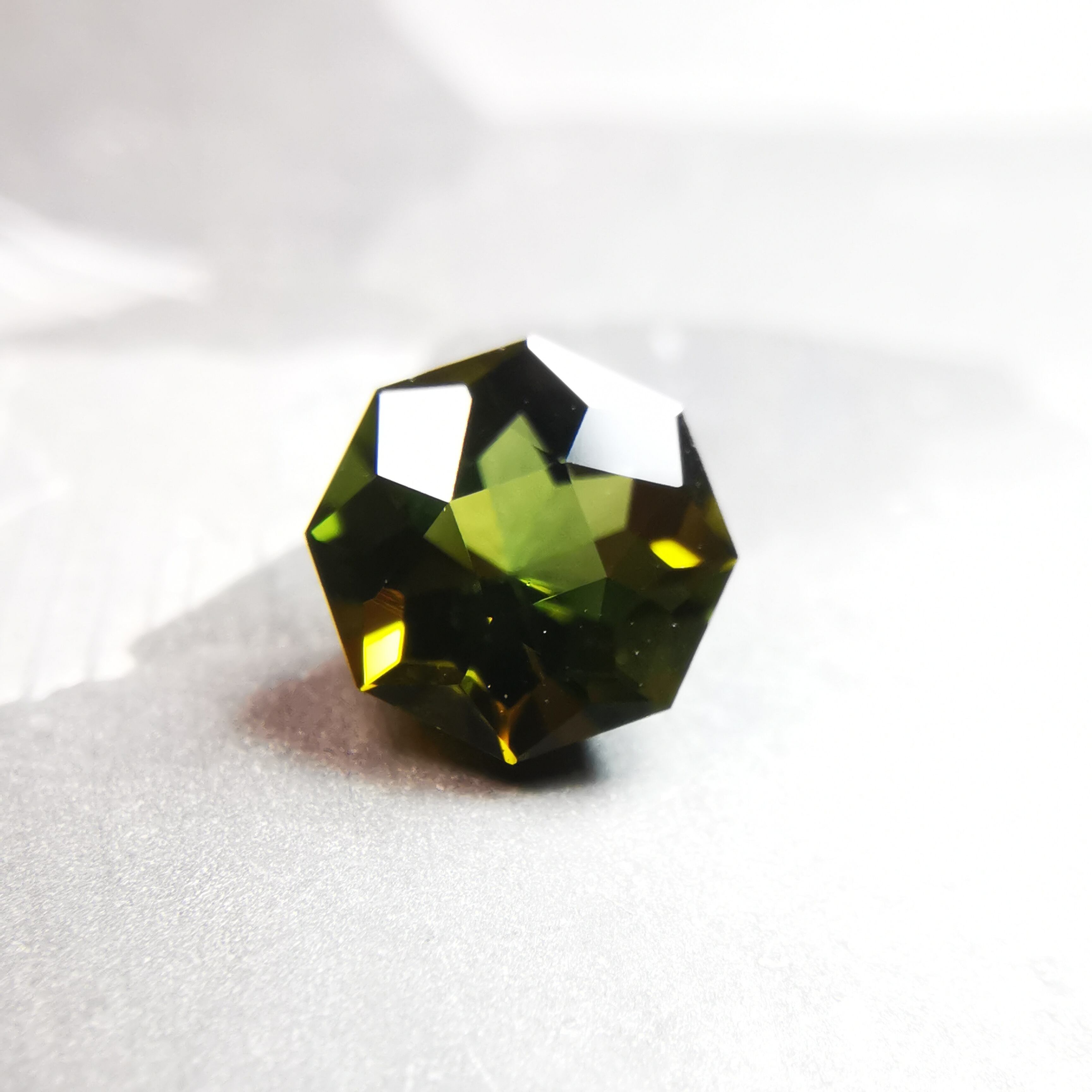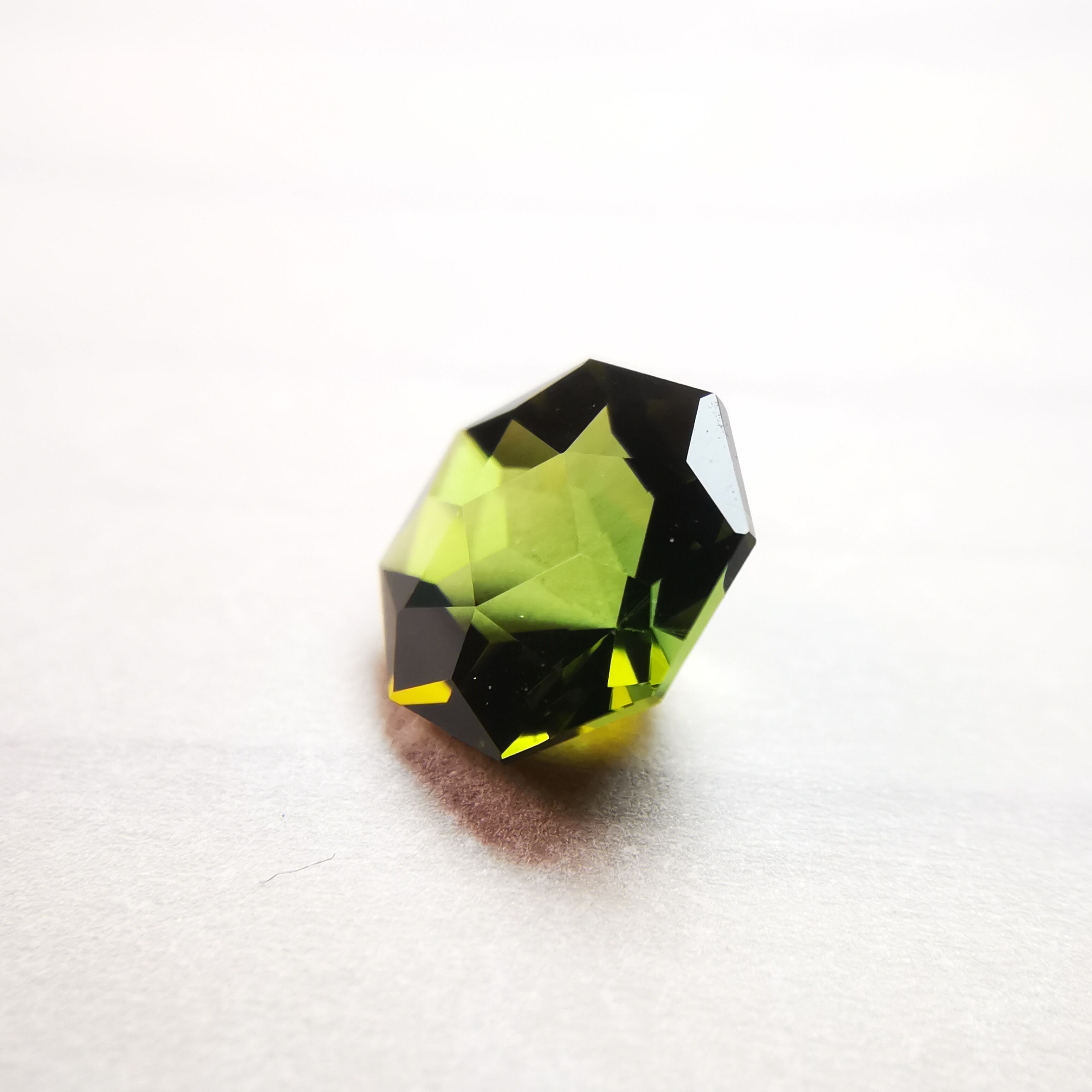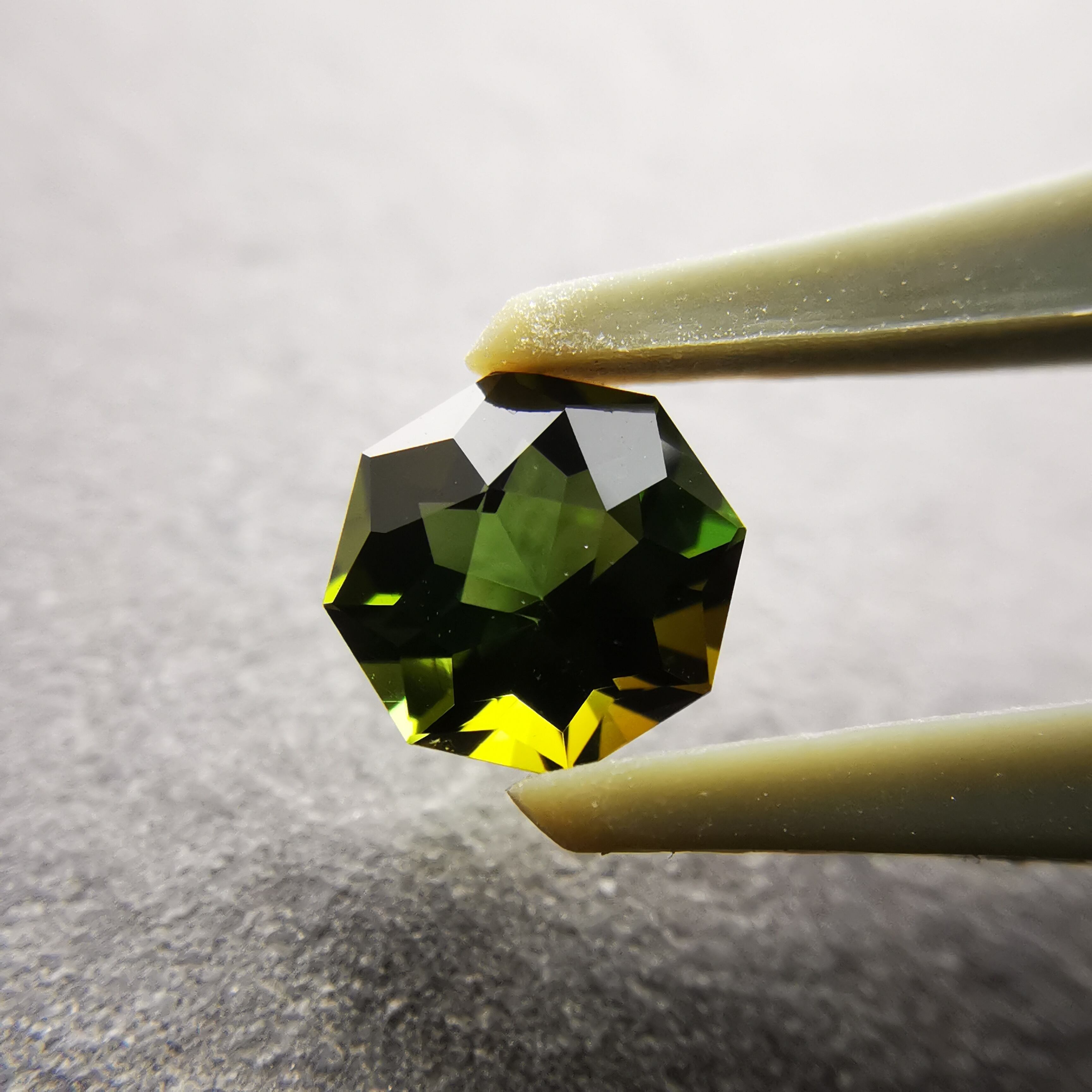 バイカラートルマリンかと思いましたが、どこから見ても色の境目が分からず、多色性による見え方かもしれません。