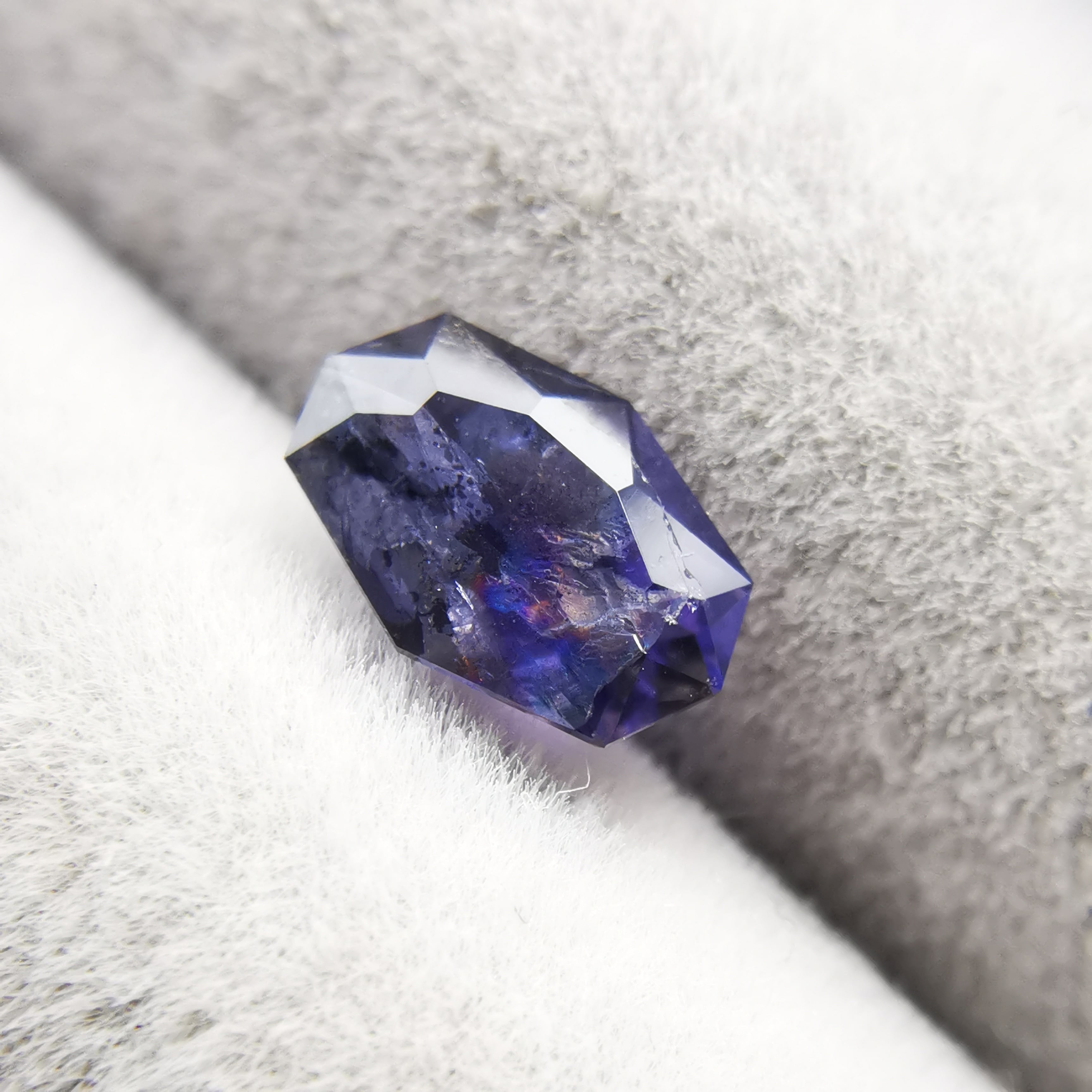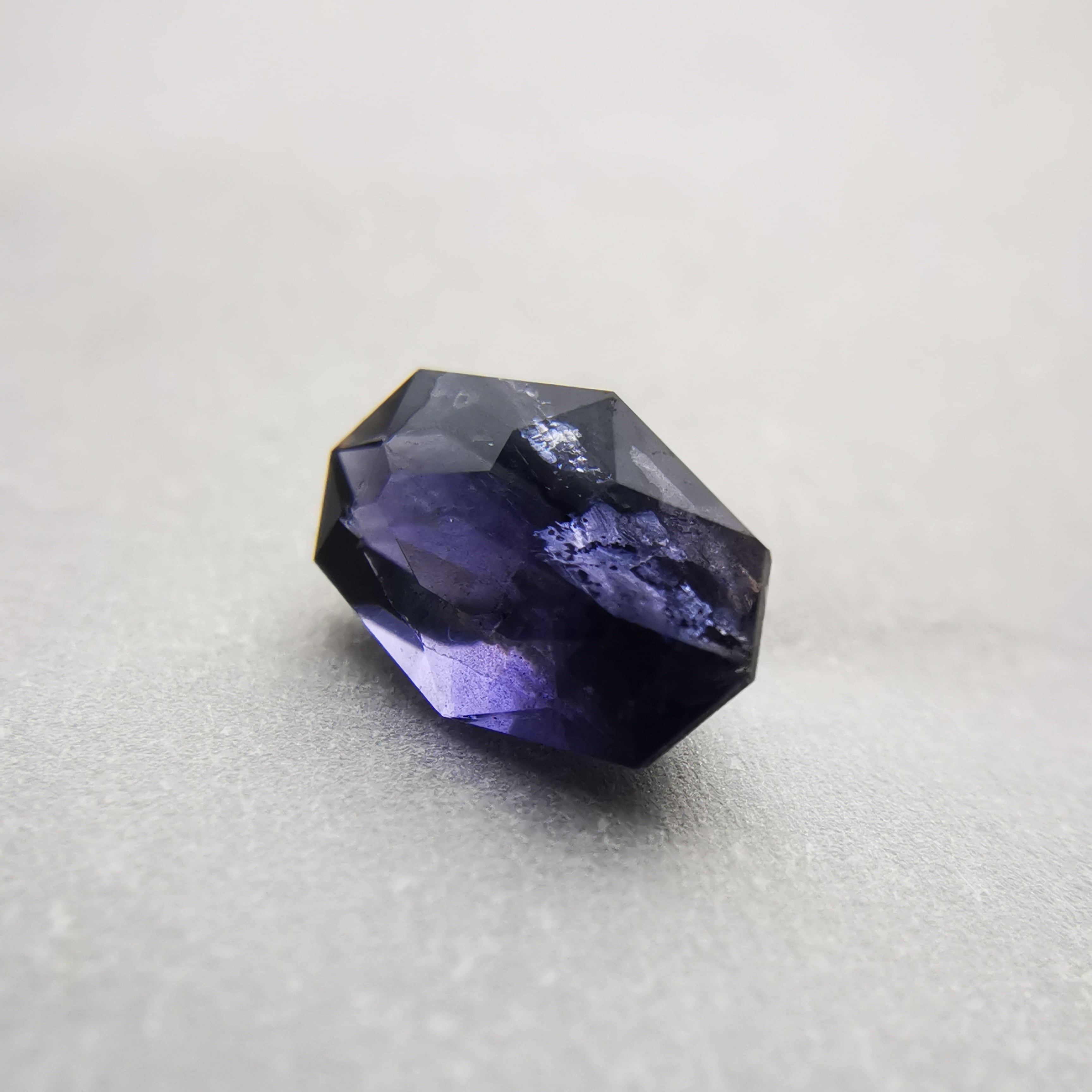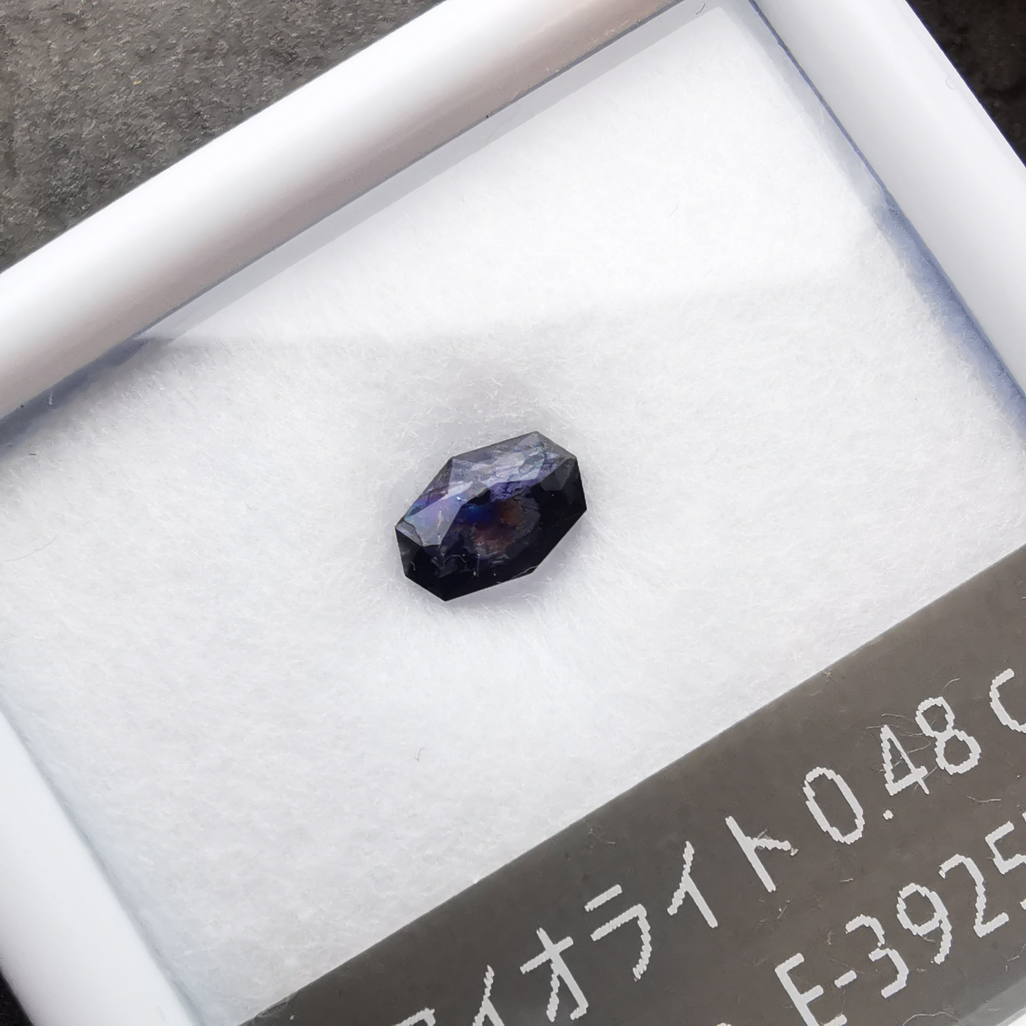 紺色のアイオライトにもやもやとした内包物やクラックが入っています。