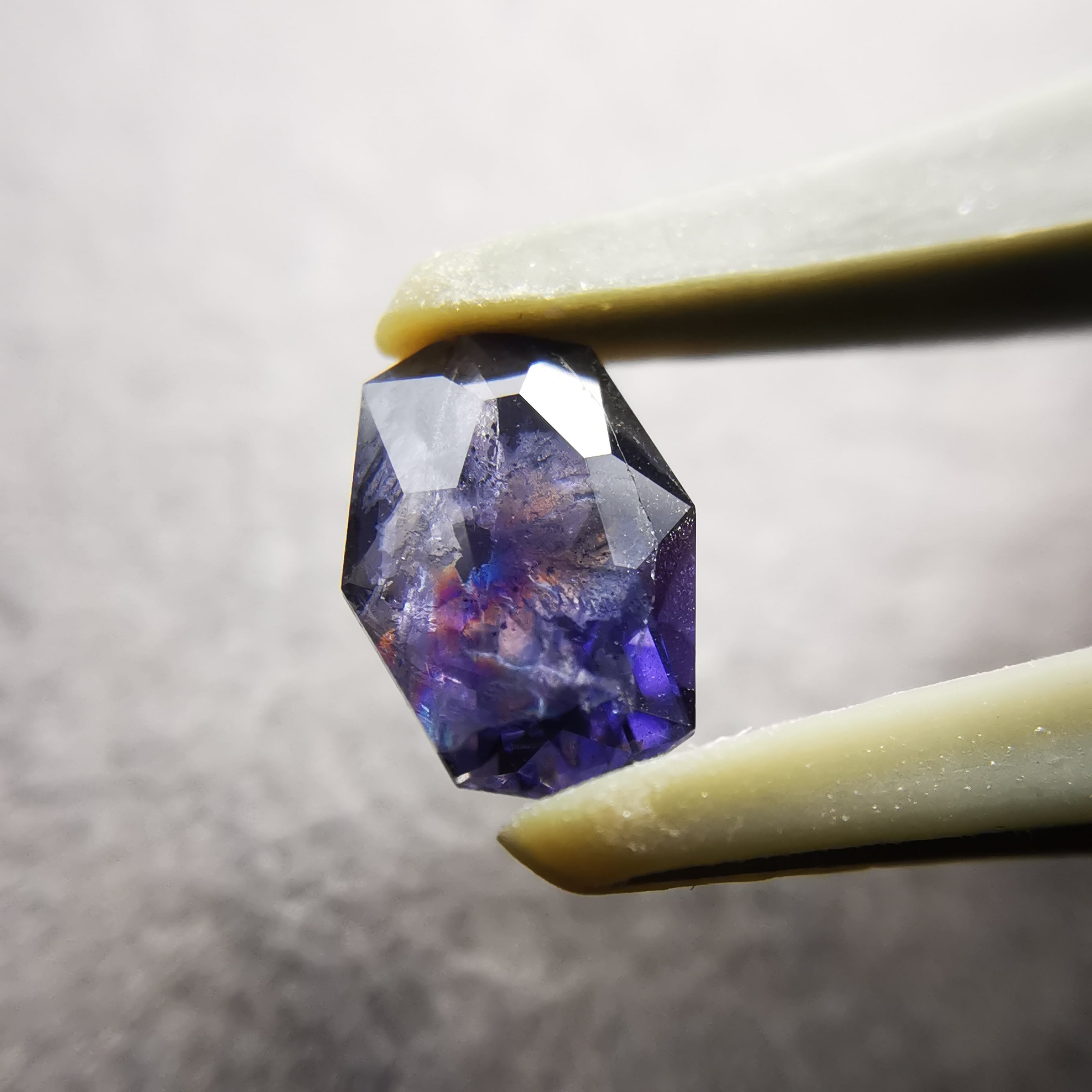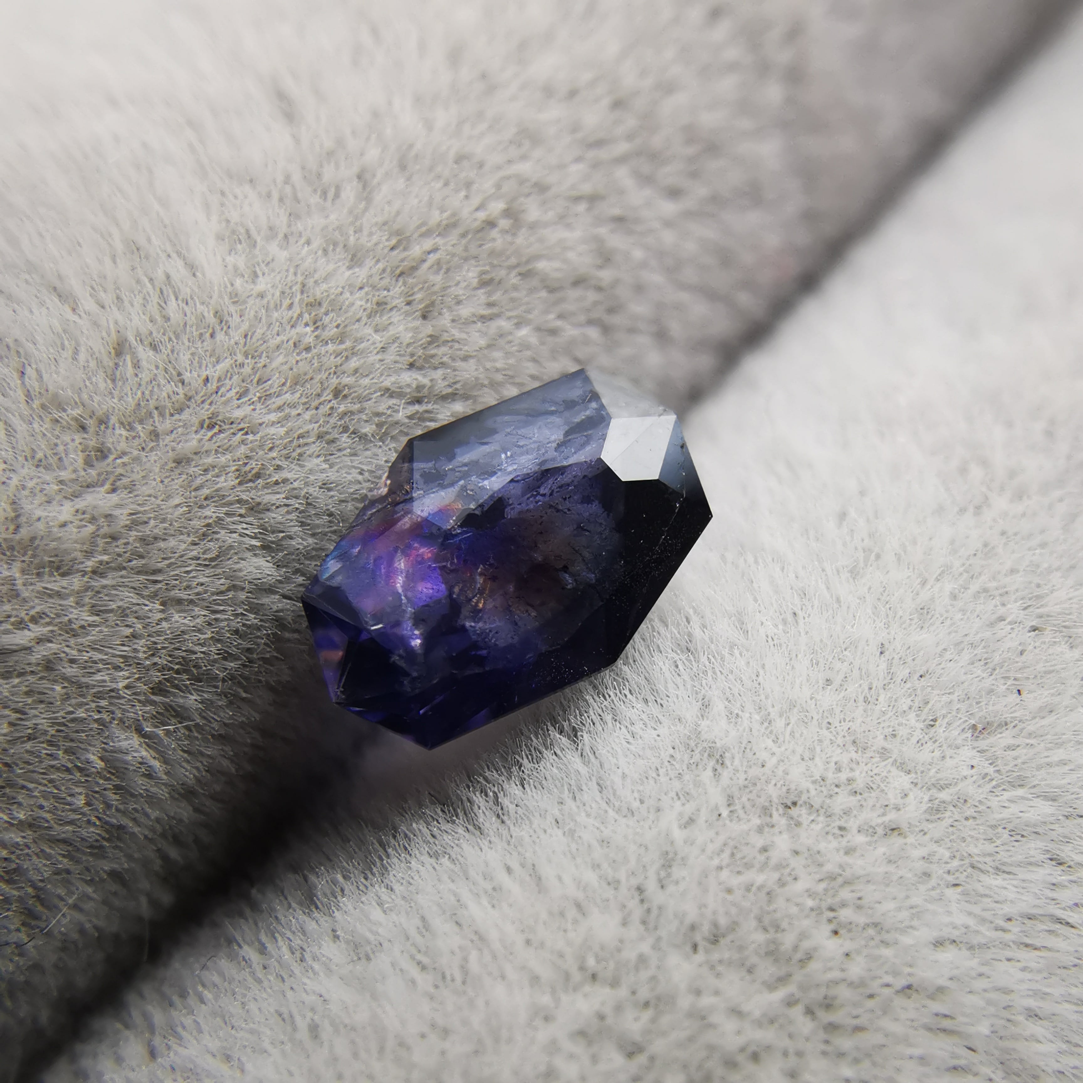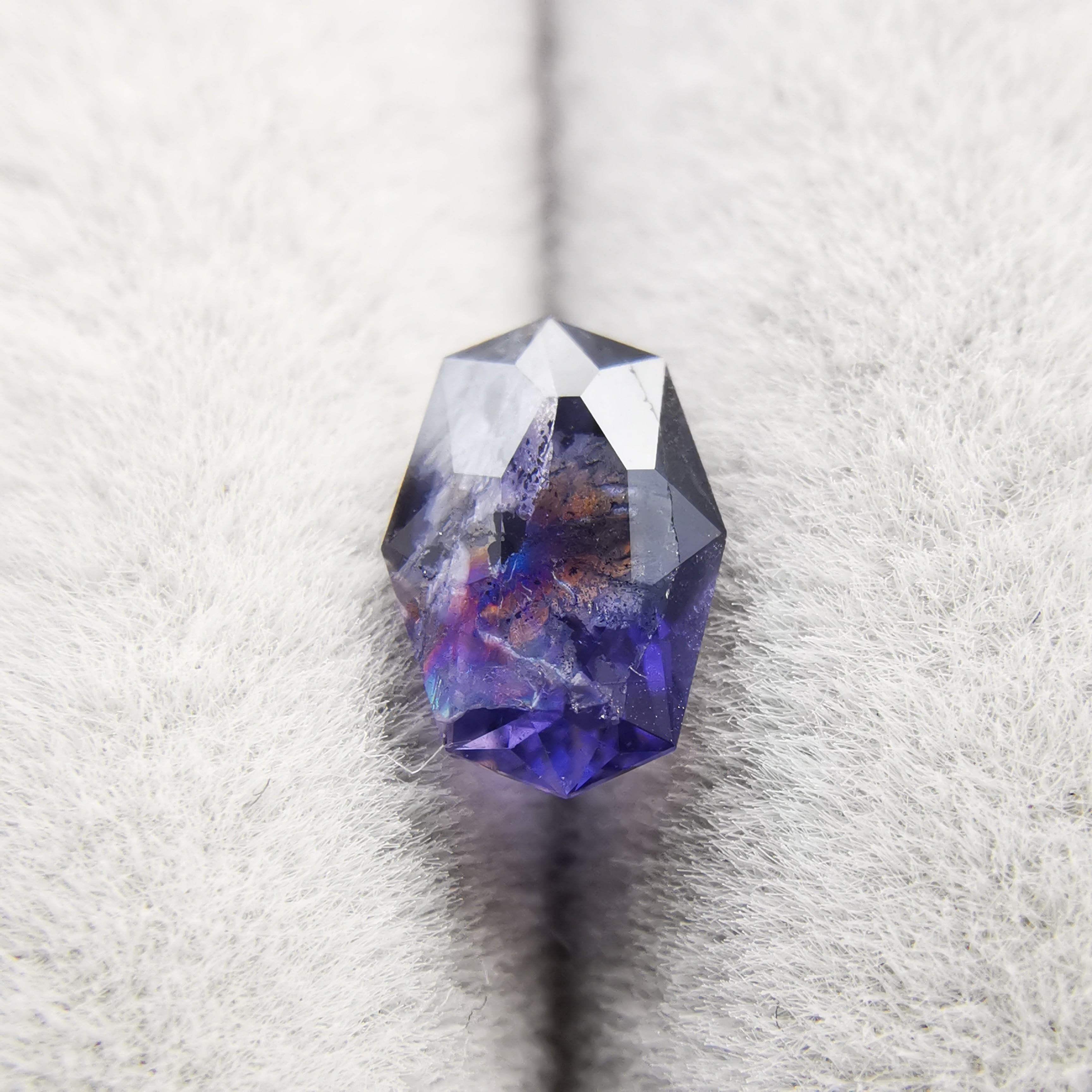 紺色のアイオライトにもやもやとした内包物やクラックが入っています。
