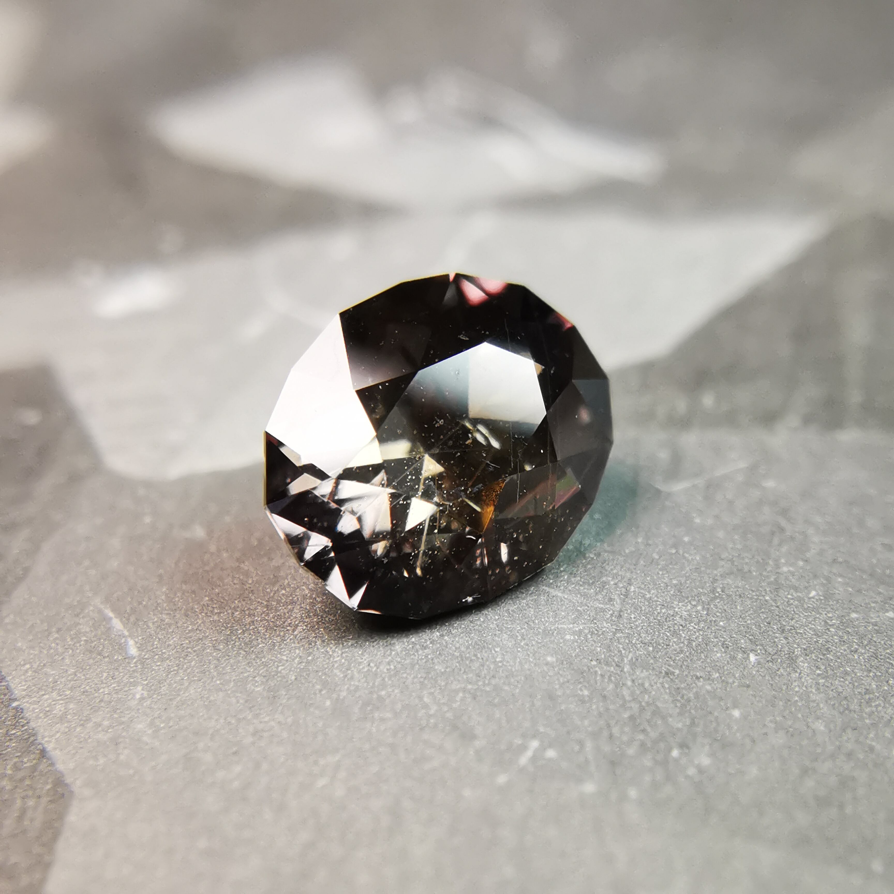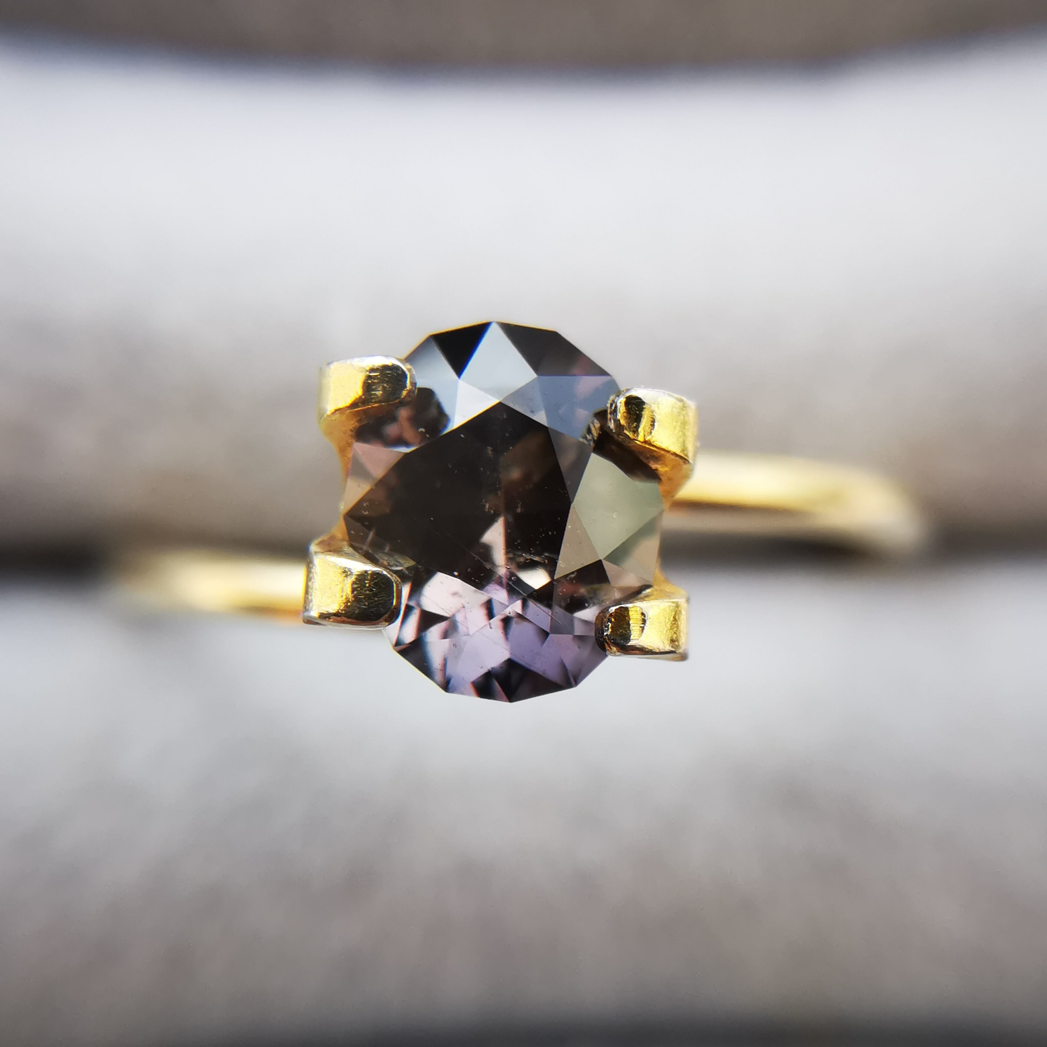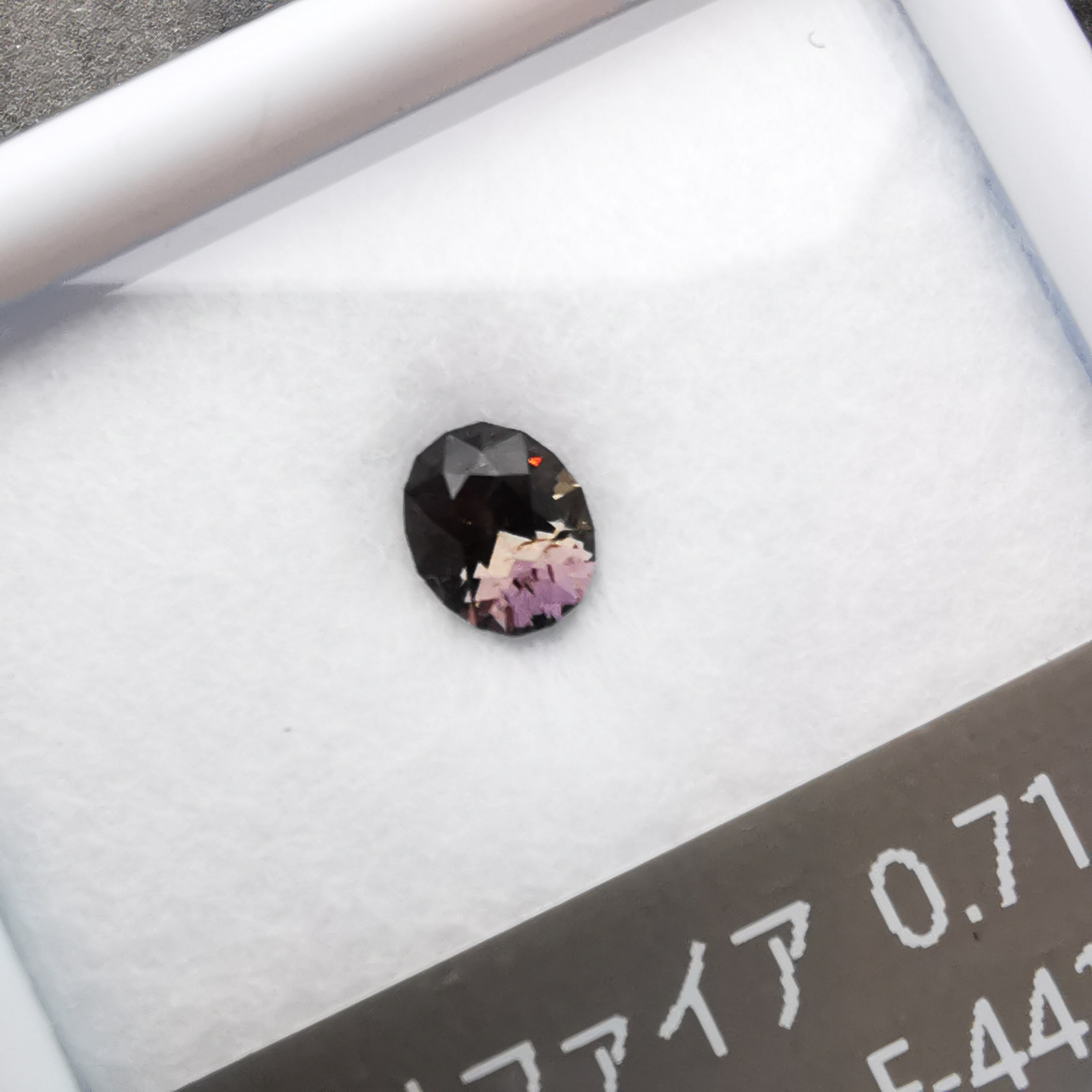 一見黒っぽいサファイアですが、そこから零れる色は見る度に変わるので、何色と言っていいのかわかりませんが、見える色をできる限り書き出してみます。