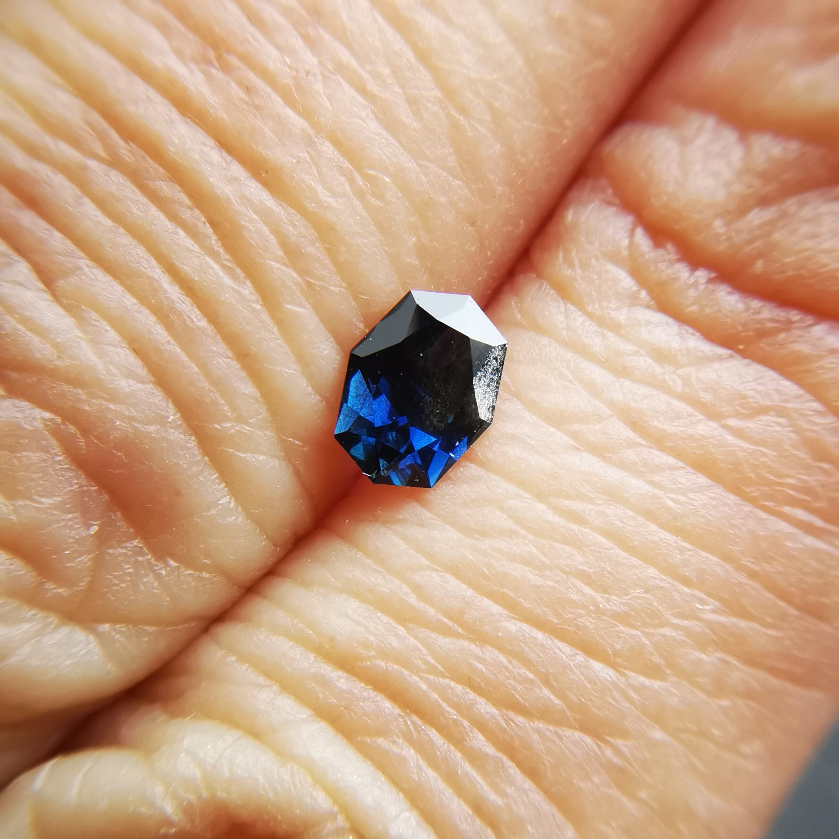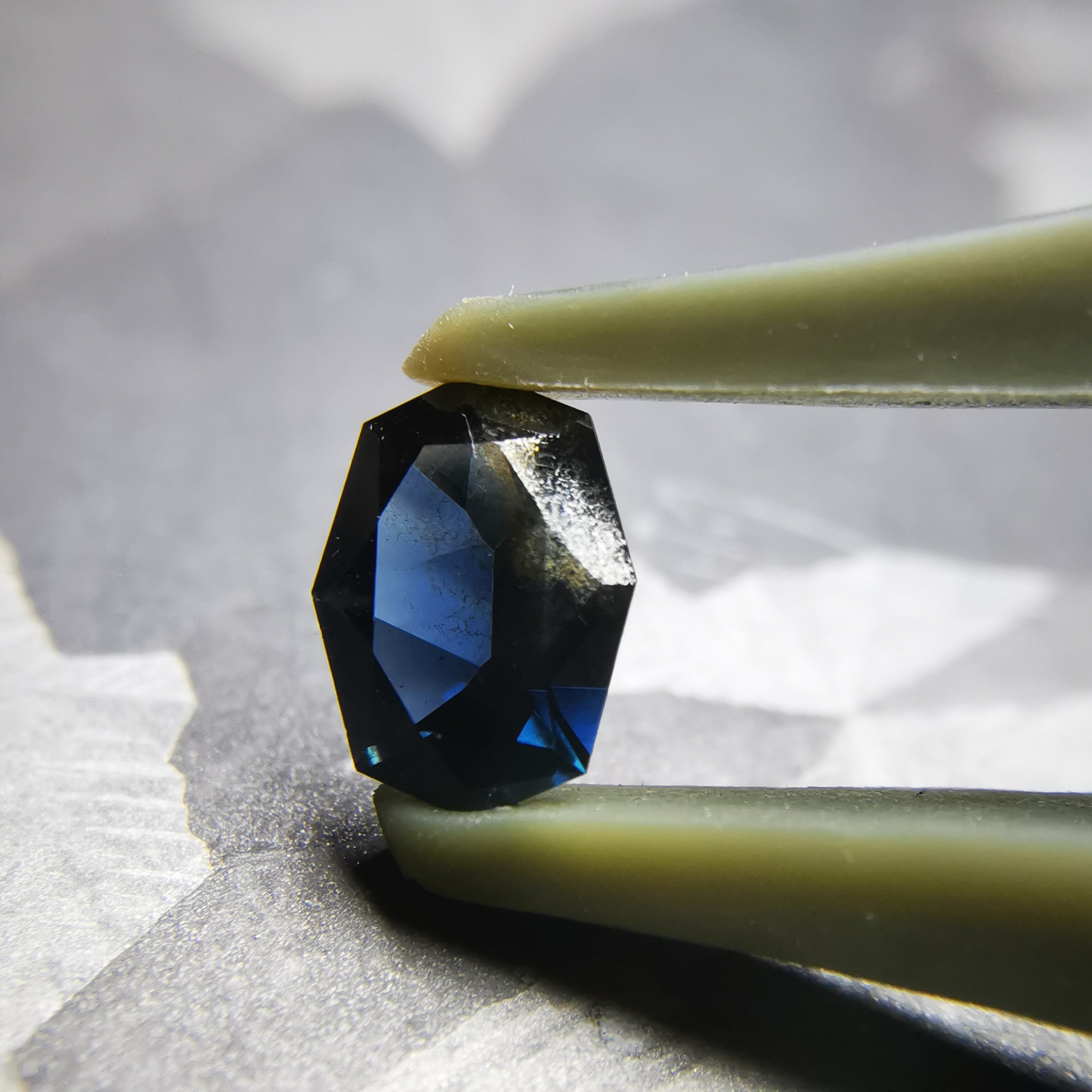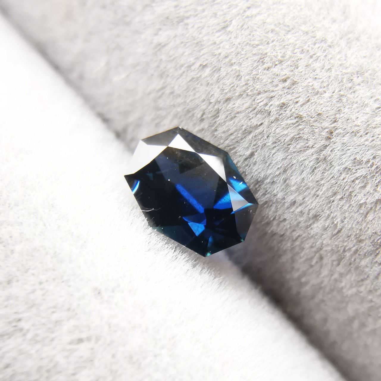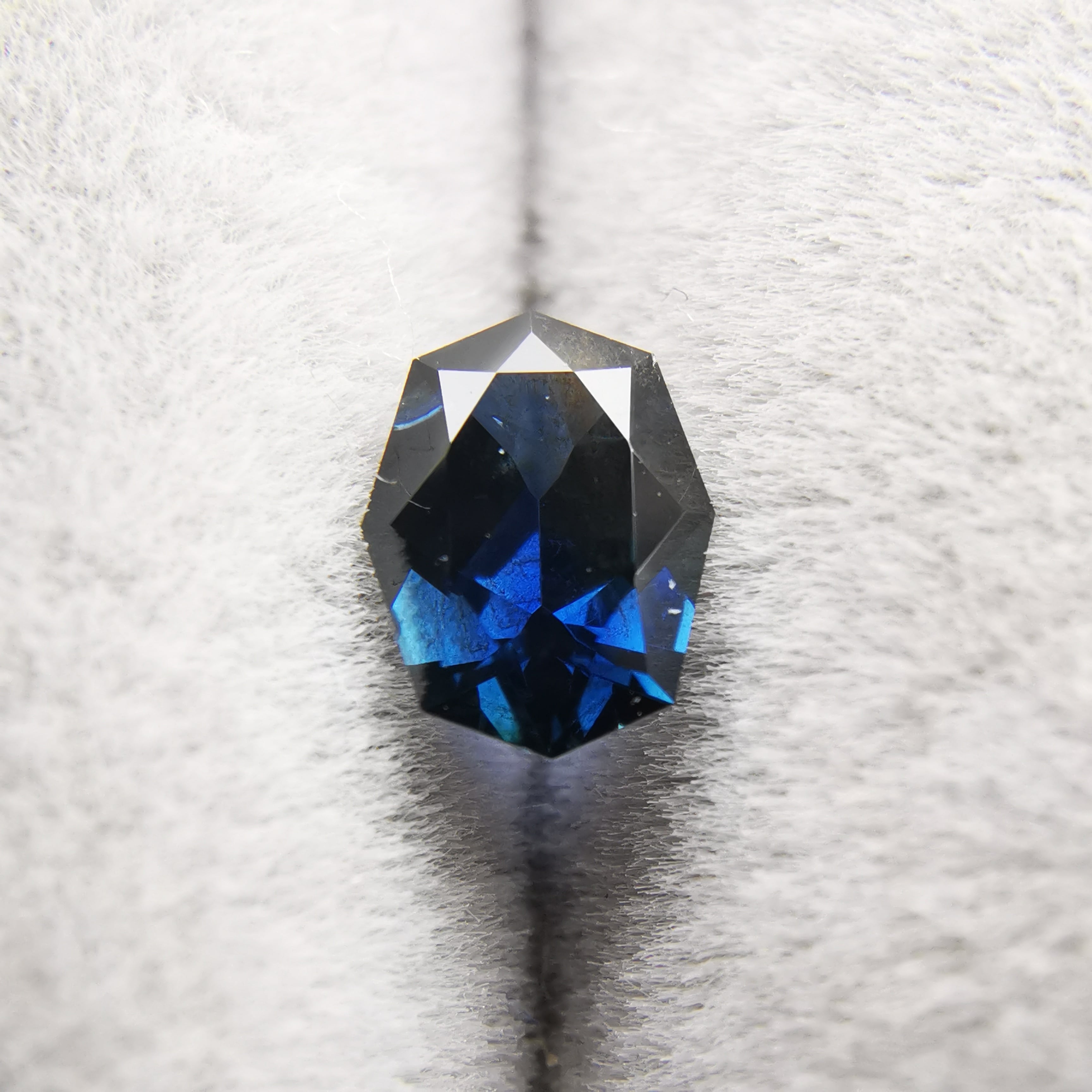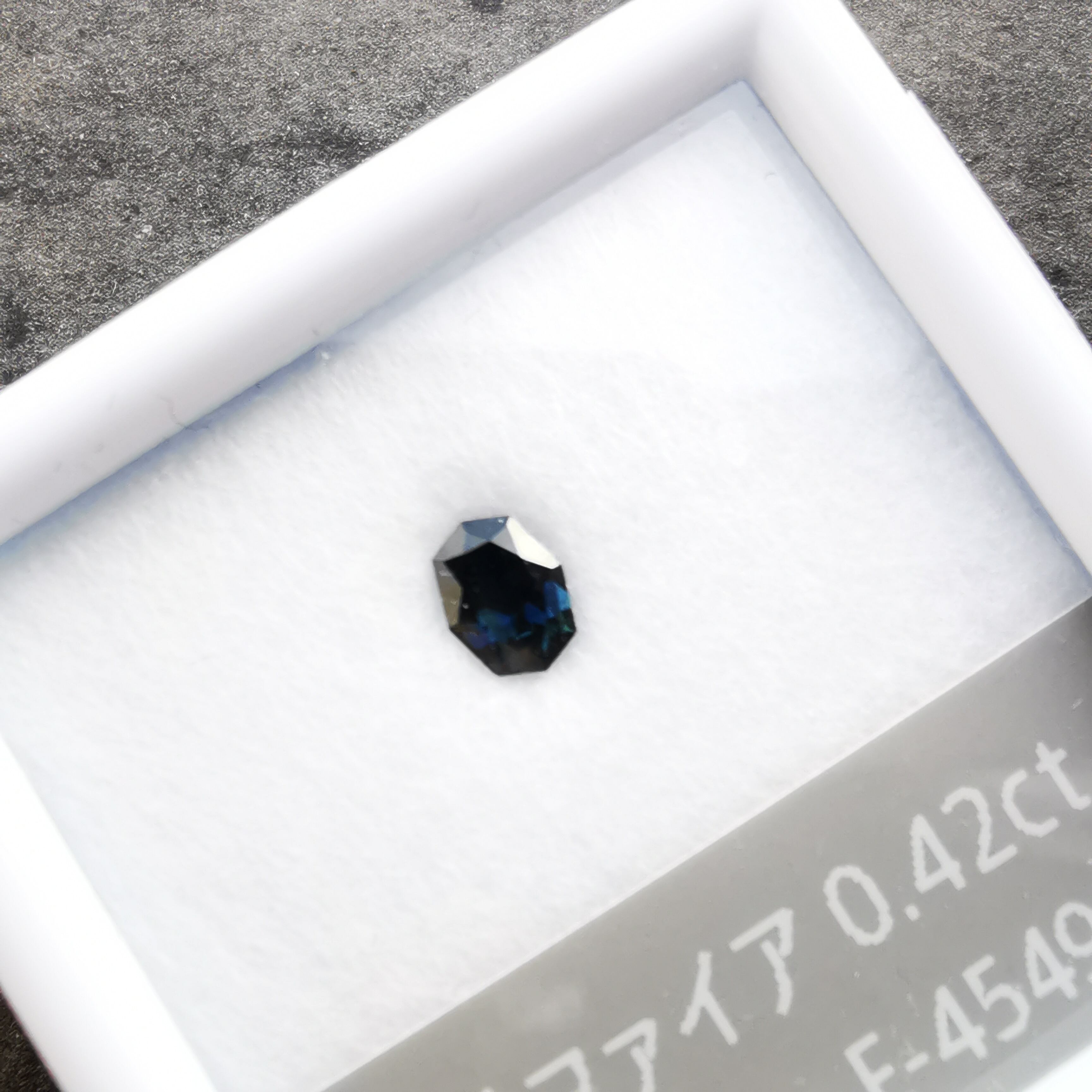 ごく暗い青/濃藍色、かなり黒に近い石から、マリンブルーがきらめくサファイアです。
