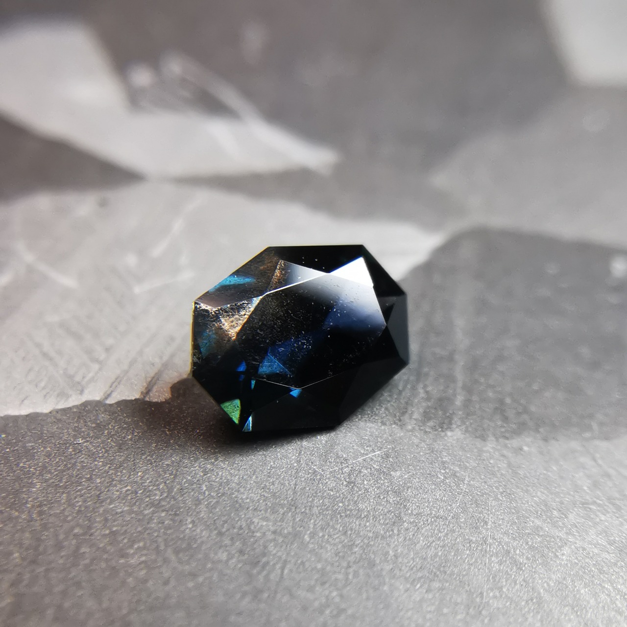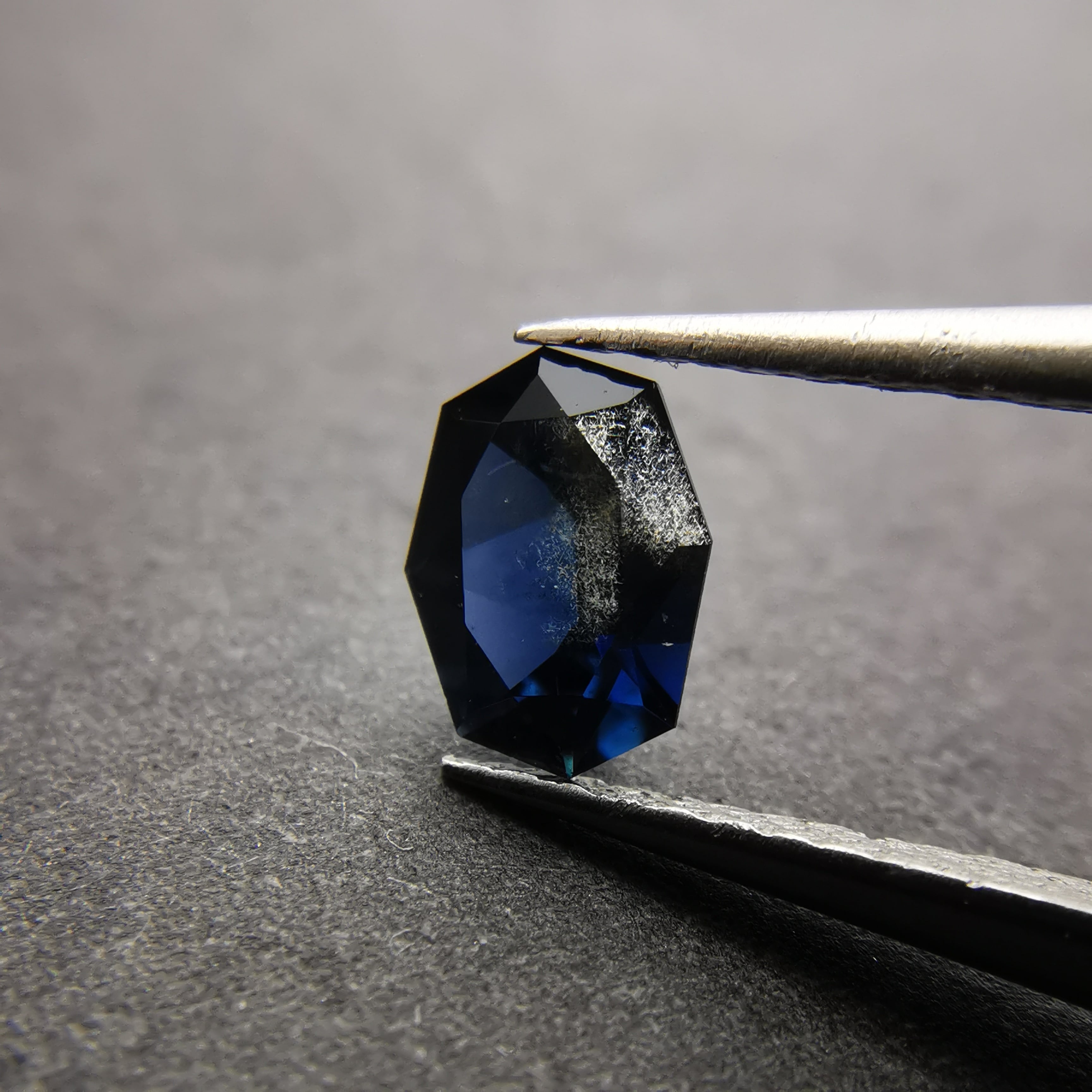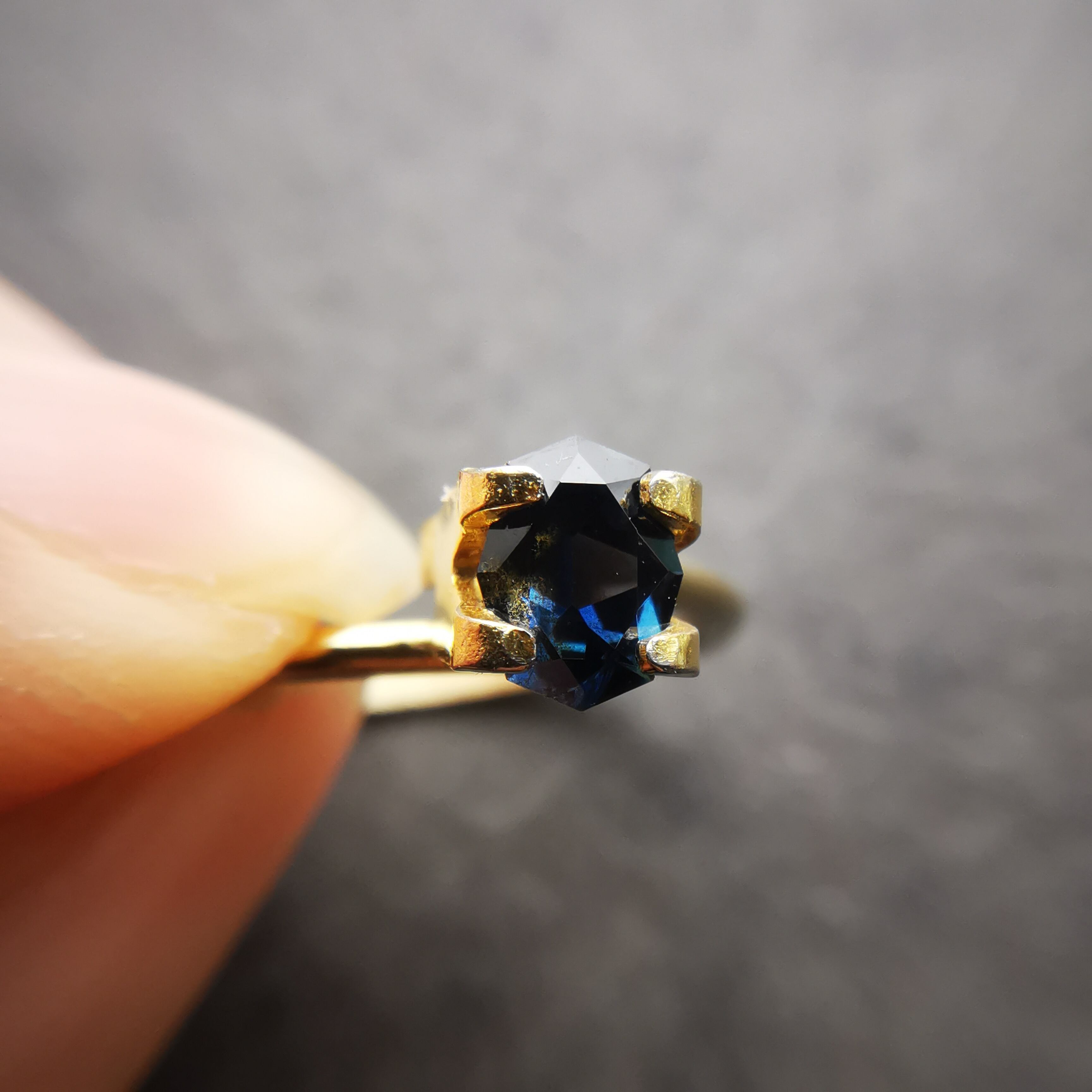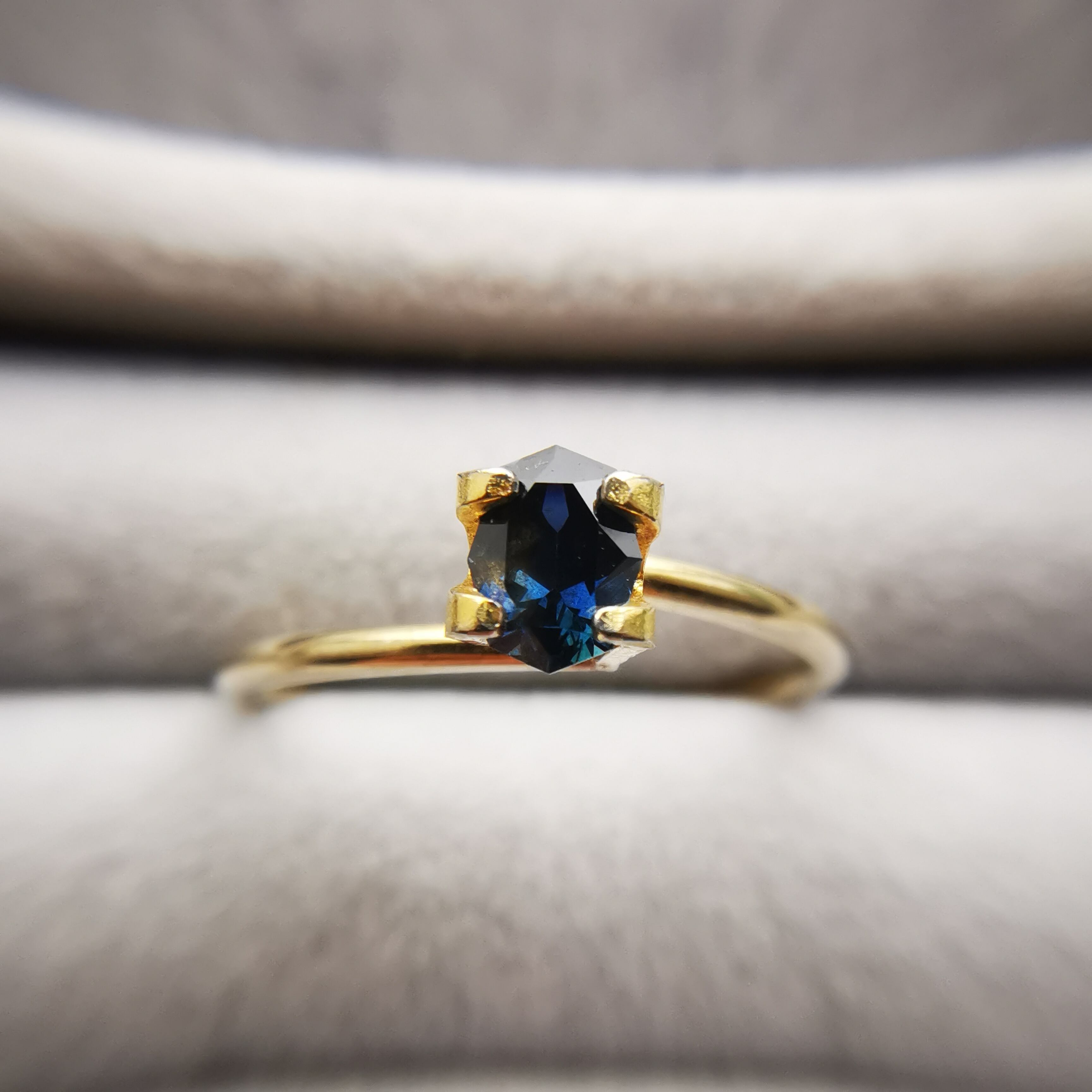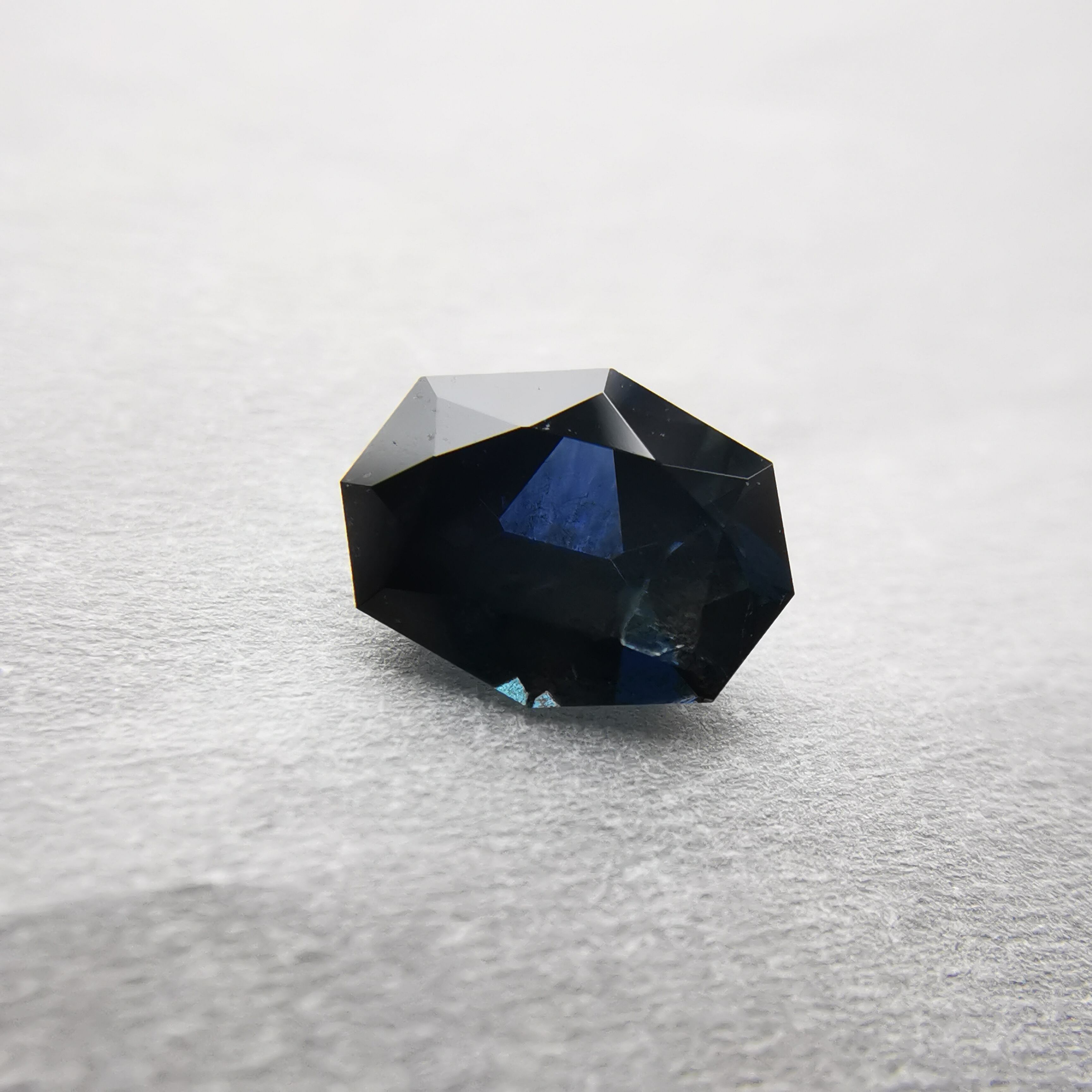 ごく暗い青/濃藍色、かなり黒に近い石から、マリンブルーがきらめくサファイアです。