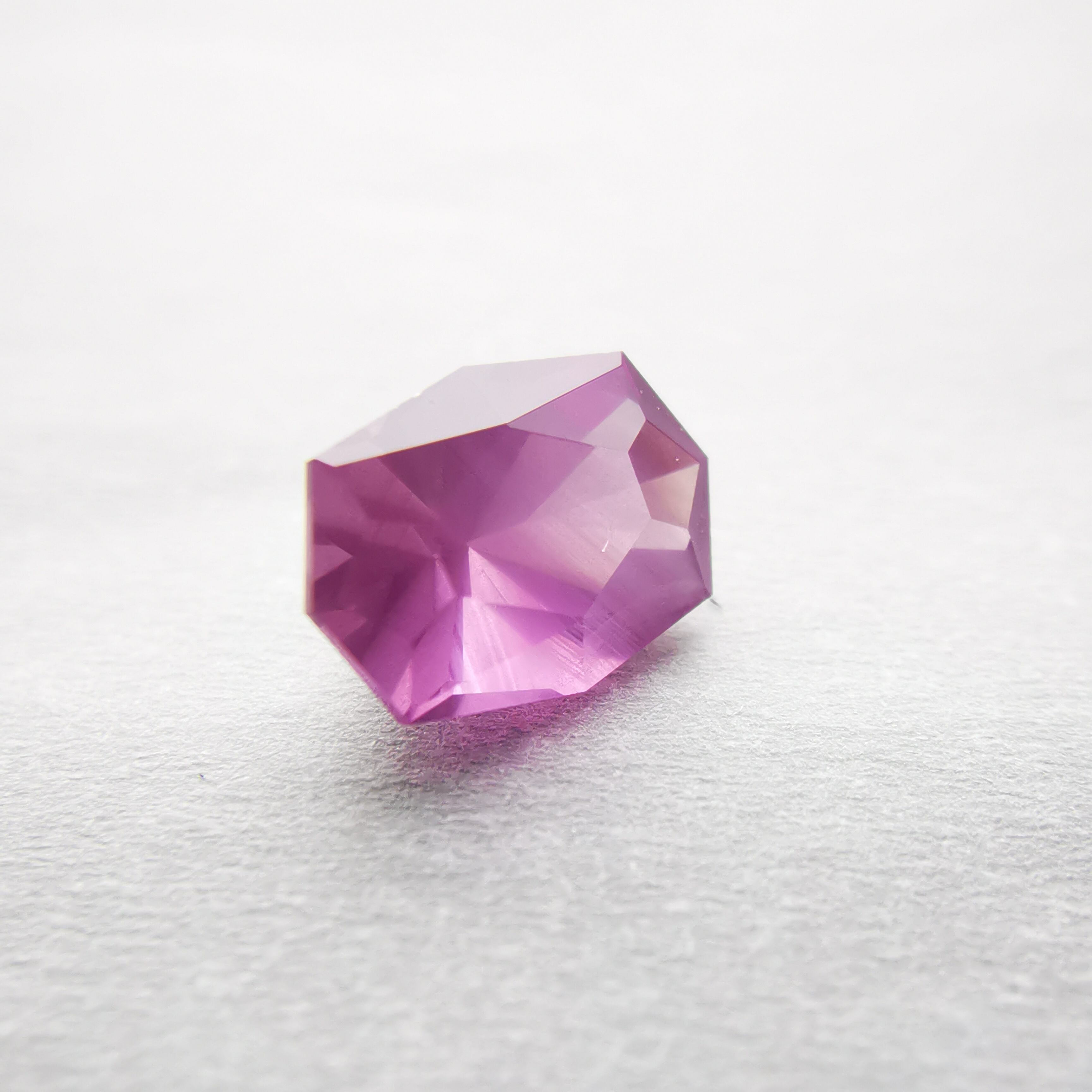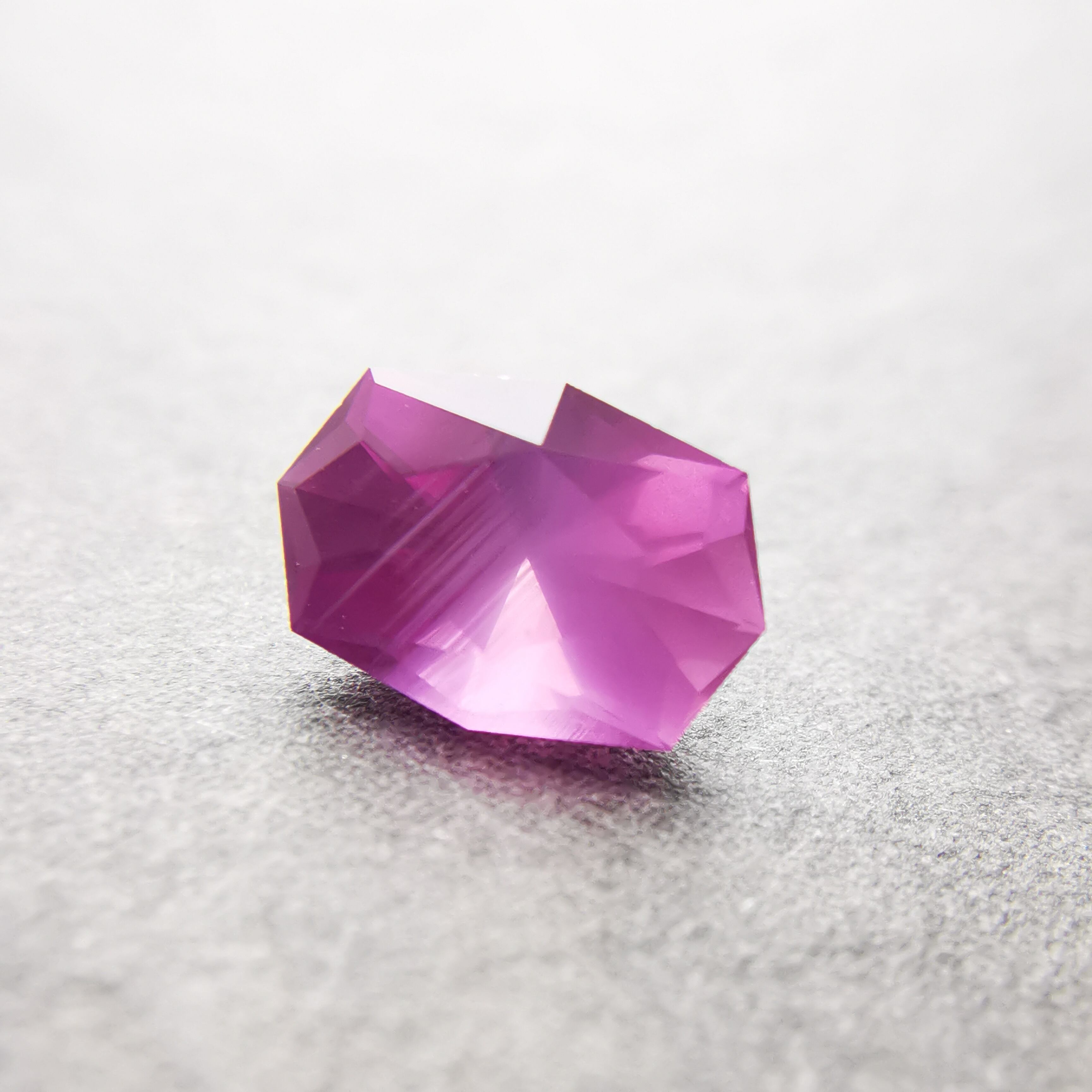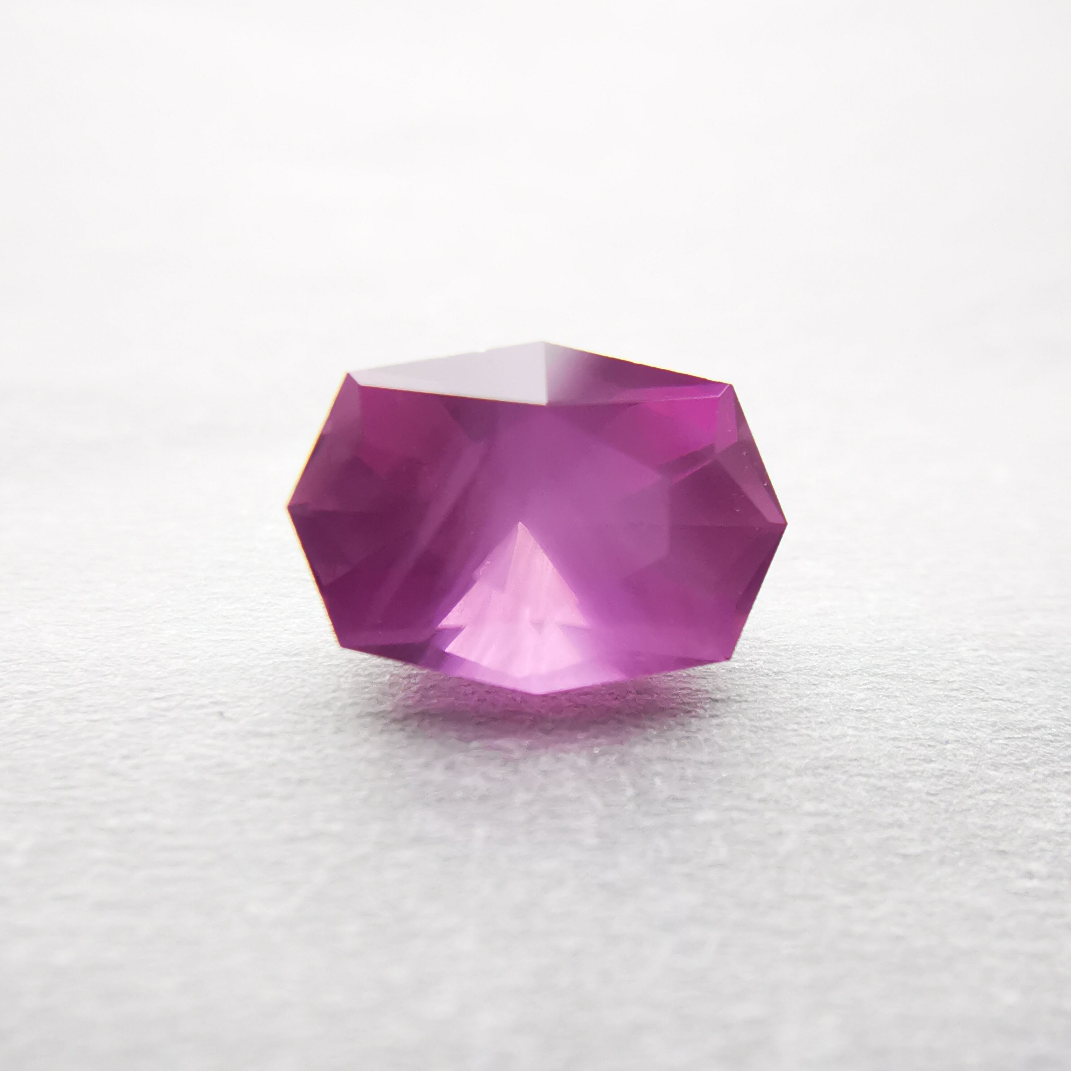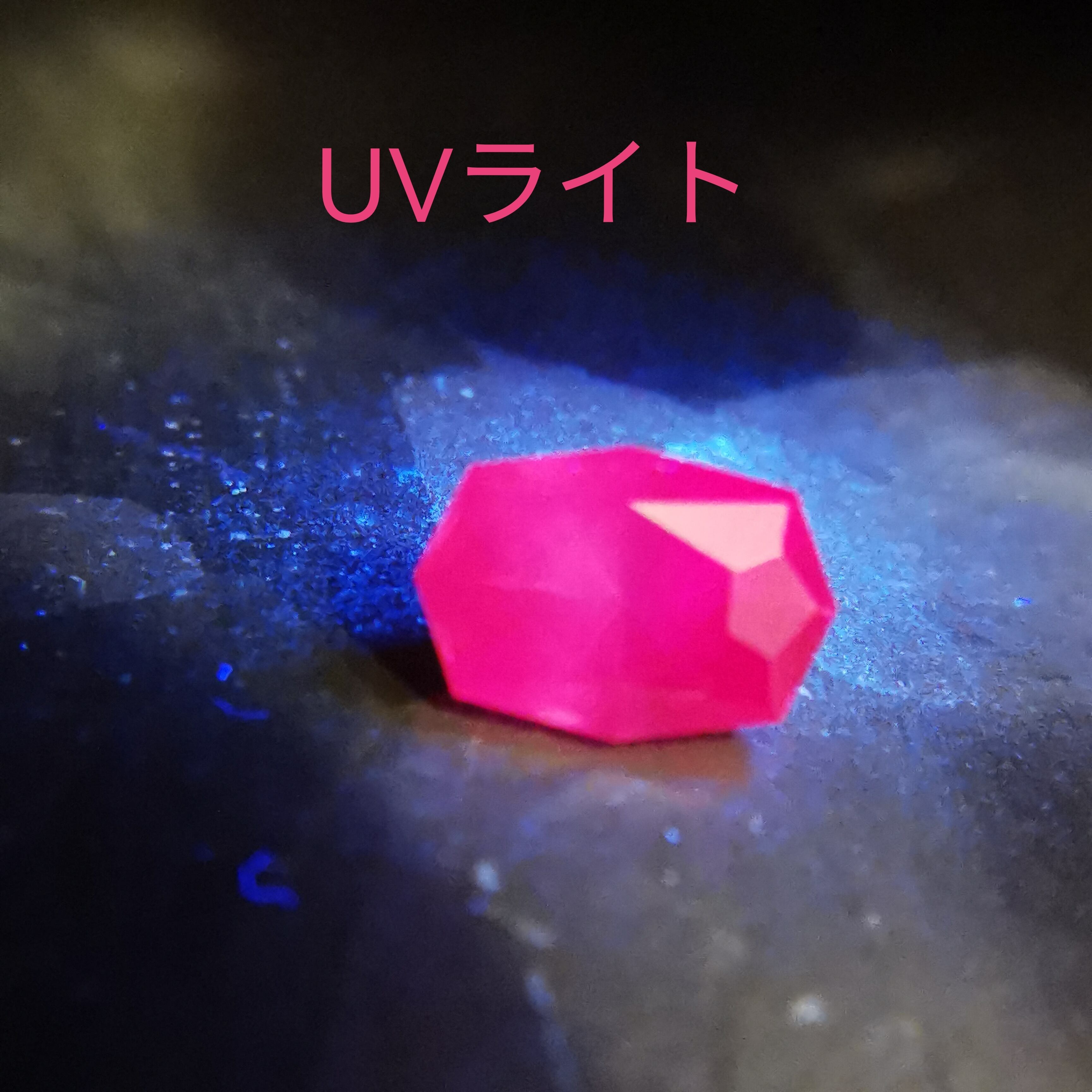 くすんだ赤紫/チリアンパープルで、内部にシルキーなインクルージョンがありやや不透明な一石です。