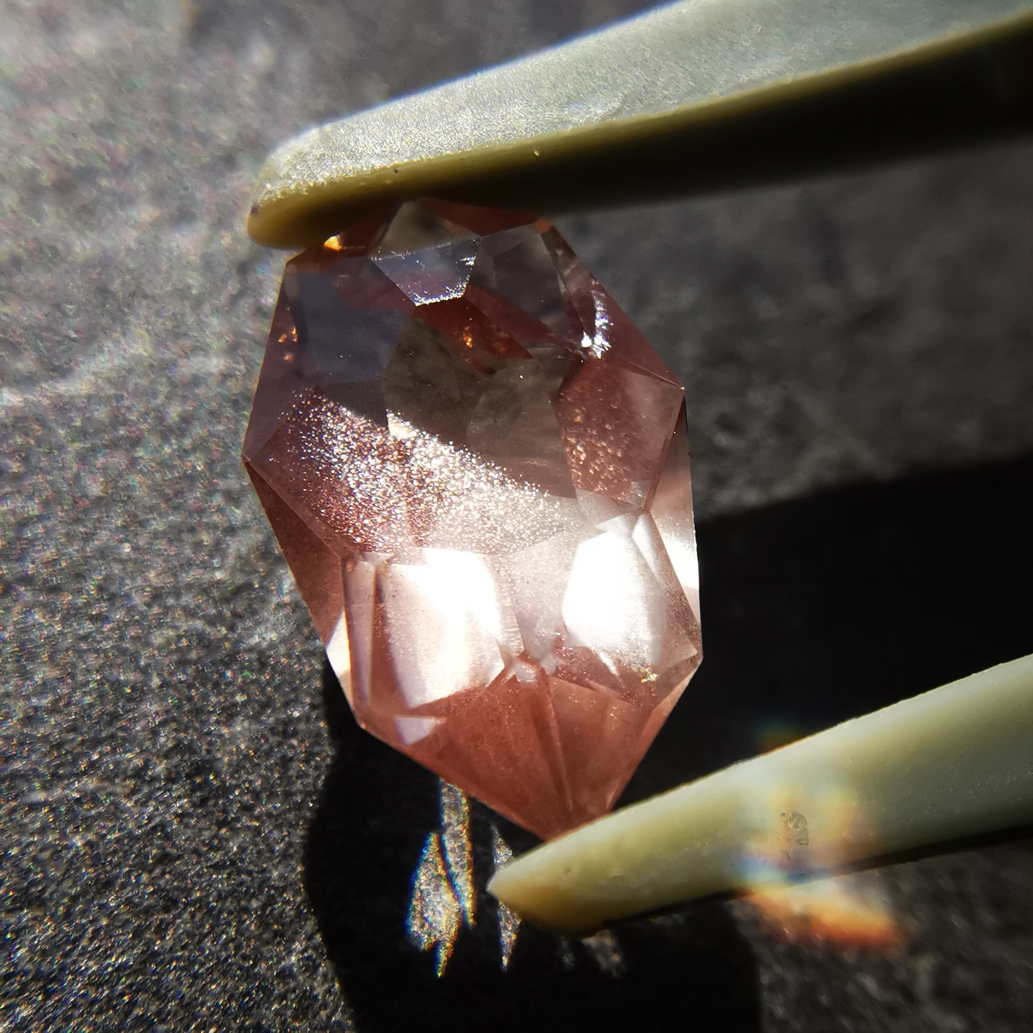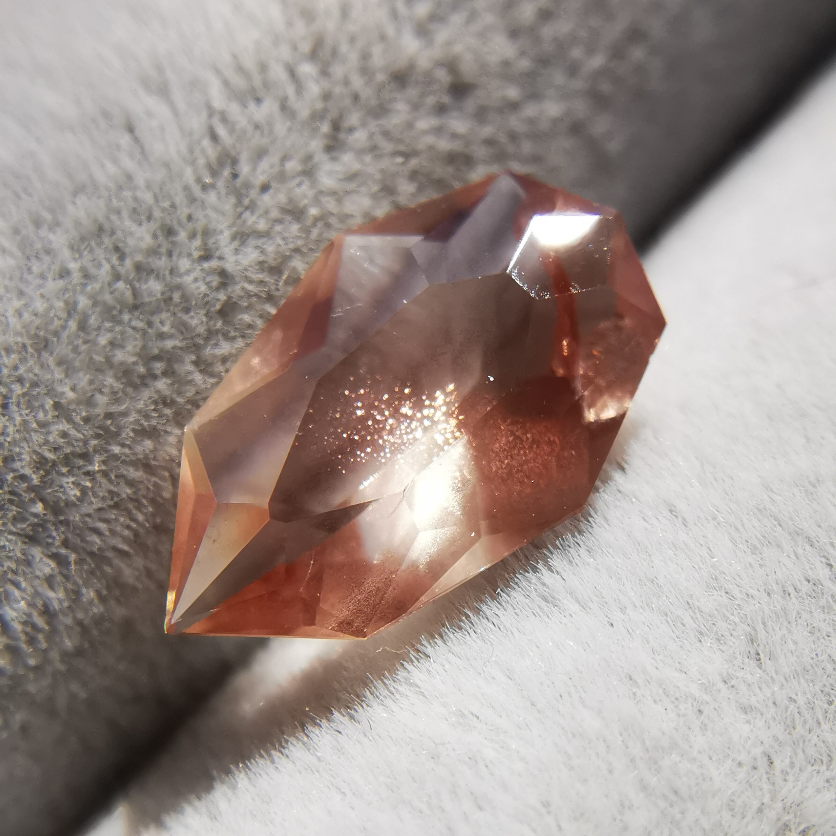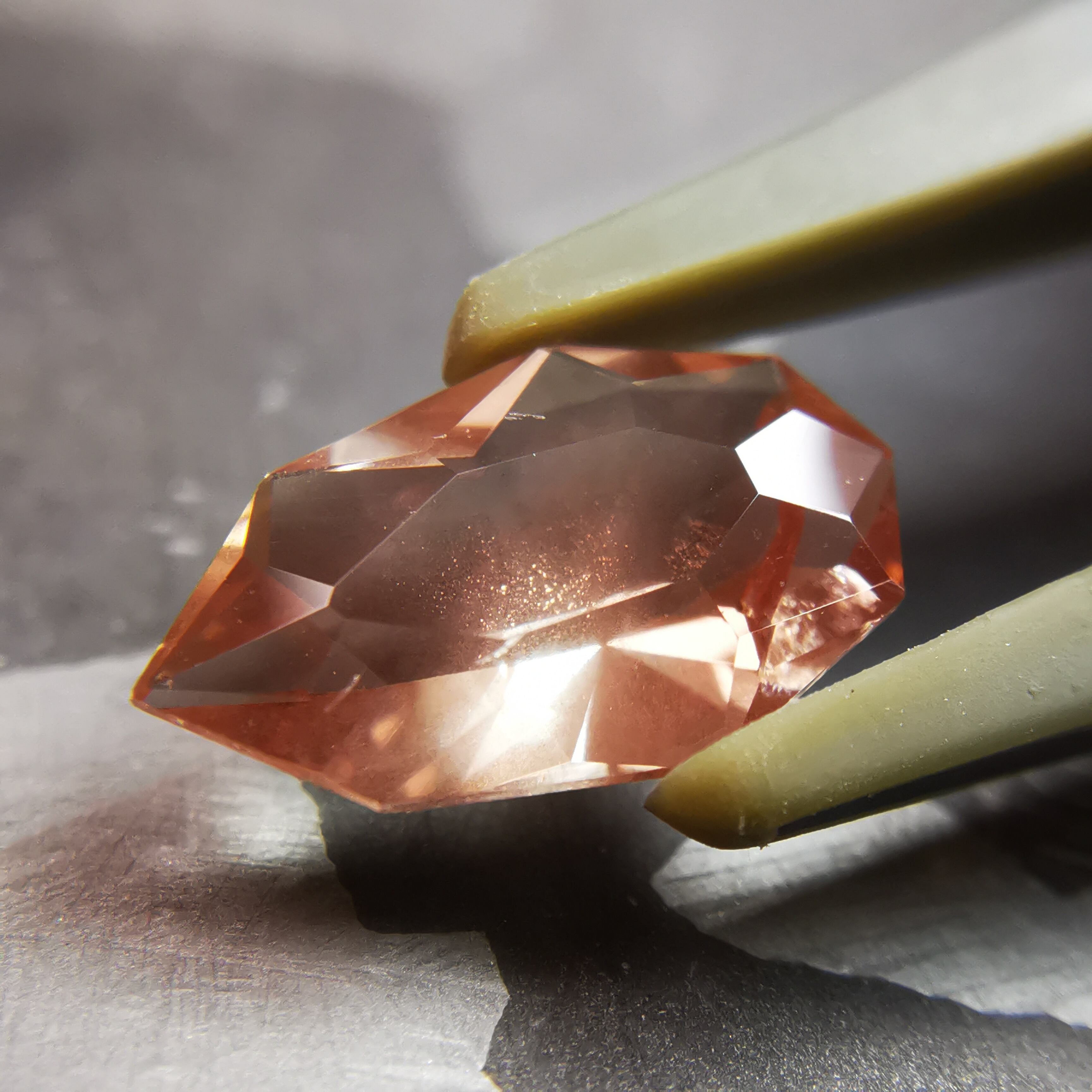 石の中の方に細かな銅シラーが入っていて、光が当たるとシュワッとアべンチュレッセンスが弾けます。