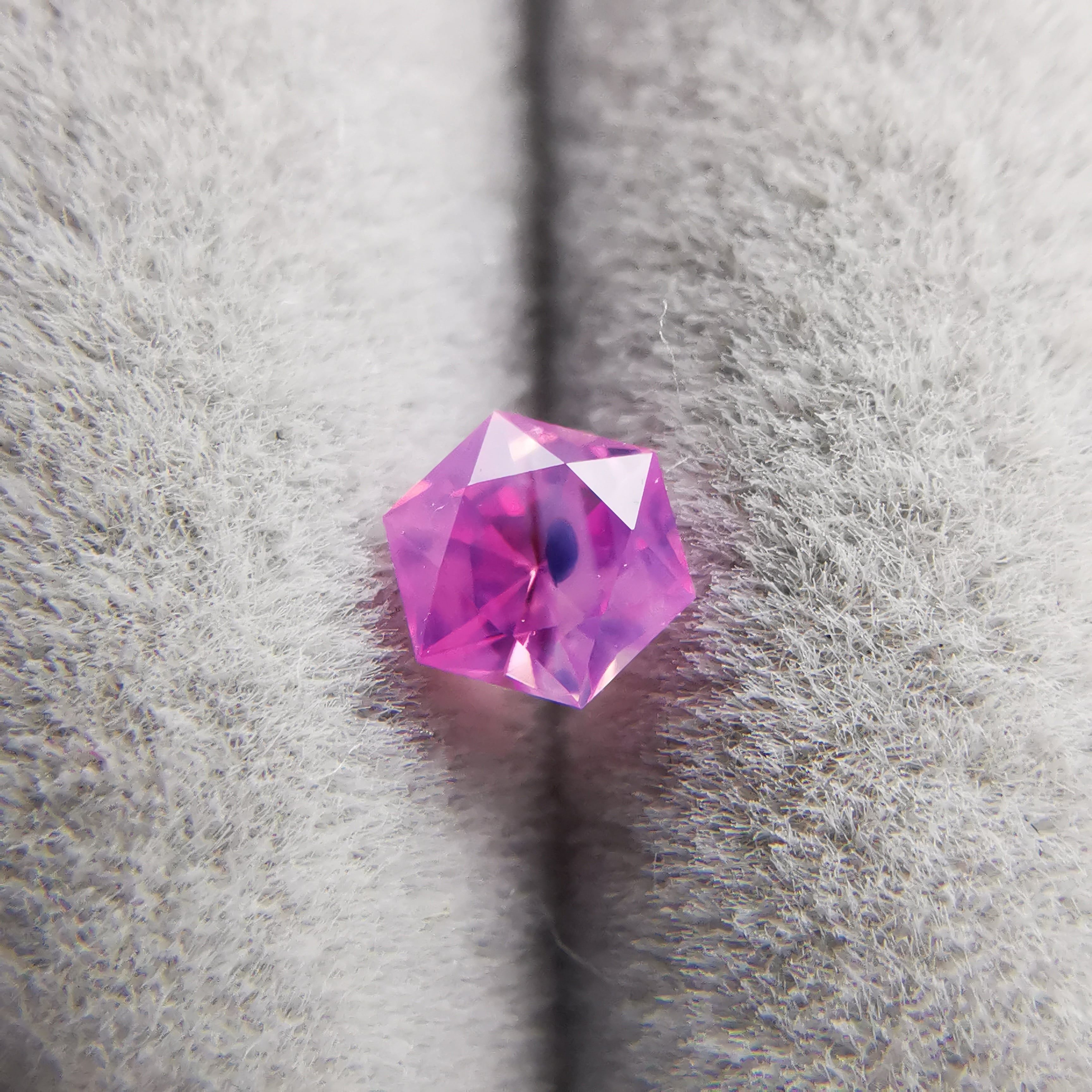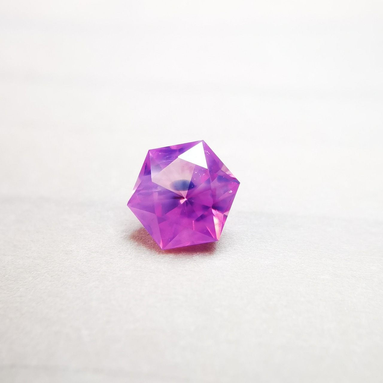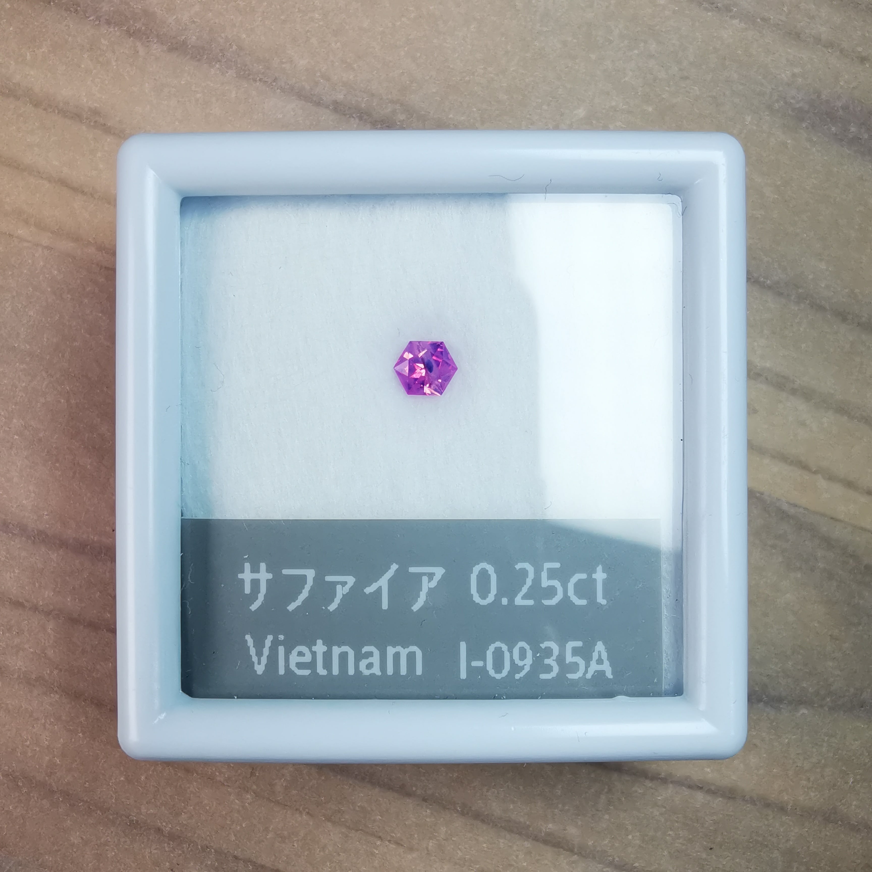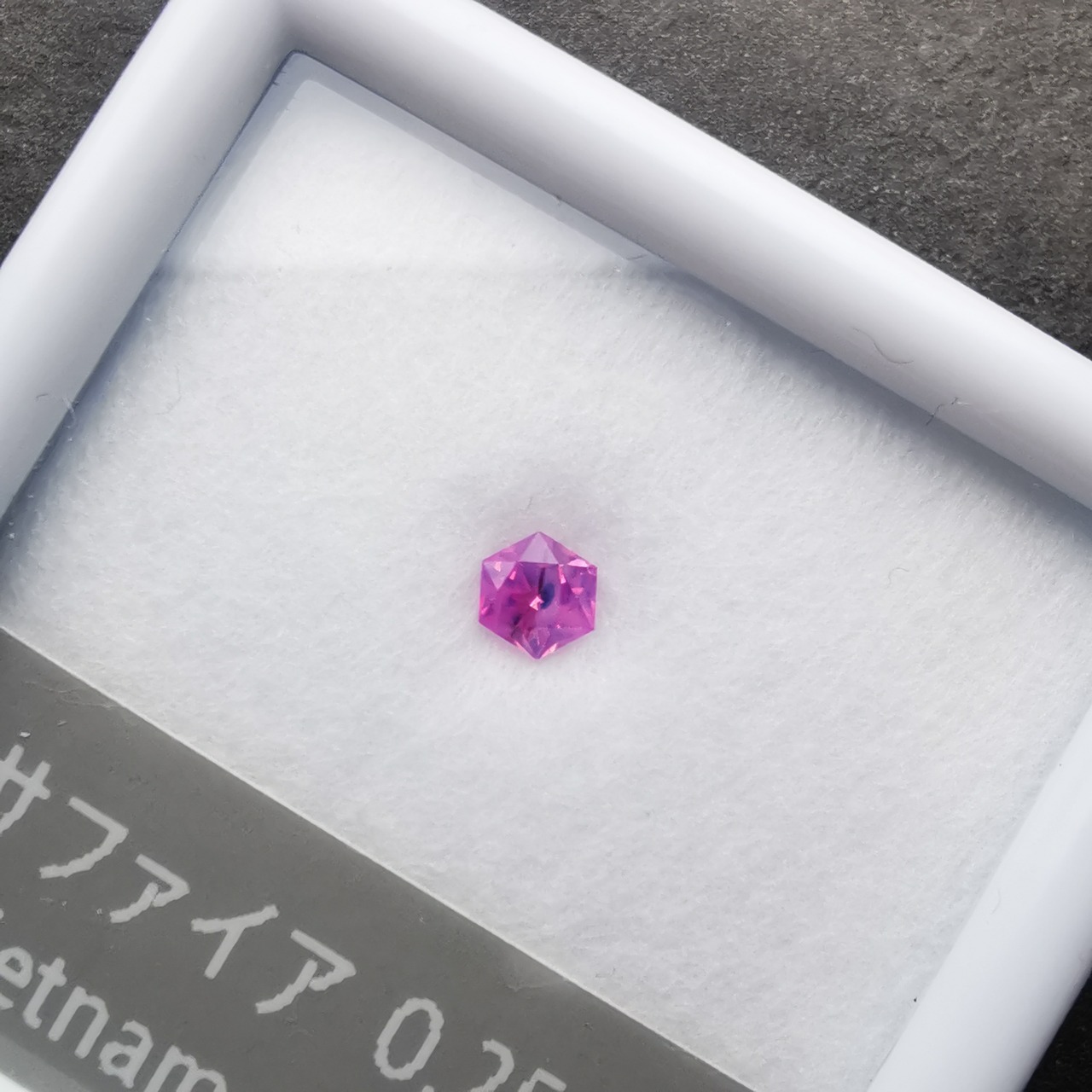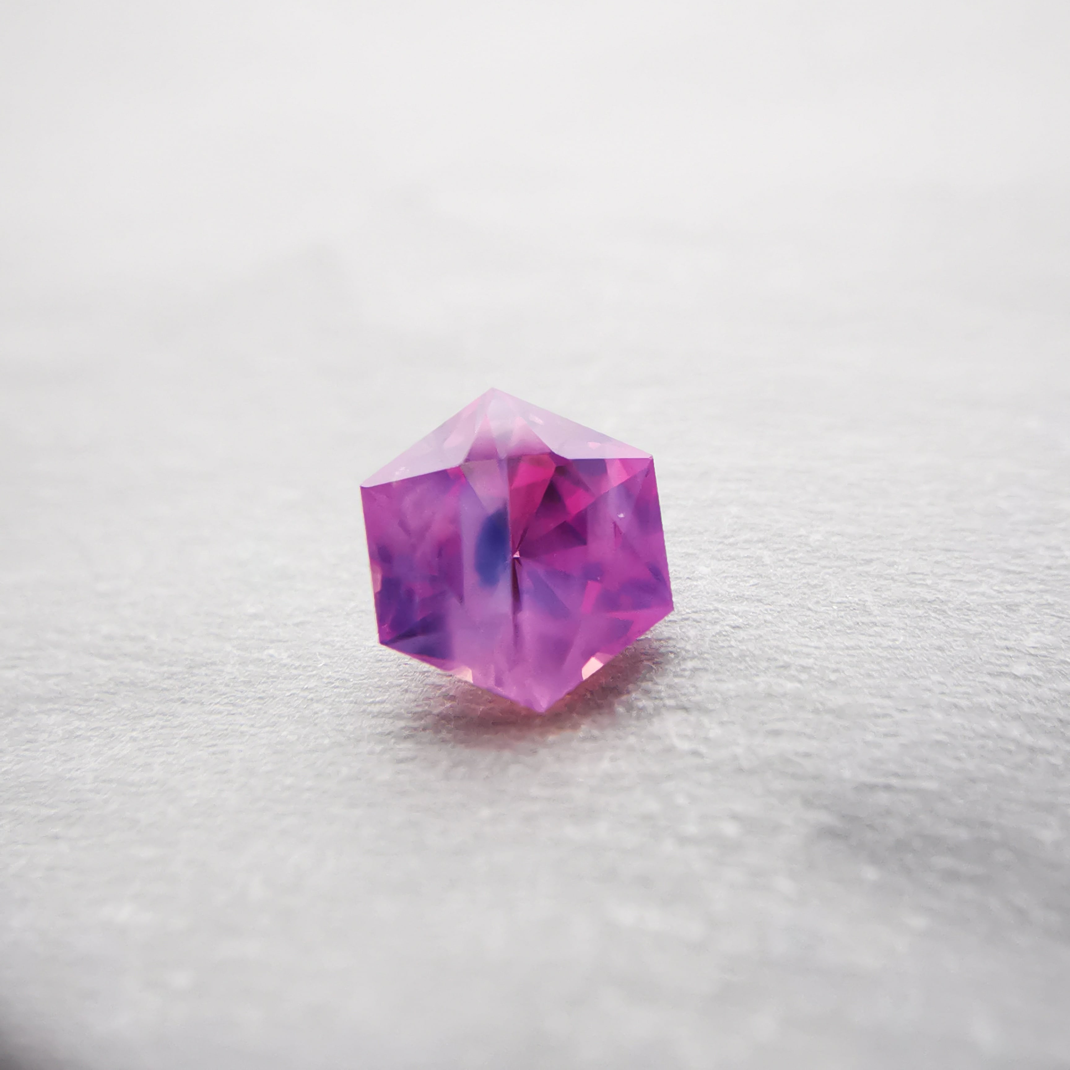 チェリーピンクとホワイトをエイッと混ぜて、仕上げに紺色のインクをぽとりと一滴落としたようなサファイアです。
