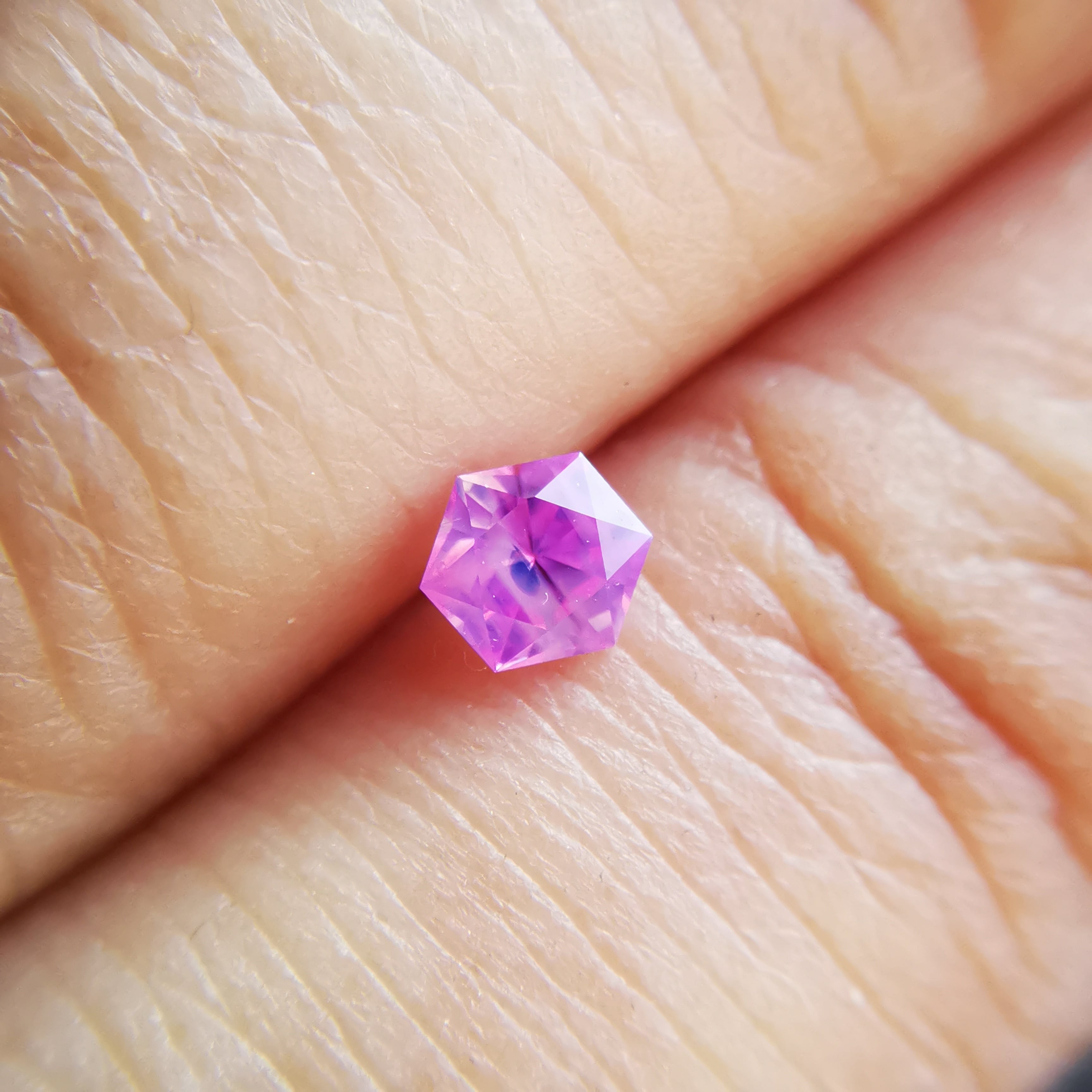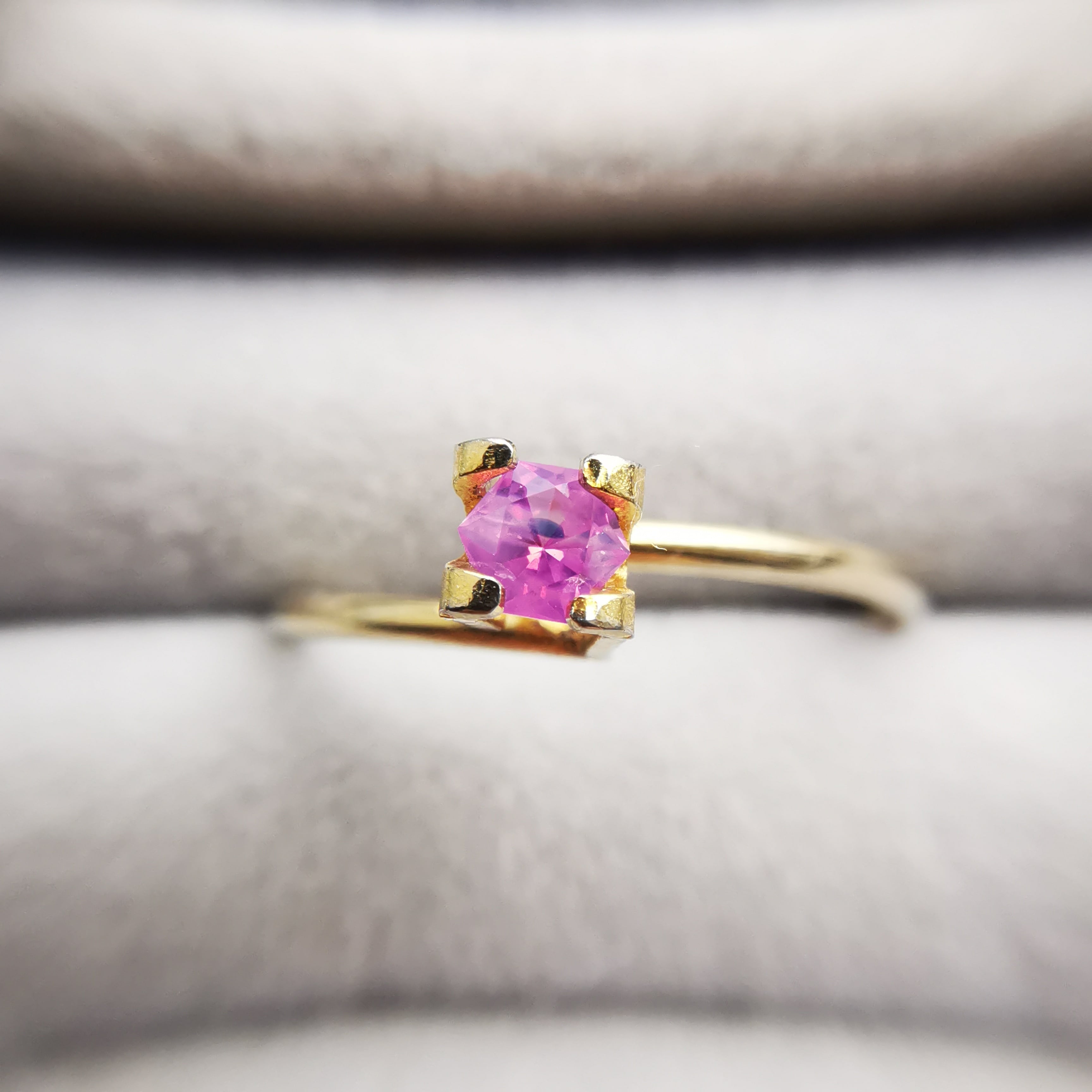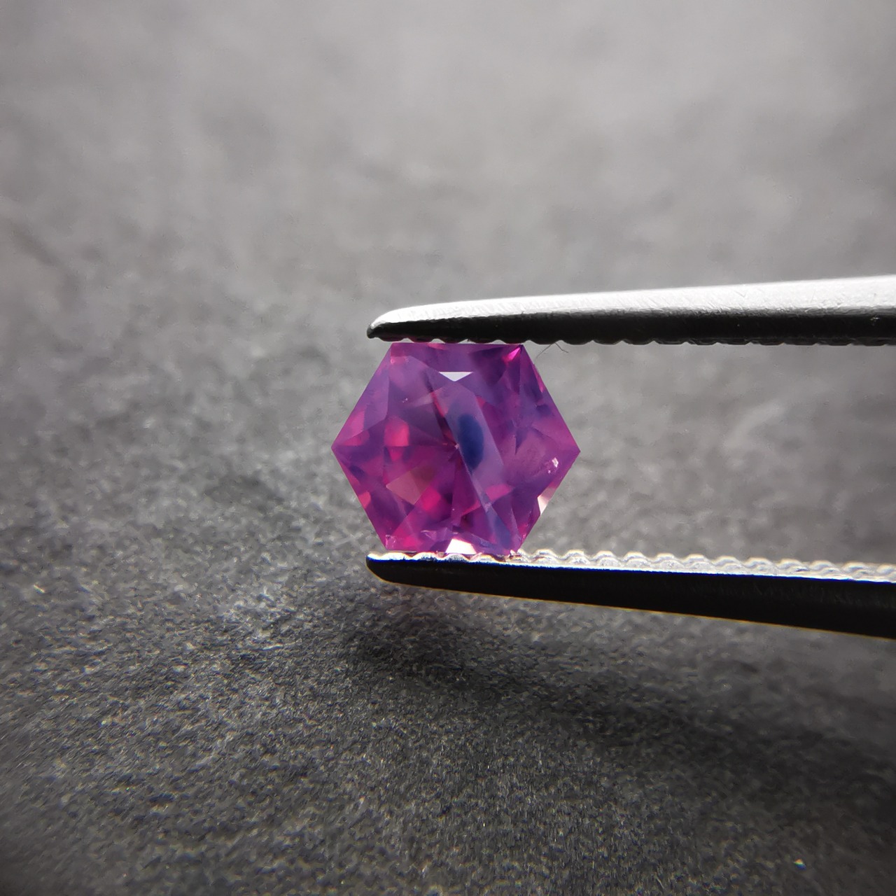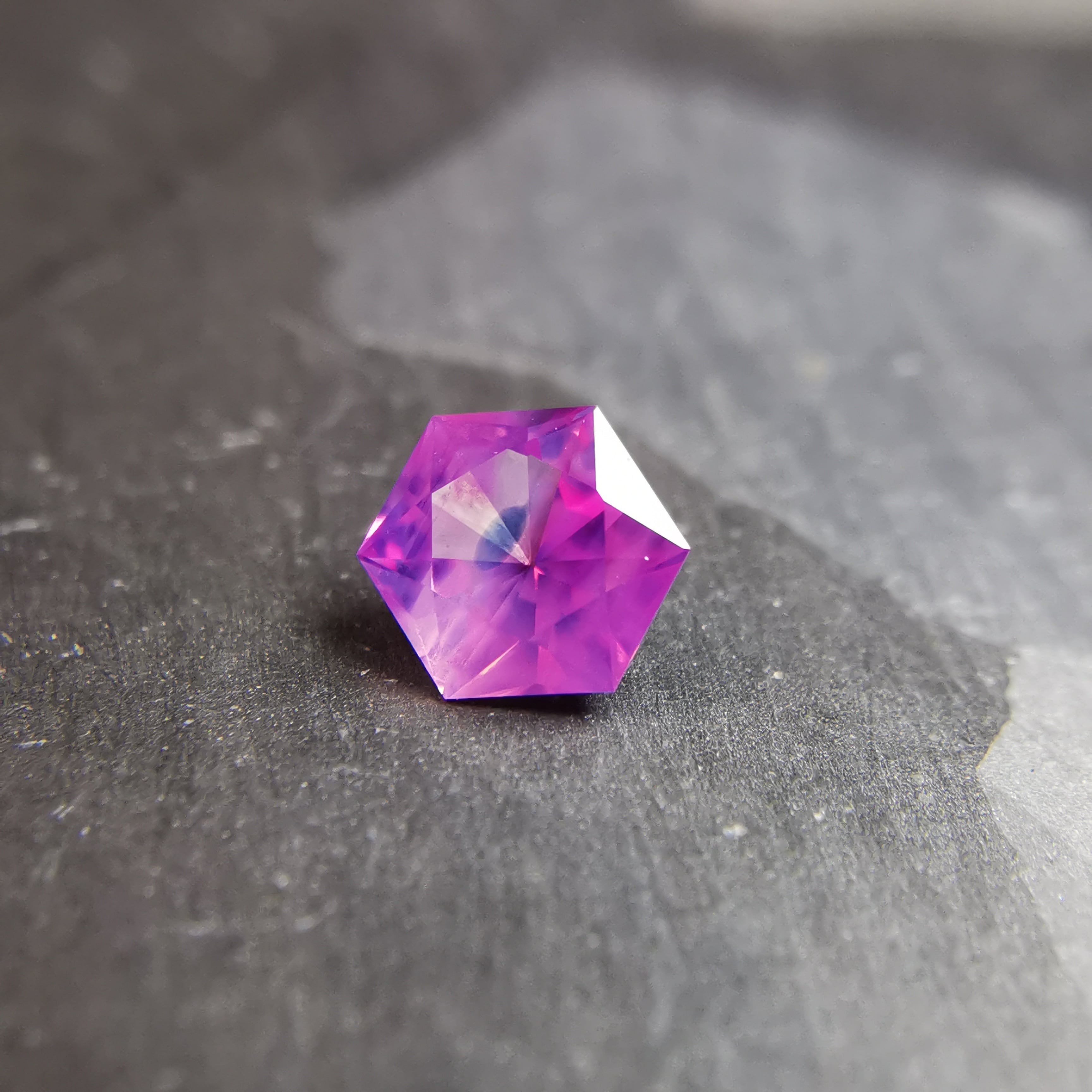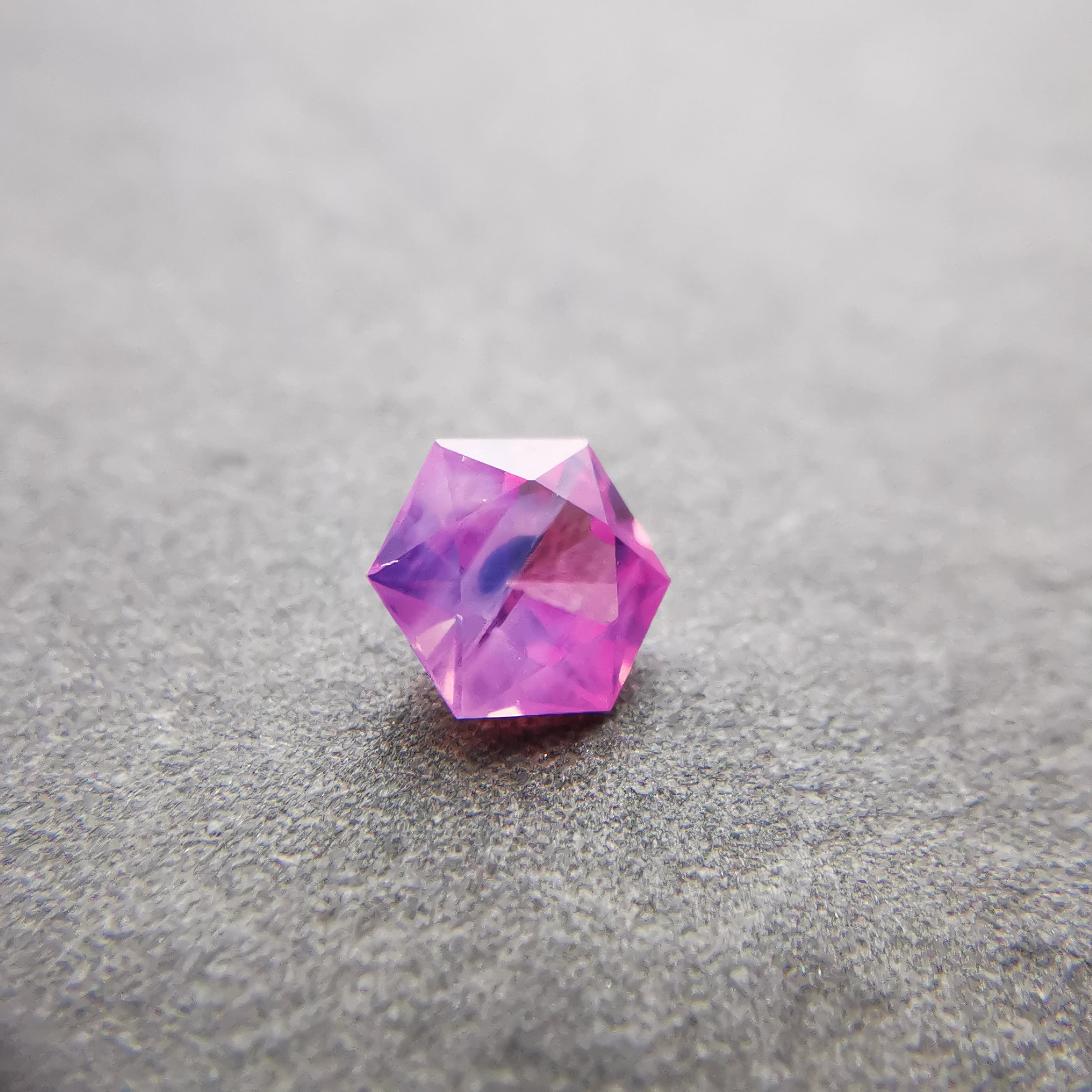 チェリーピンクとホワイトをエイッと混ぜて、仕上げに紺色のインクをぽとりと一滴落としたようなサファイアです。