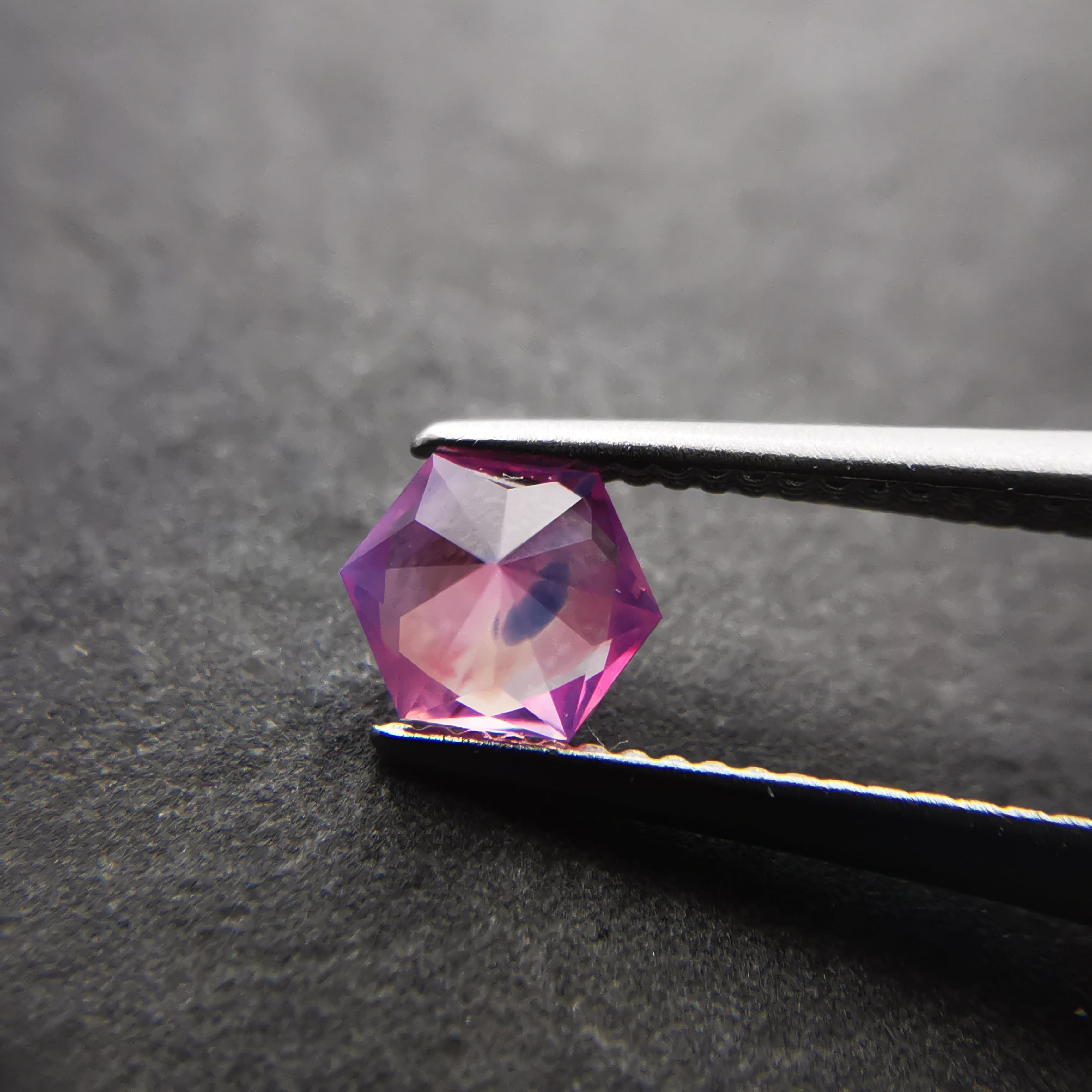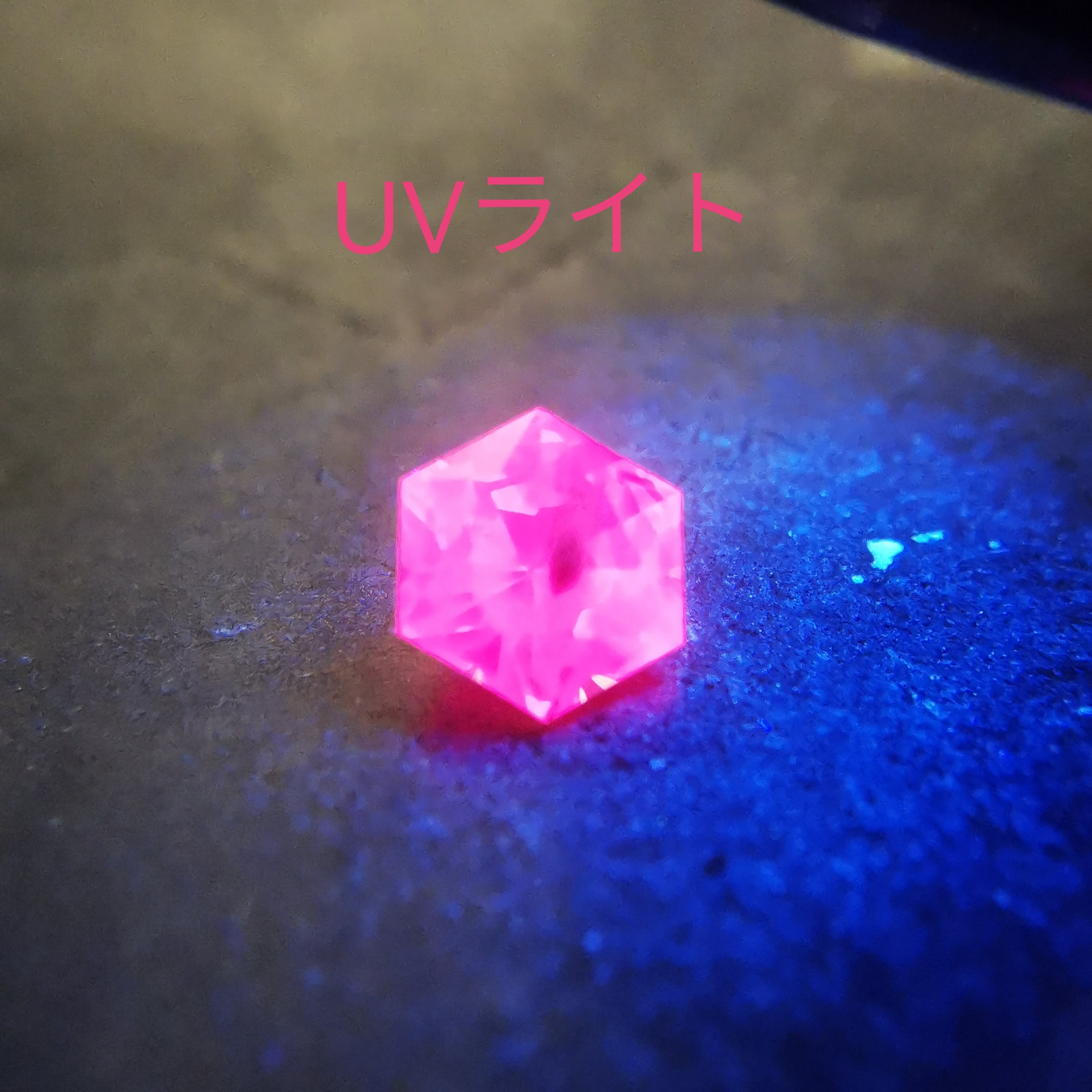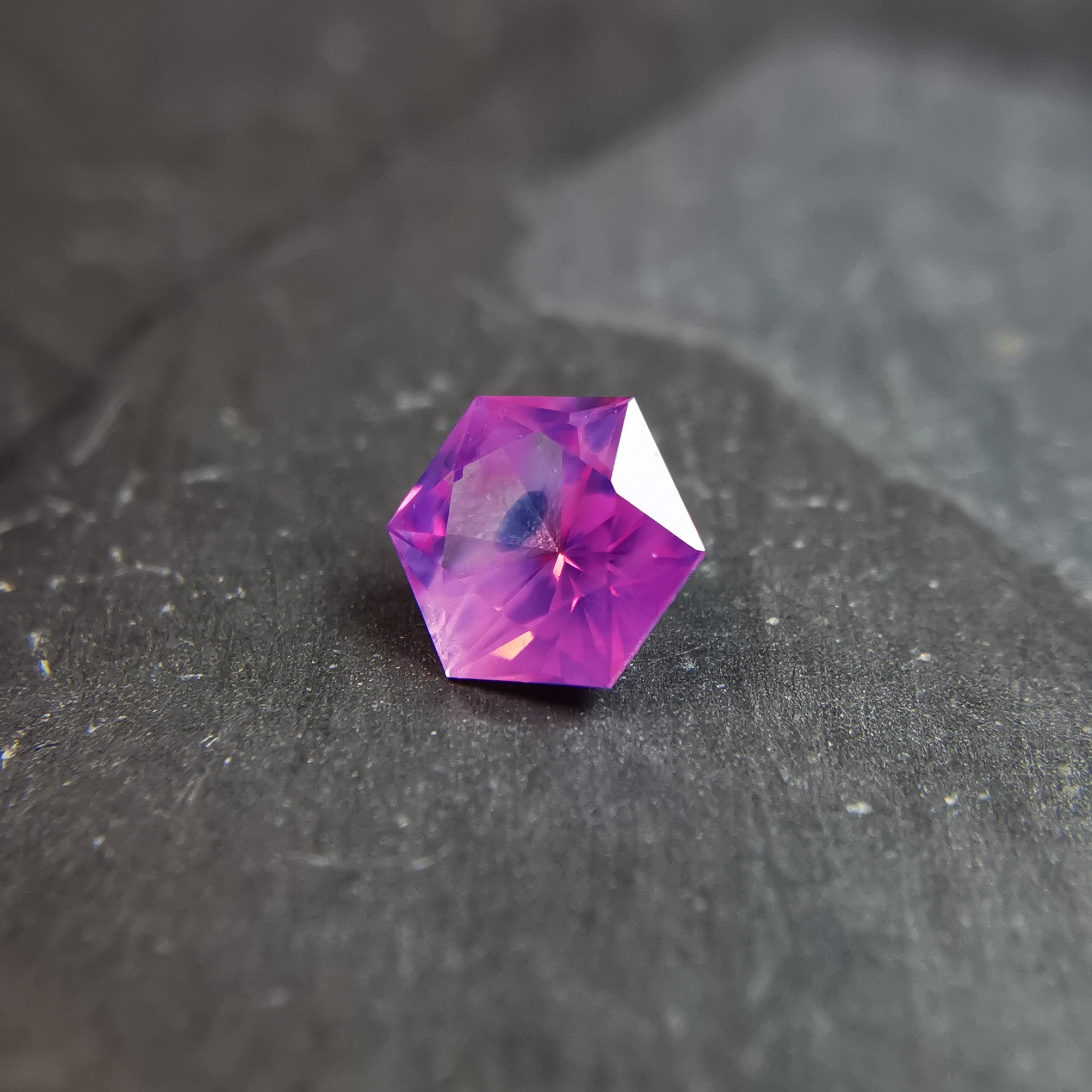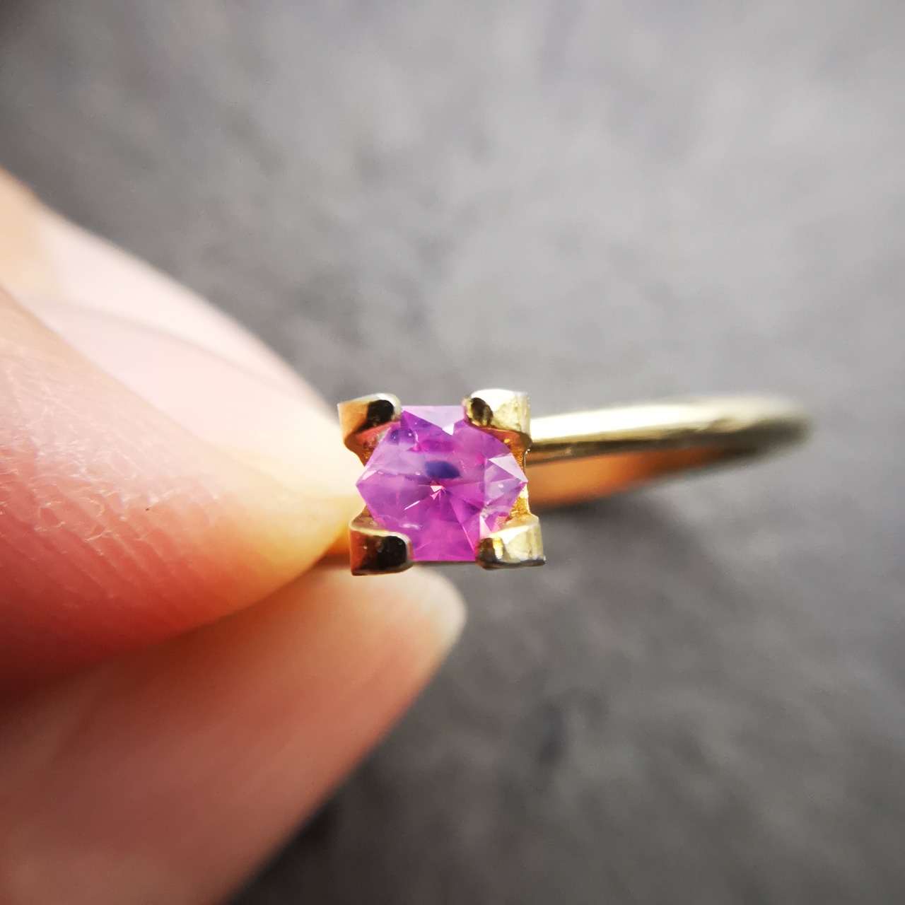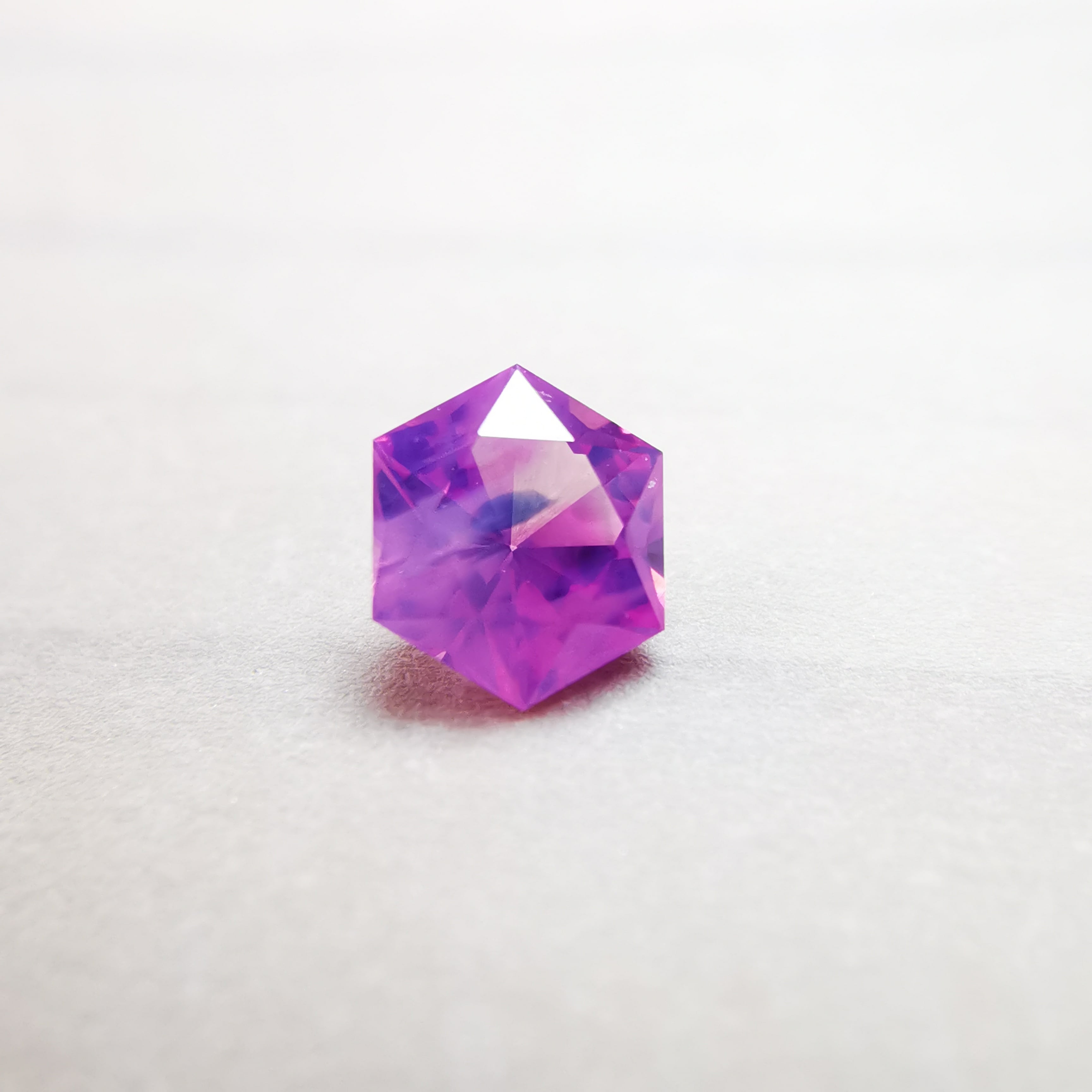 チェリーピンクとホワイトをエイッと混ぜて、仕上げに紺色のインクをぽとりと一滴落としたようなサファイアです。