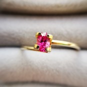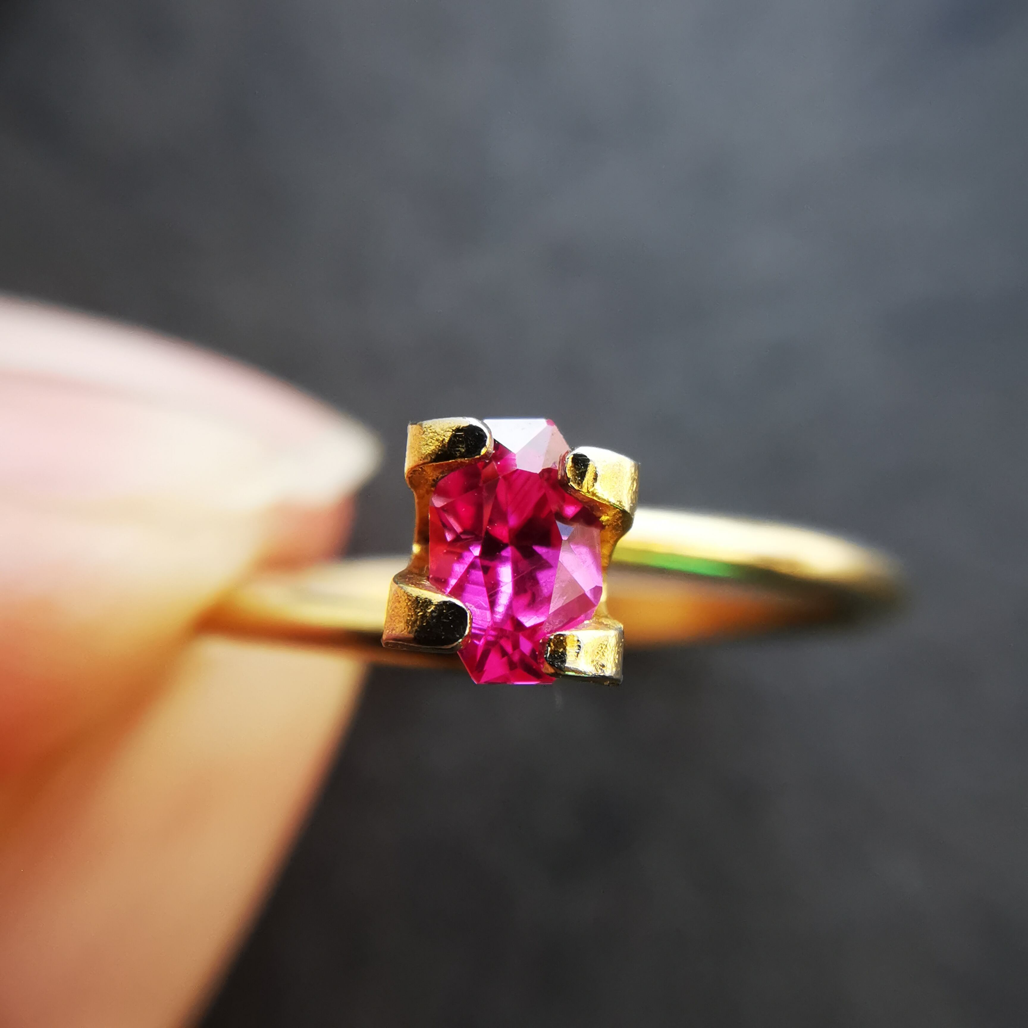 濃厚で揺らぎのない強烈なカラーがいかにもルビーらしい、色で魅了するような一石です。