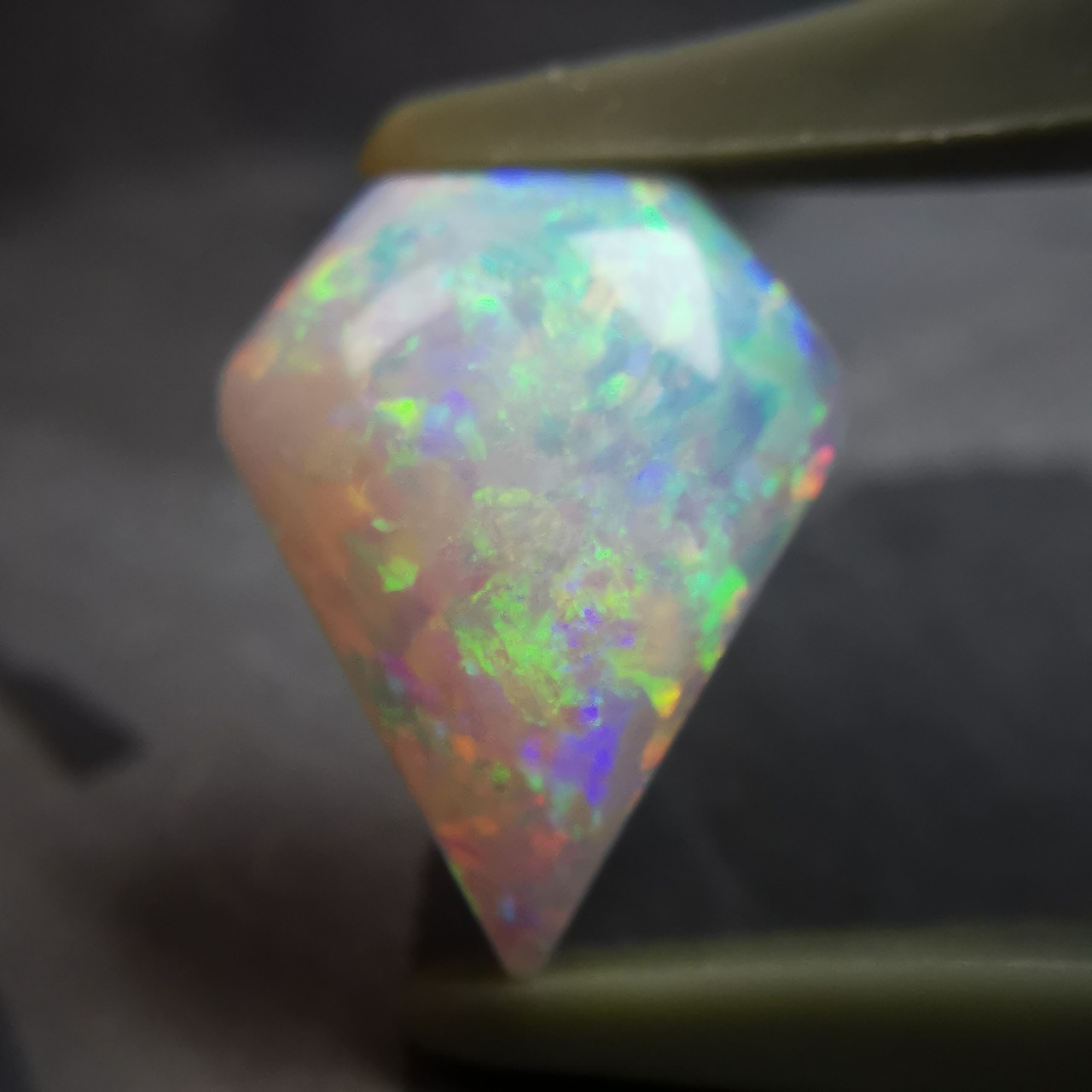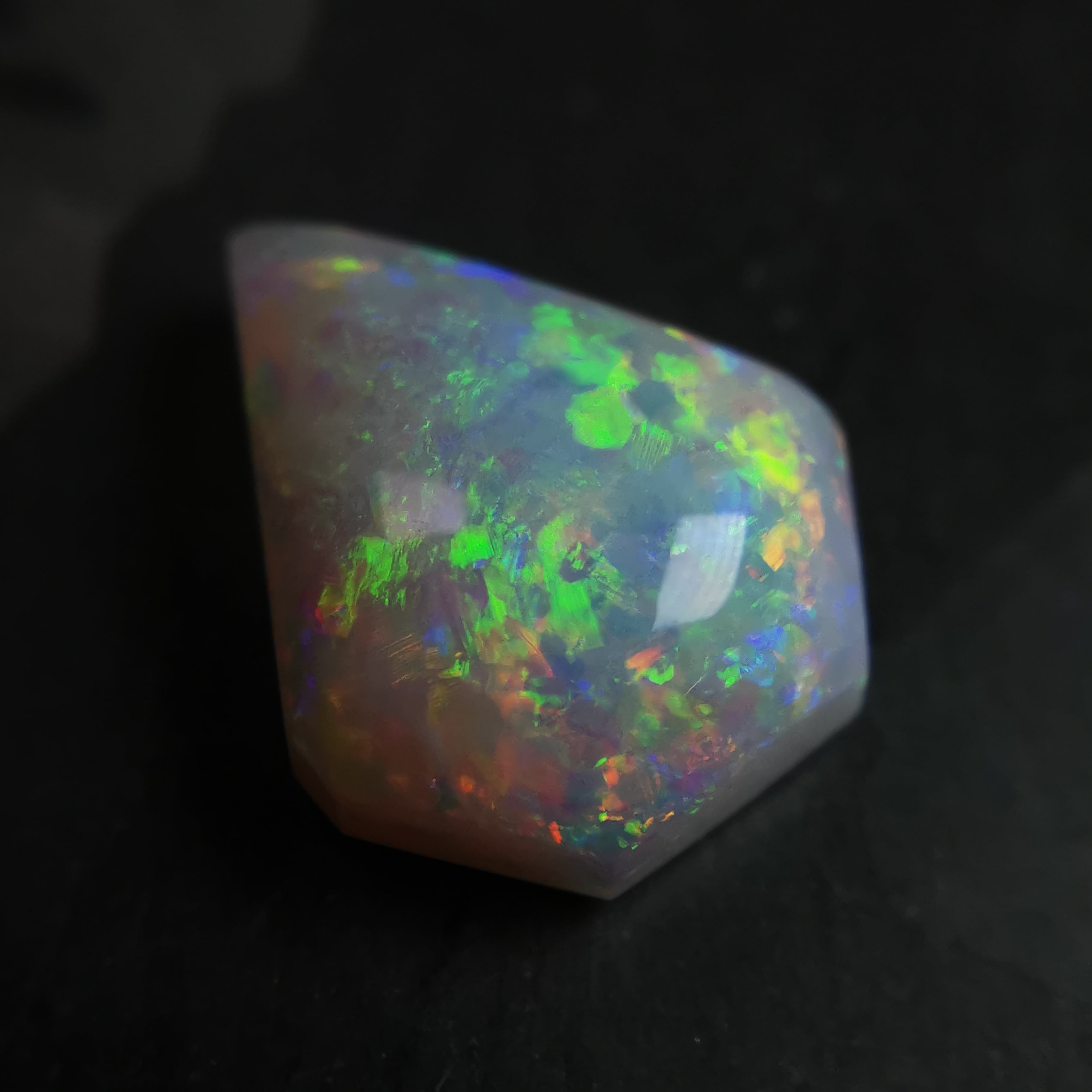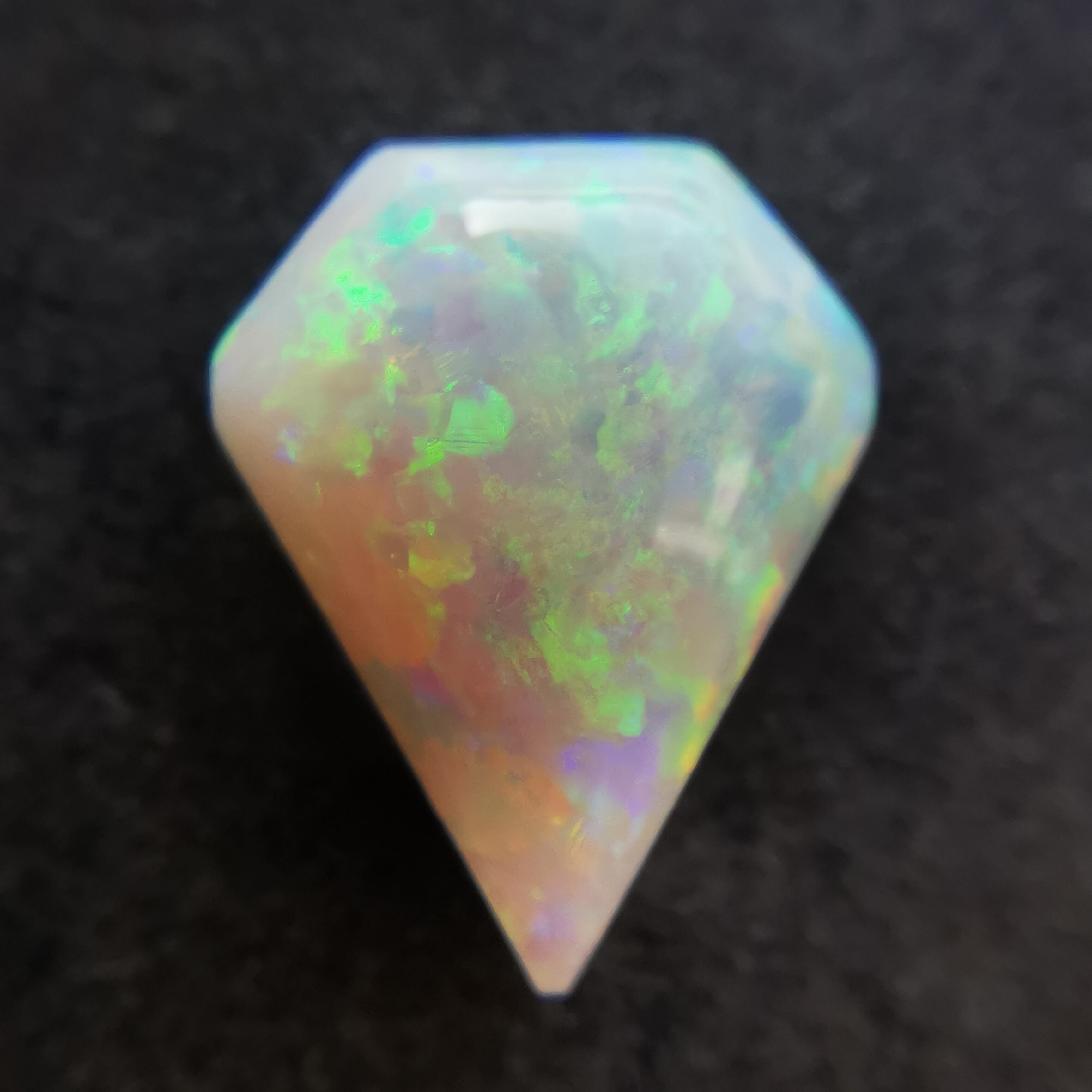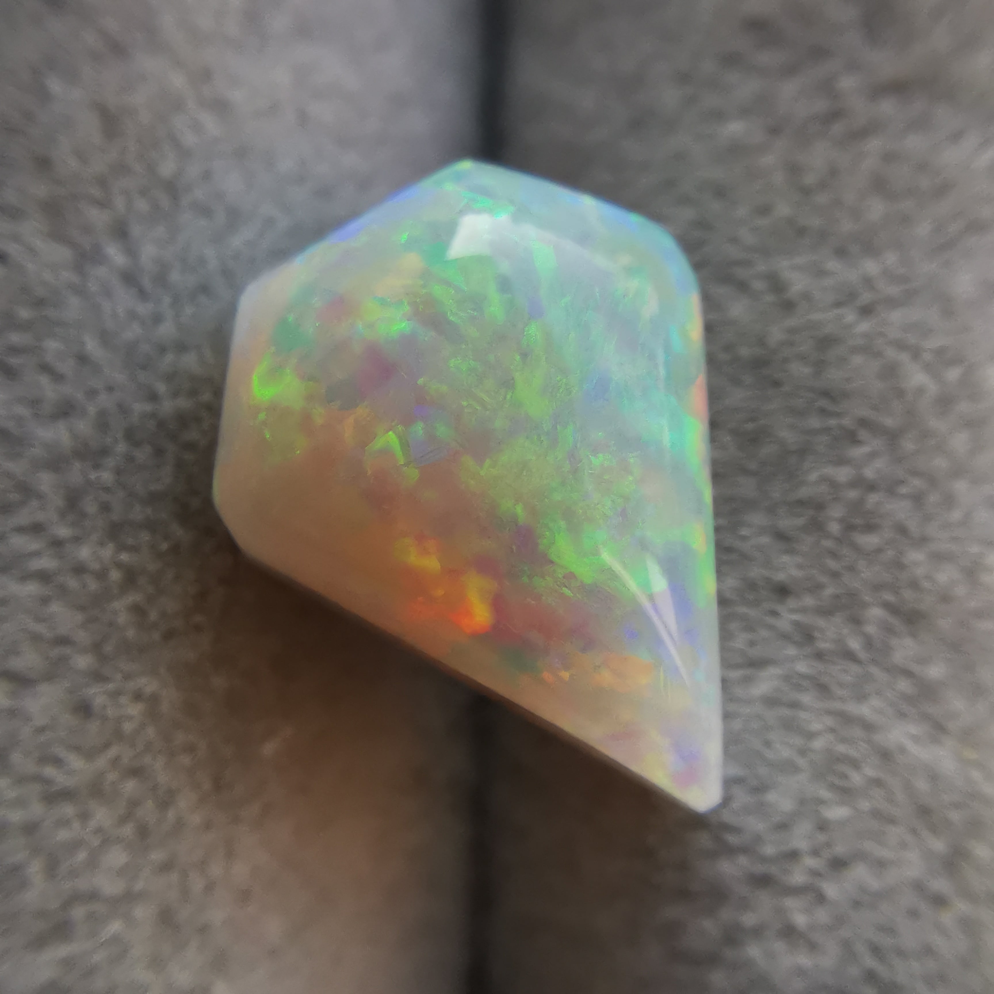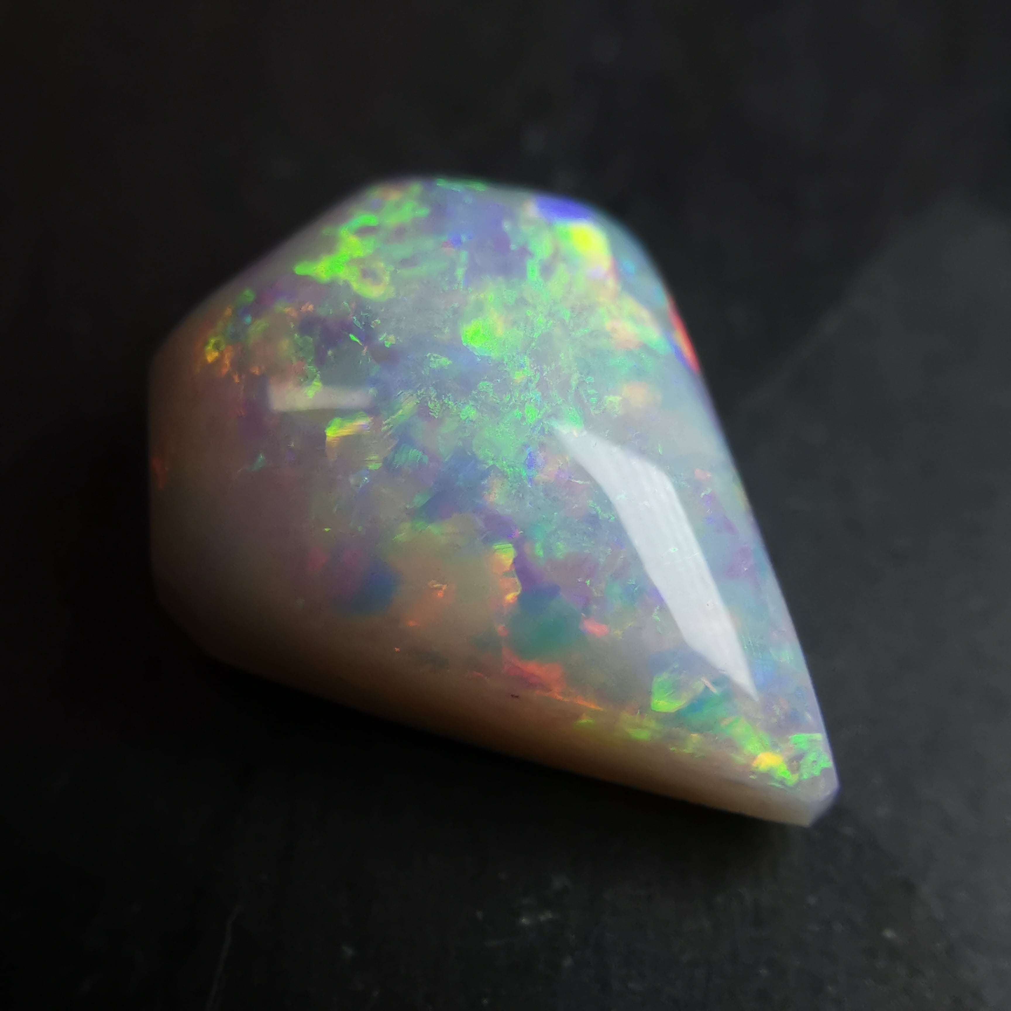柔らかいオパールを、鋭角部分の多いジュエルシェイプのファセットカットにするのは少し心配になりますが、しっかりと厚みのあるカボションカットなら安心です。