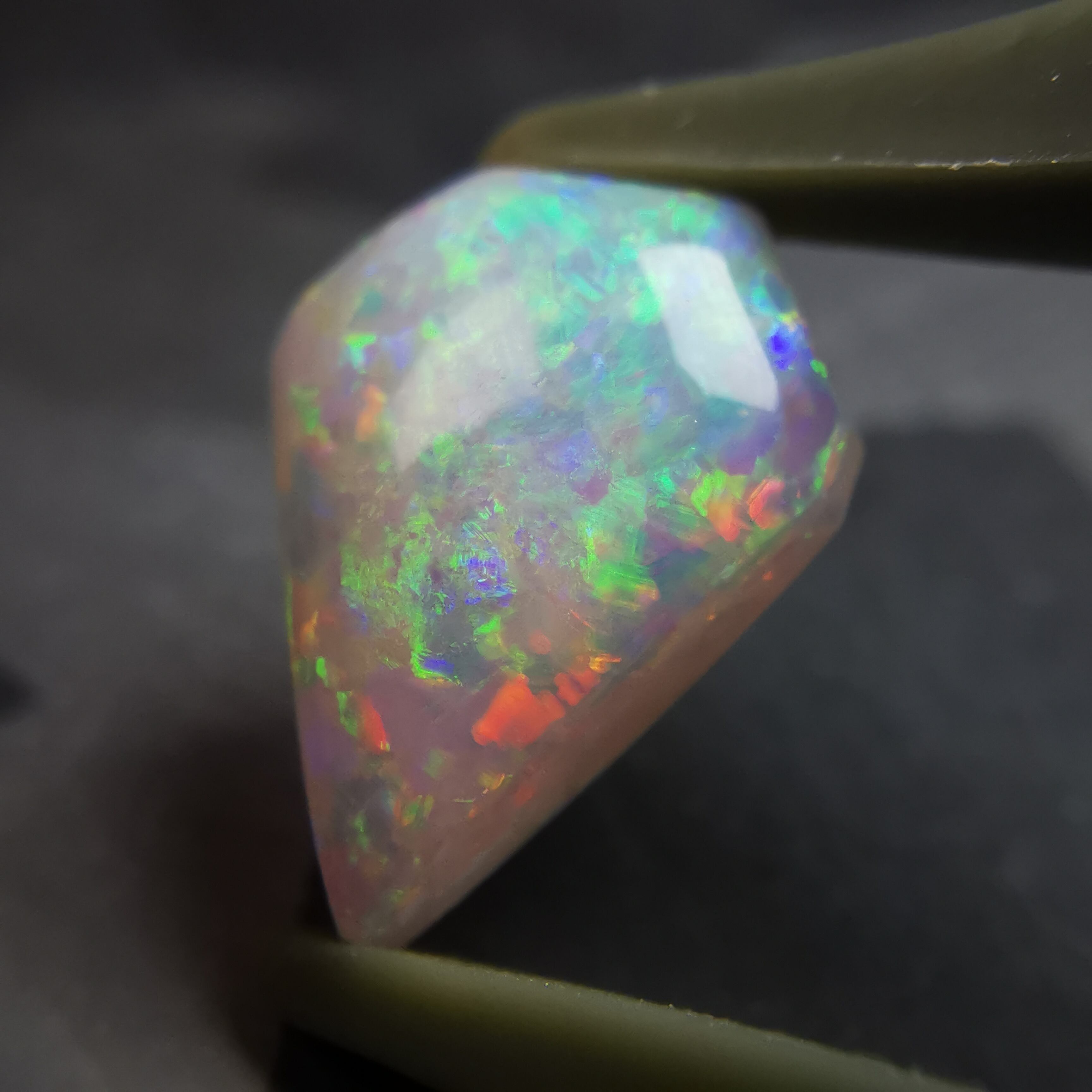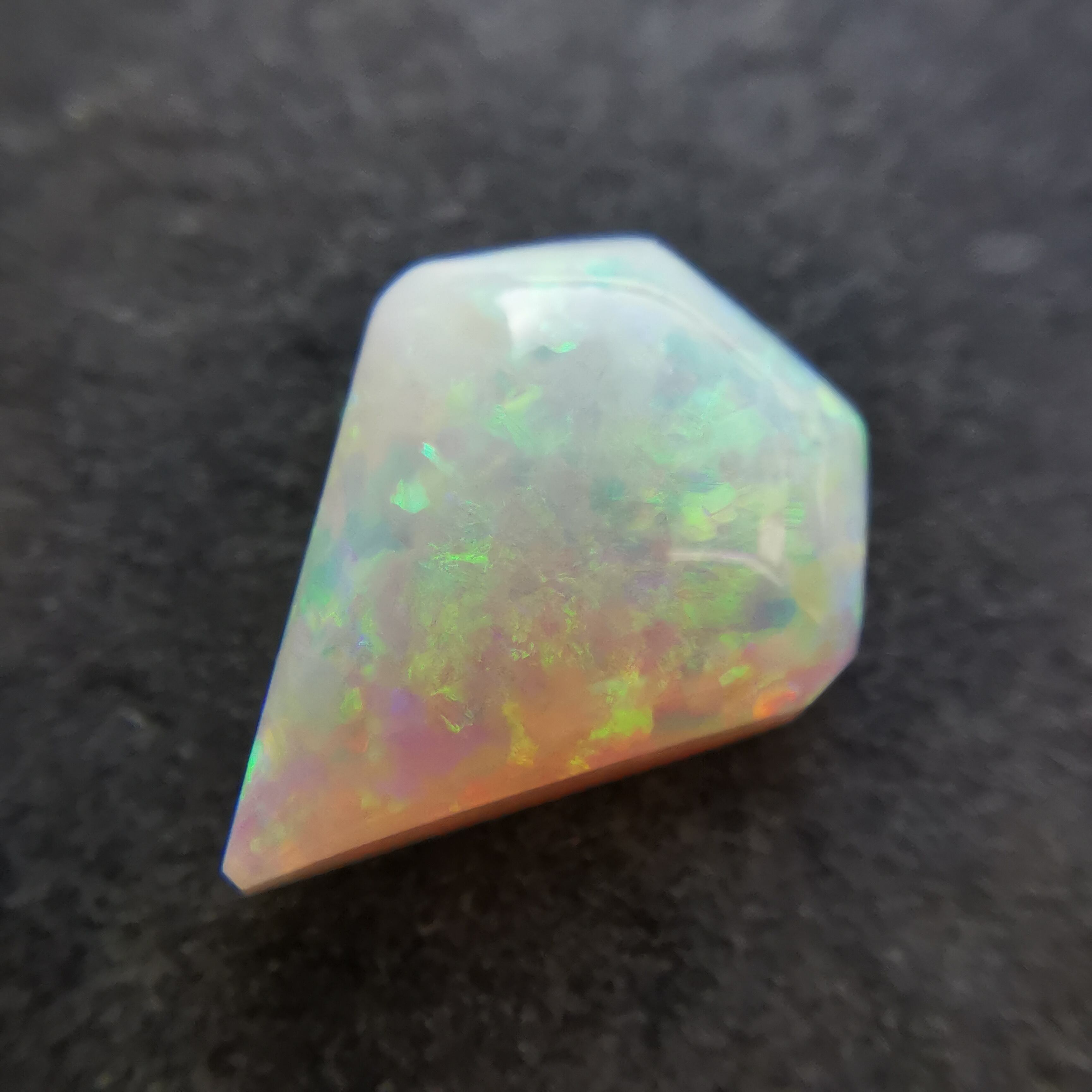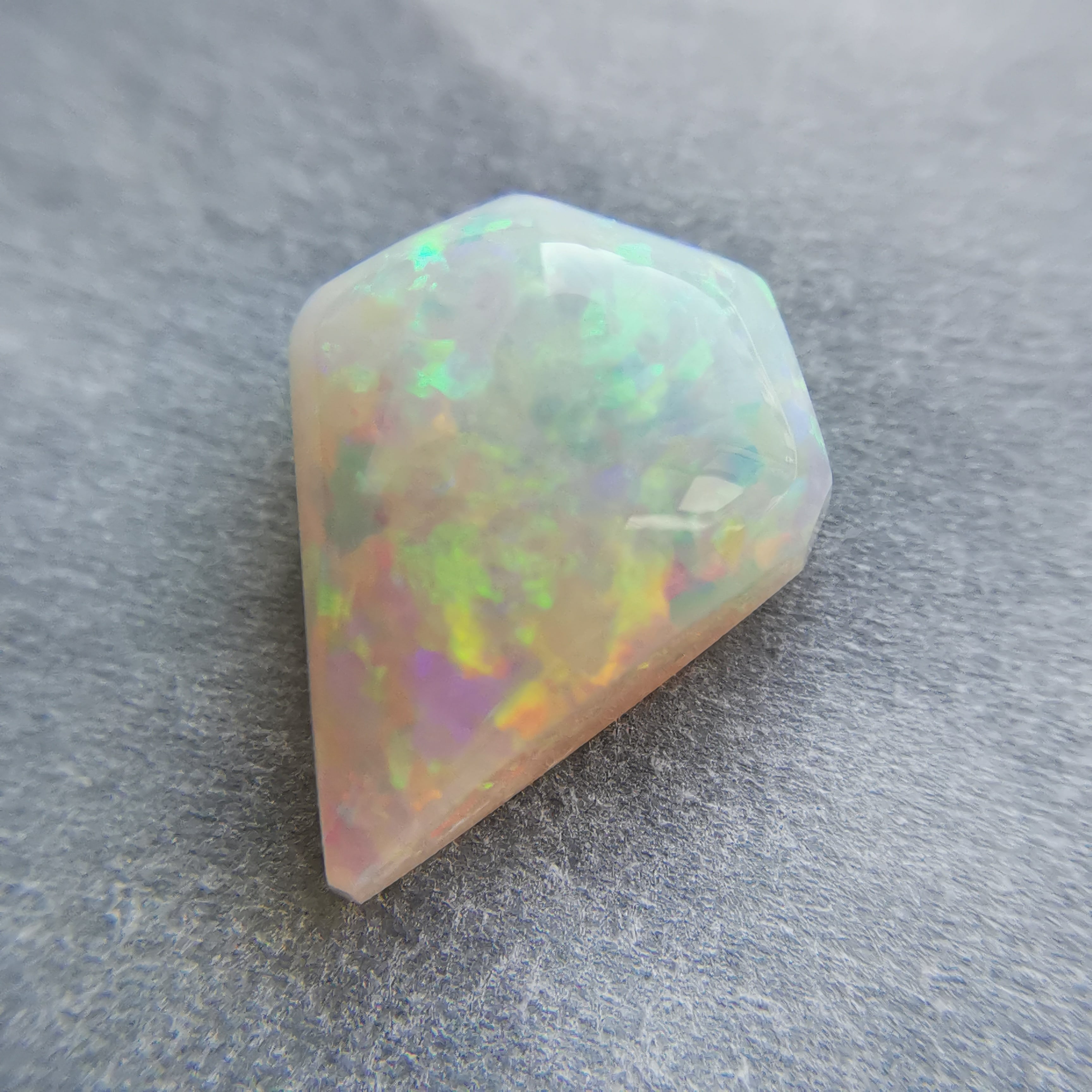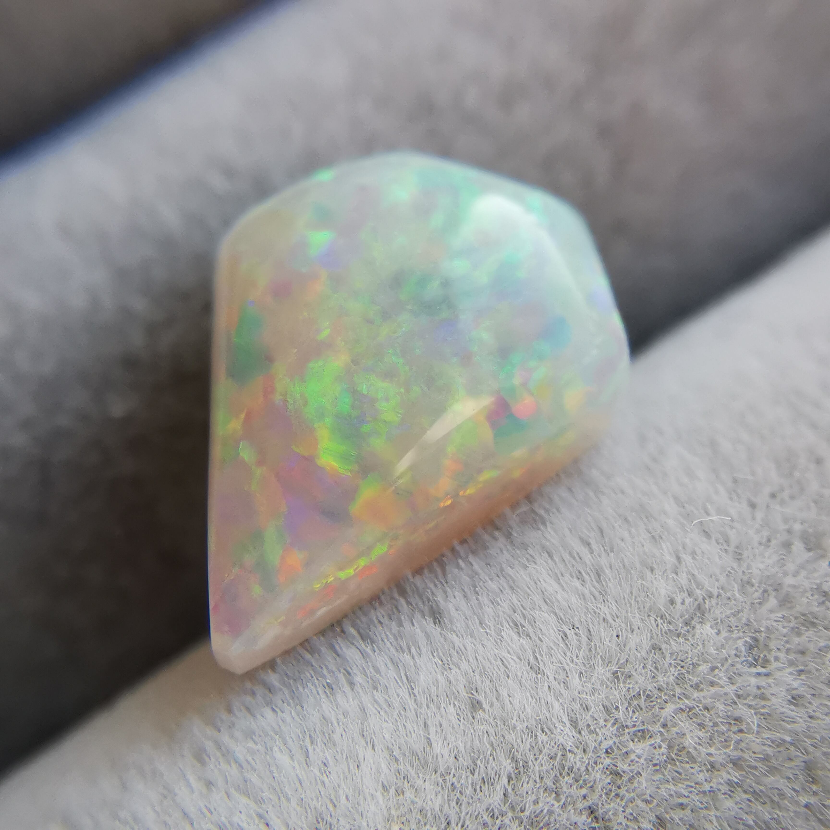 柔らかいオパールを、鋭角部分の多いジュエルシェイプのファセットカットにするのは少し心配になりますが、しっかりと厚みのあるカボションカットなら安心です。