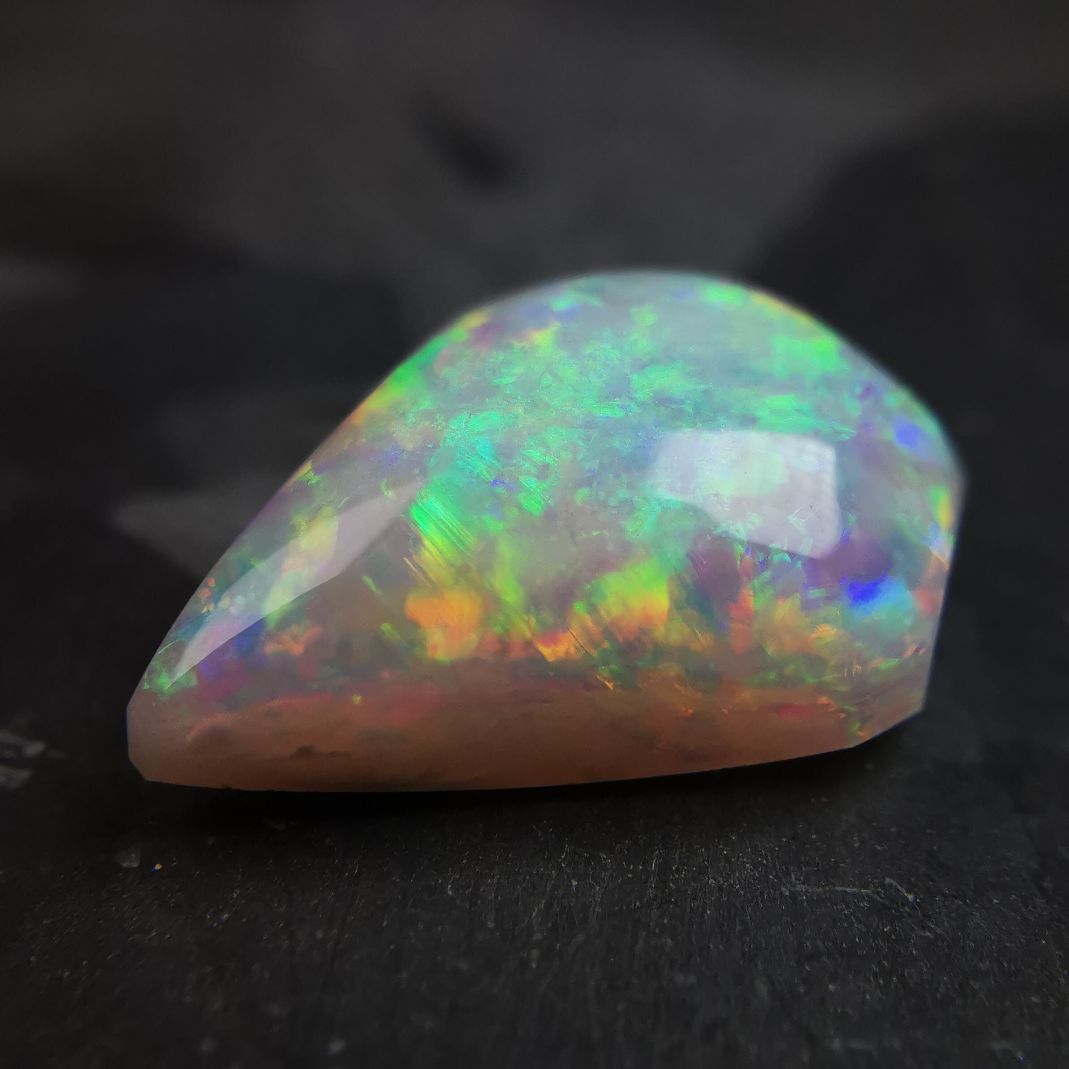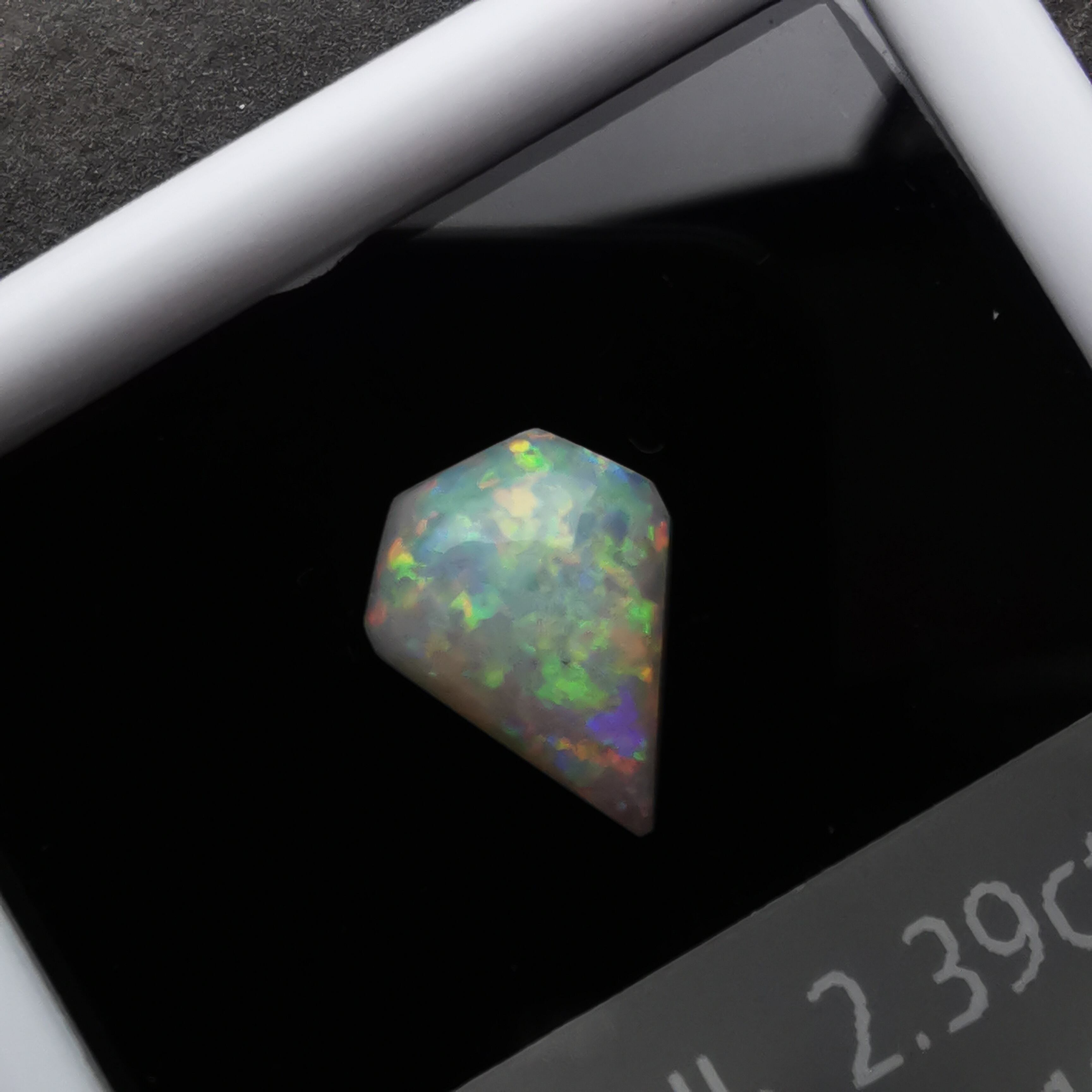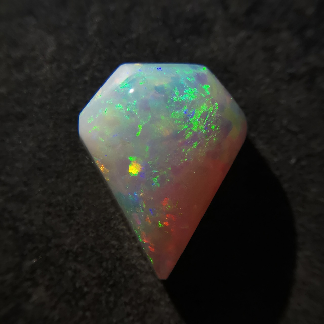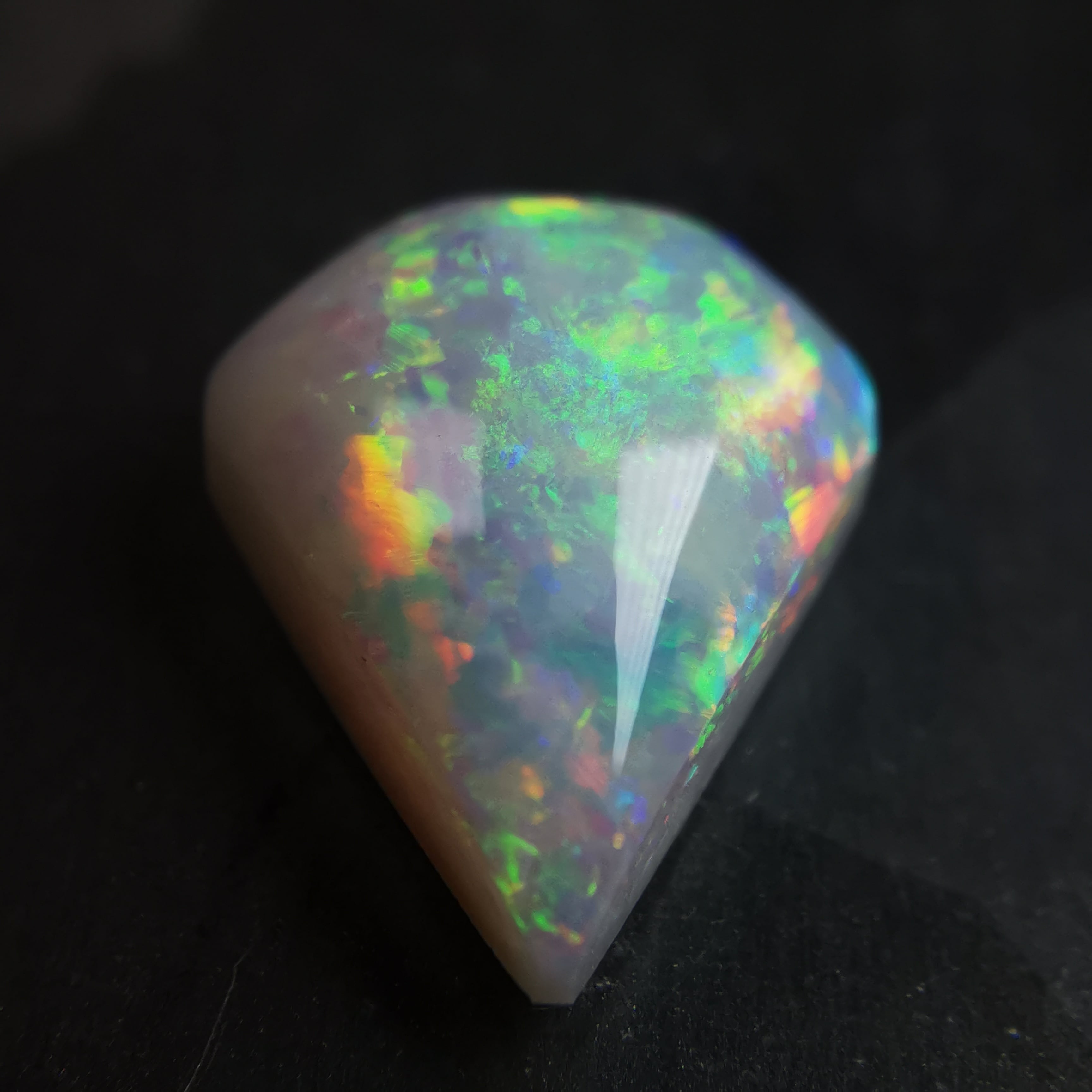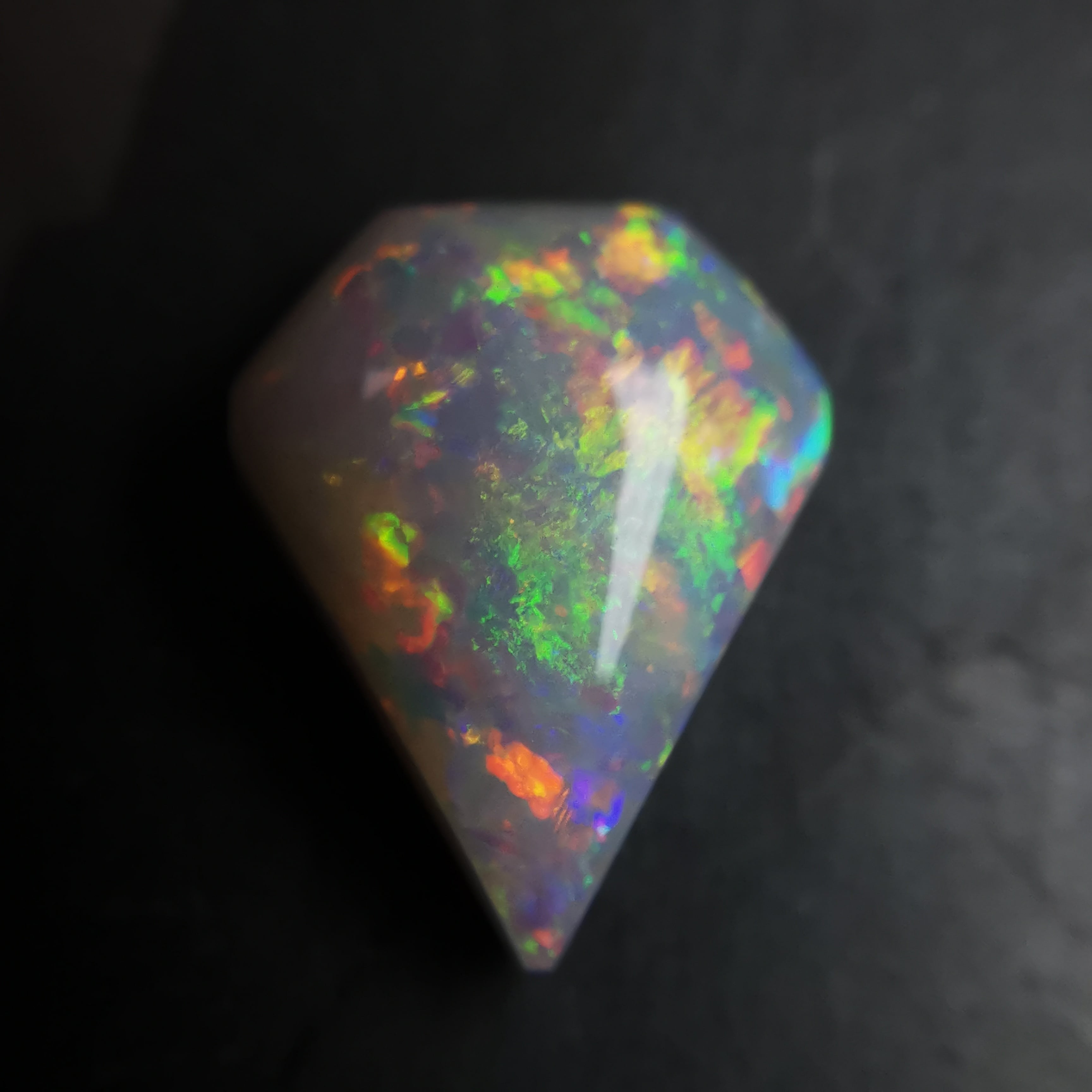 柔らかいオパールを、鋭角部分の多いジュエルシェイプのファセットカットにするのは少し心配になりますが、しっかりと厚みのあるカボションカットなら安心です。