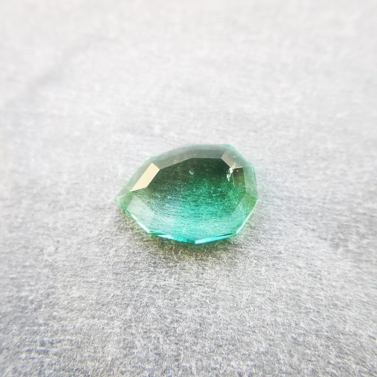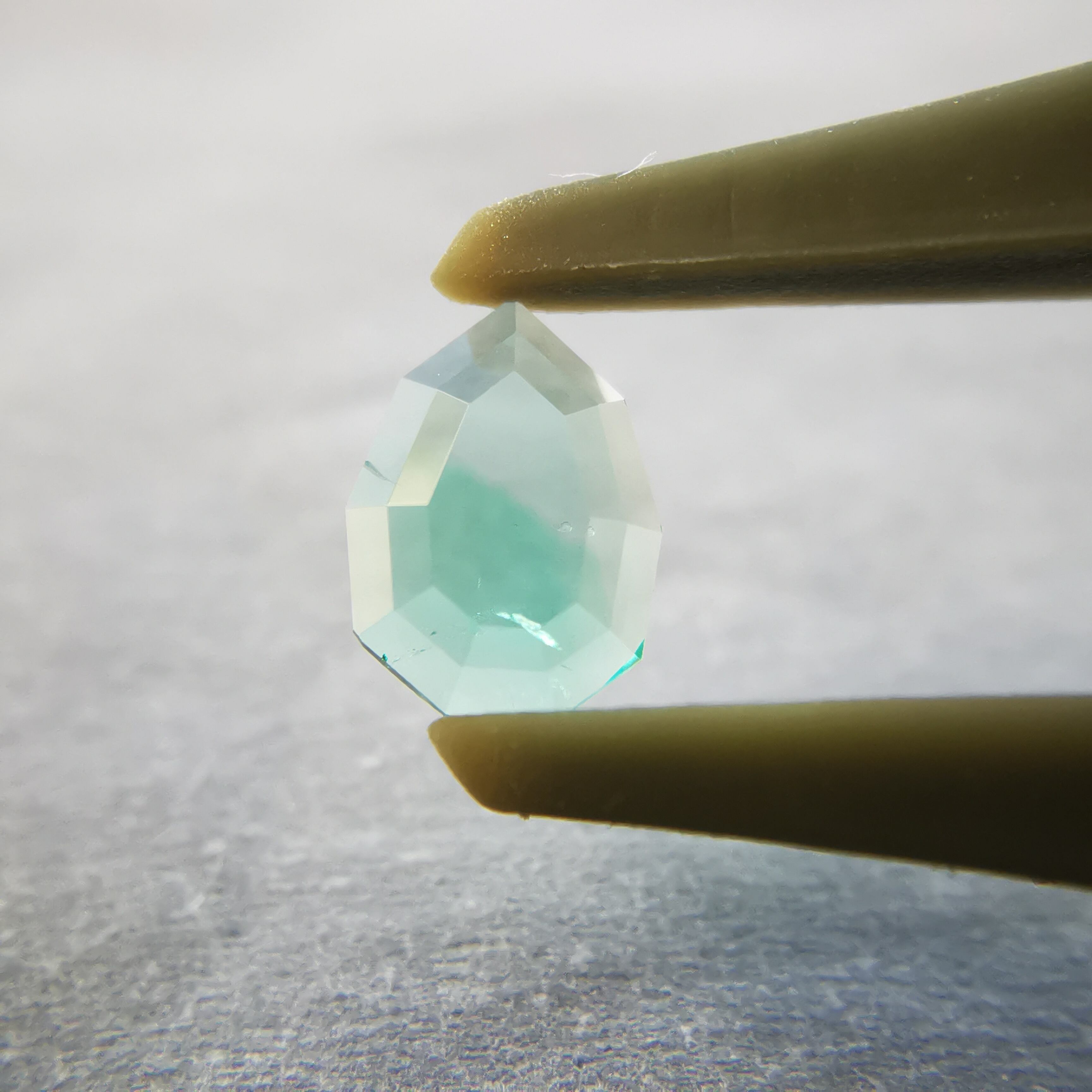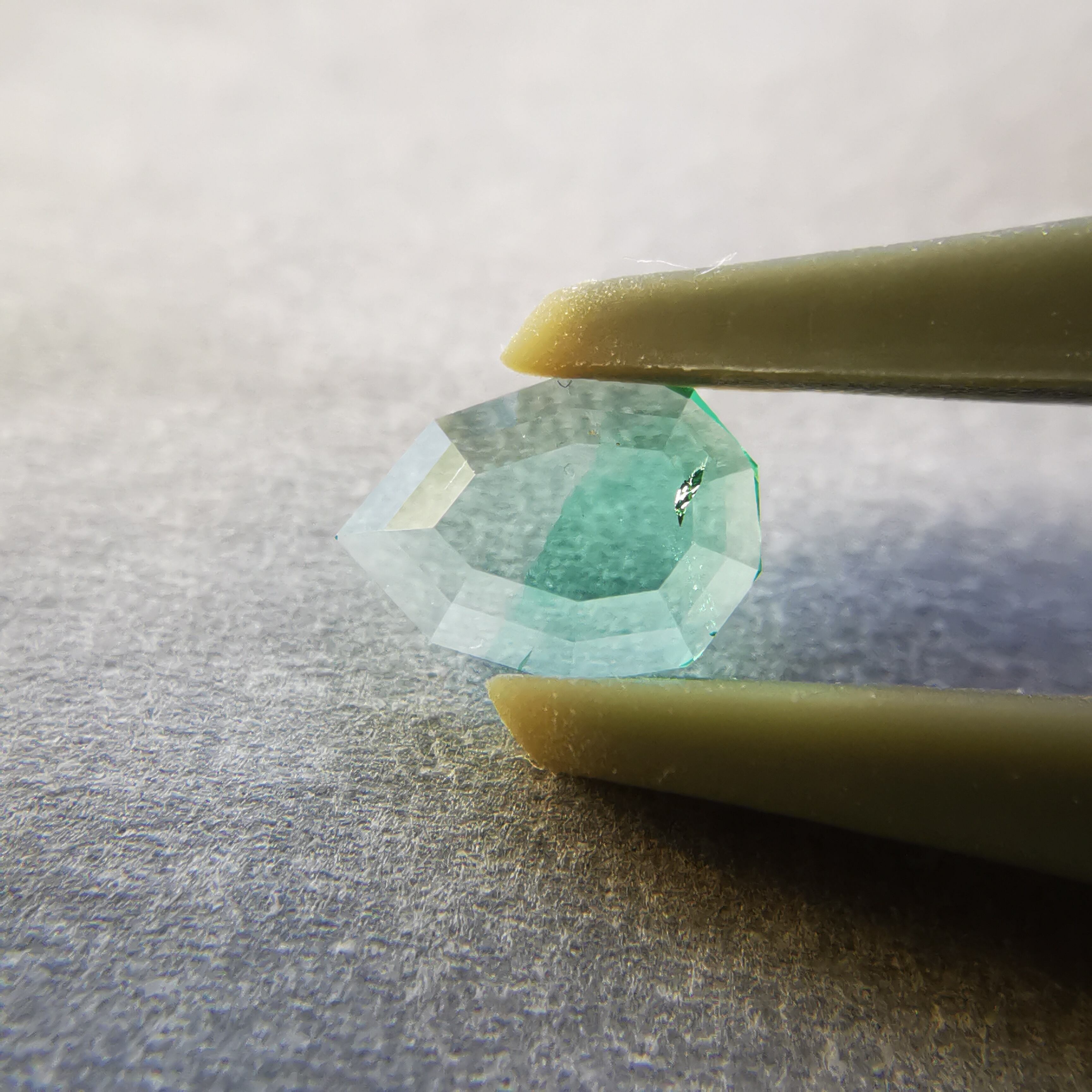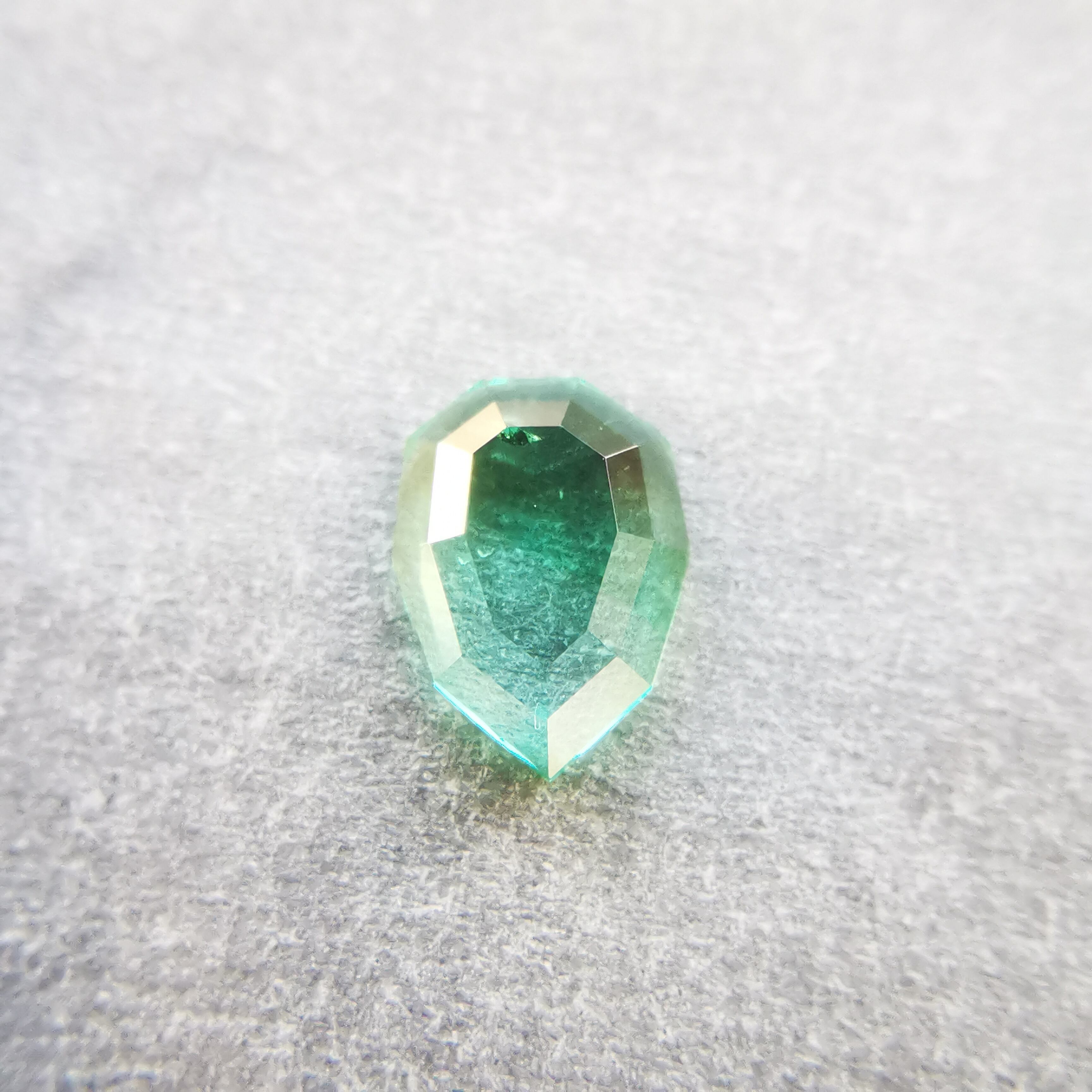元はファセットカットのエメラルドで、よくよく見るとバイカラーであることに気が付きました。