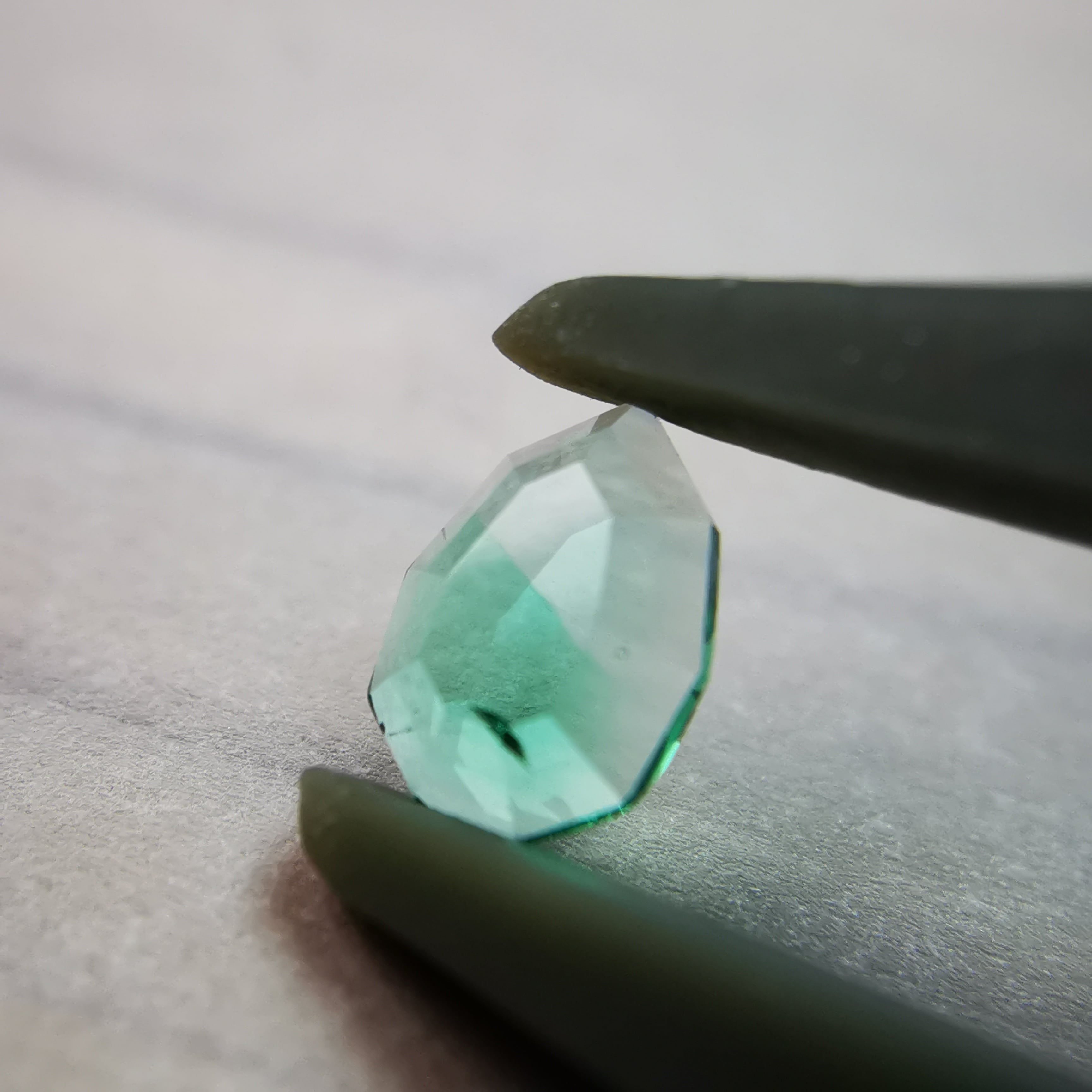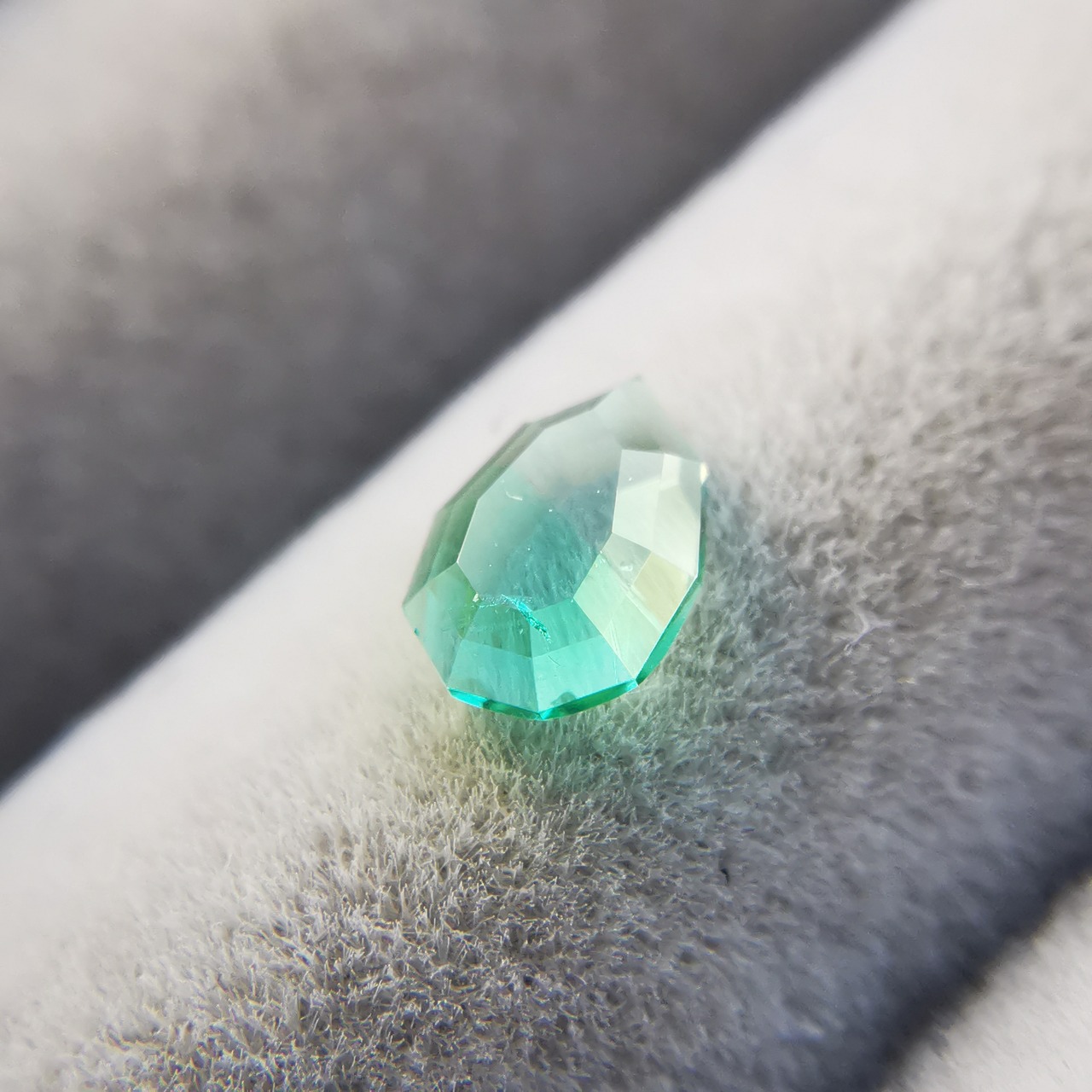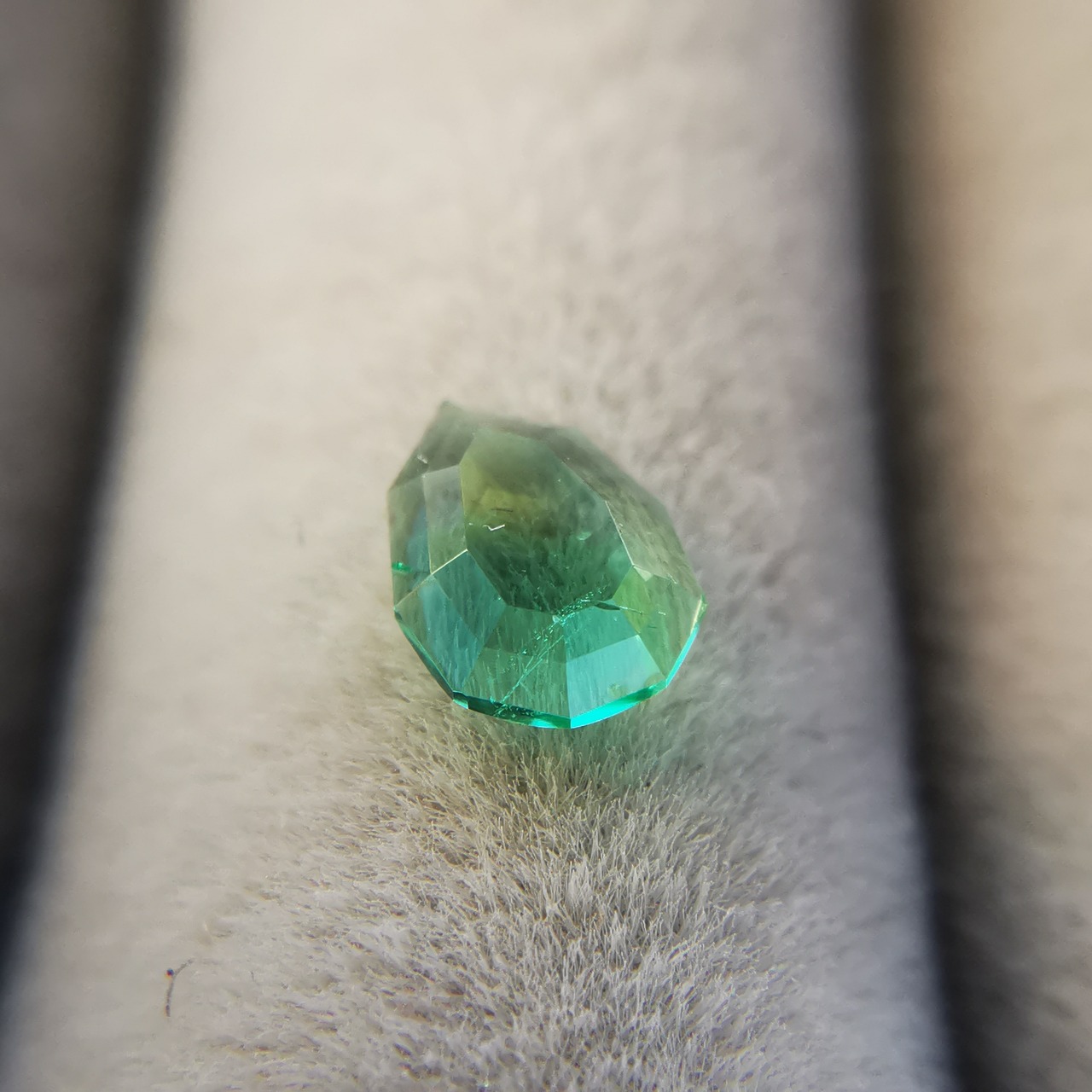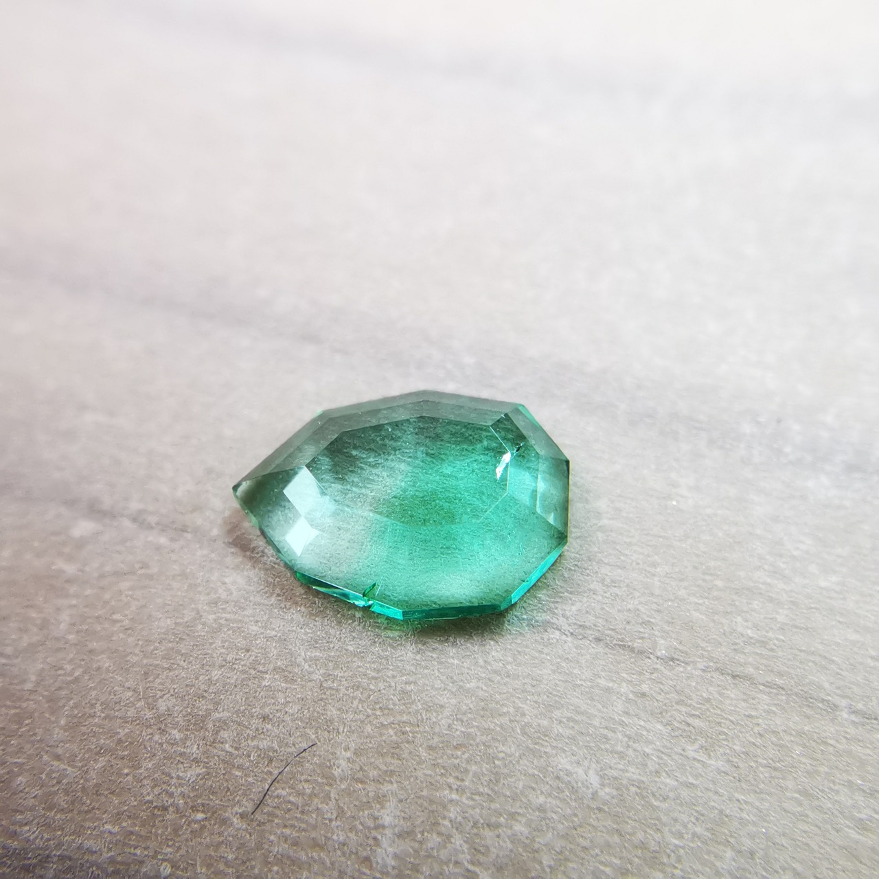 元はファセットカットのエメラルドで、よくよく見るとバイカラーであることに気が付きました。