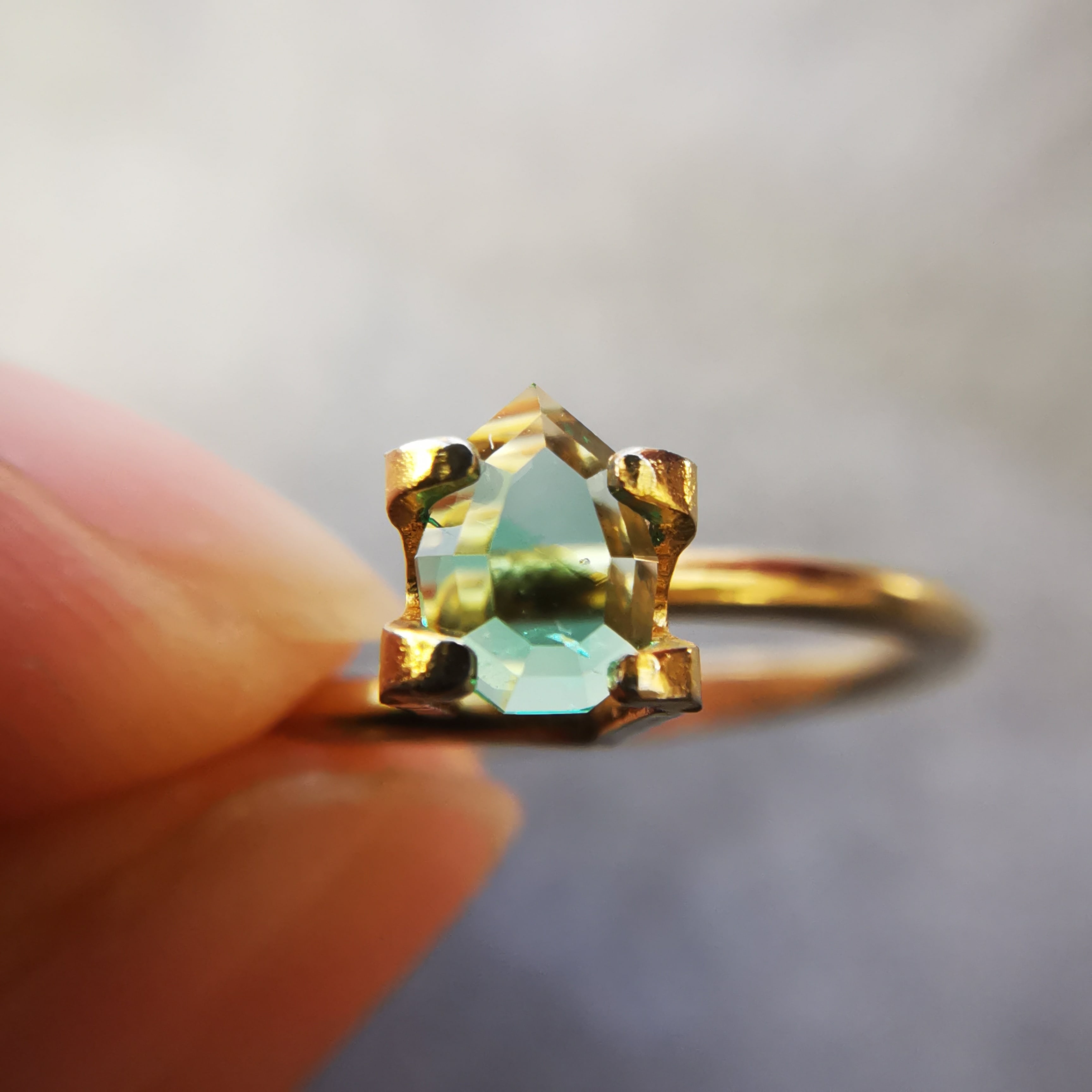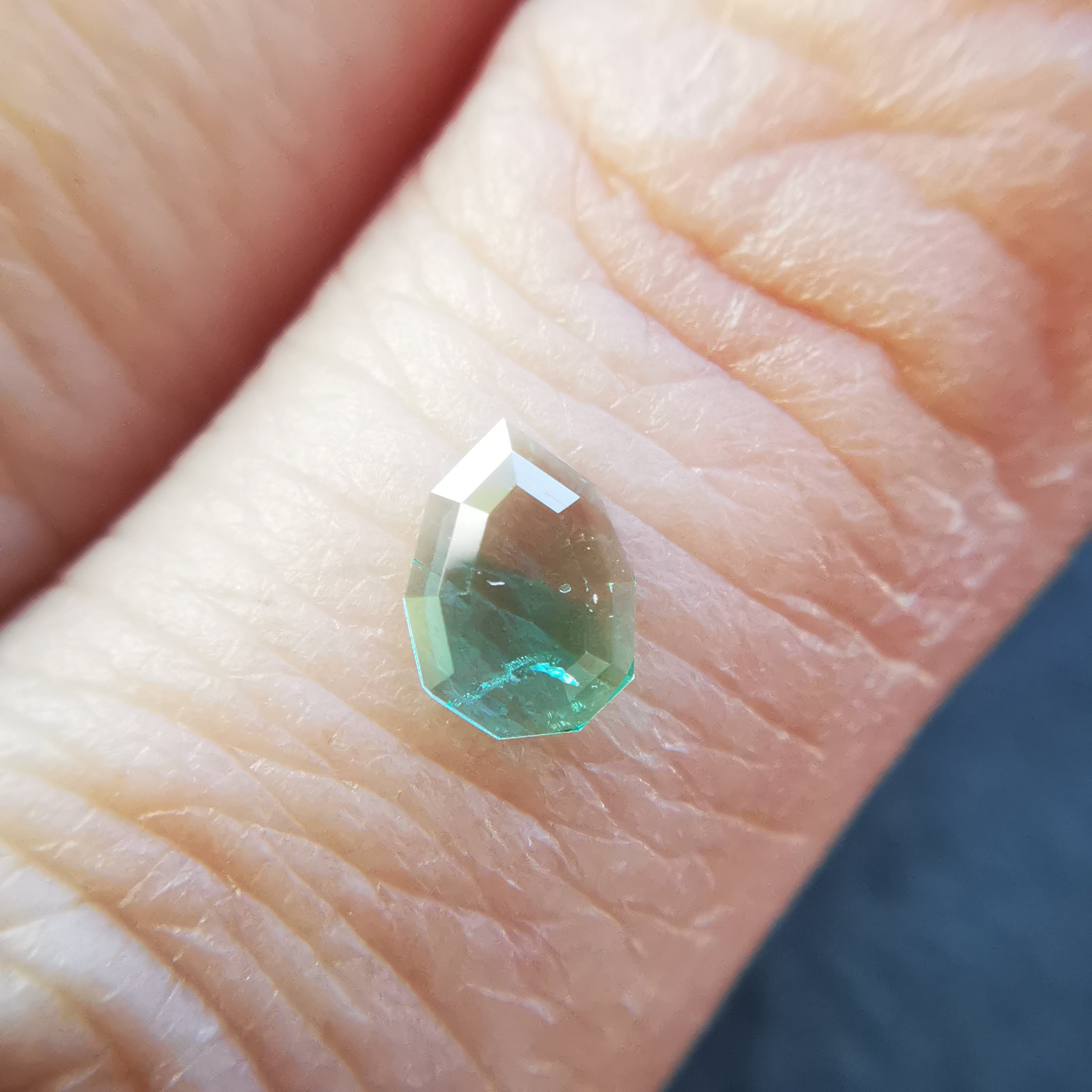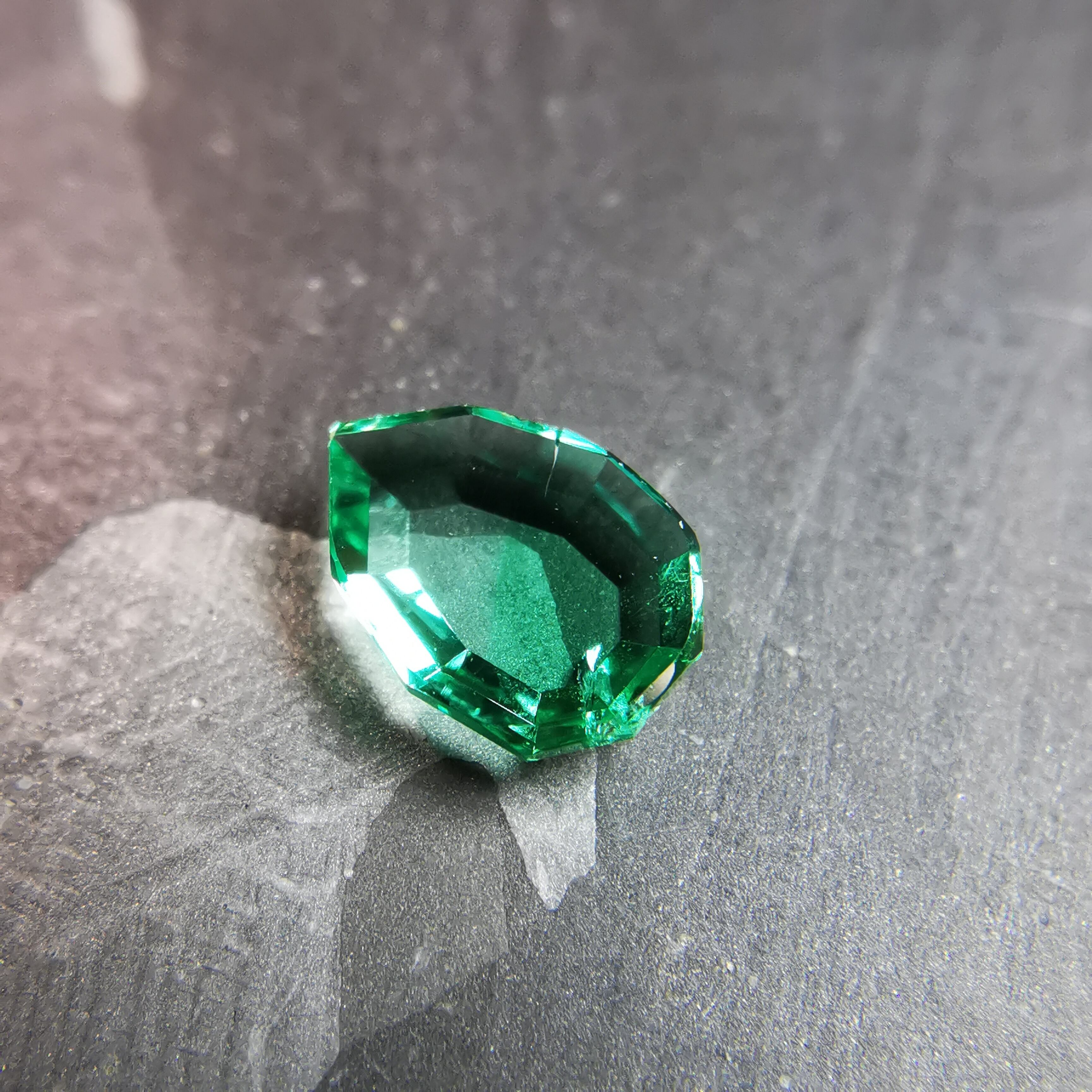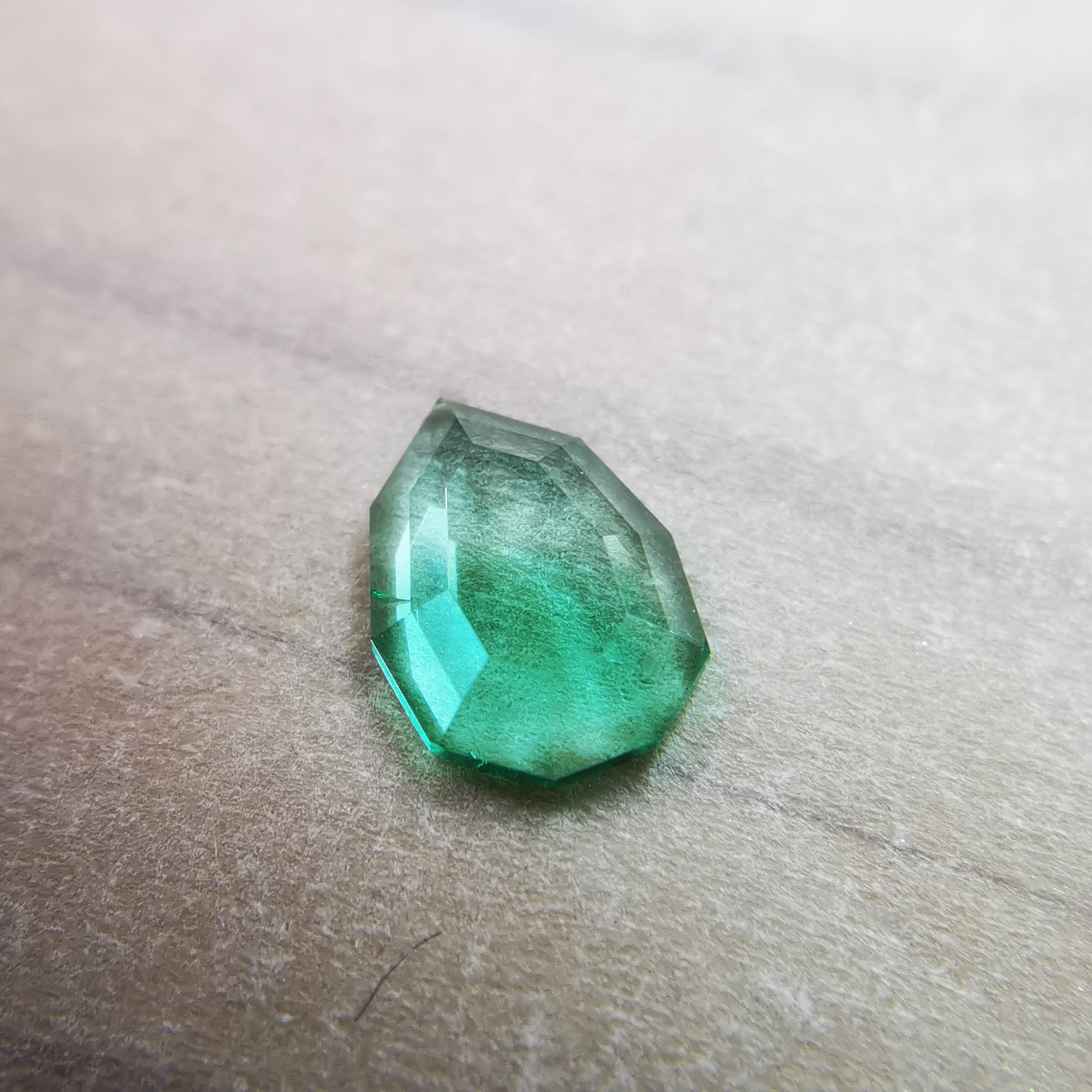 元はファセットカットのエメラルドで、よくよく見るとバイカラーであることに気が付きました。