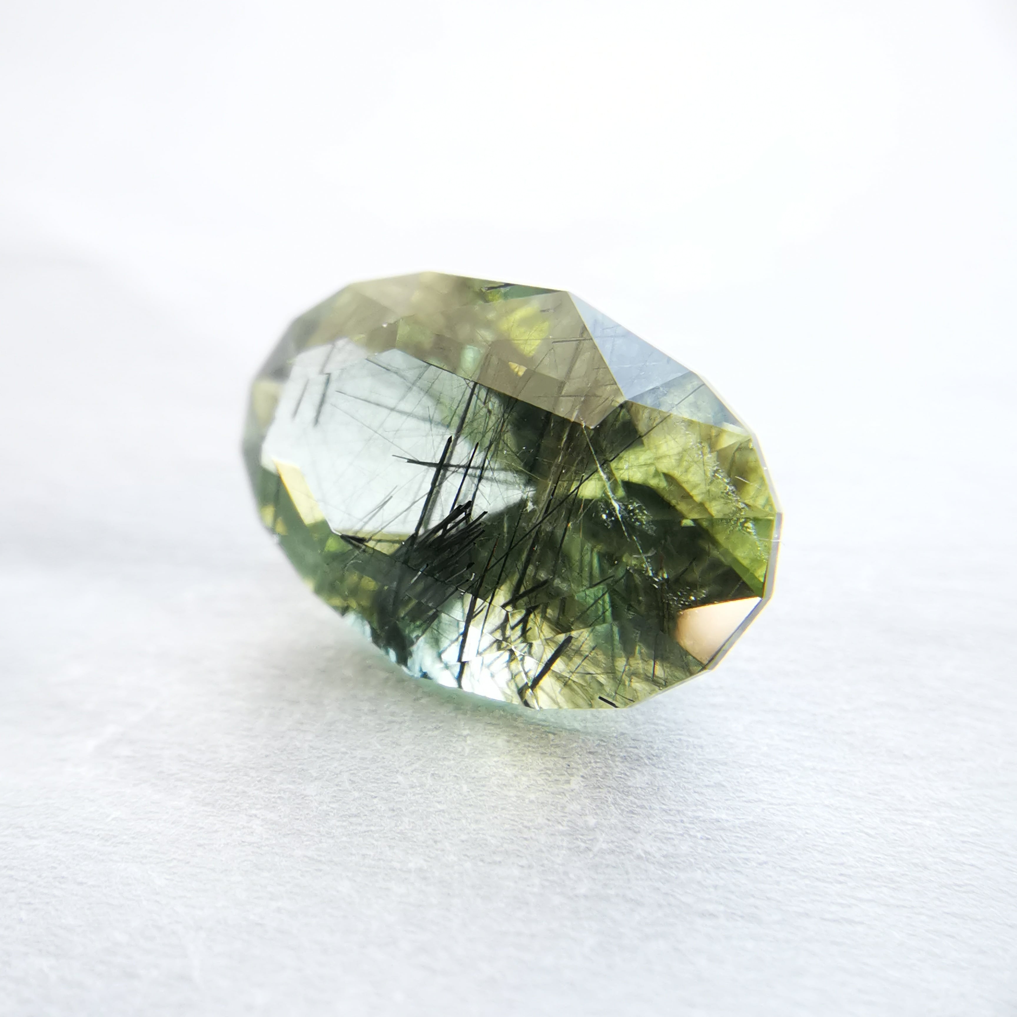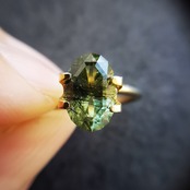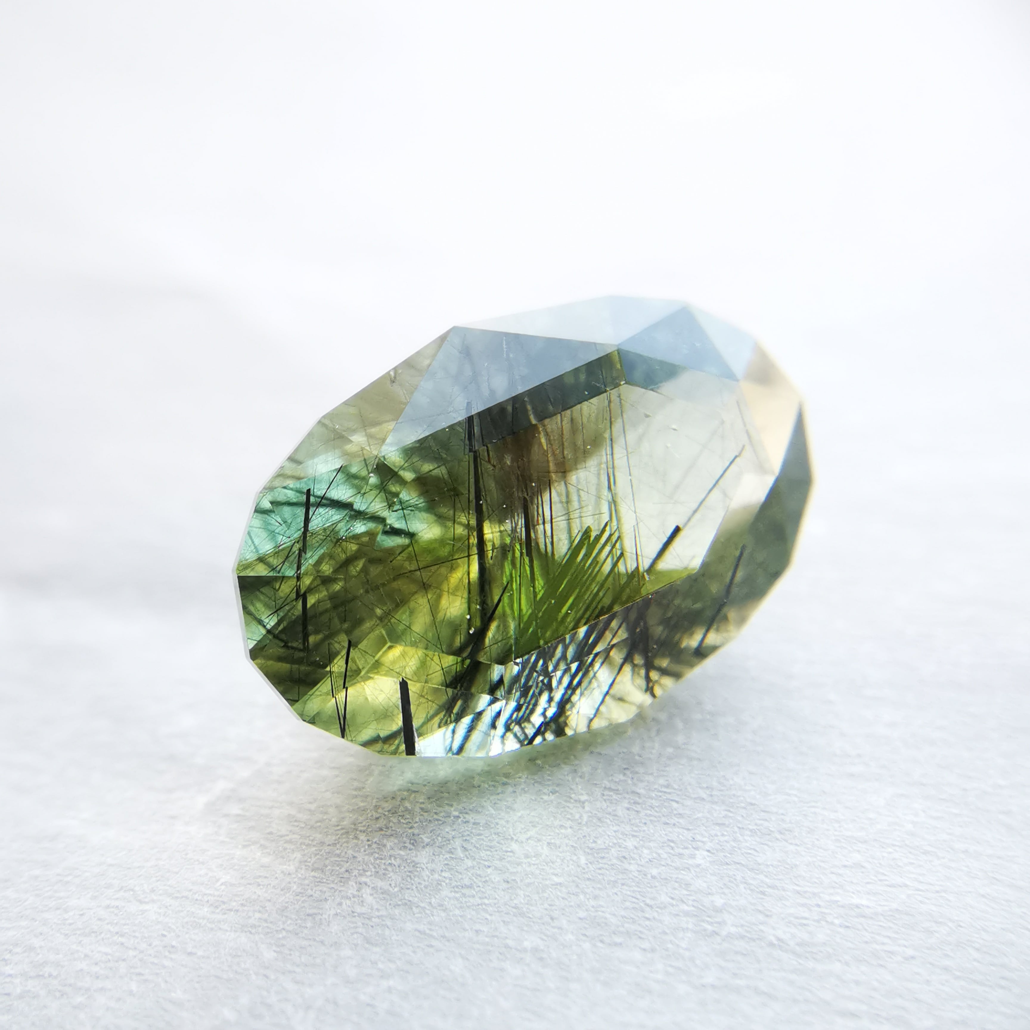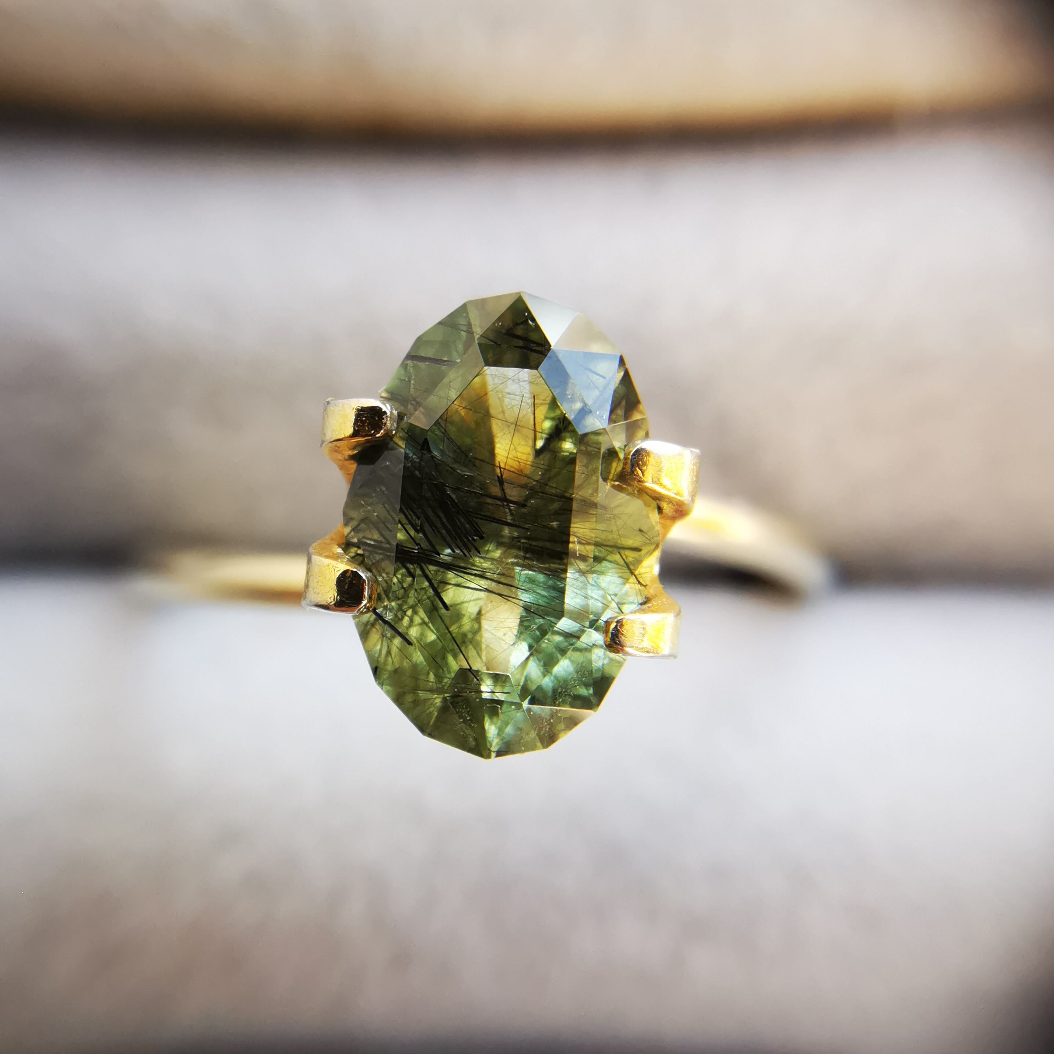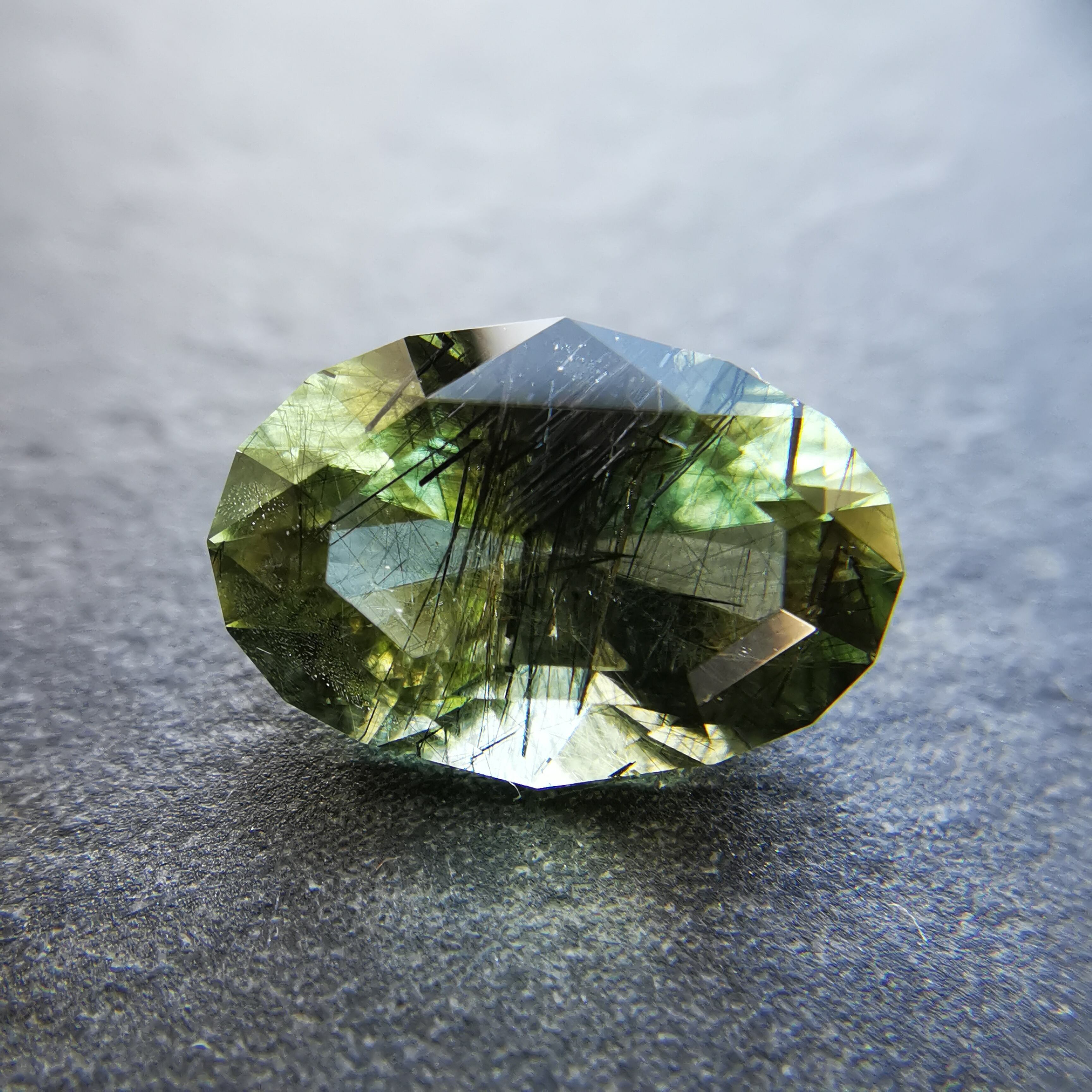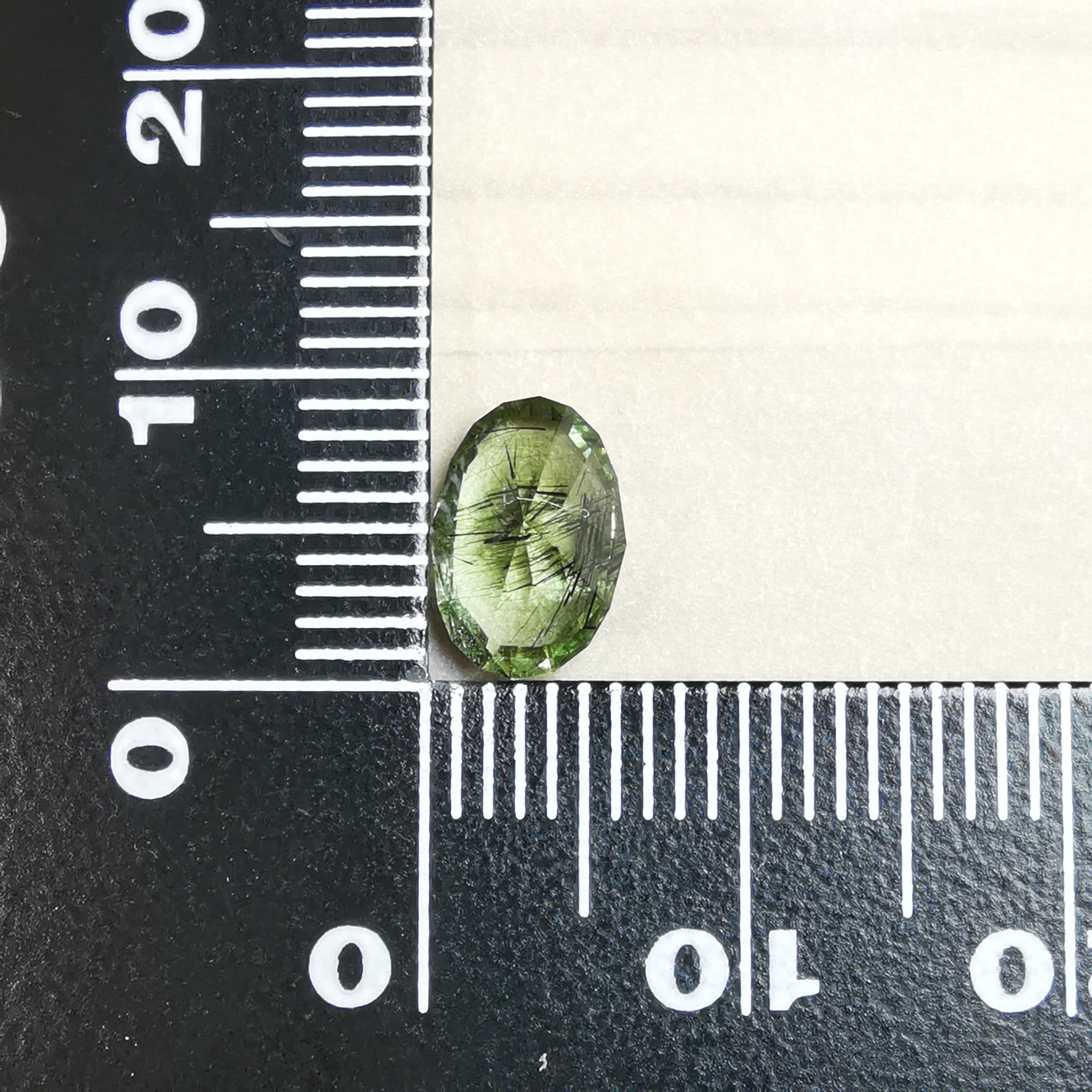 松葉色のペリドットに黒い針状のインクルージョン、ルドヴィジャイトがたっぷり入りました。