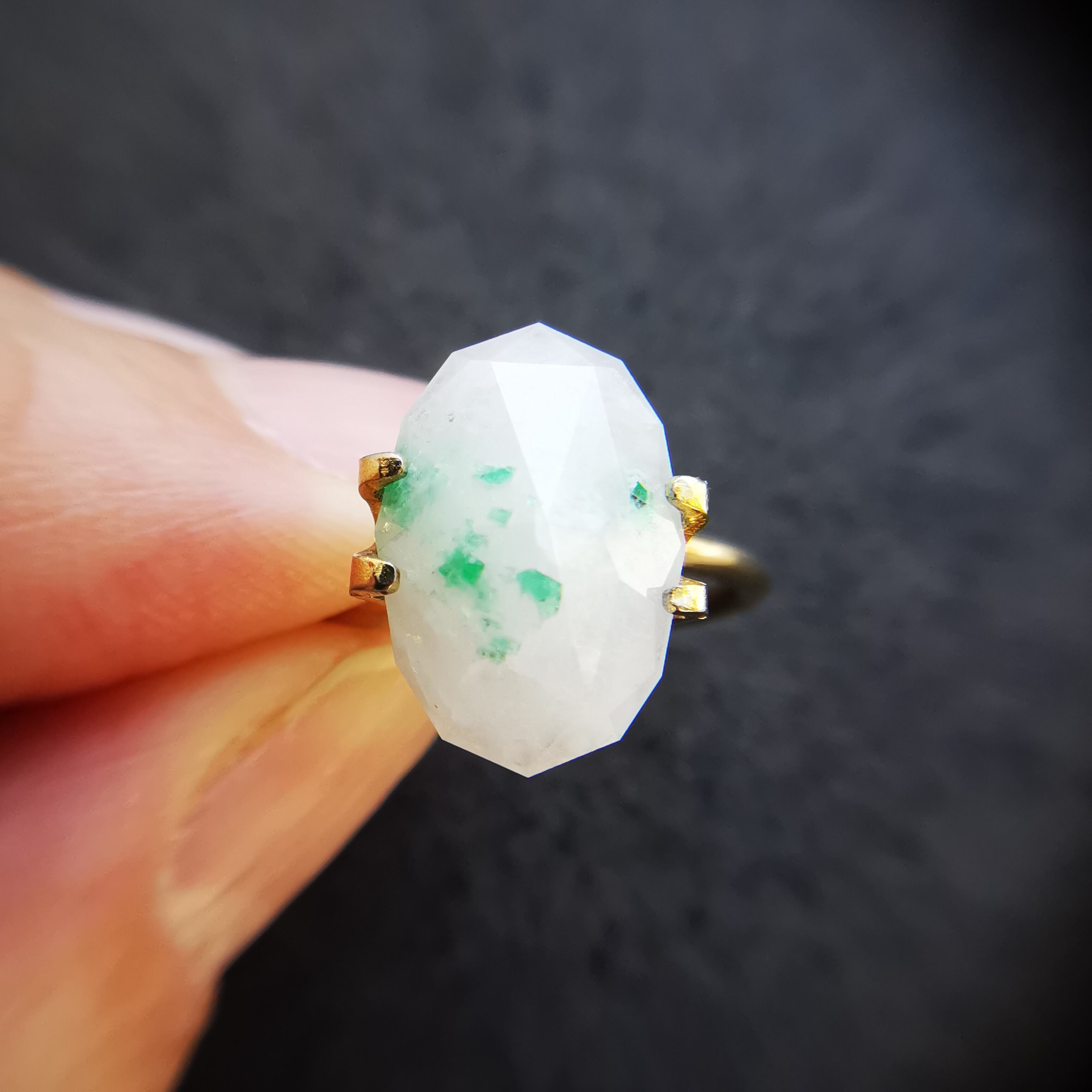 雪のような白さと、ごくわずかに透明感も感じられる鮮やかなエメラルド、目が覚めるような色のコントラストです。