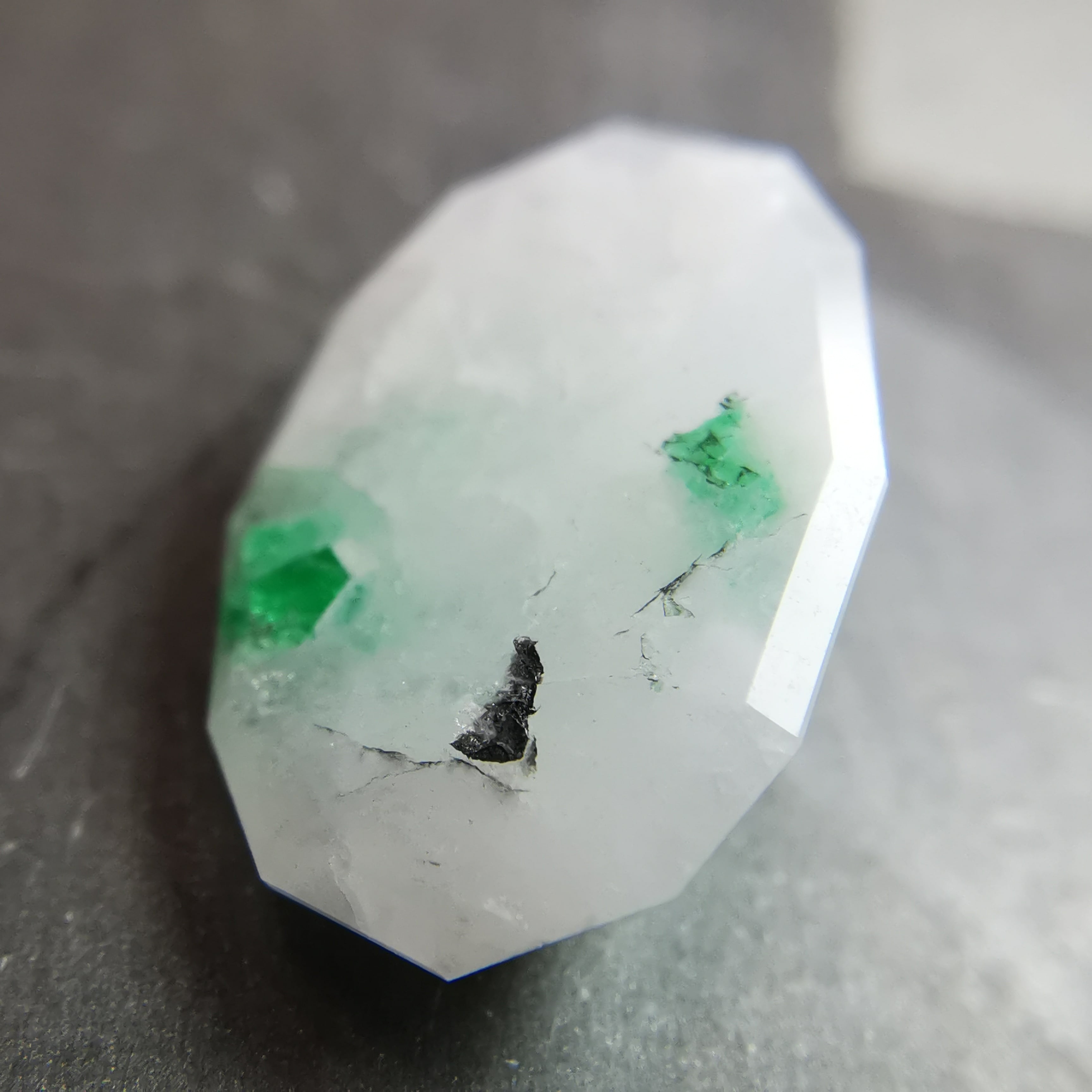エメラルドの他に肉眼で見える黒っぽいインクルージョンあり
