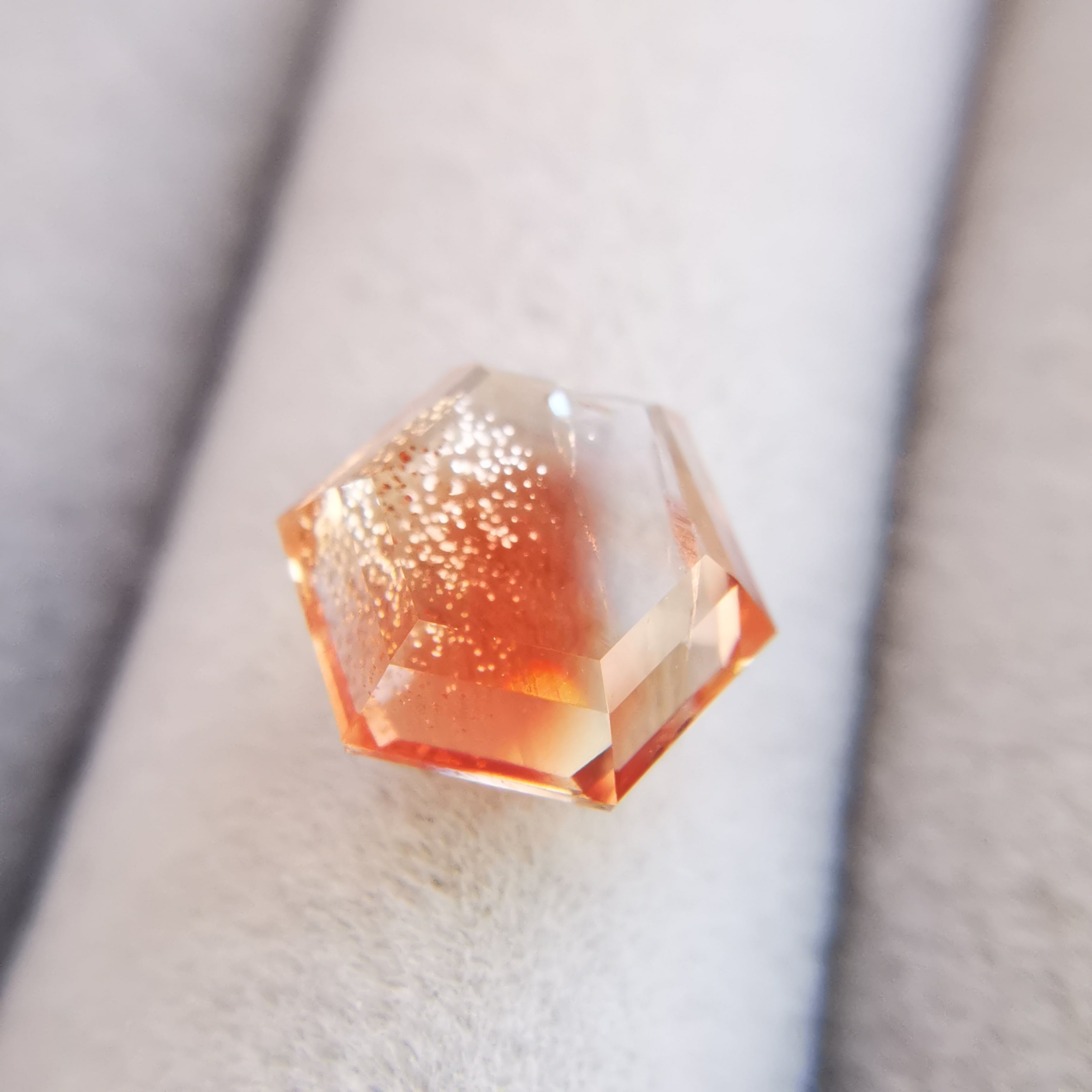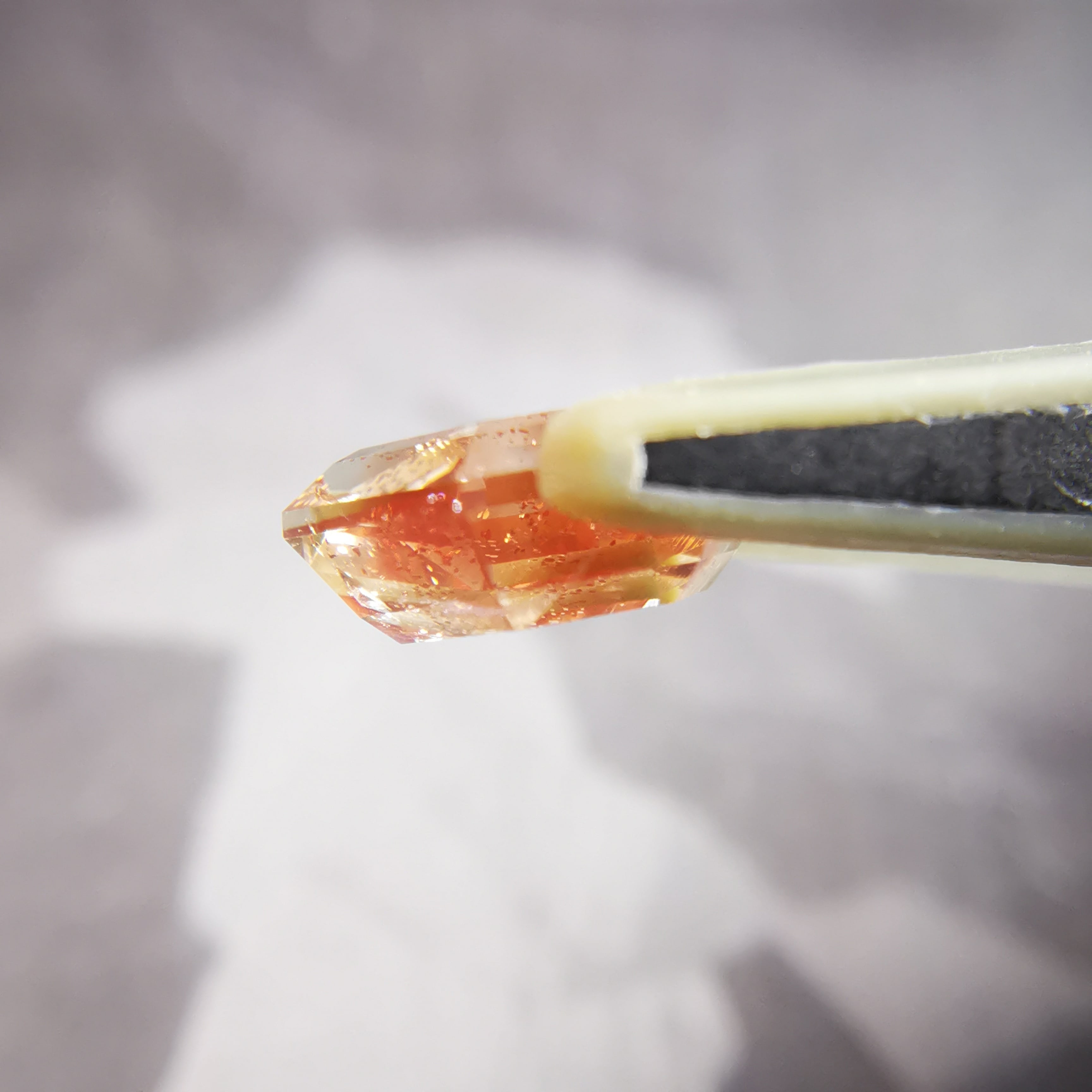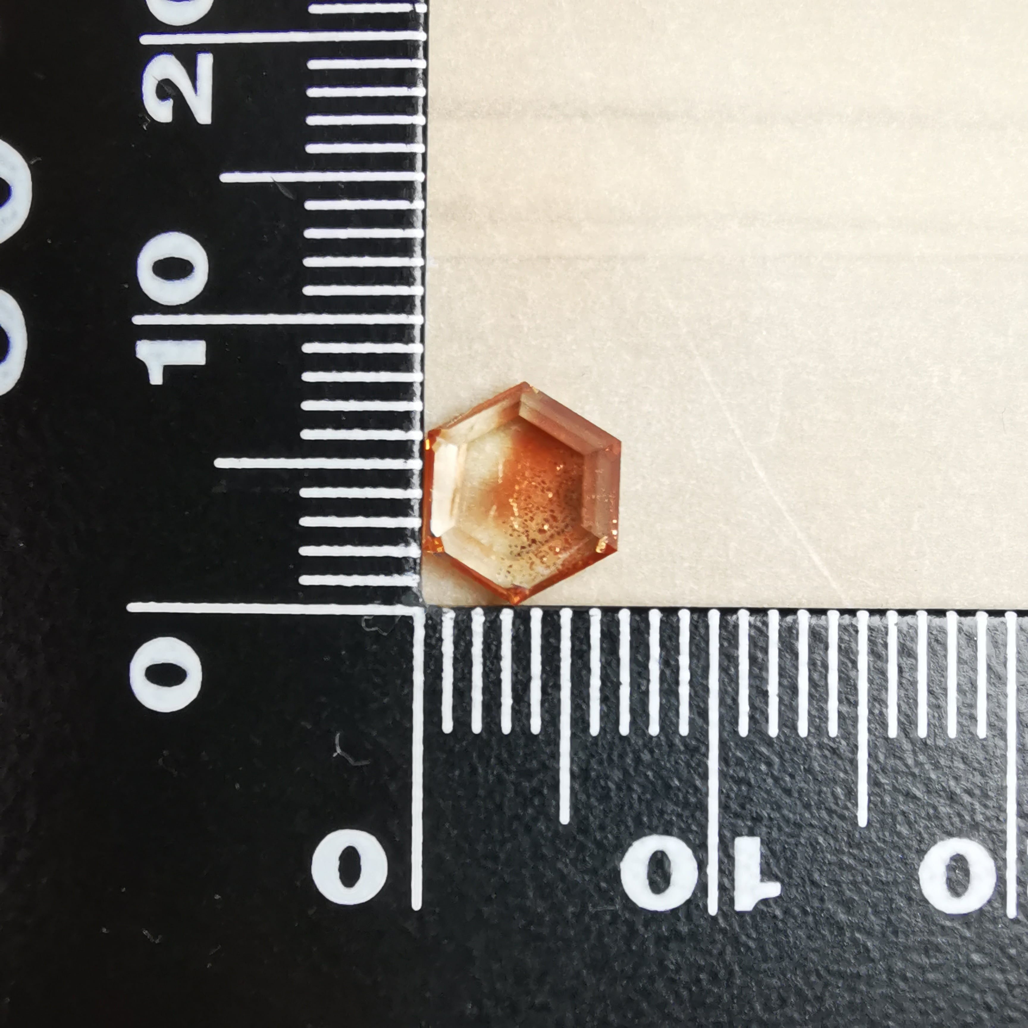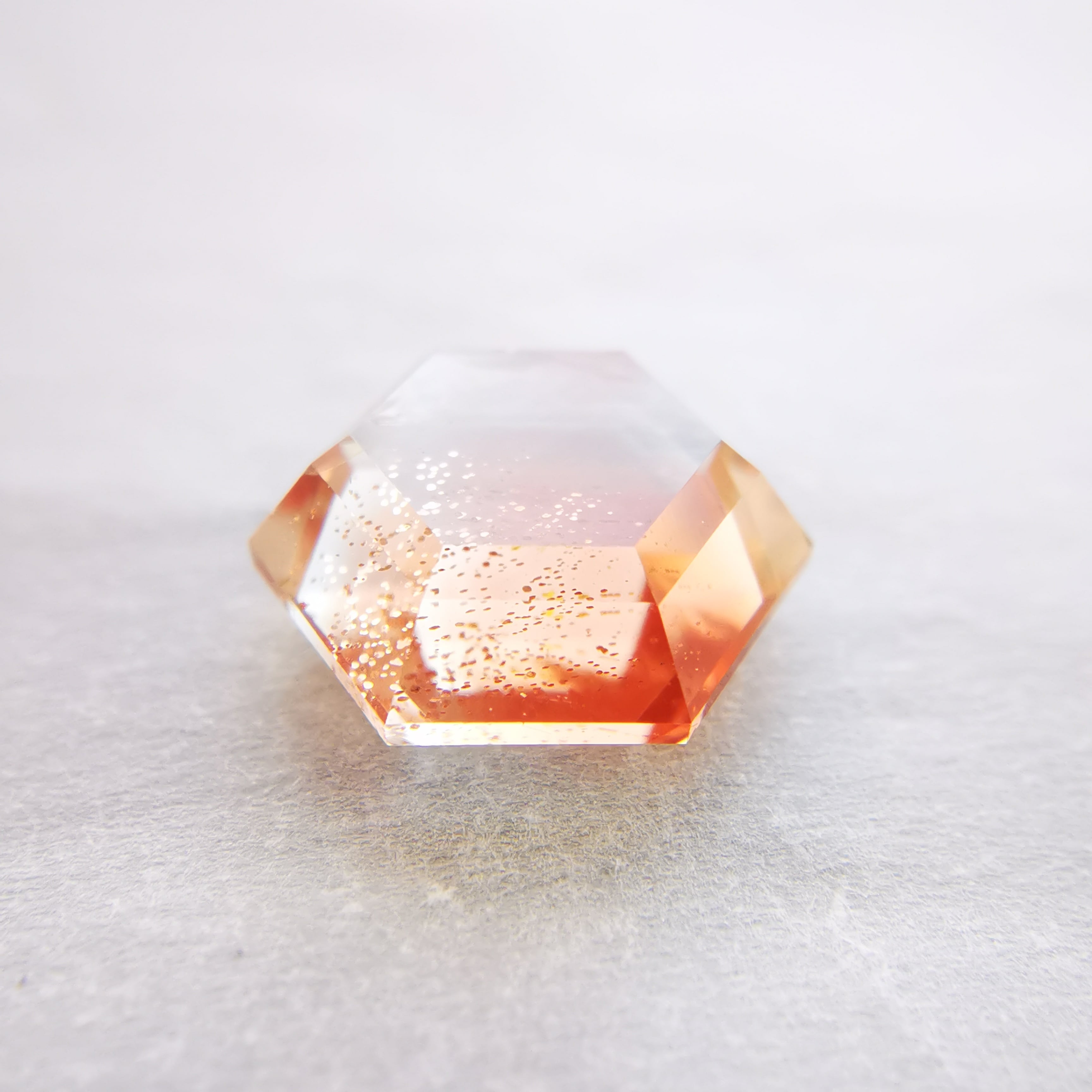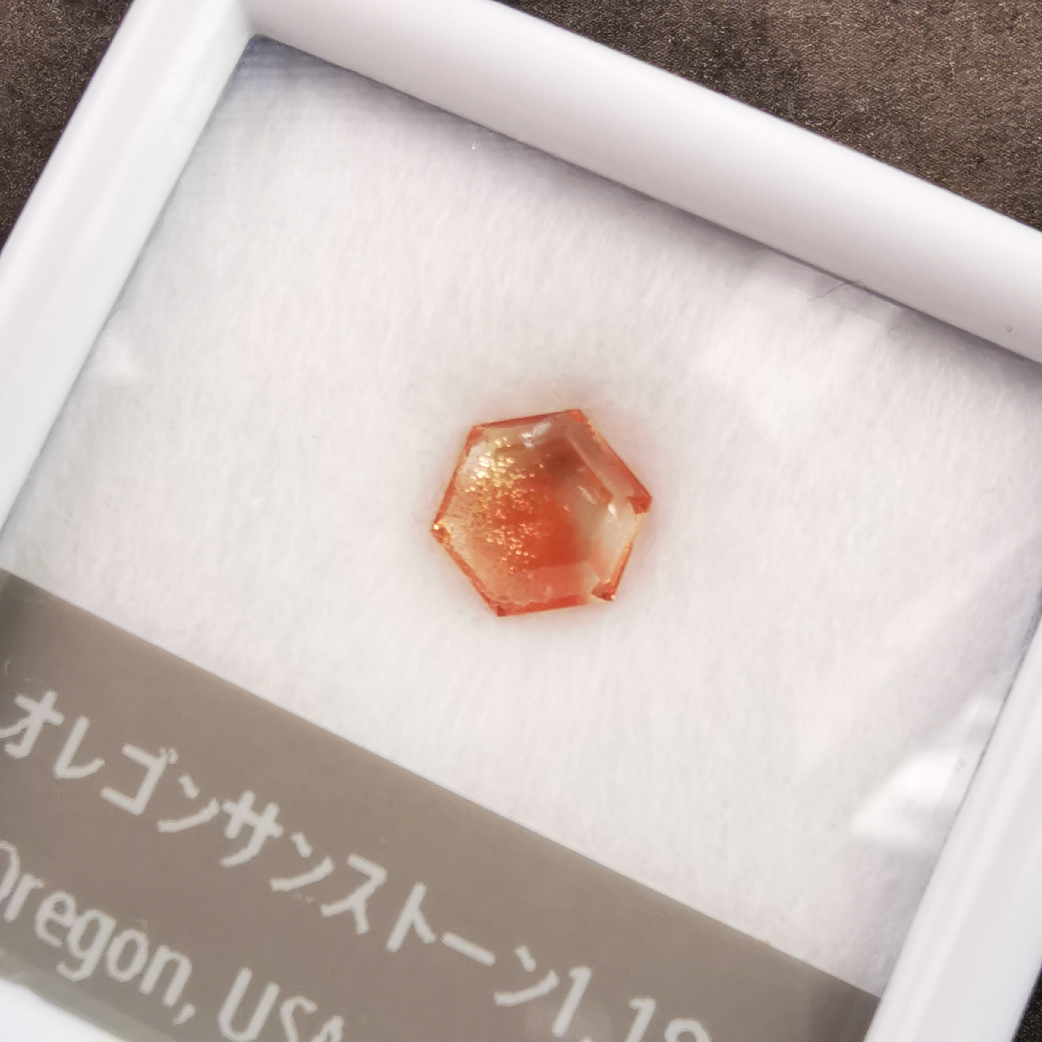 オレゴンサンストーン特有の色の偏りをそのまま楽しみたくて、原石のロットを全てフラットバックカットにした中から、今回一石をピックアップしました。