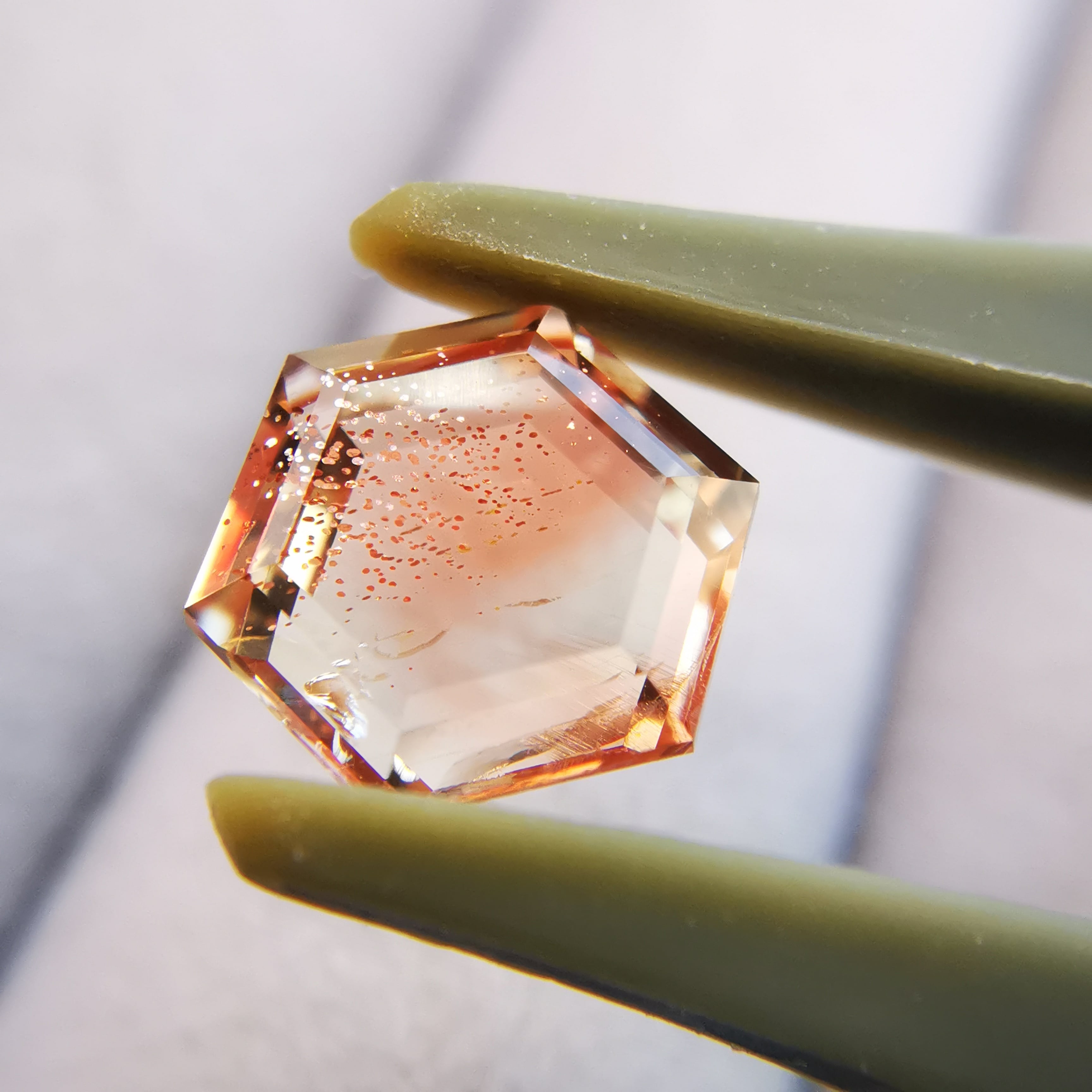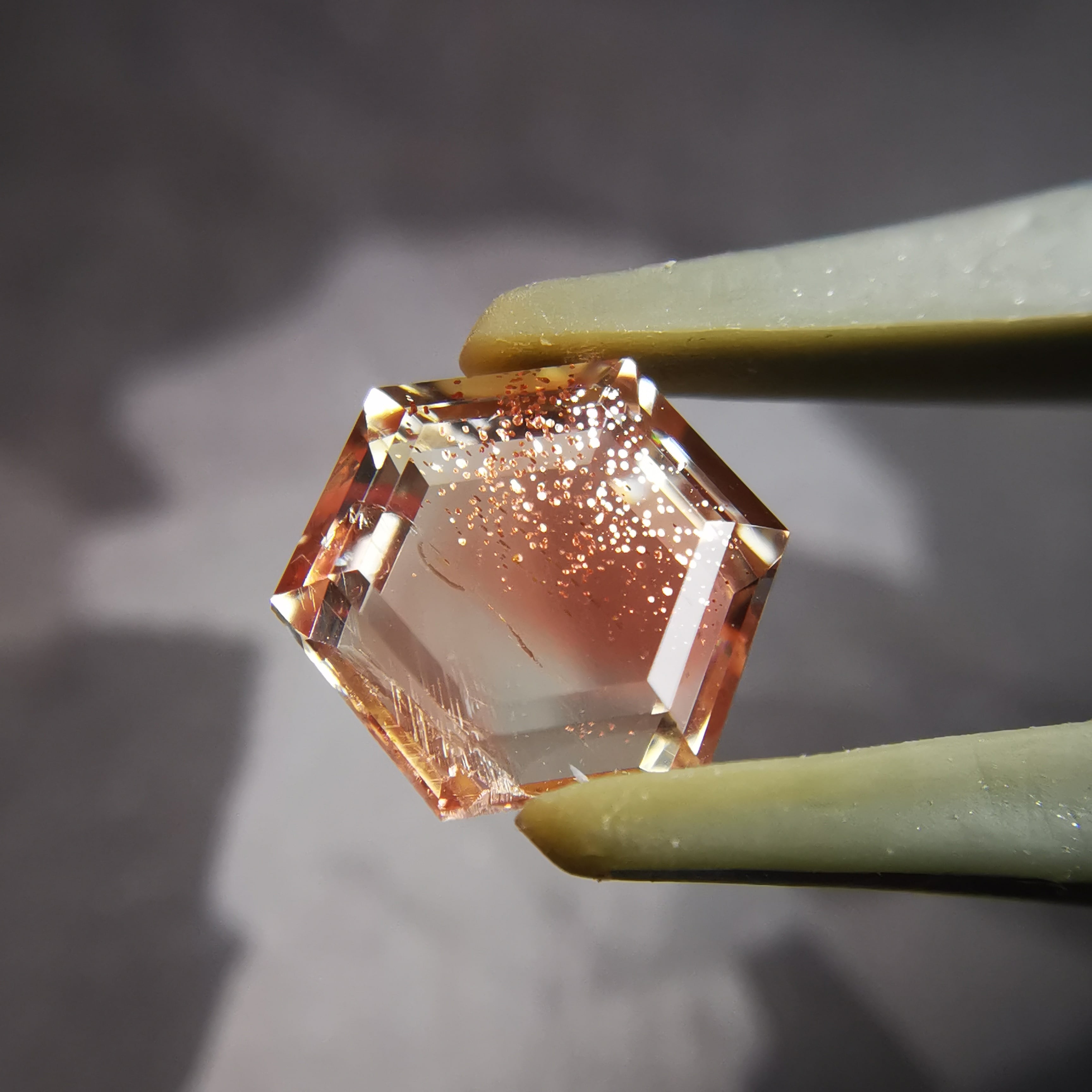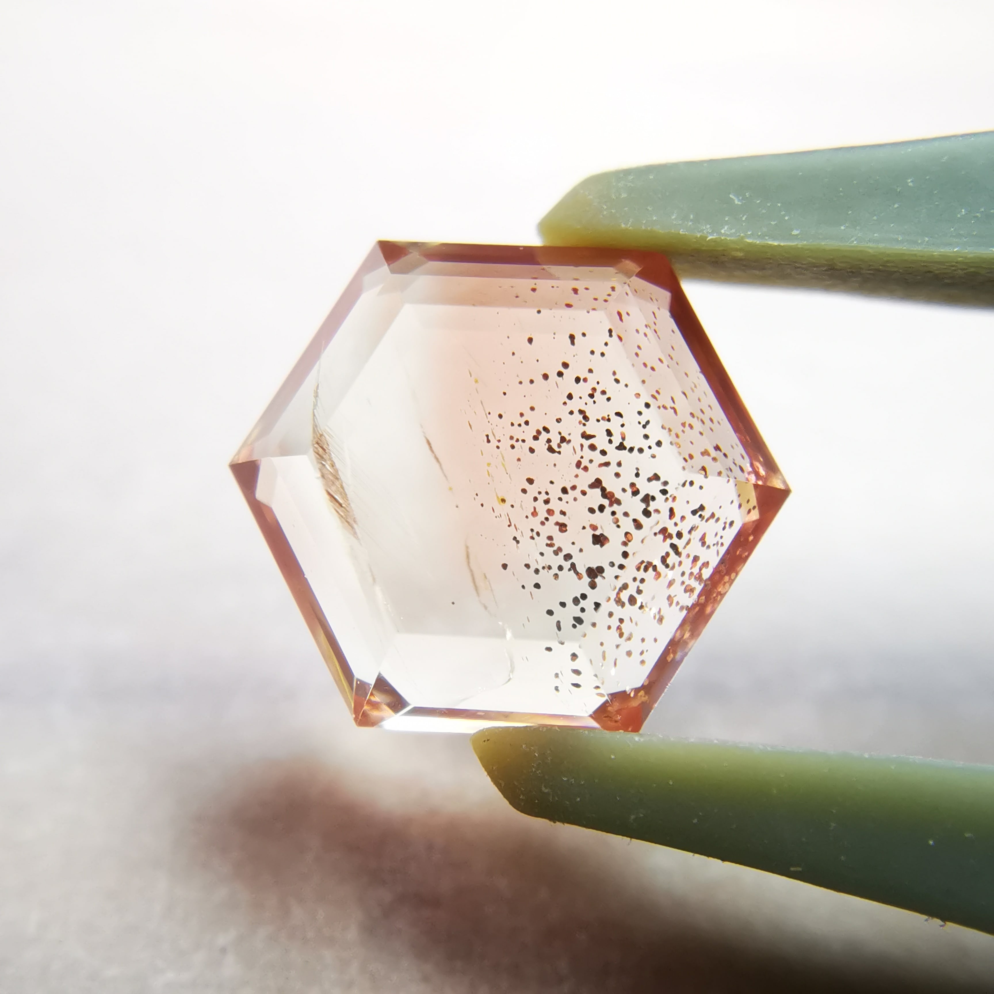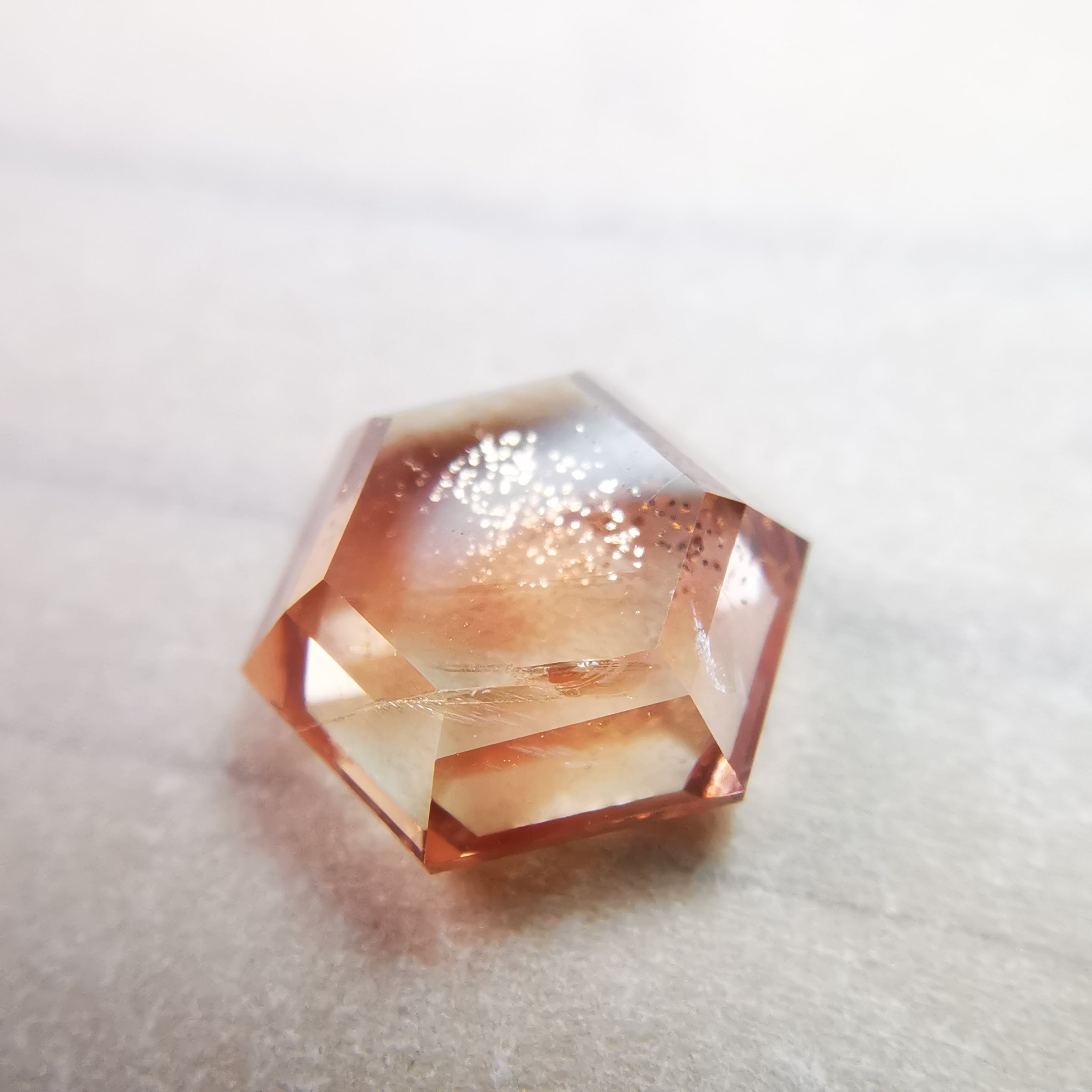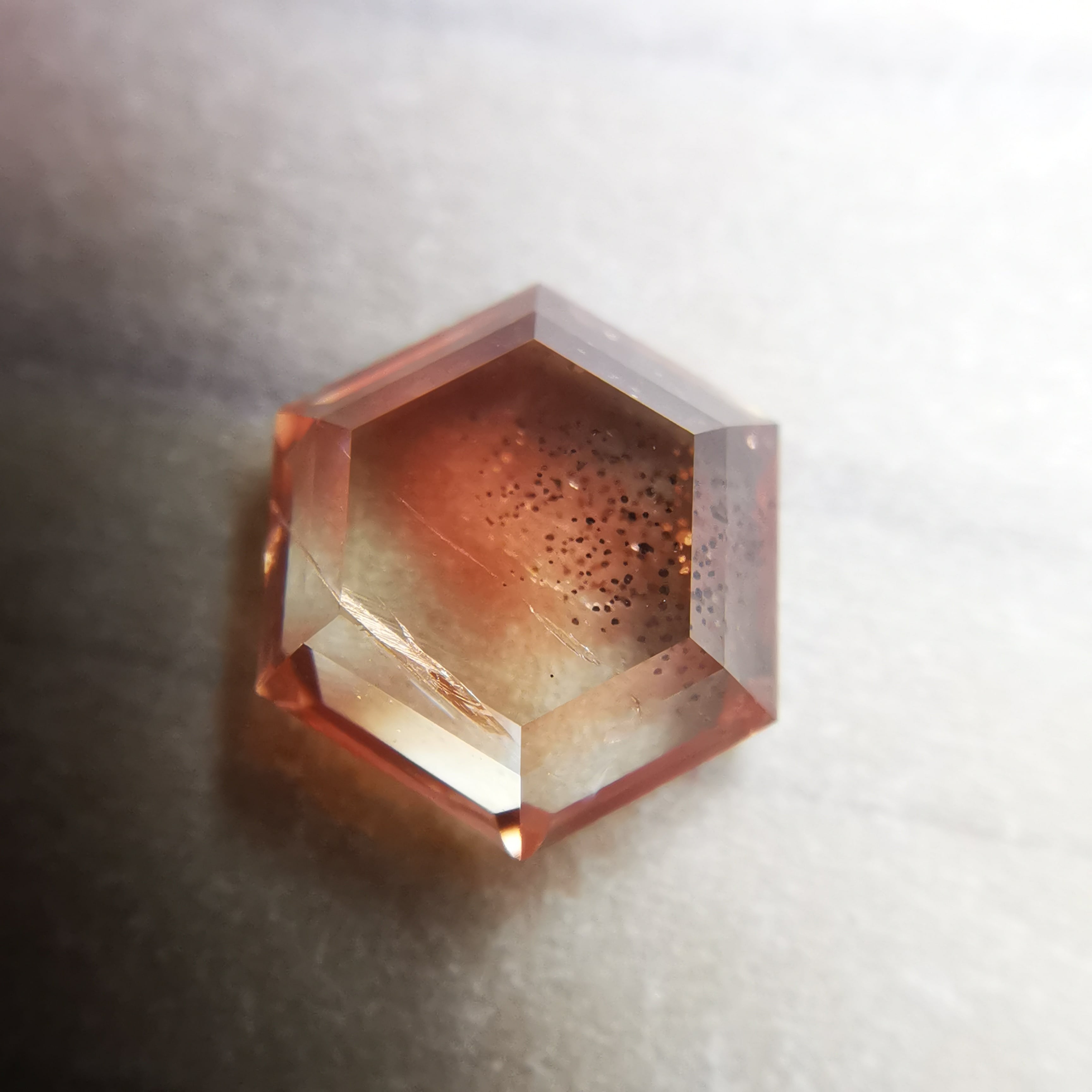 端正な六角形のフォルムのフラットバックカットで、バイカラーの様子をしっかりと見ることができます。