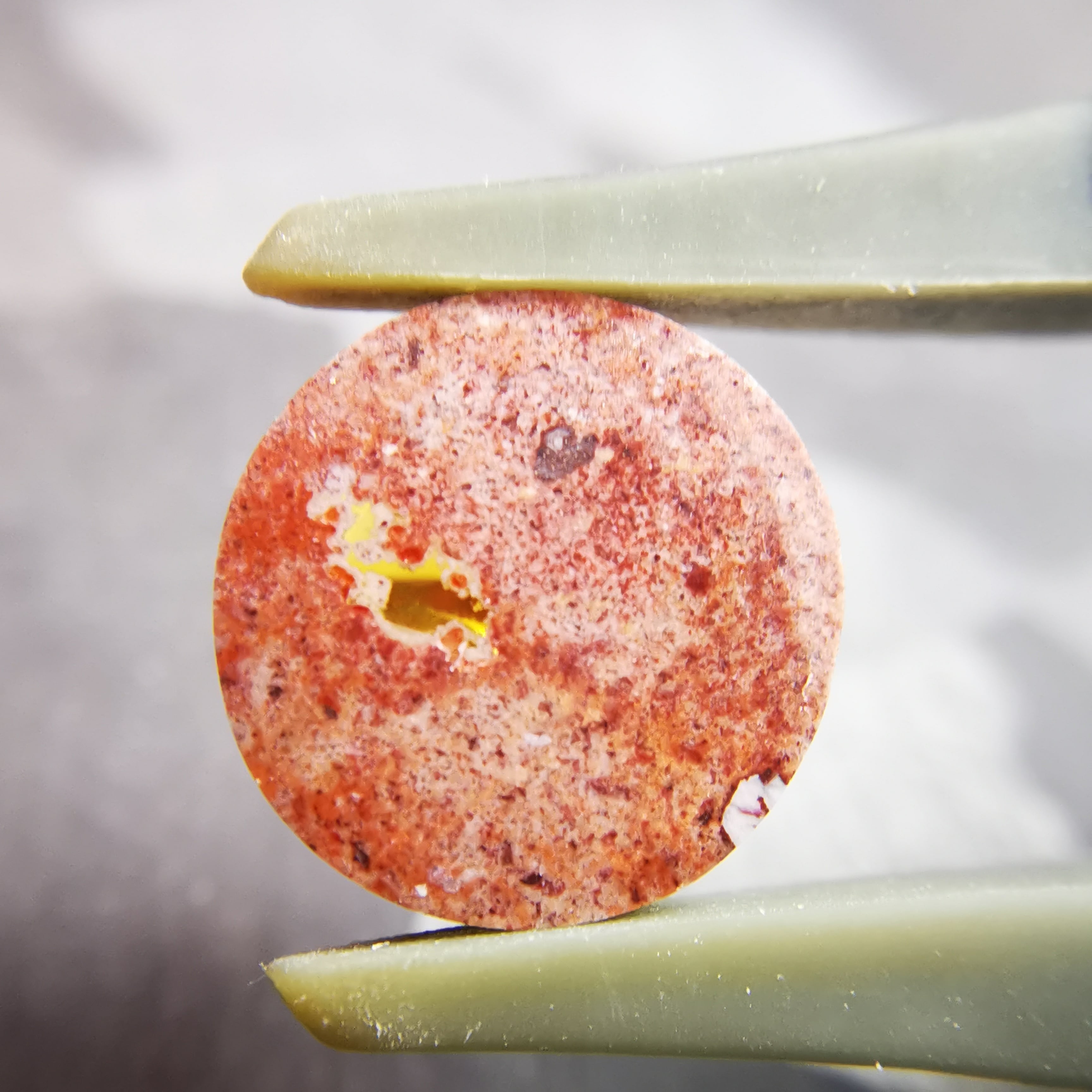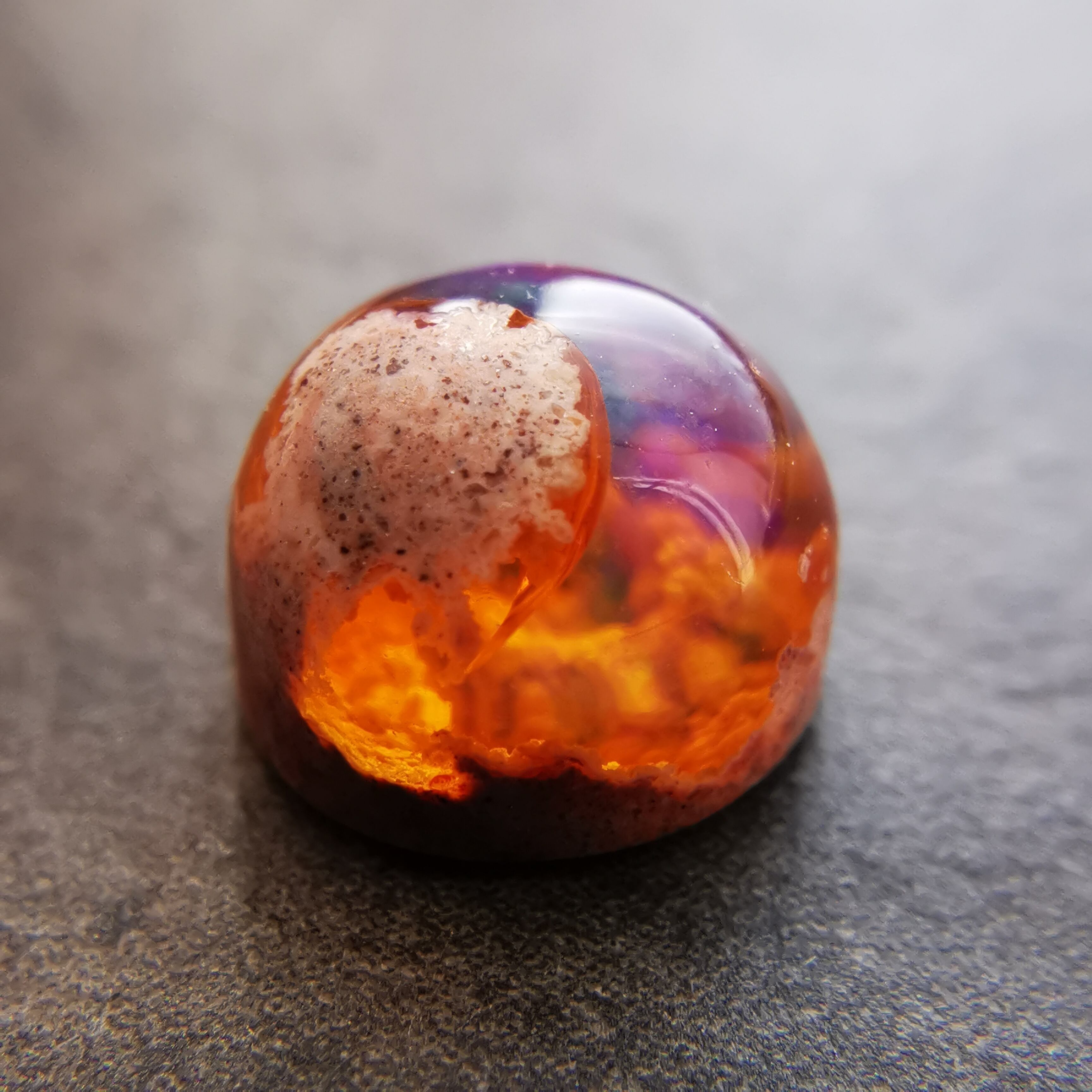 ゴールデンイエローのオパール部分に丸く入り込んだ母岩の重なりが、三日月に見えるカンテラオパールです。