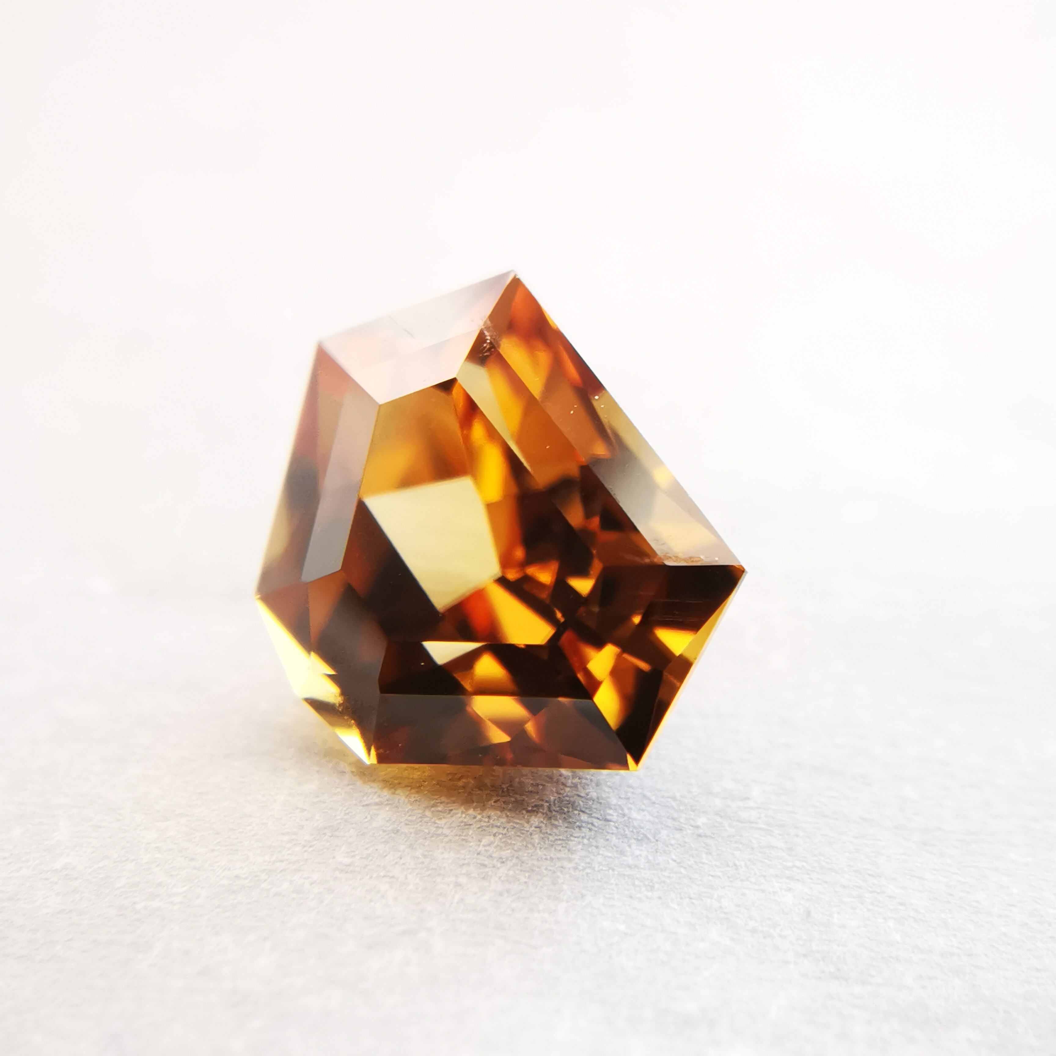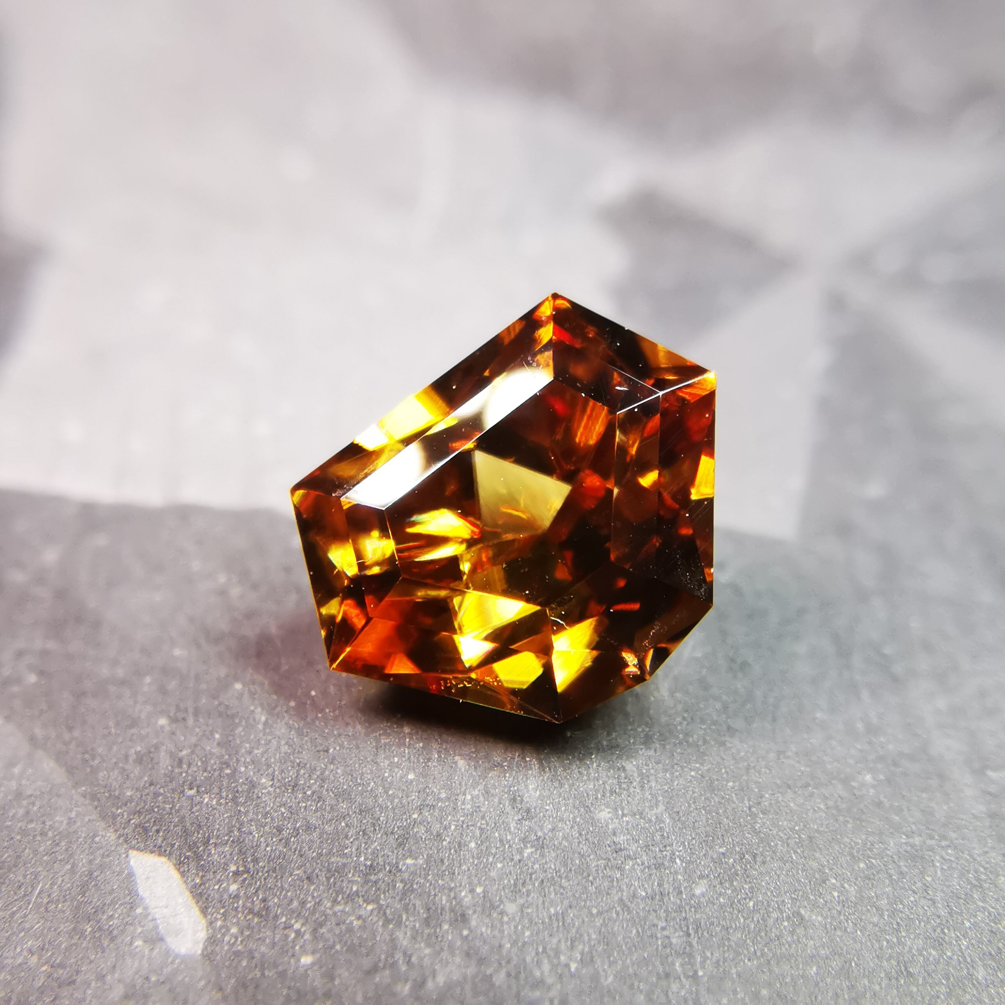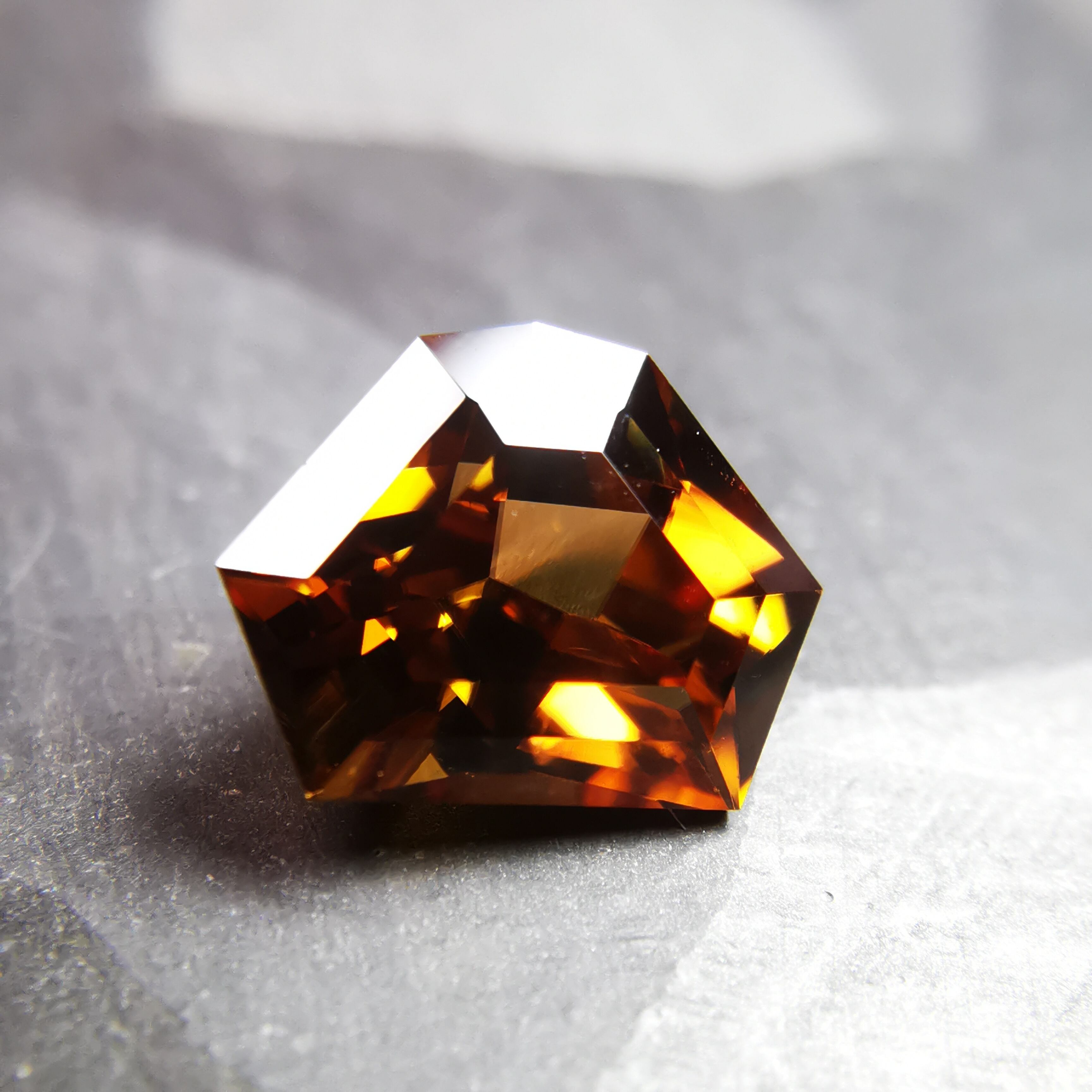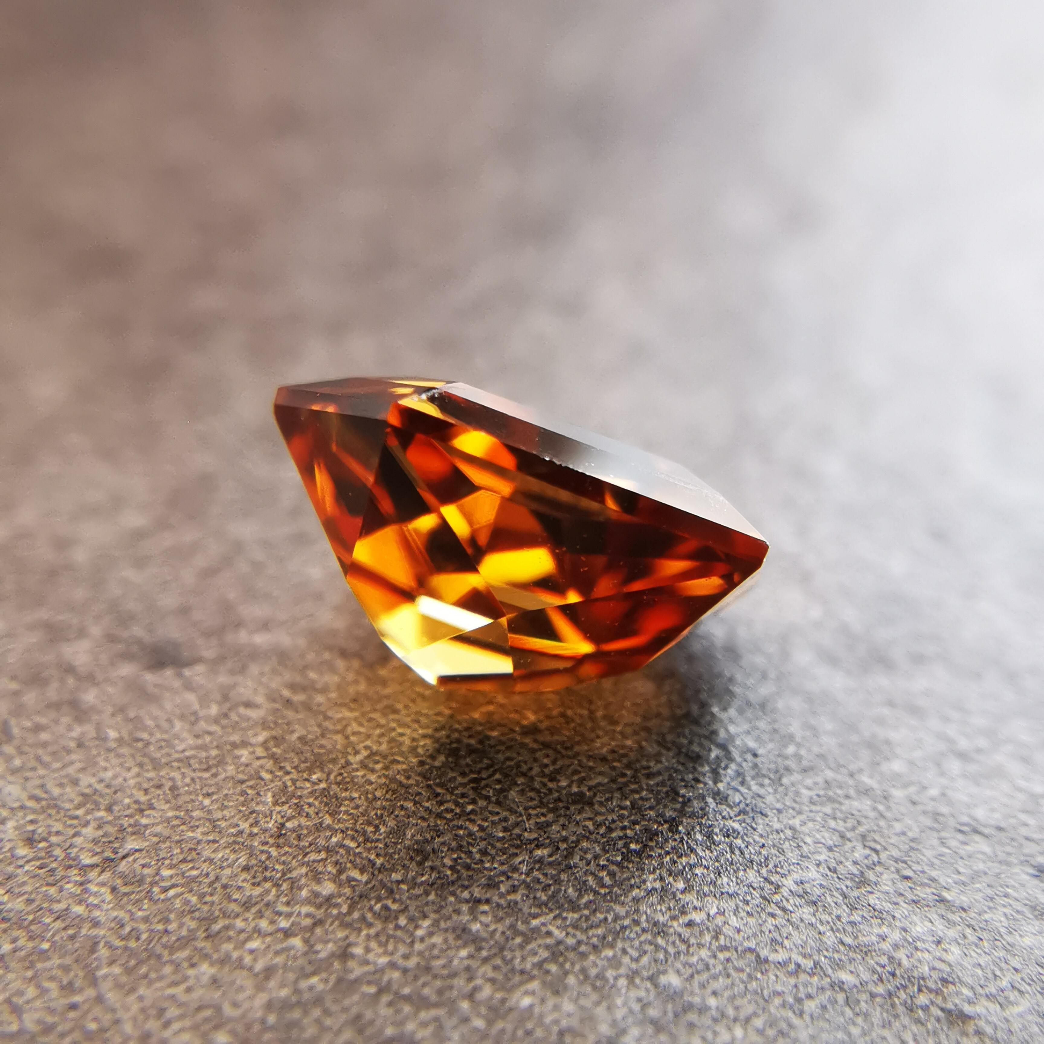 明るいところは鮮やかな黄赤/マリーゴールド色、色の深いところは濃い茶色/ラセットブラウンのジルコンです。
