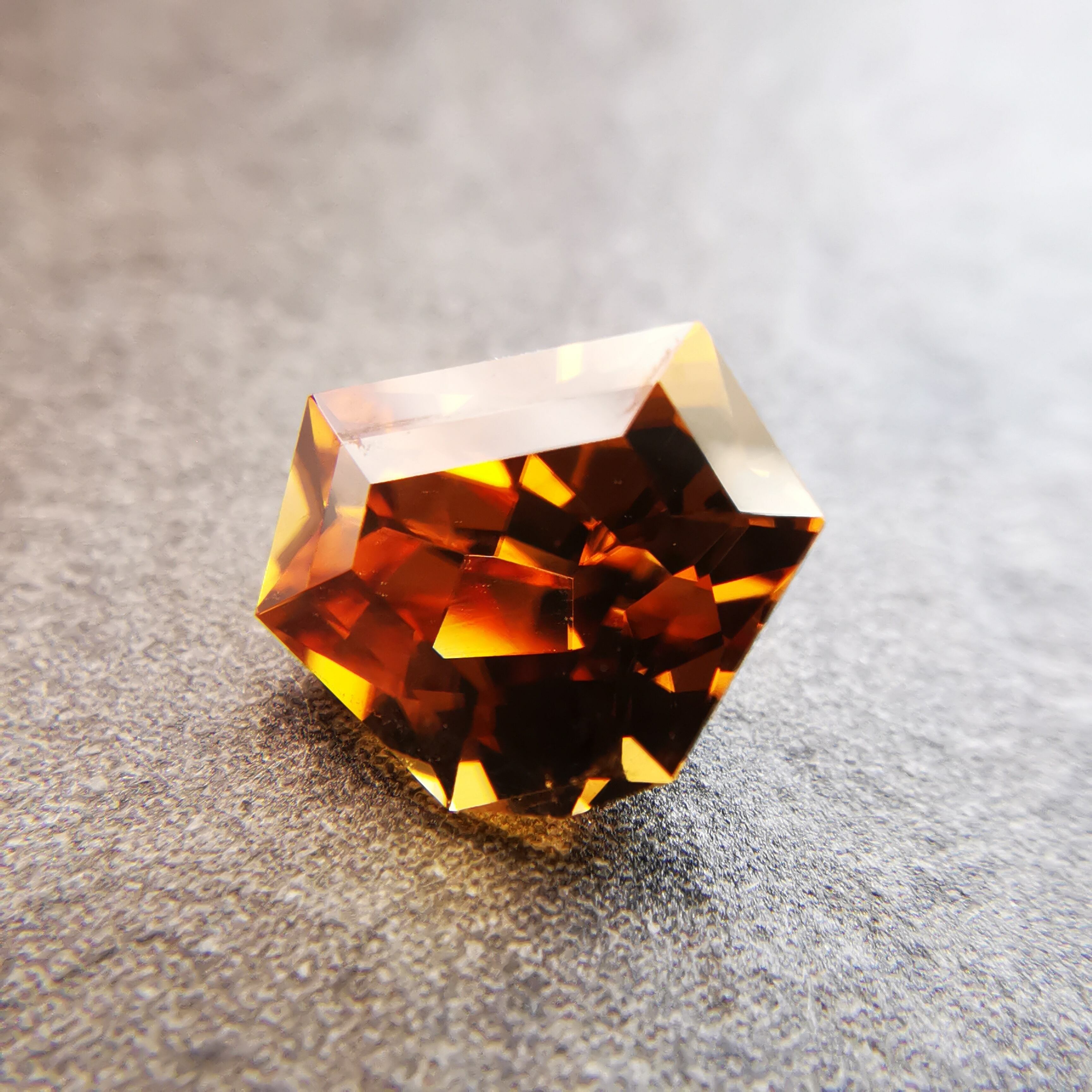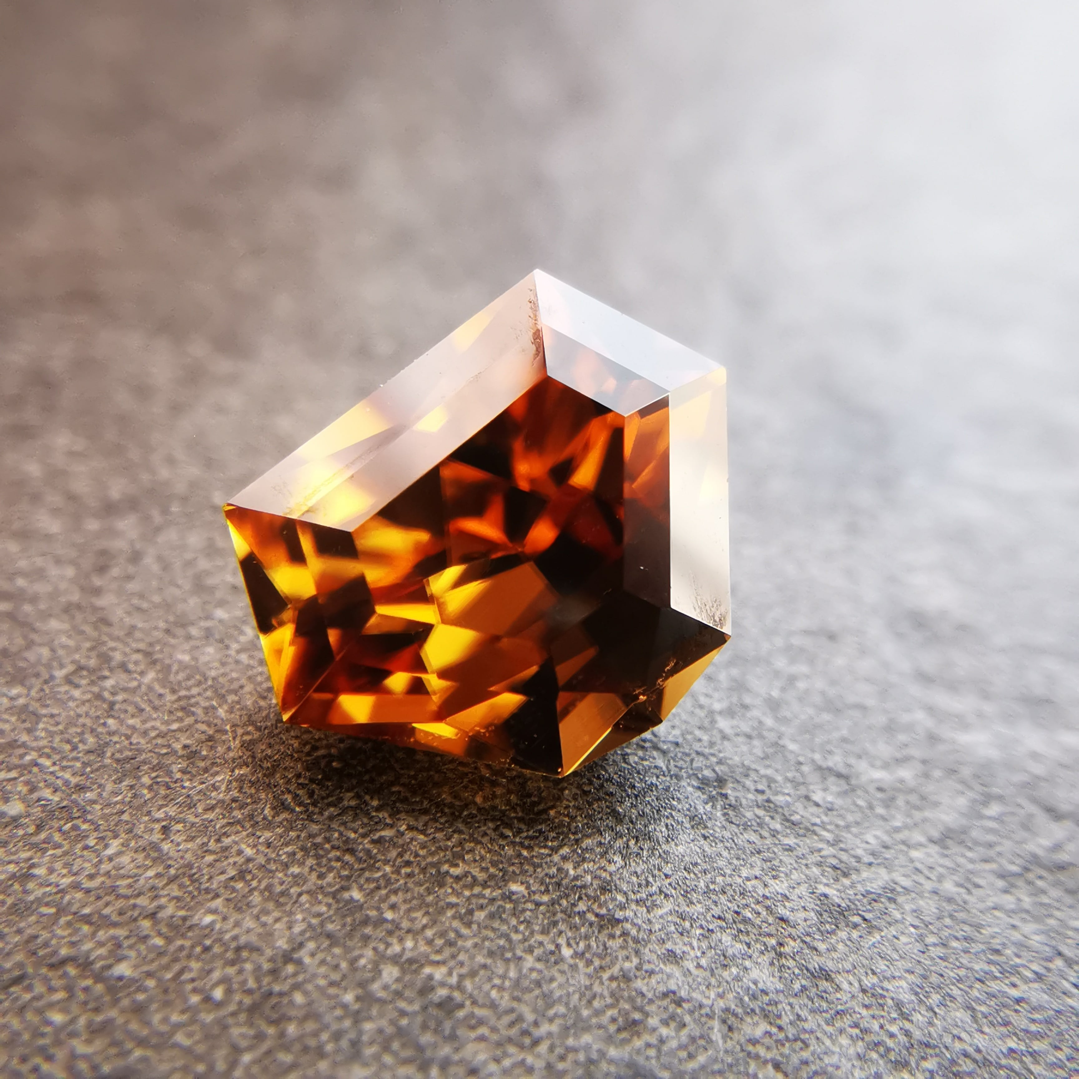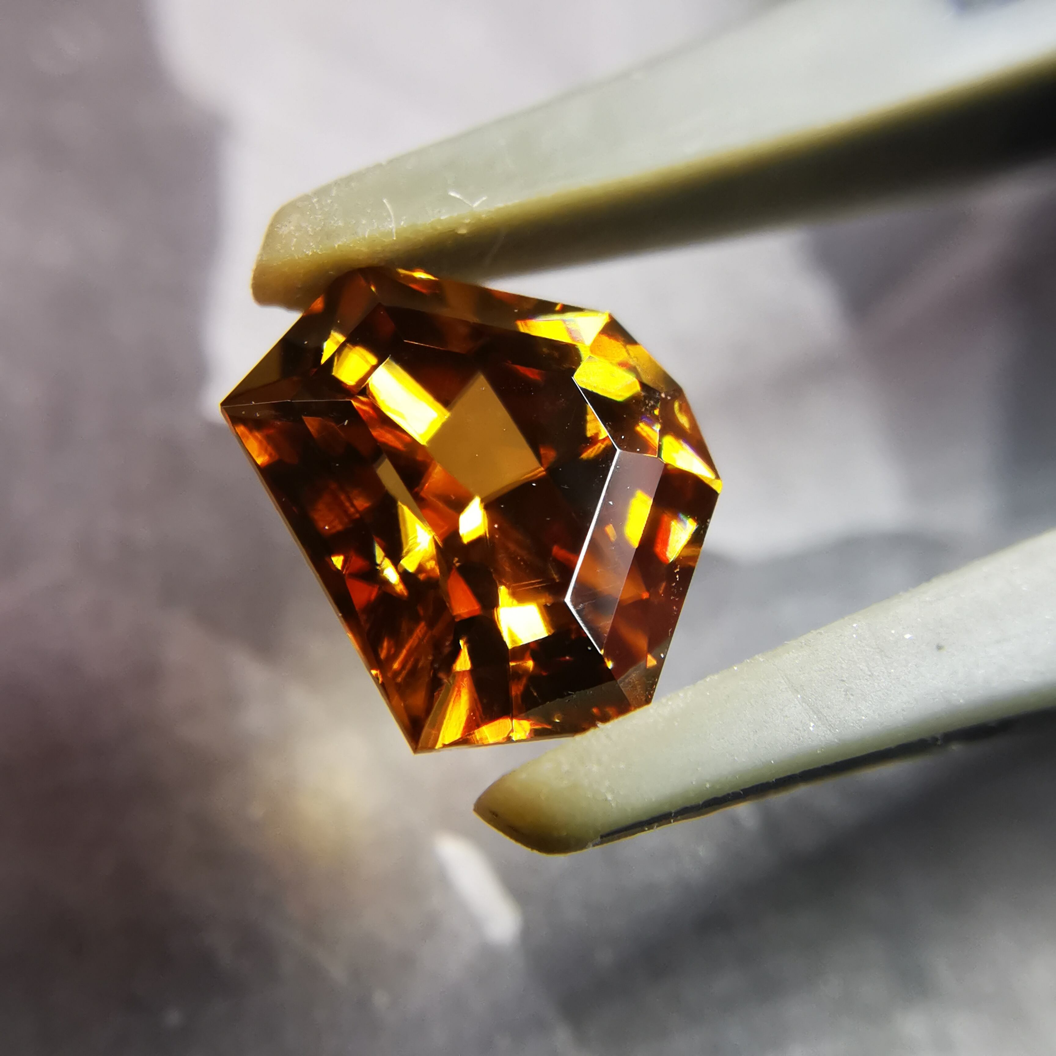 明るいところは鮮やかな黄赤/マリーゴールド色、色の深いところは濃い茶色/ラセットブラウンのジルコンです。