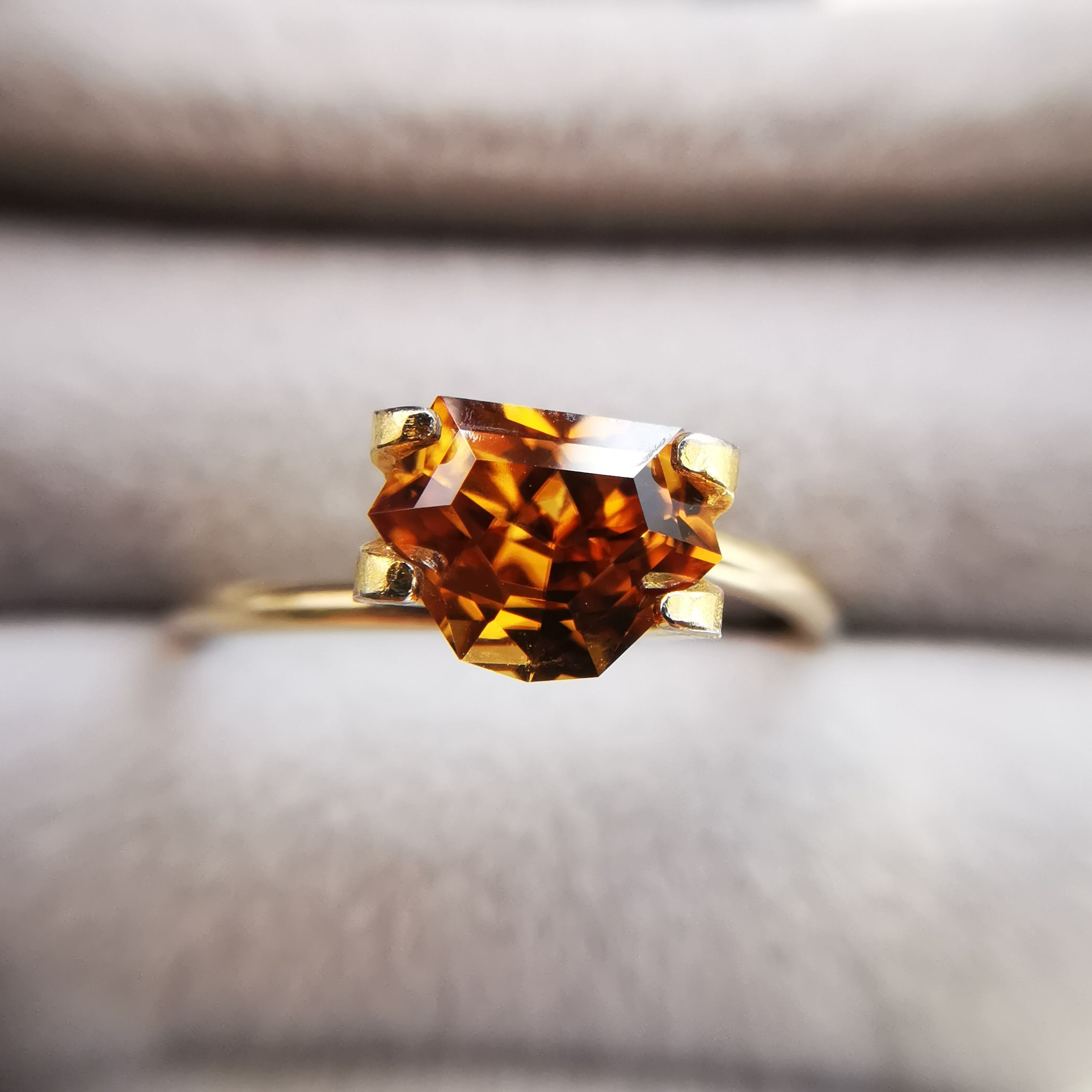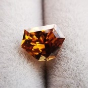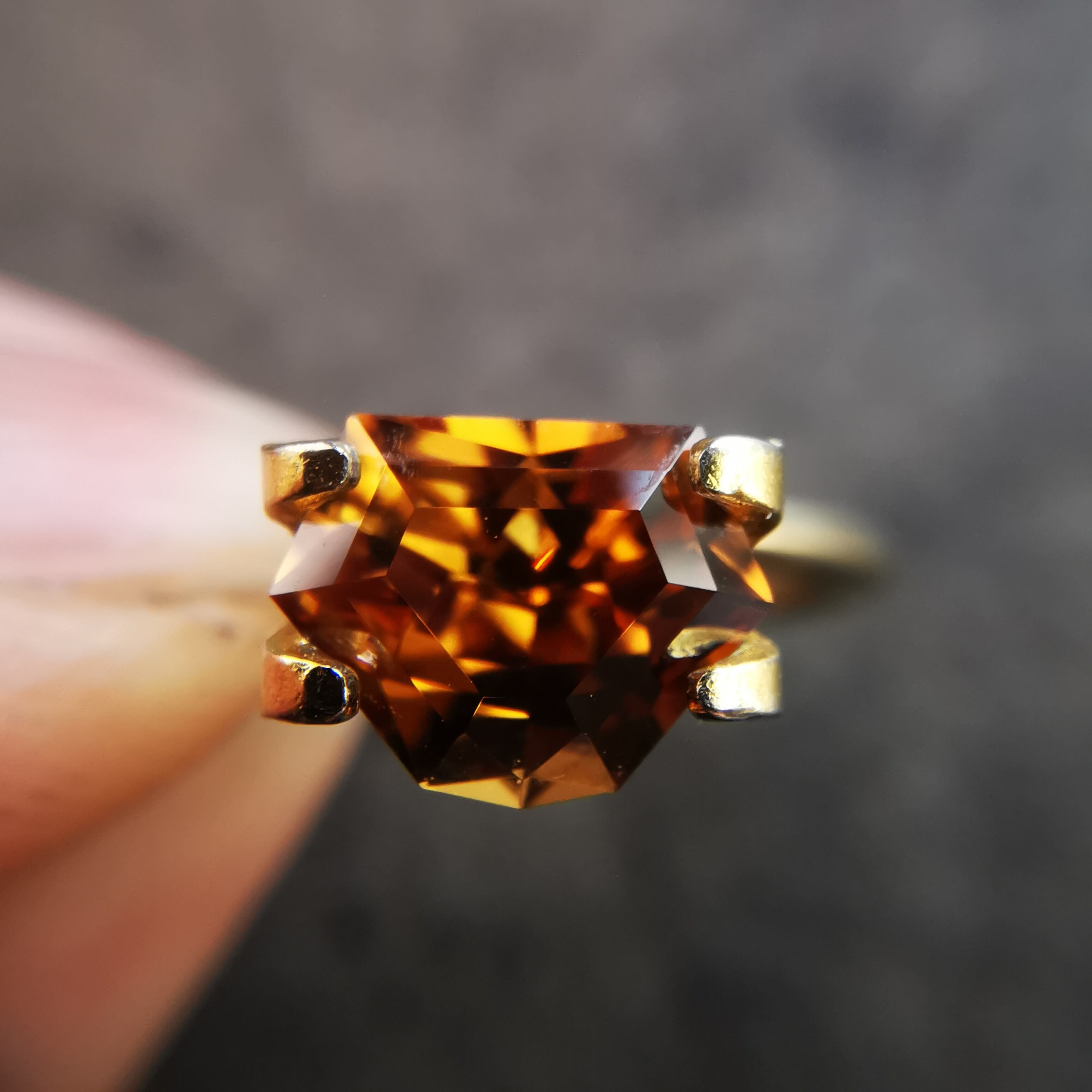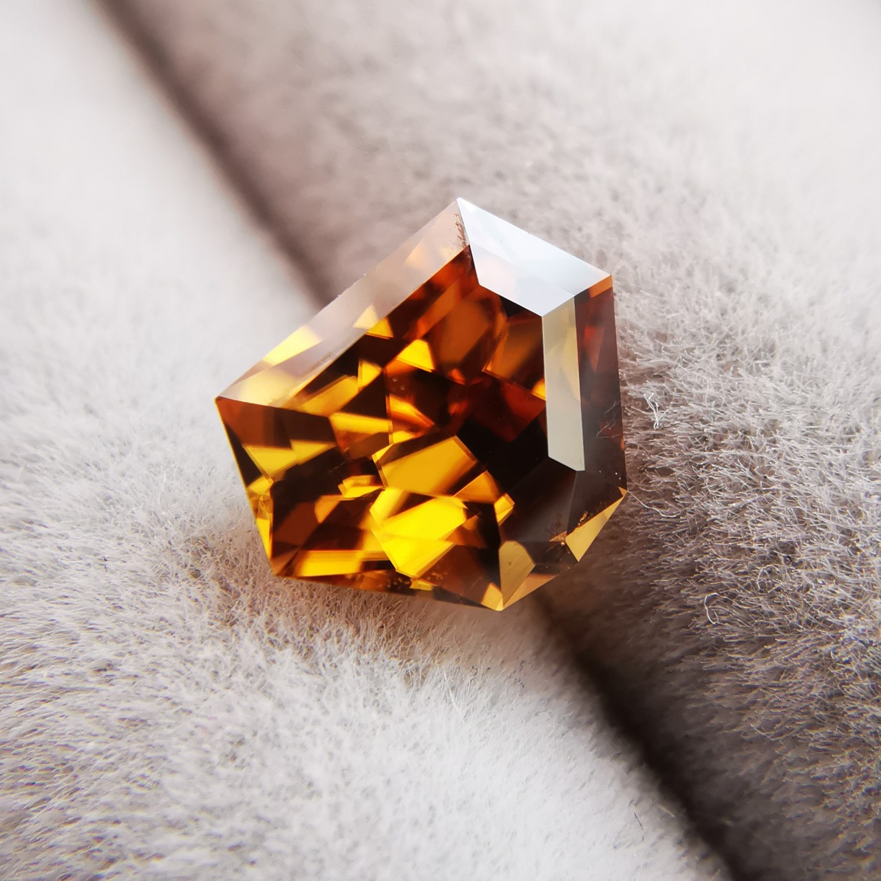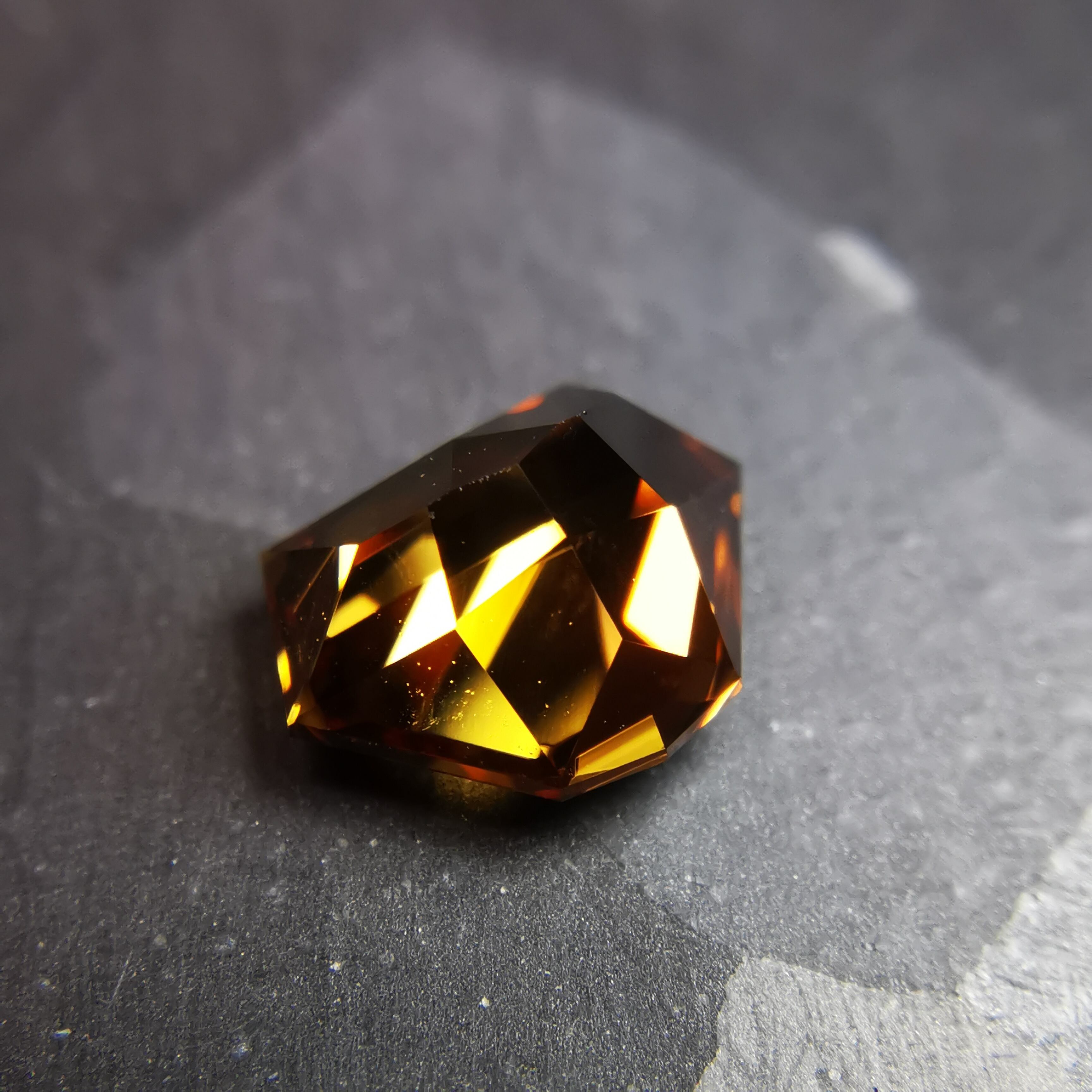 明るいところは鮮やかな黄赤/マリーゴールド色、色の深いところは濃い茶色/ラセットブラウンのジルコンです。