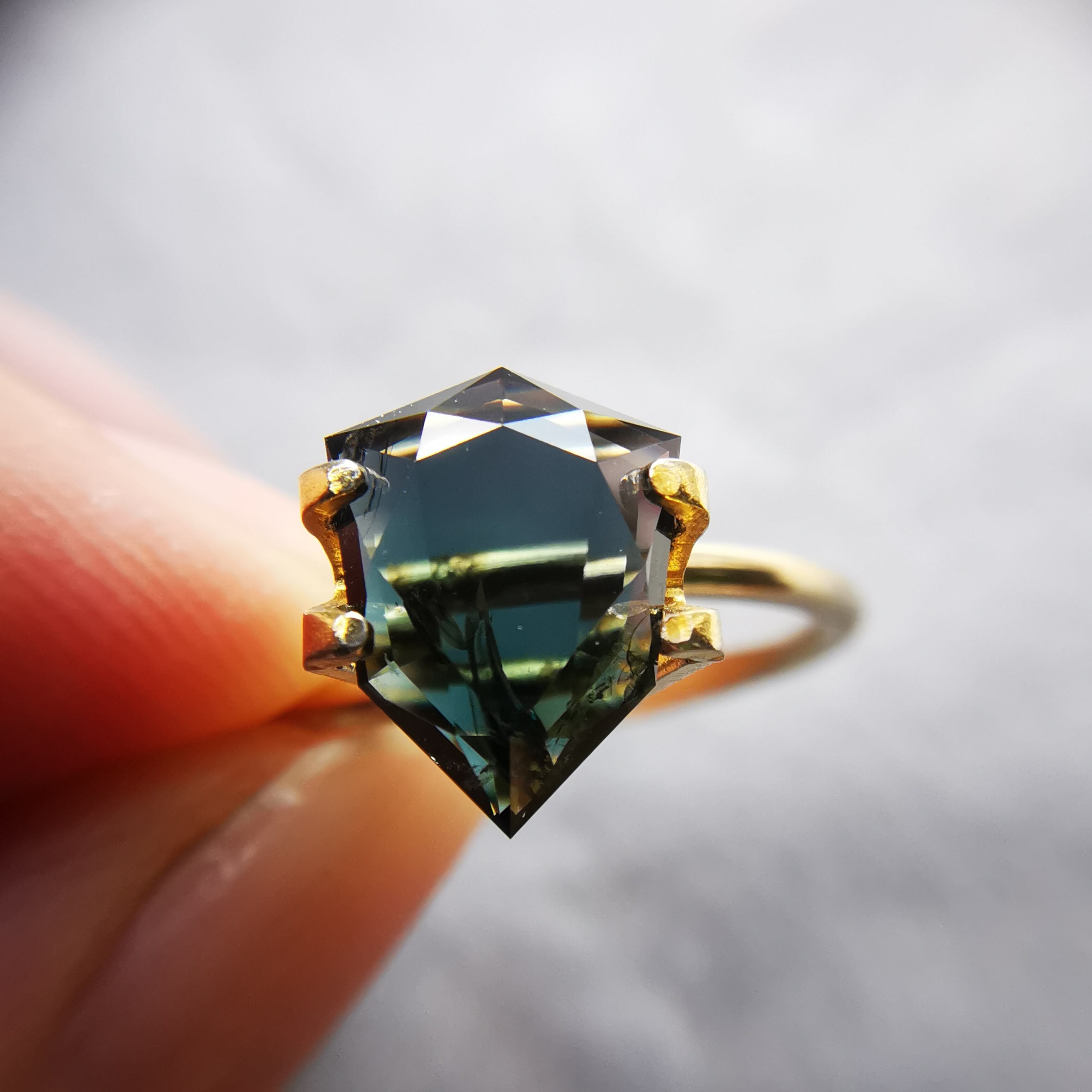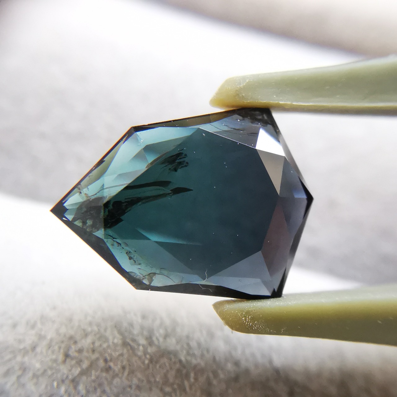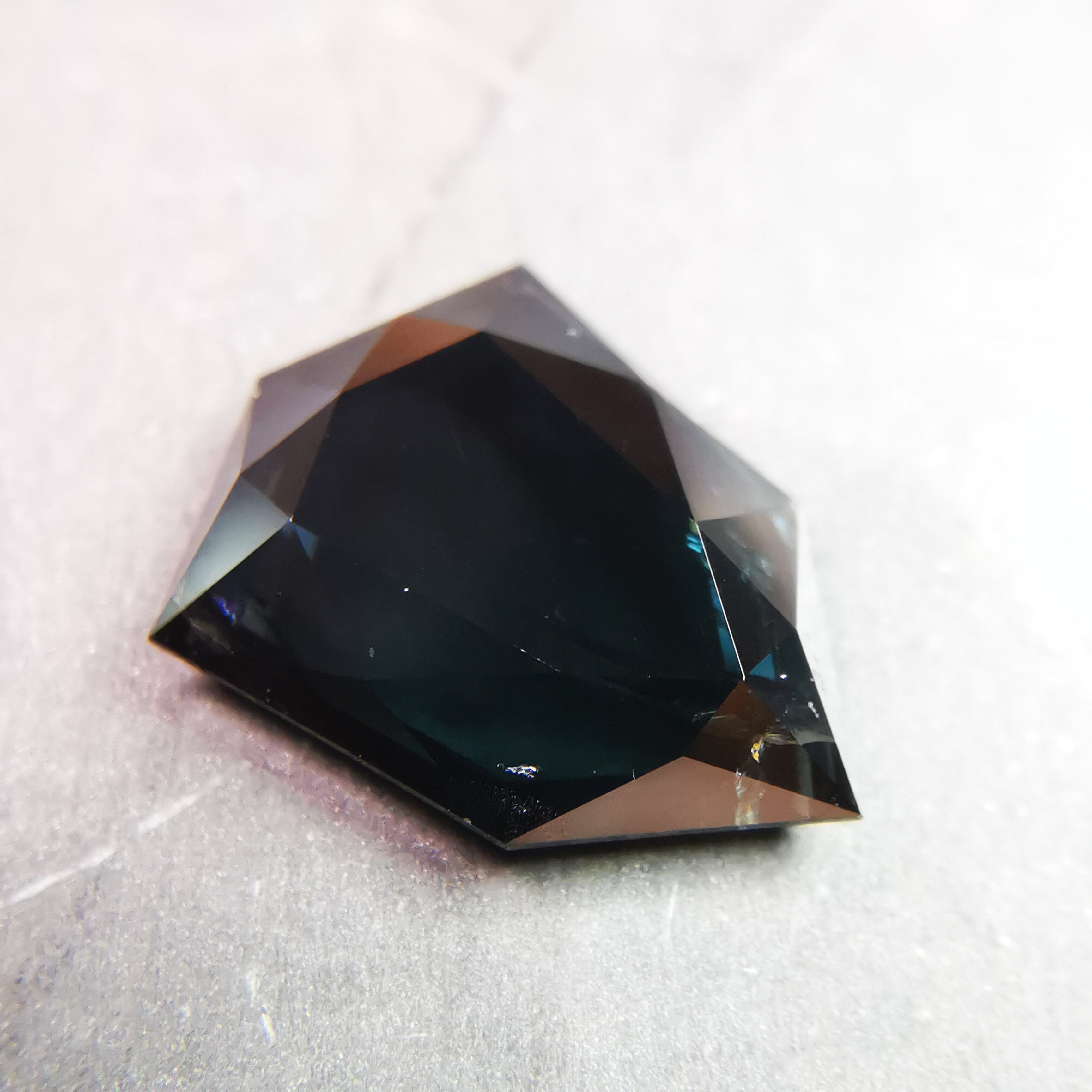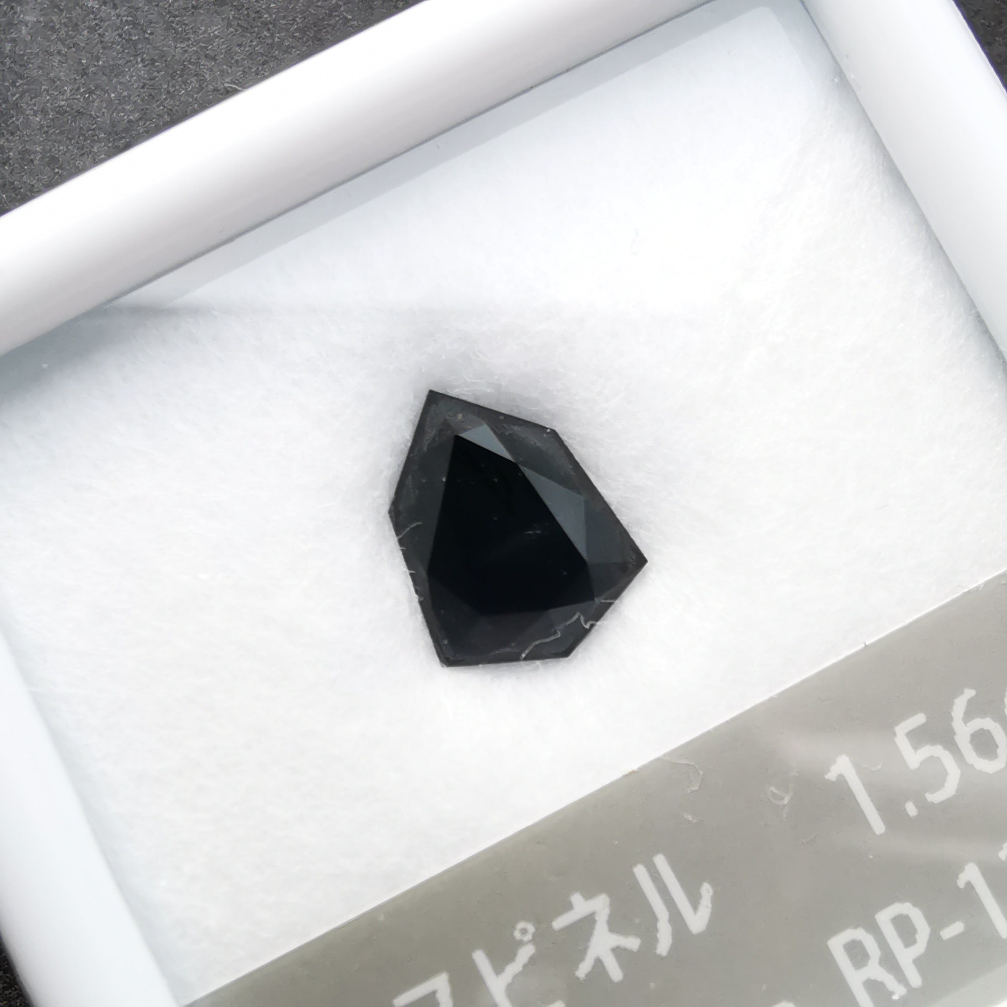 置いた状態では、ほぼ光を通さないブラックのスピネルです。