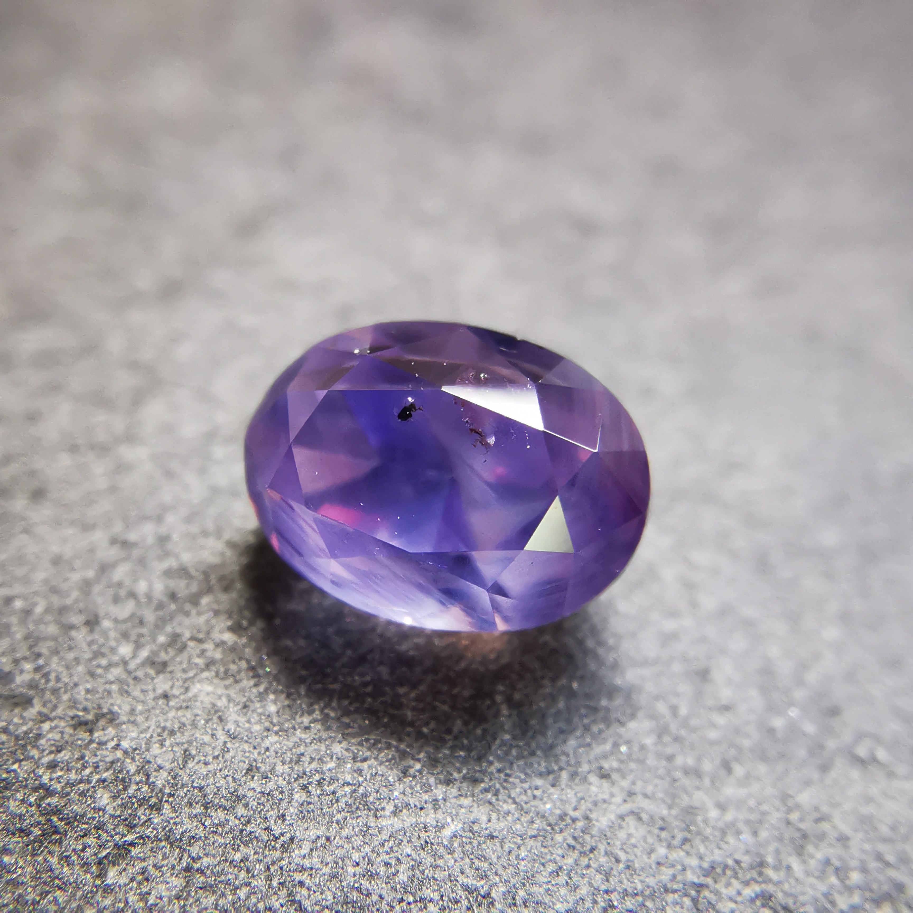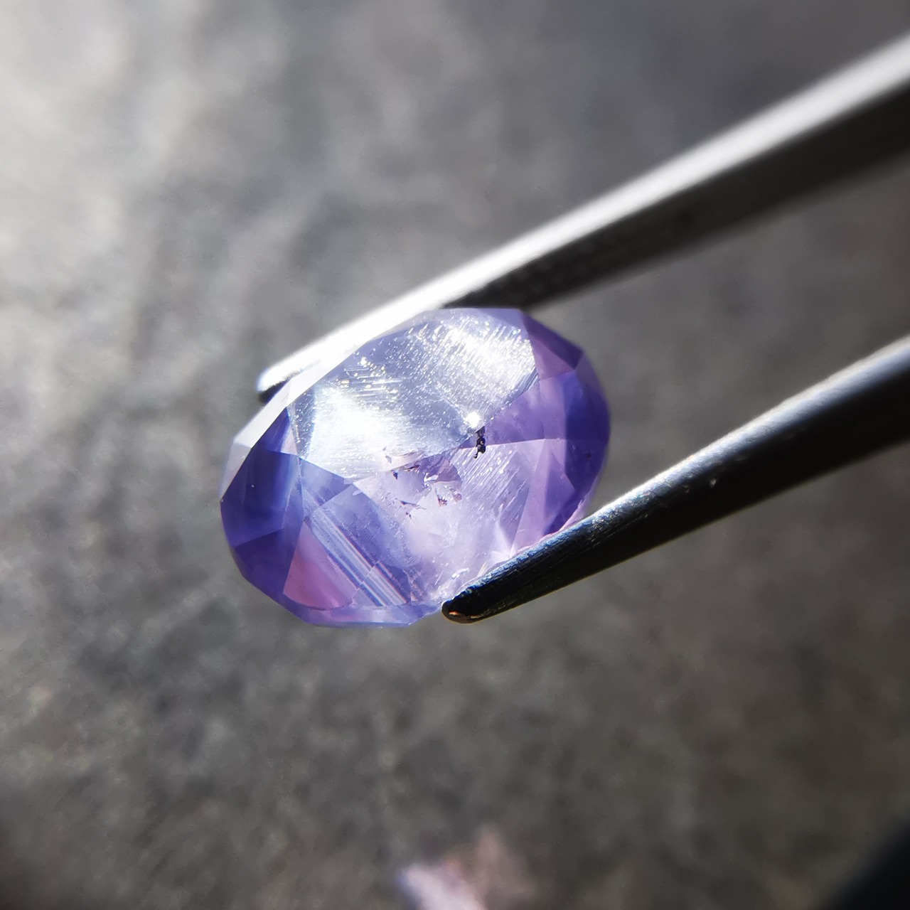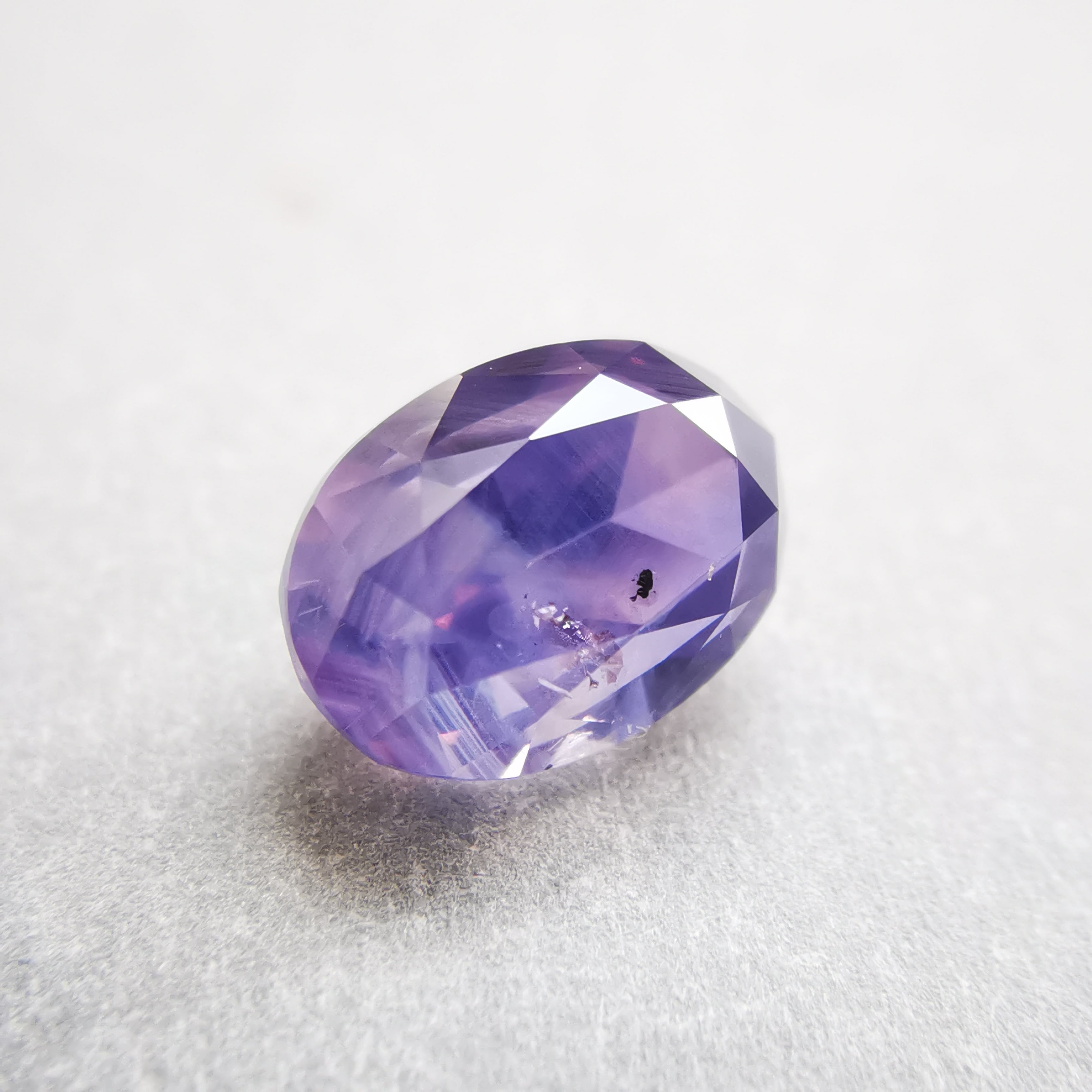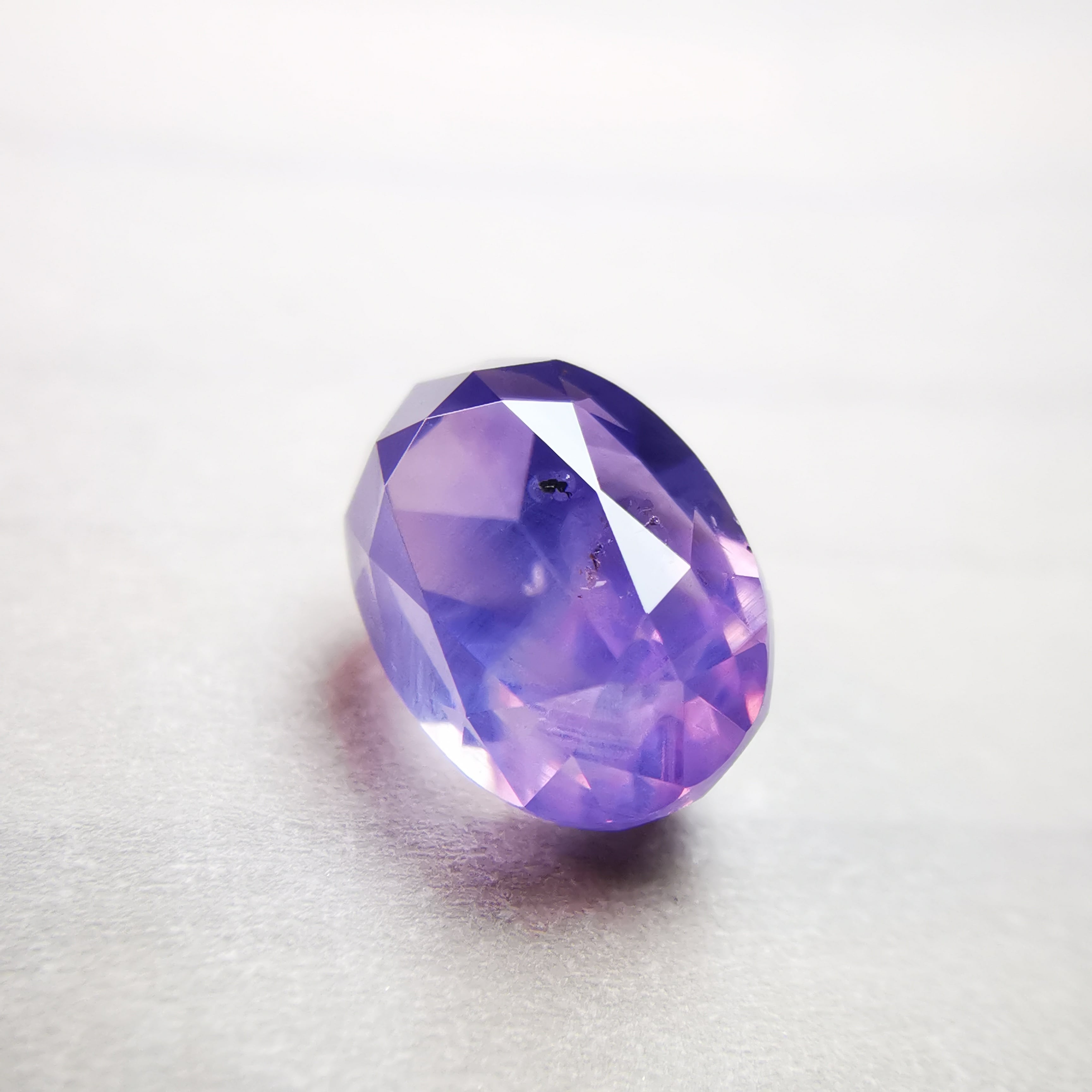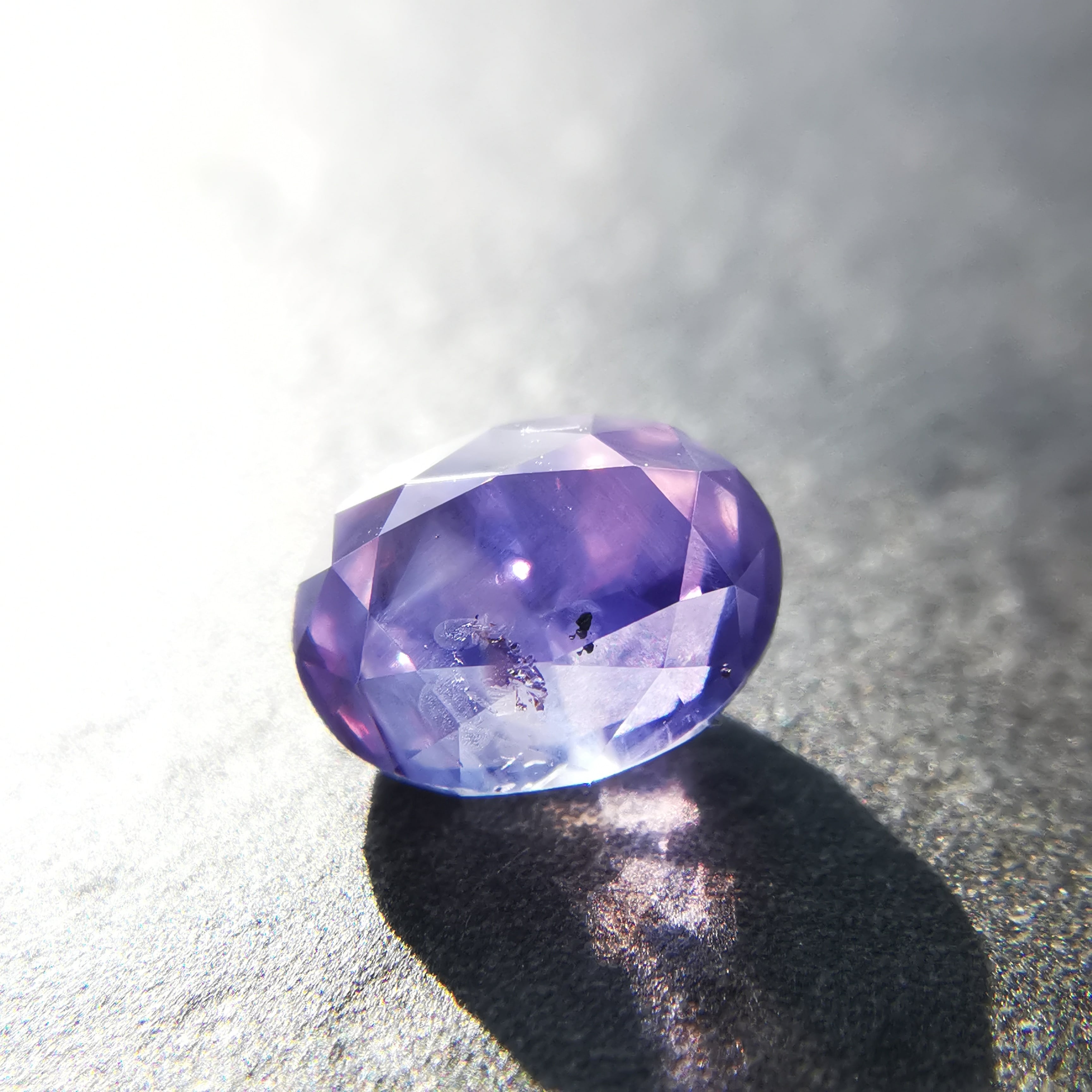 青みの紫/ヘリオトロープから、柔らかなピンク色がきらめくサファイアです。