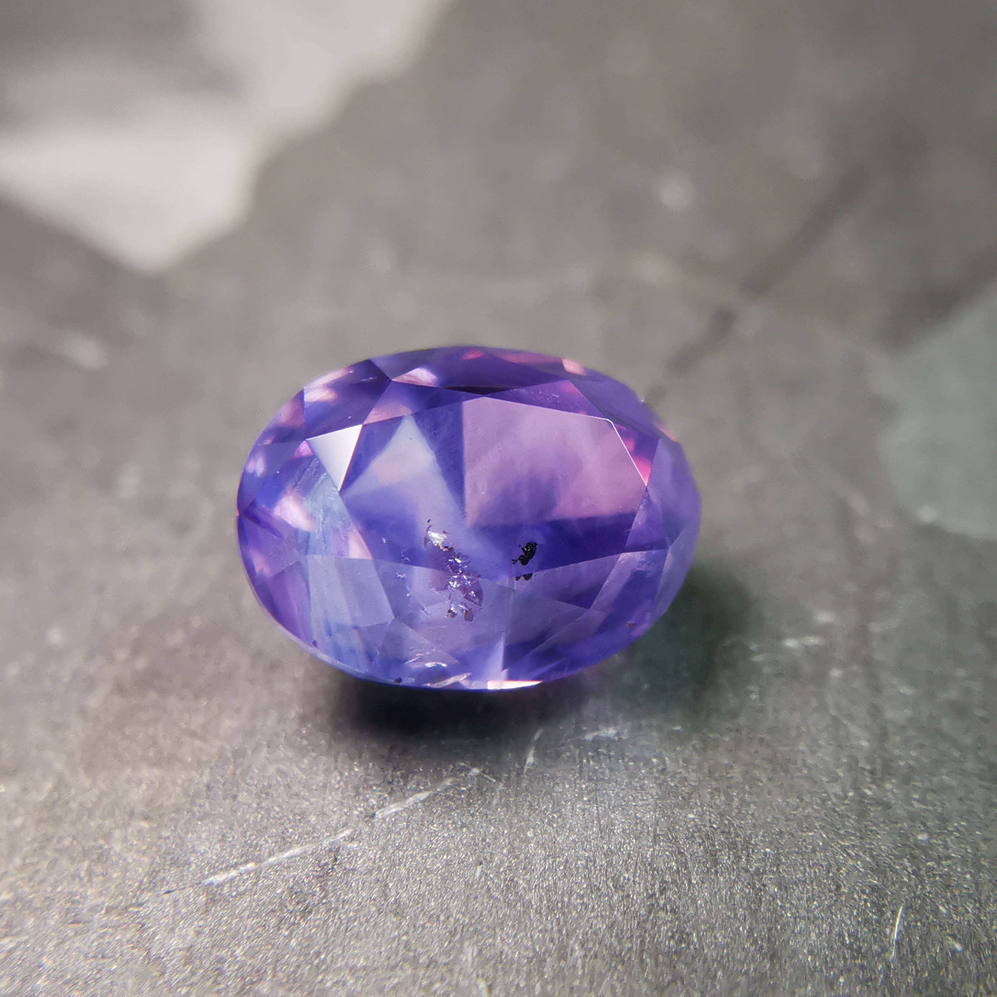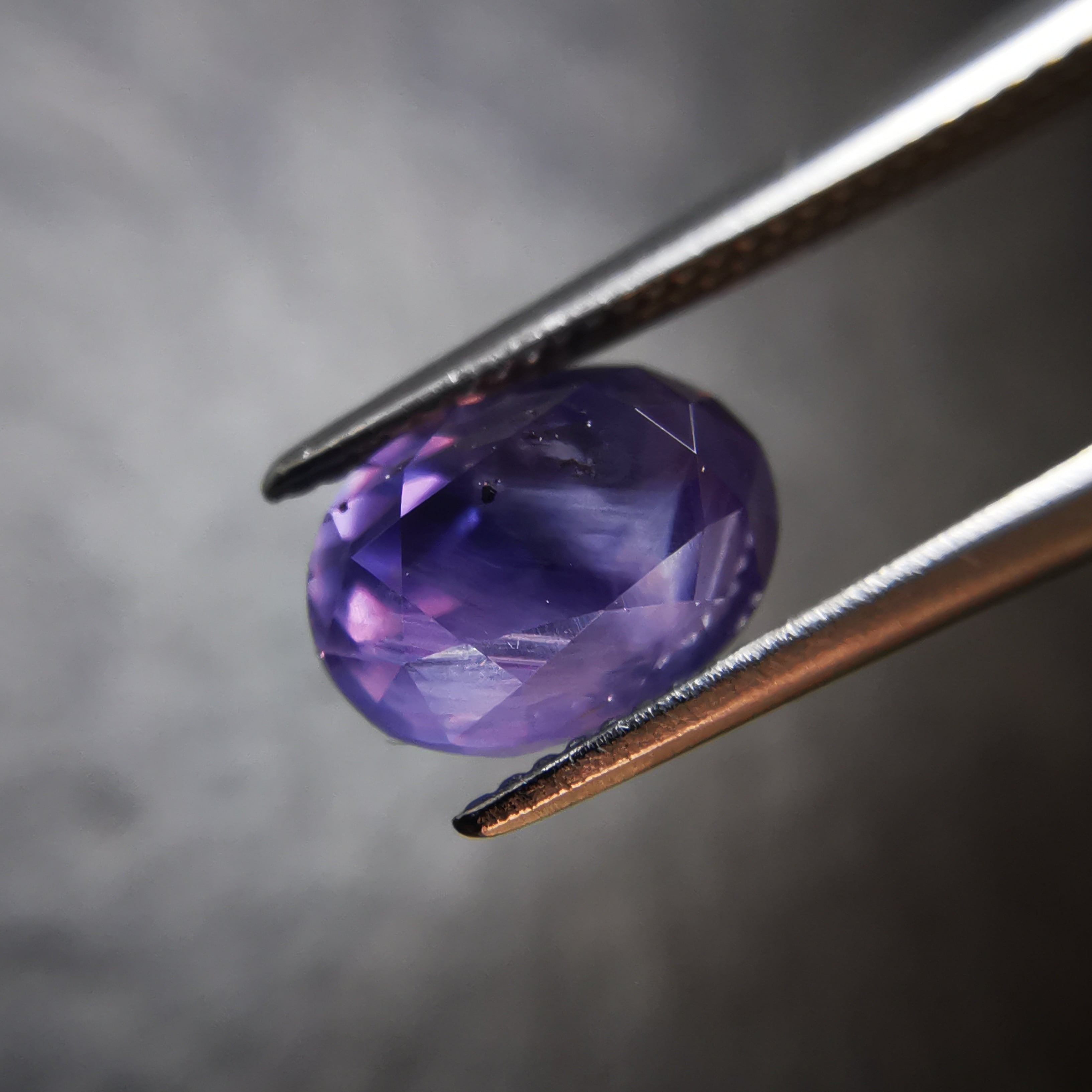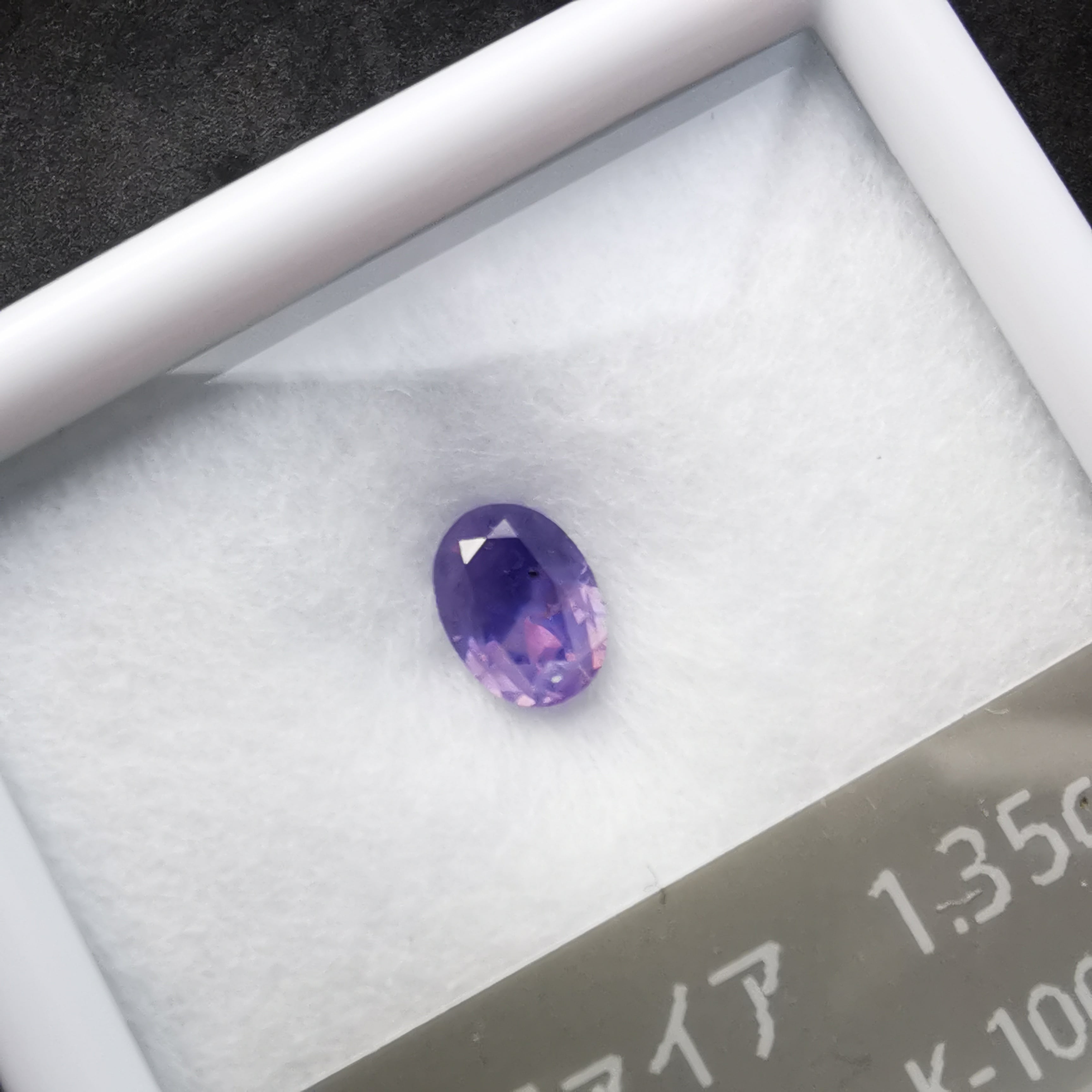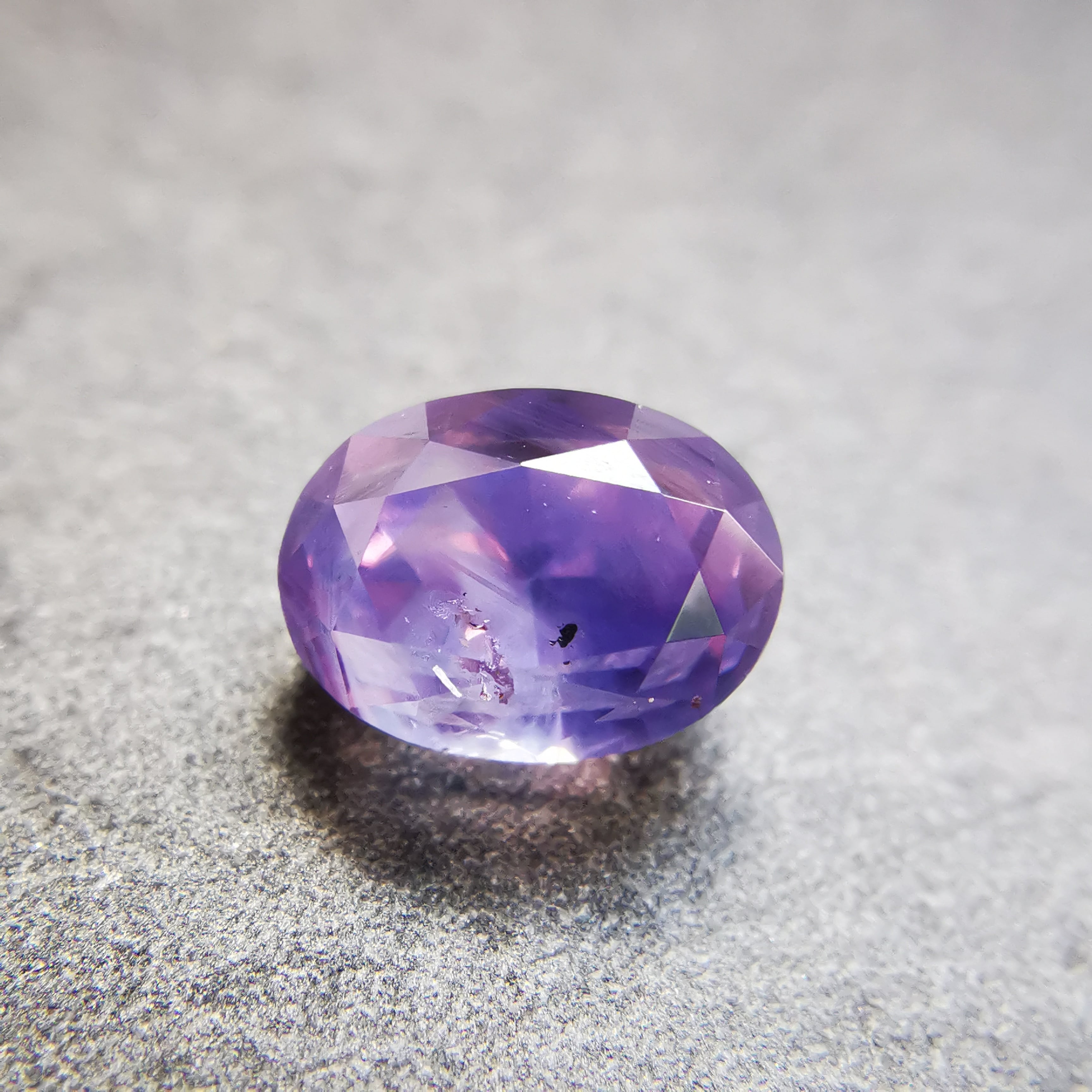 青みの紫/ヘリオトロープから、柔らかなピンク色がきらめくサファイアです。