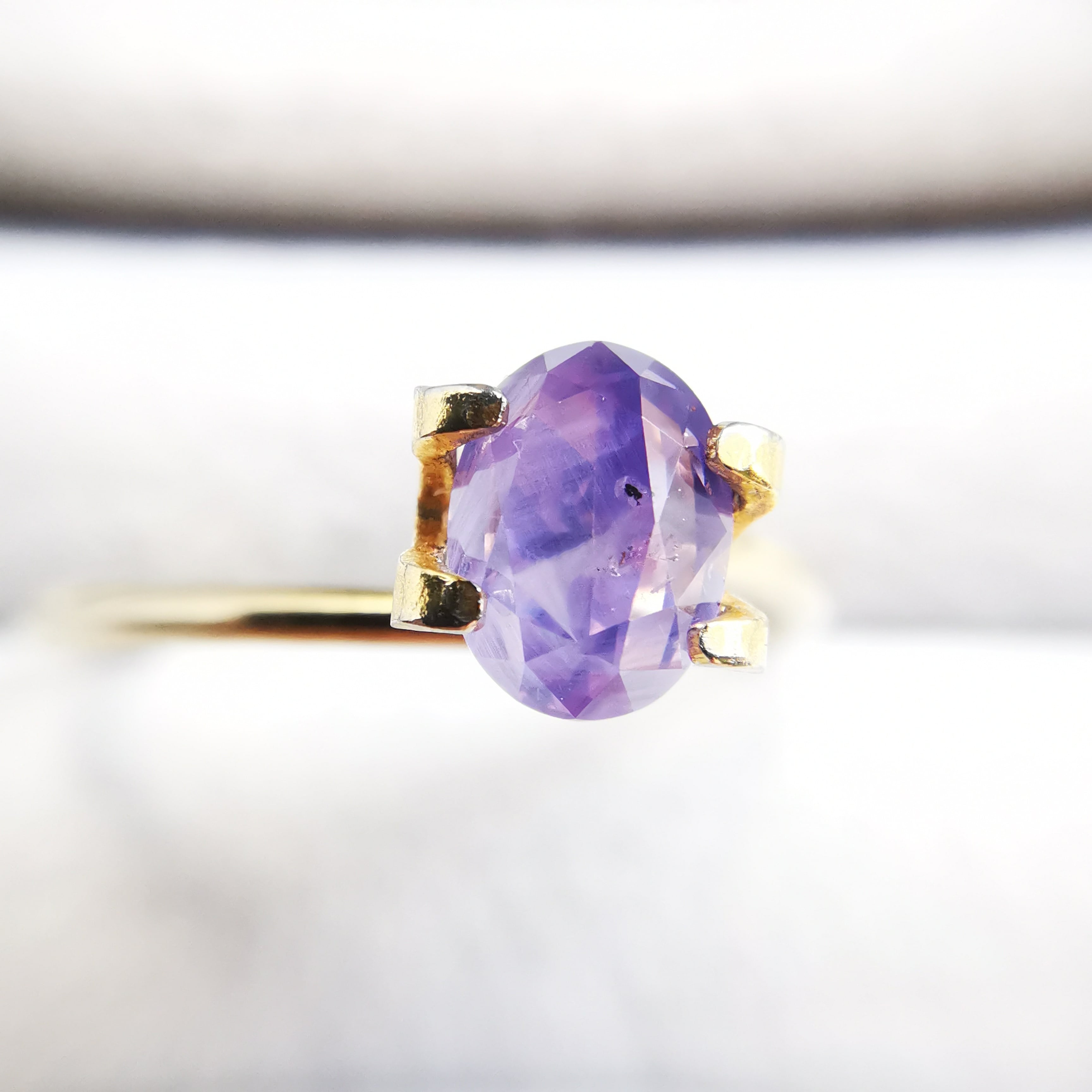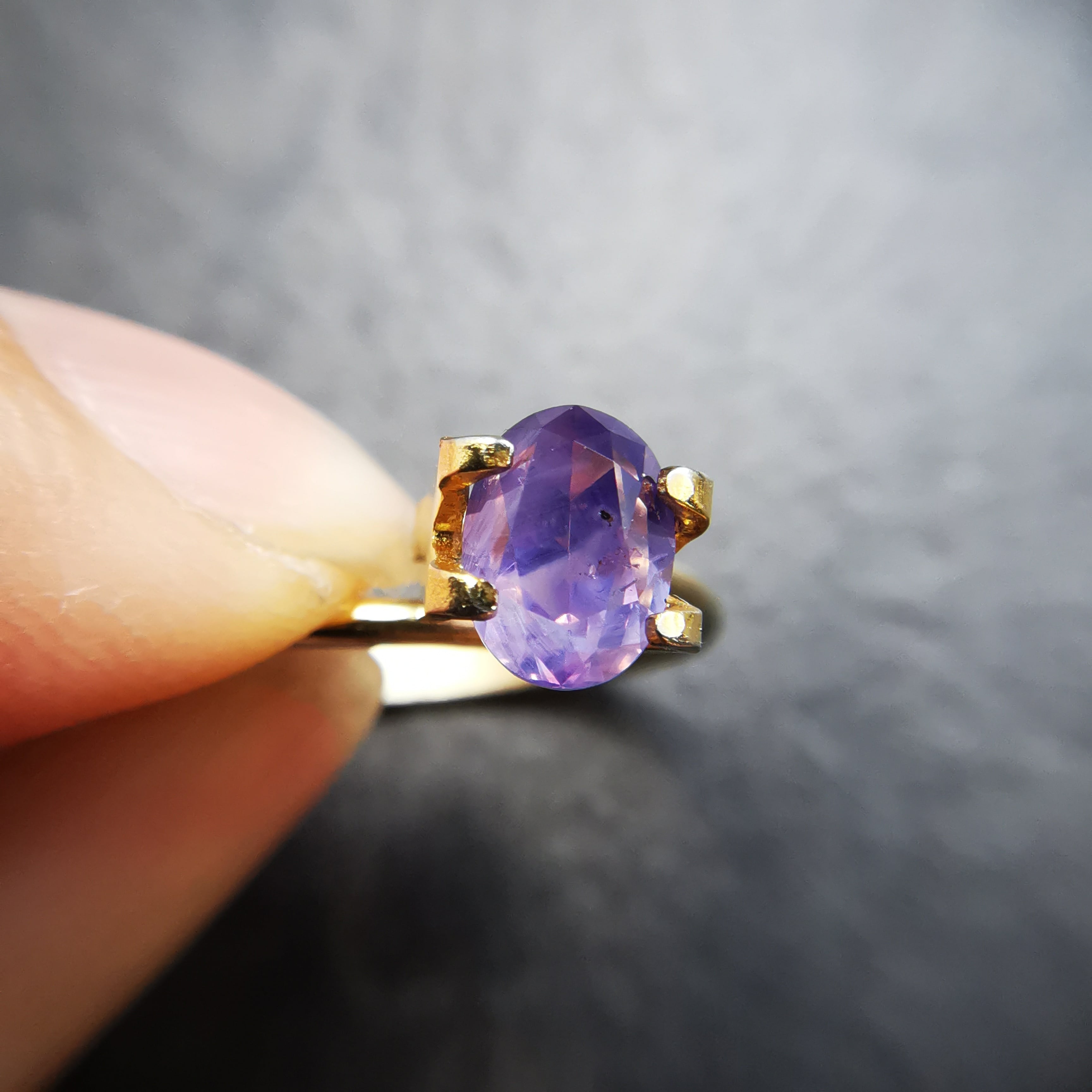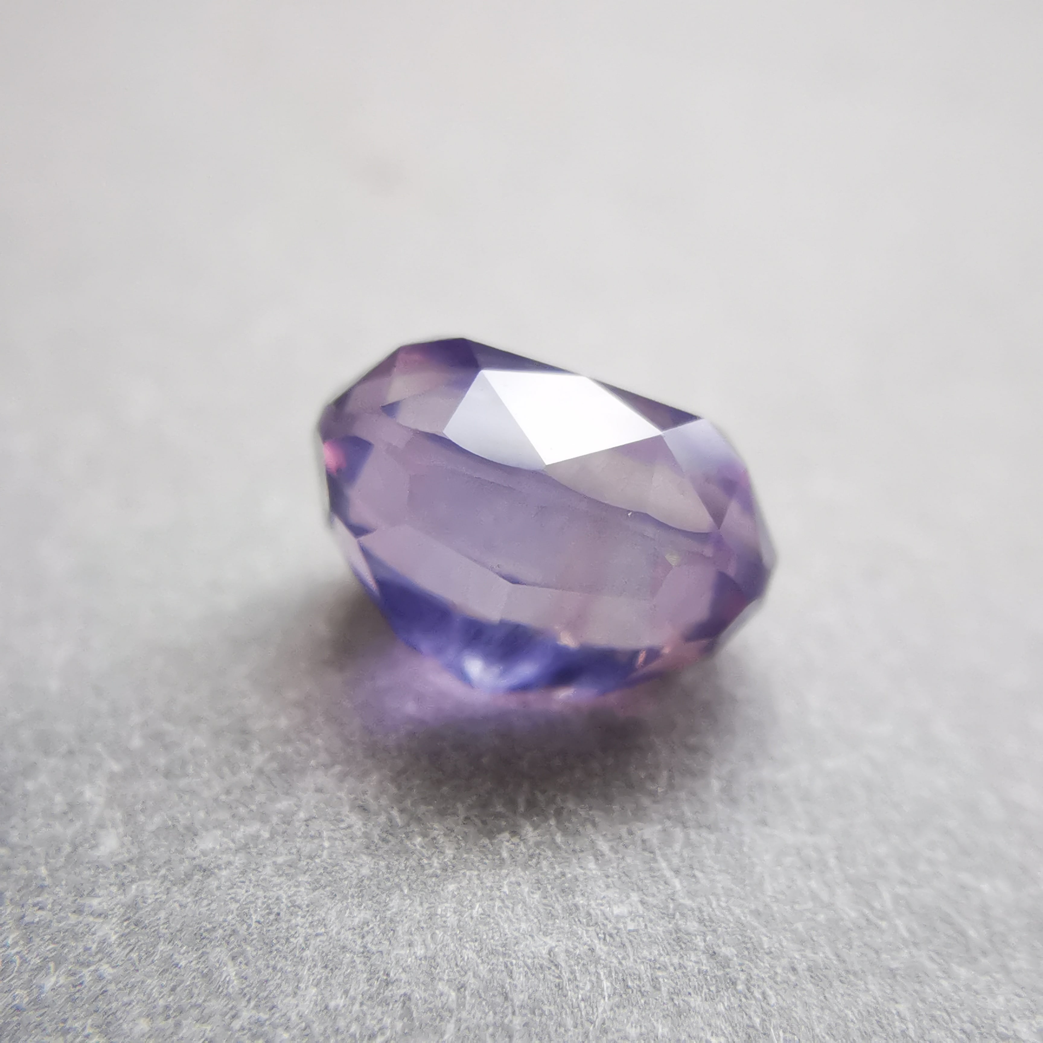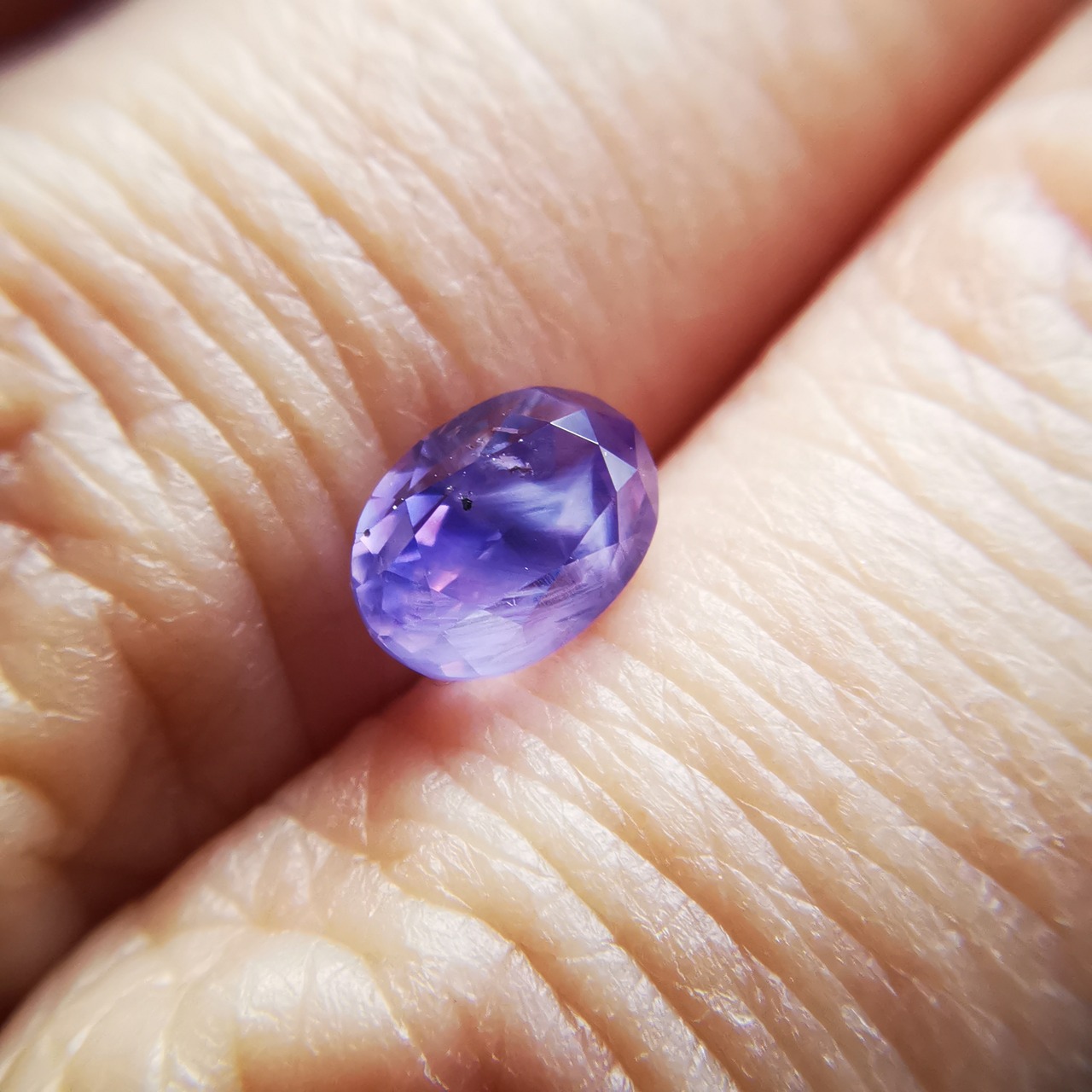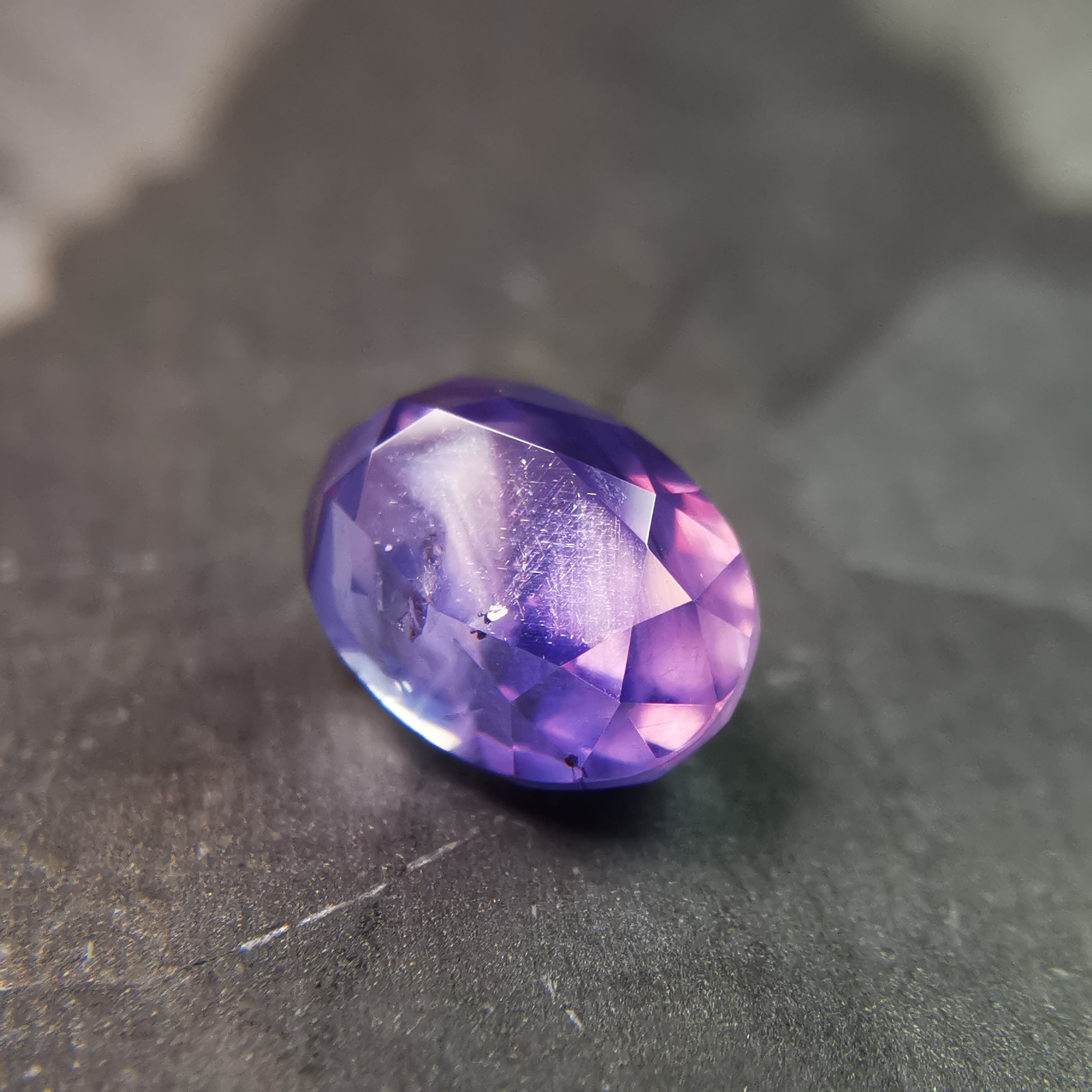 青みの紫/ヘリオトロープから、柔らかなピンク色がきらめくサファイアです。