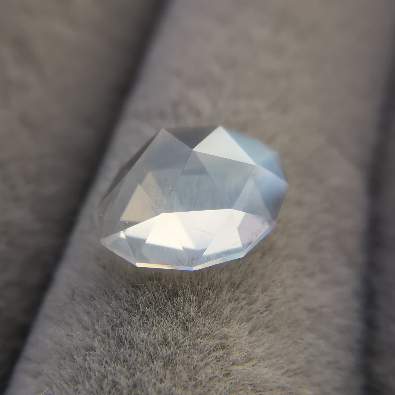 端正なローズカットの上を、光るシラーが滑るように移動していきます。