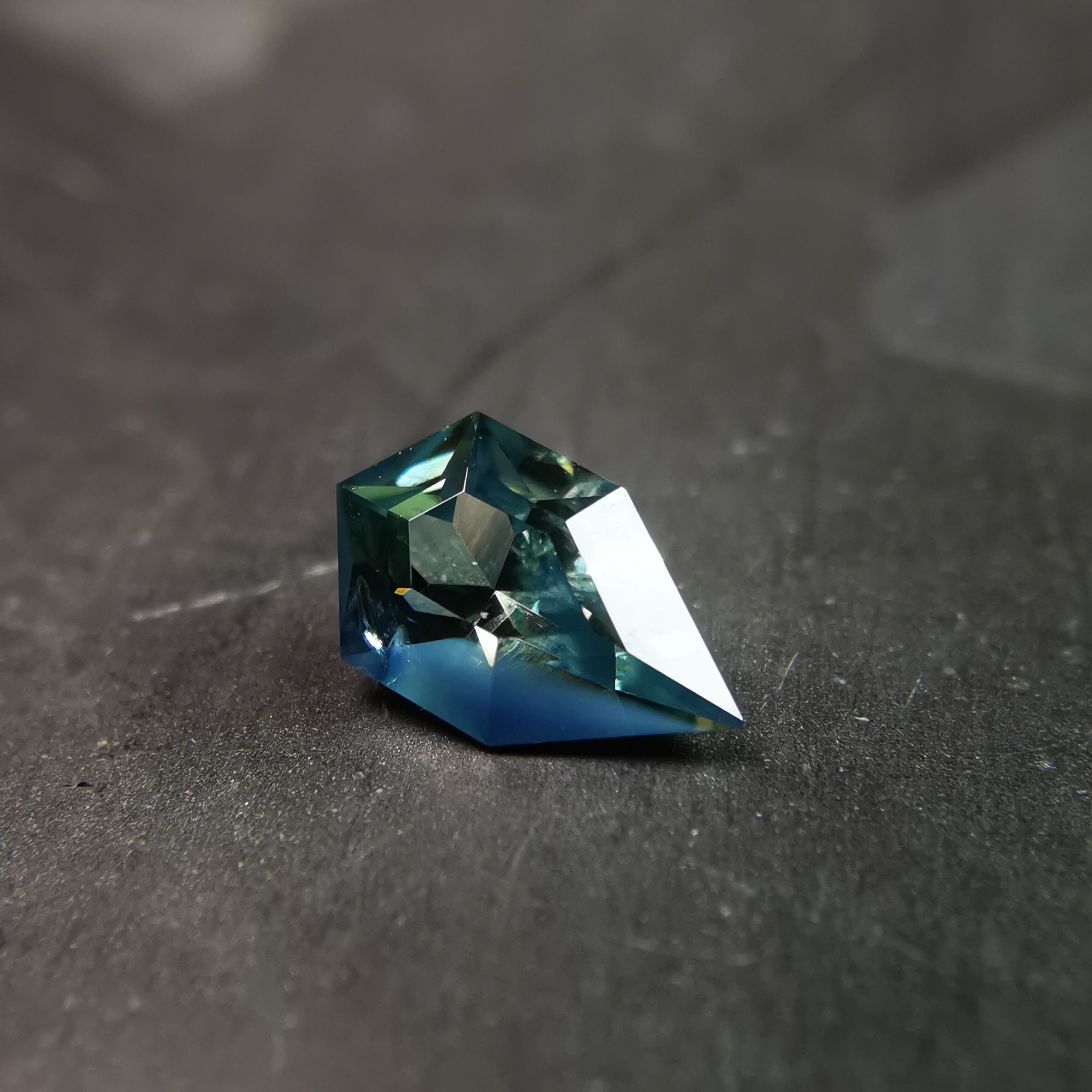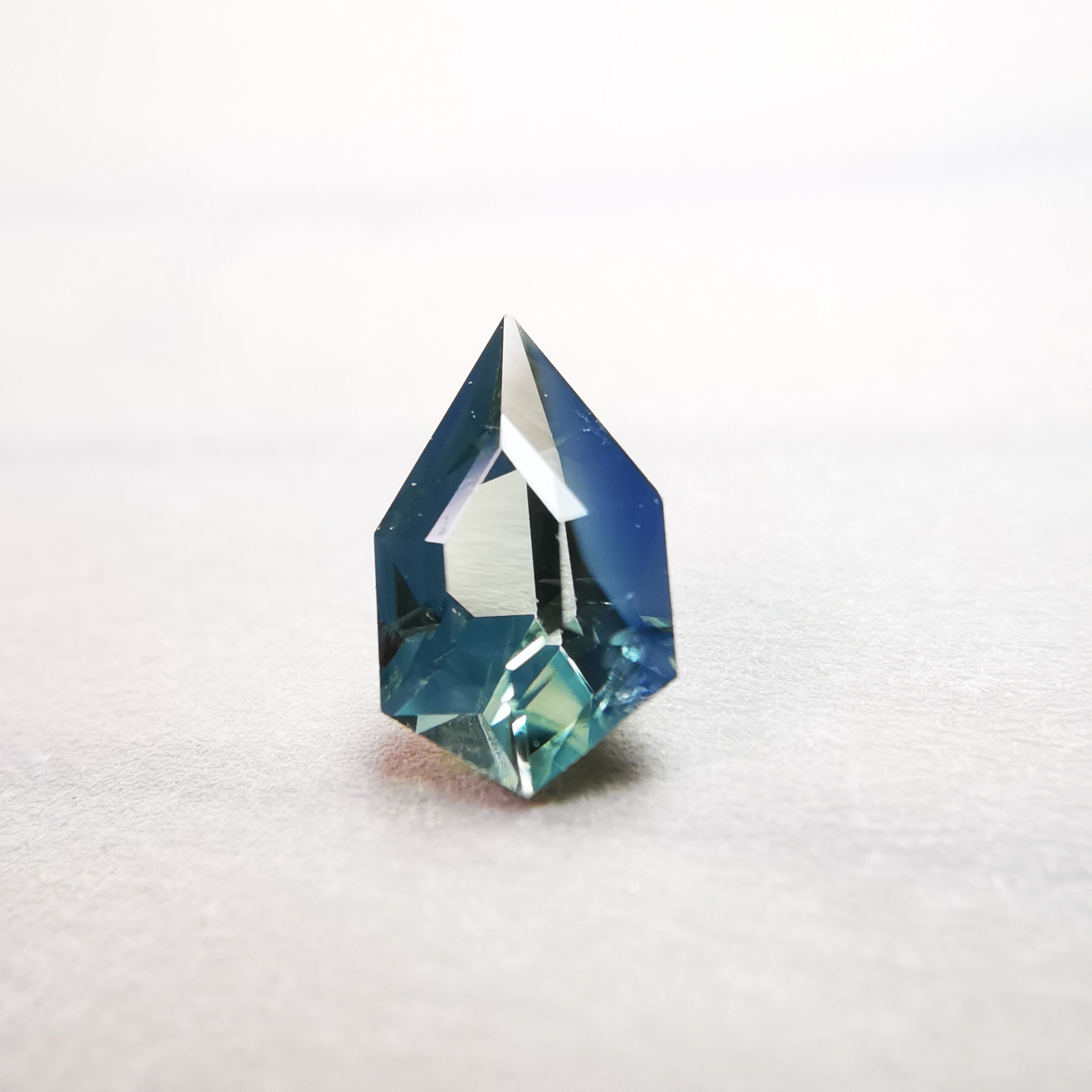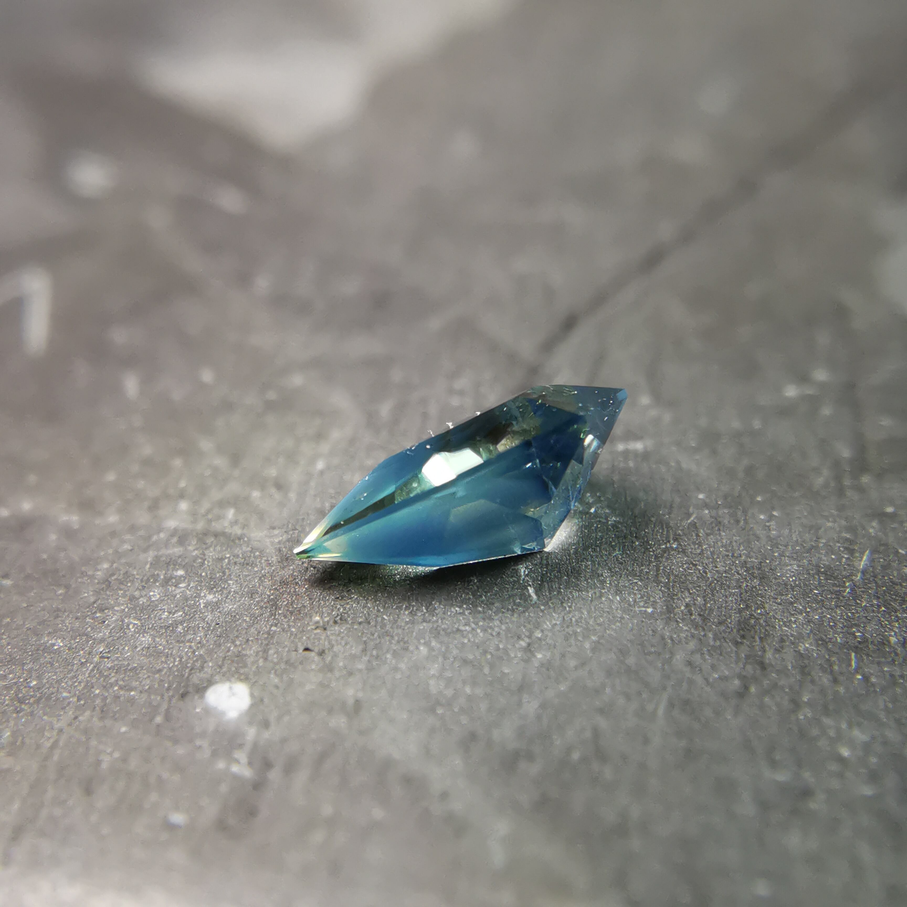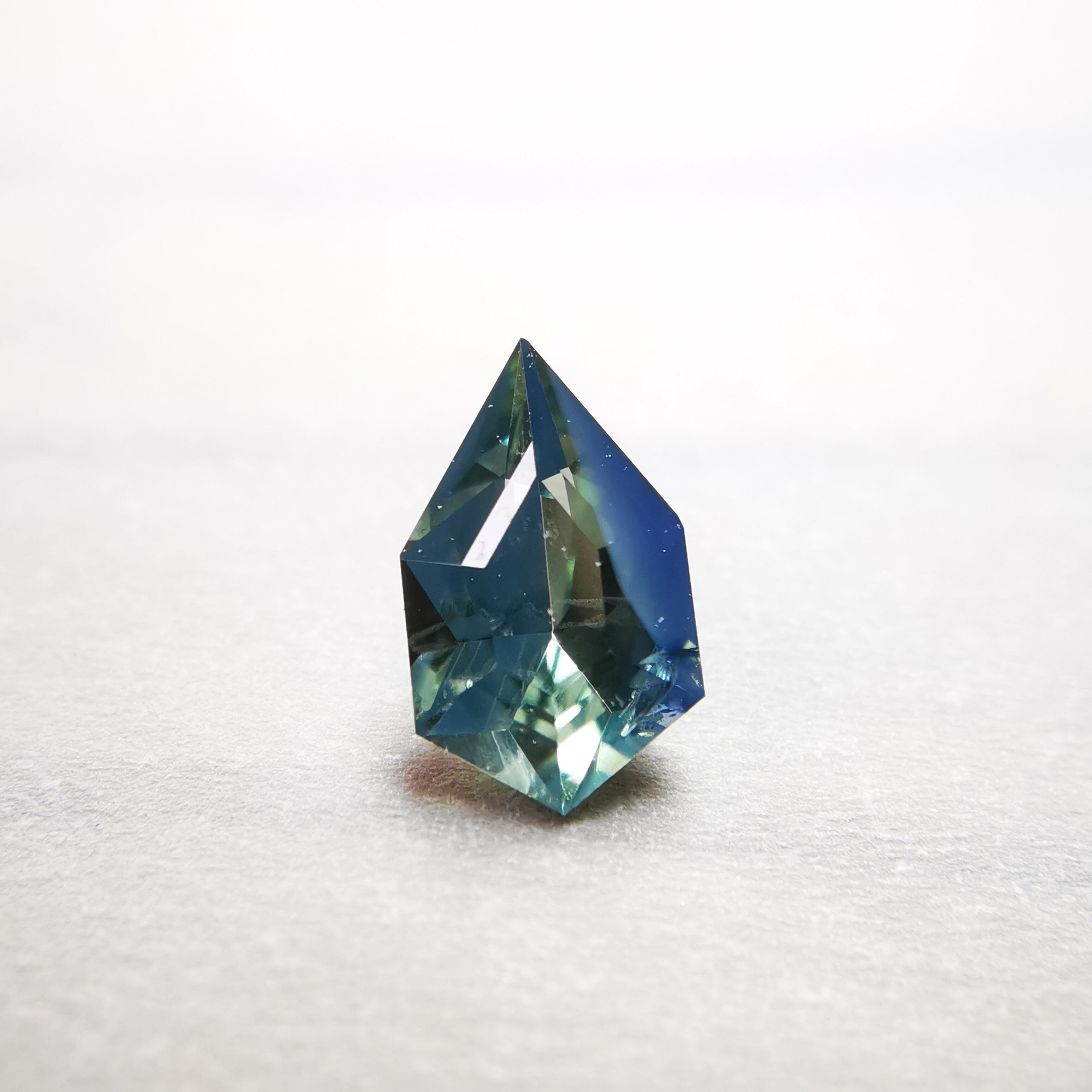 淡い緑みのサファイアの縁に、ミルキーブルーが入った一石です。