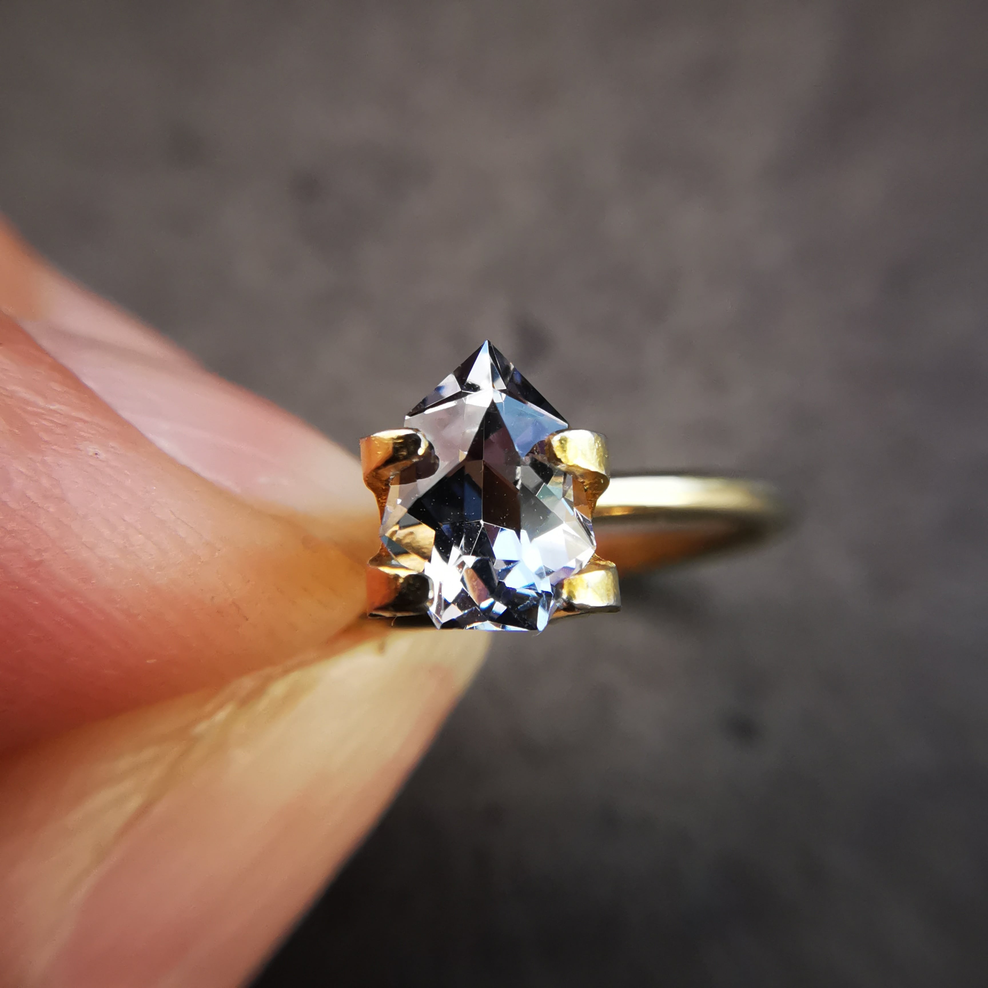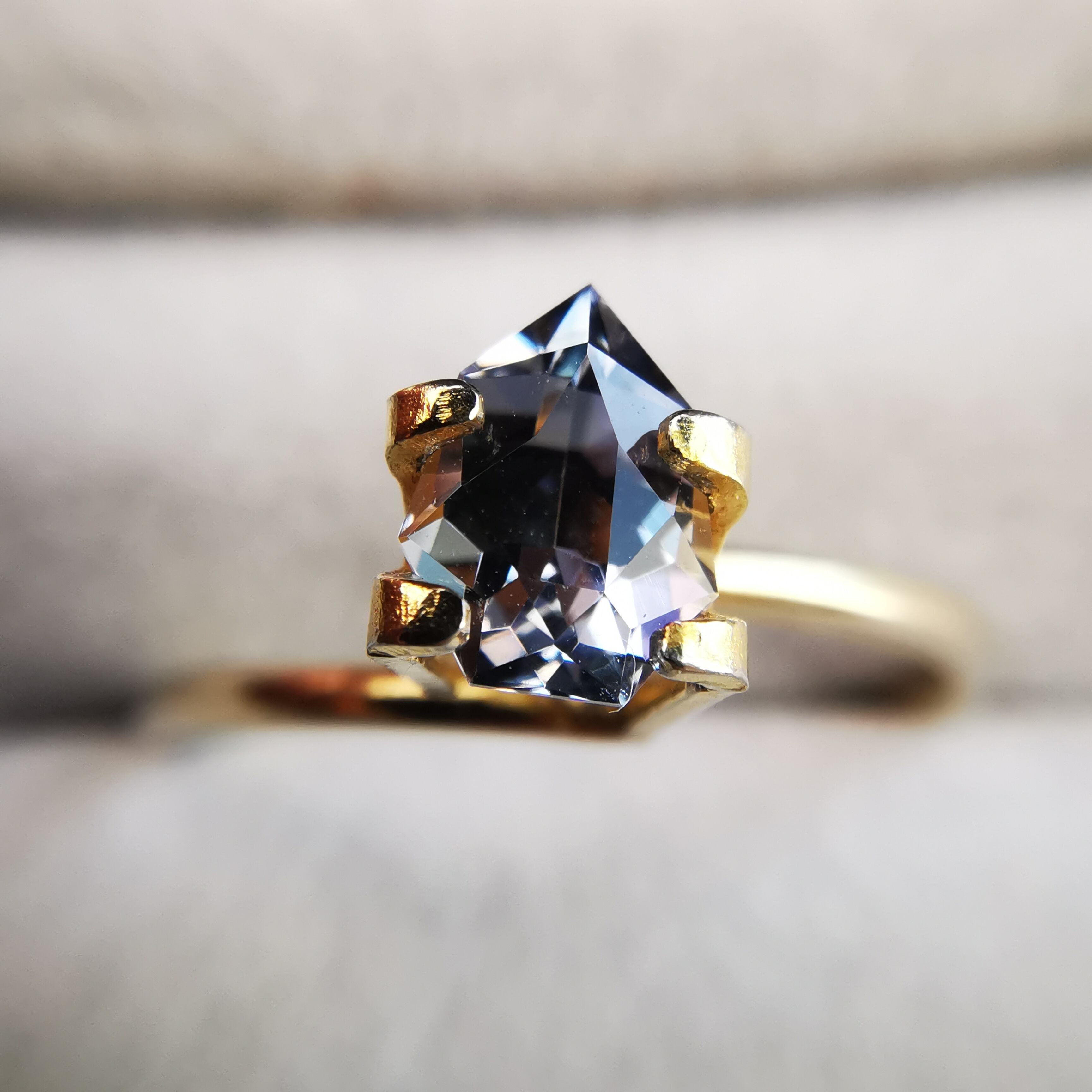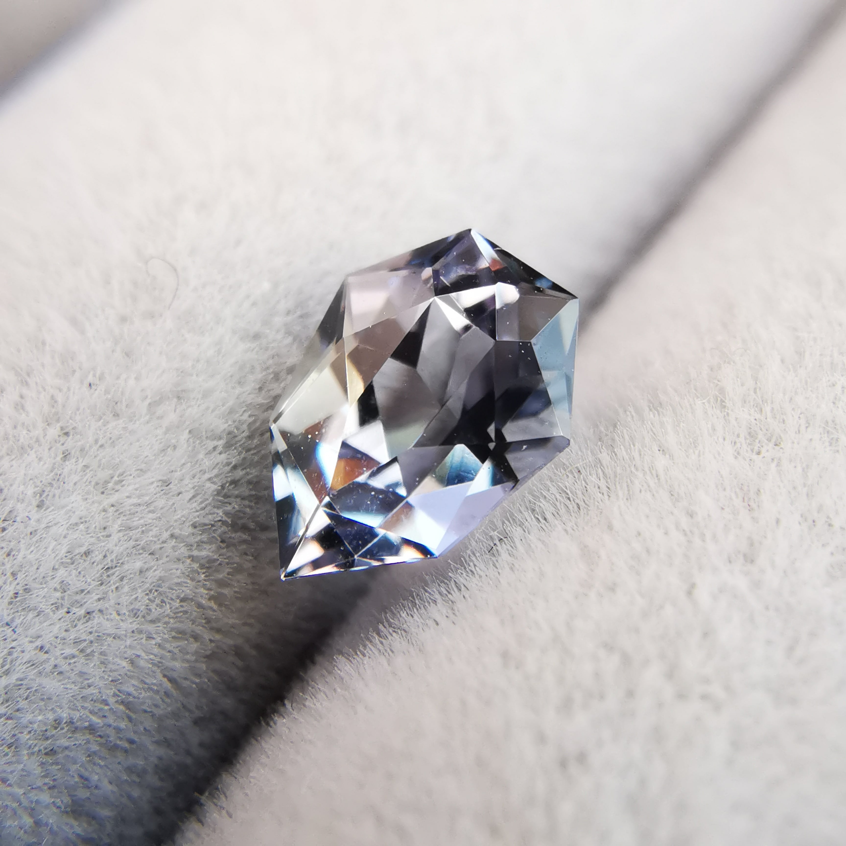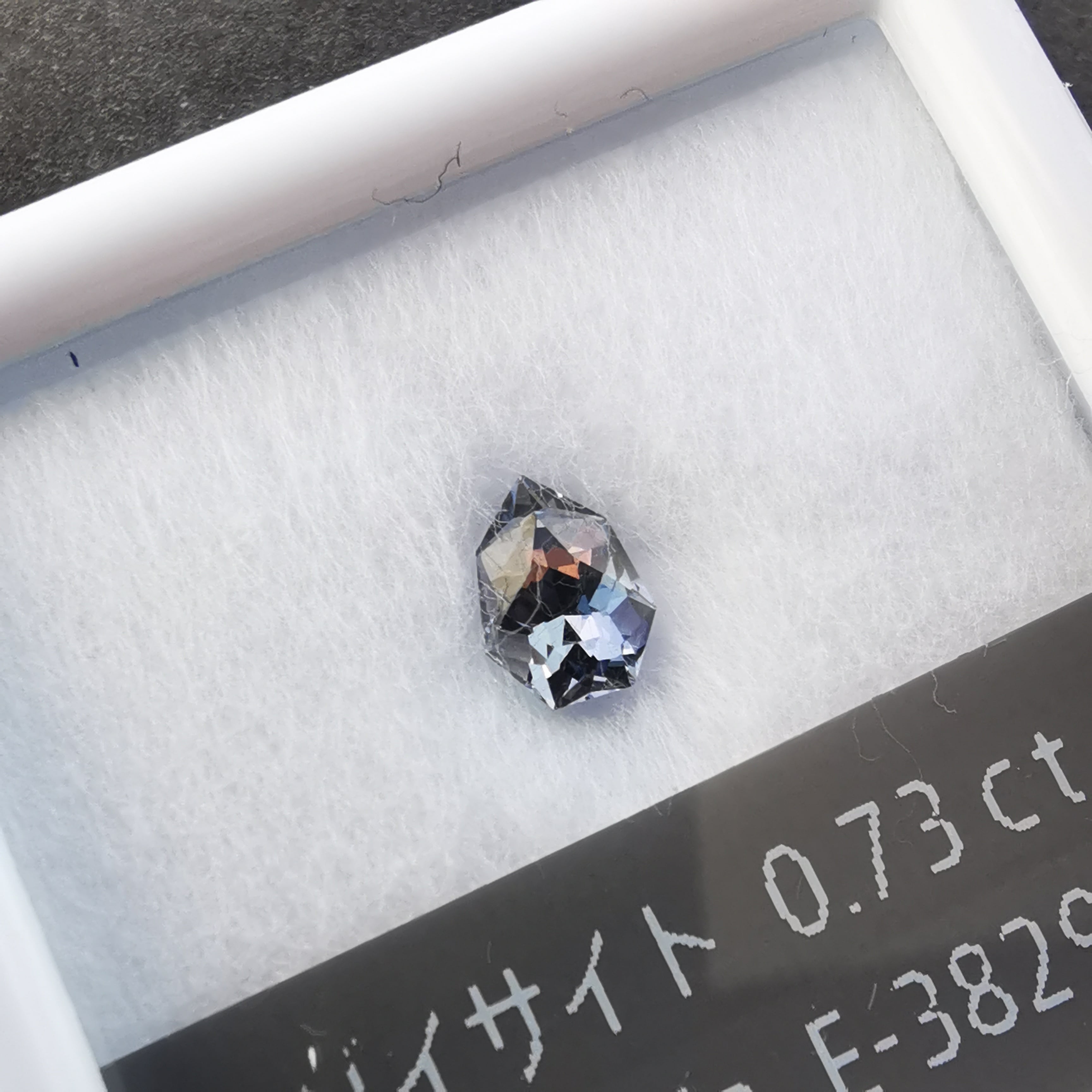 このゾイサイトが何色か、とても一言では言うことは出来ませんが、一見した時の印象は紫みグレーです。
