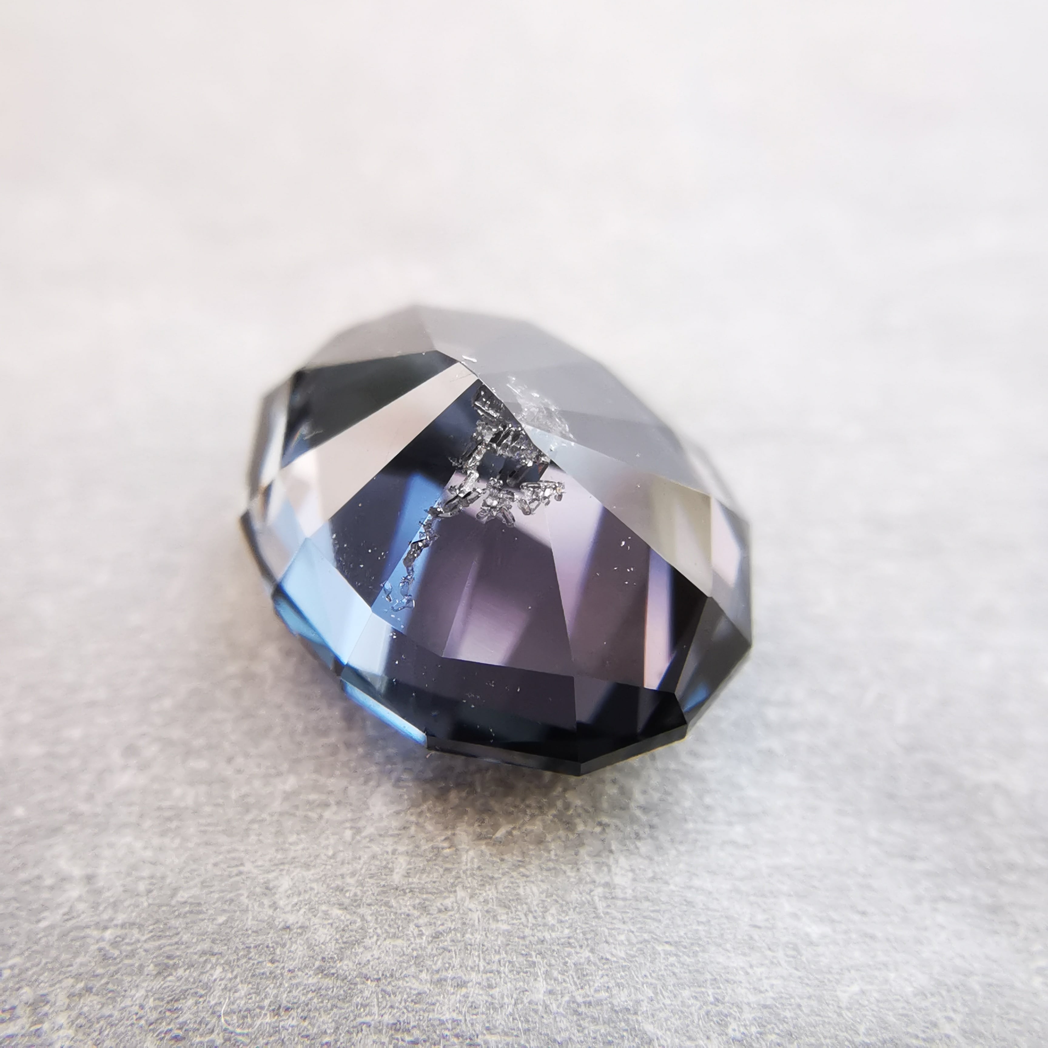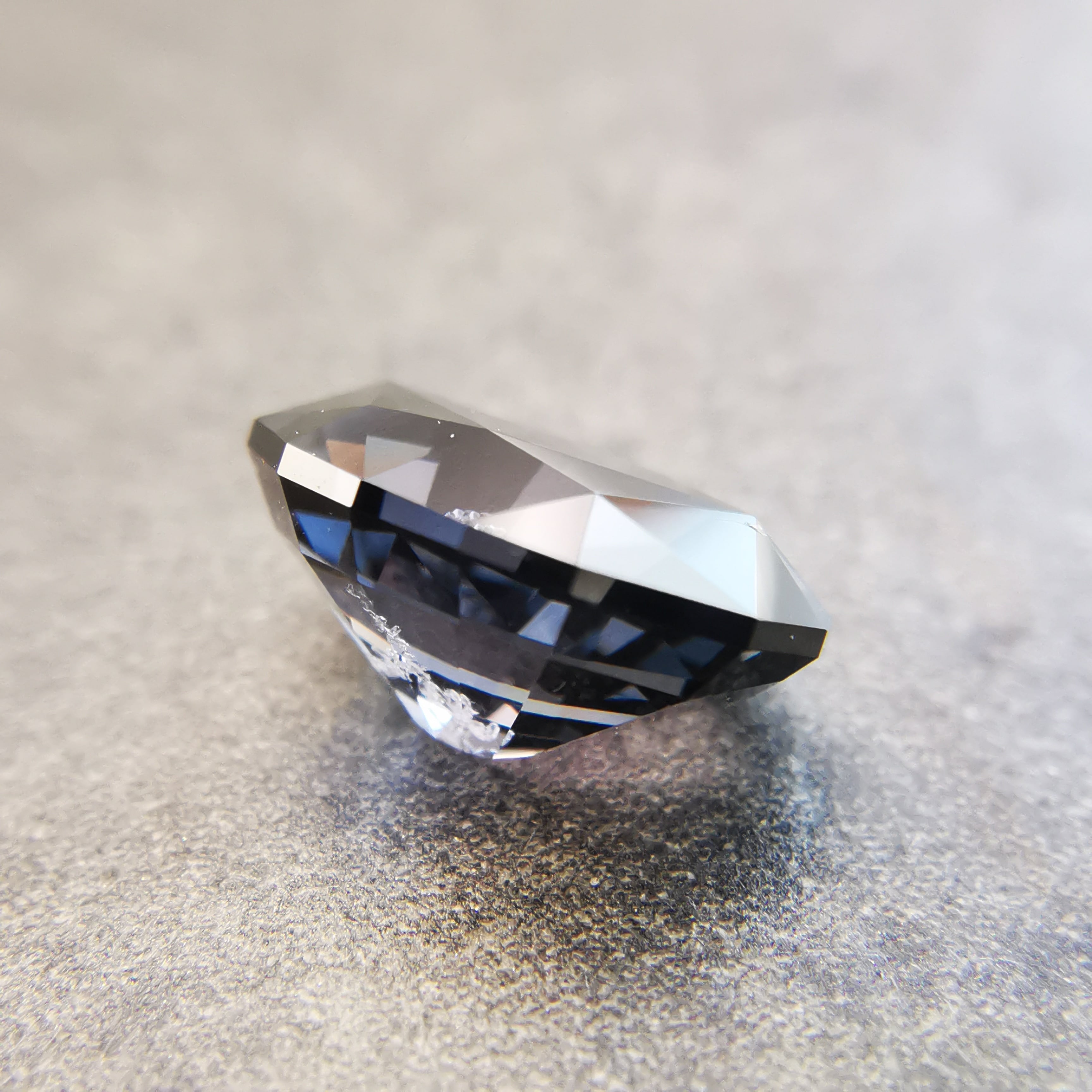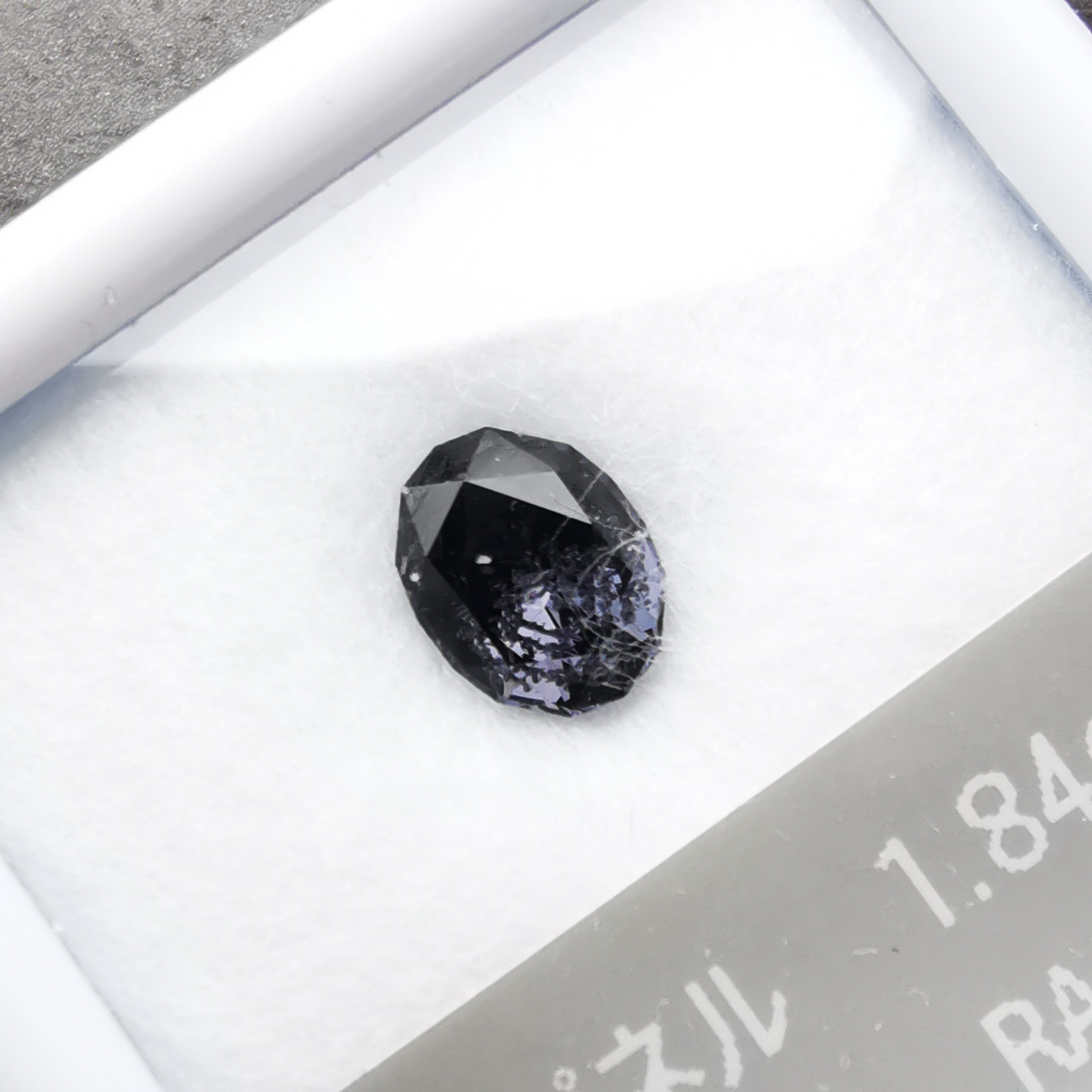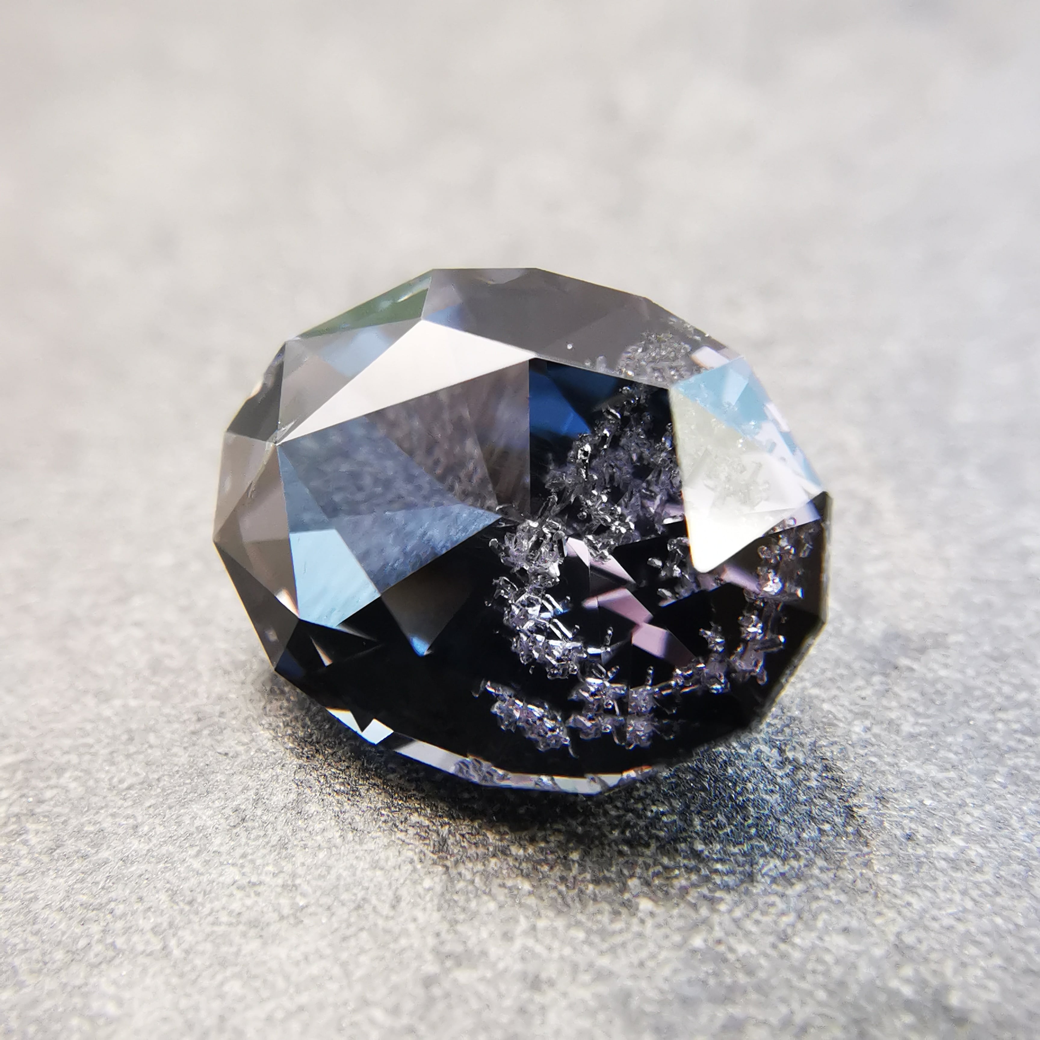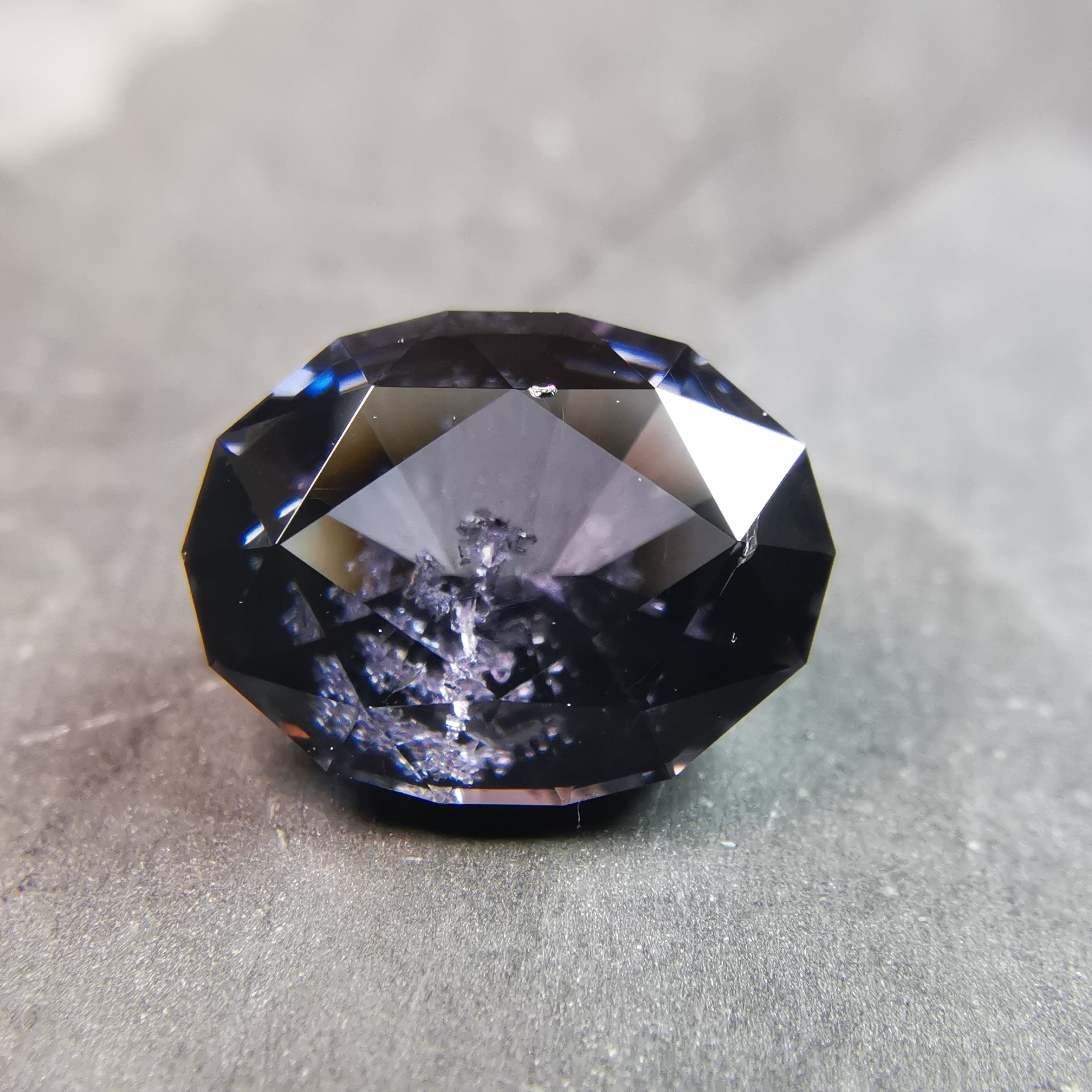 無彩色に近い、暗い灰みの紫/滅紫色のスピネルです。