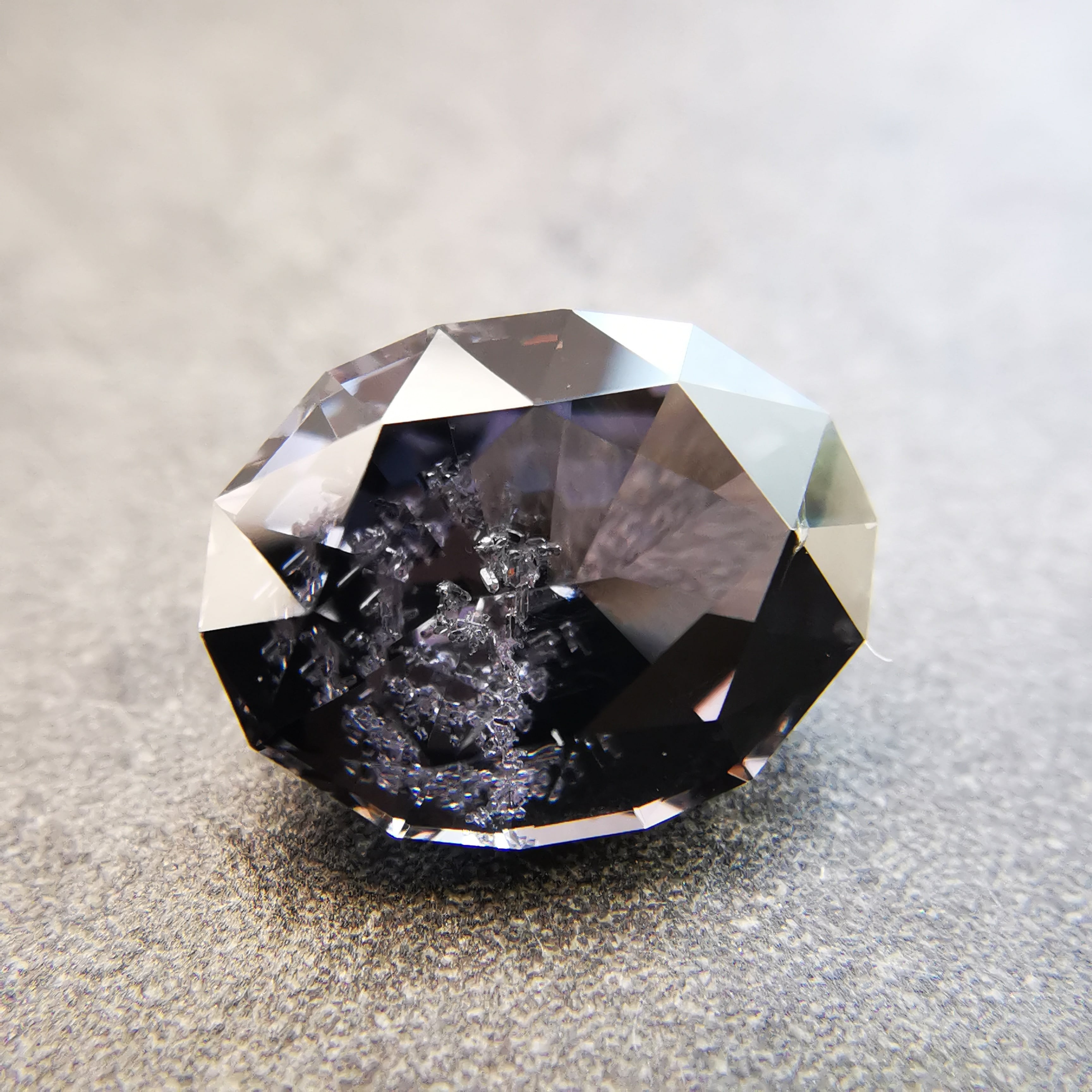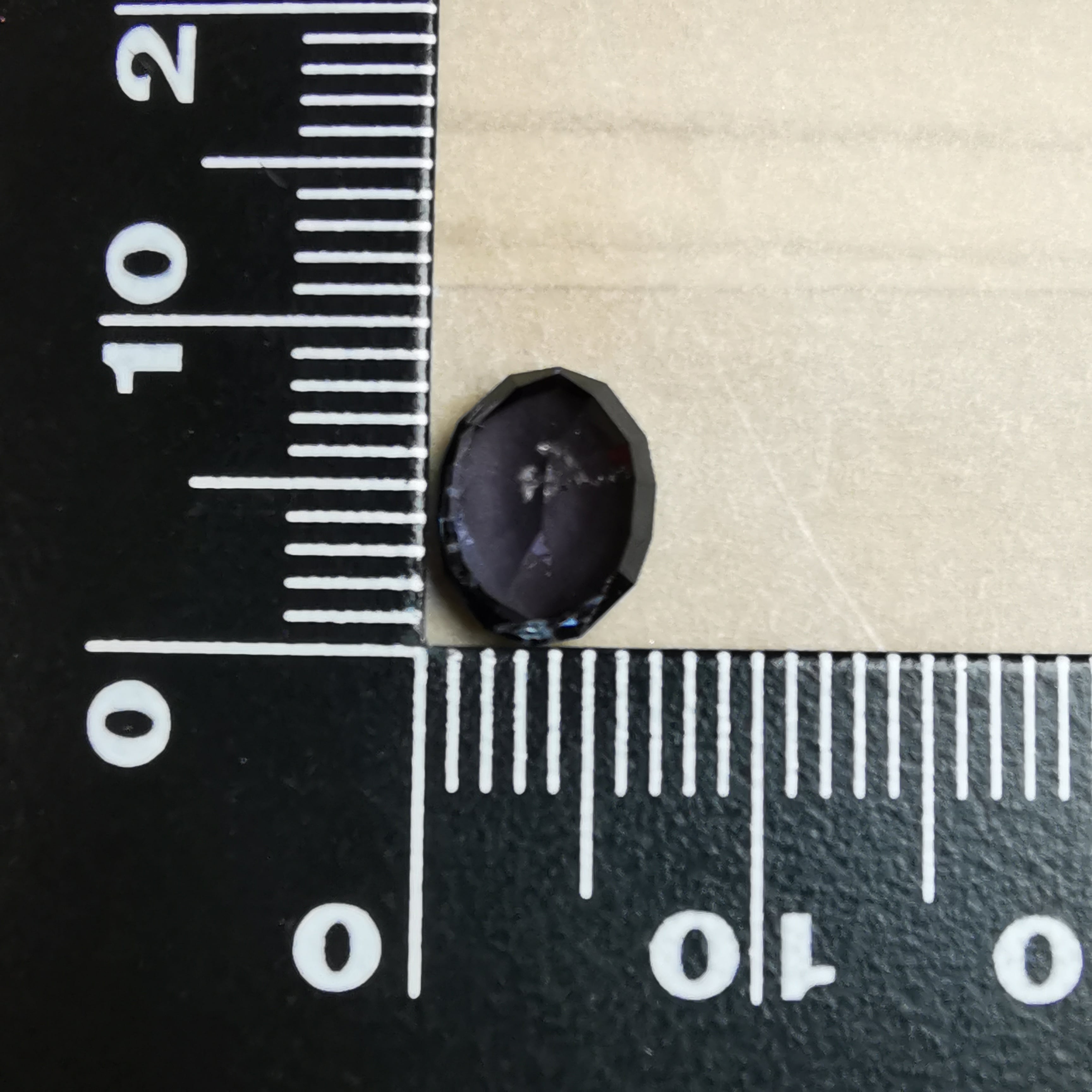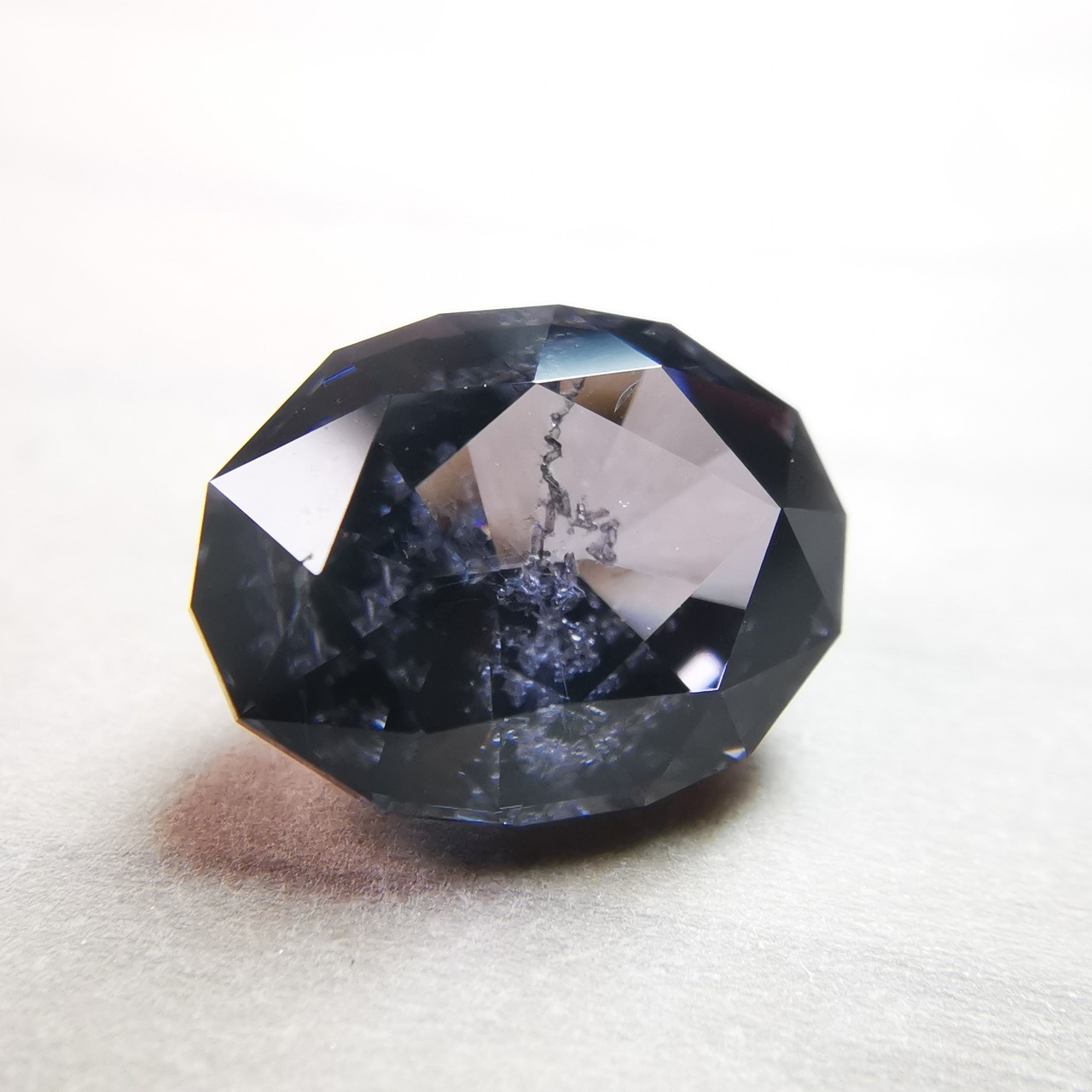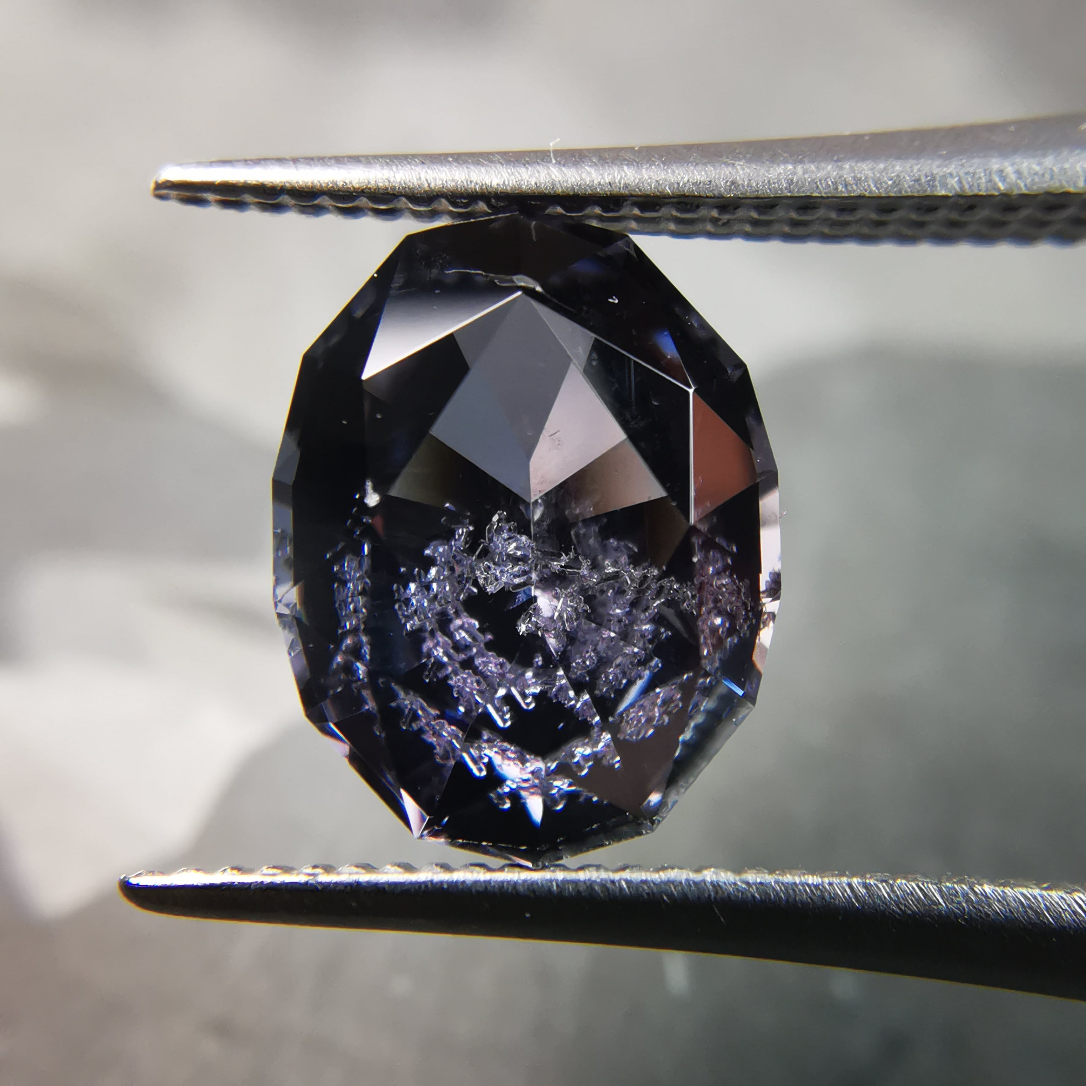 無彩色に近い、暗い灰みの紫/滅紫色のスピネルです。