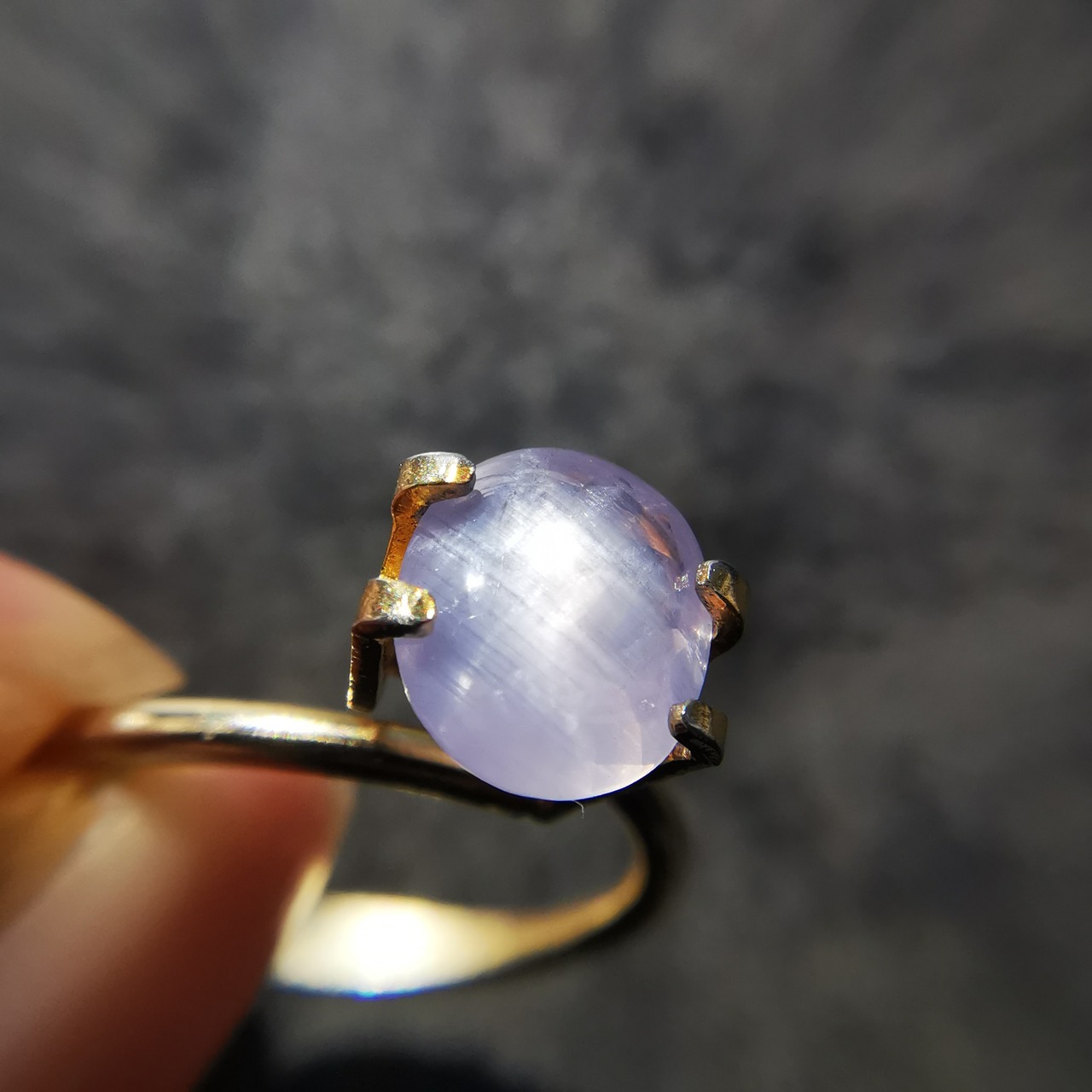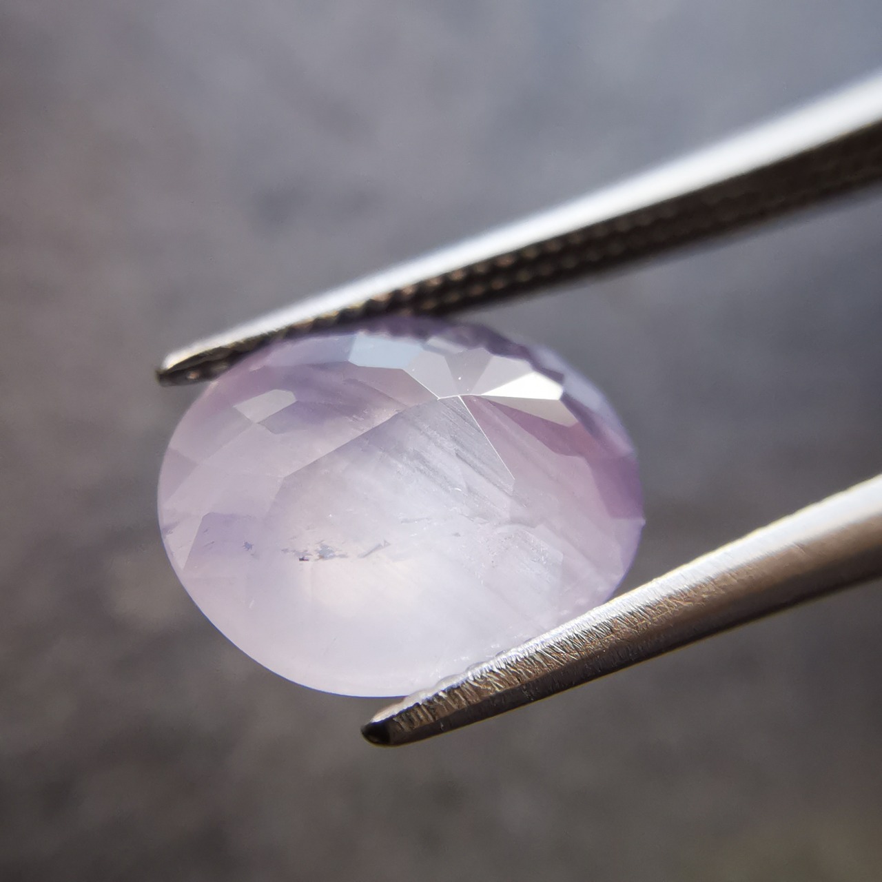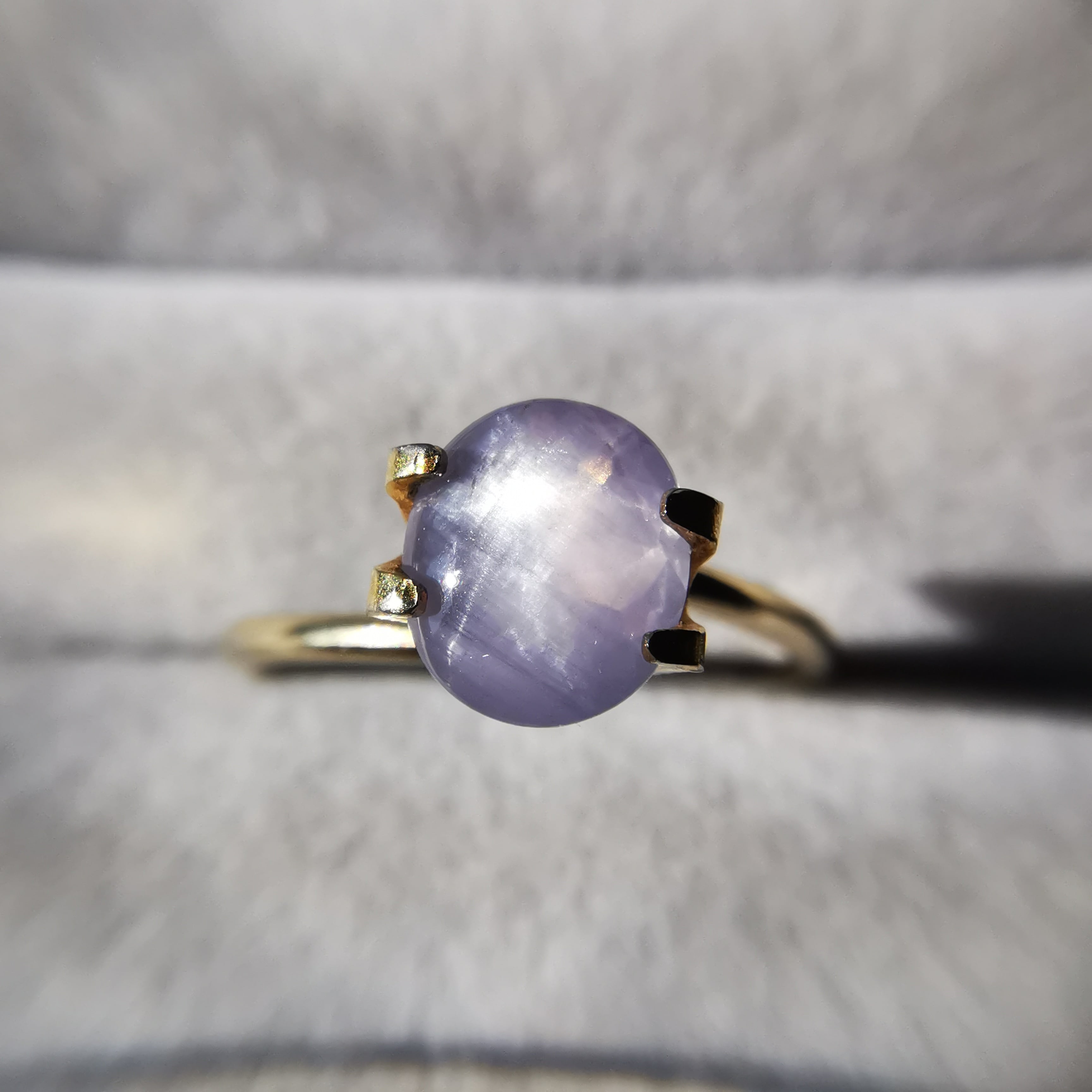 柔らかな灰みの紫/薄色のスターサファイアです。