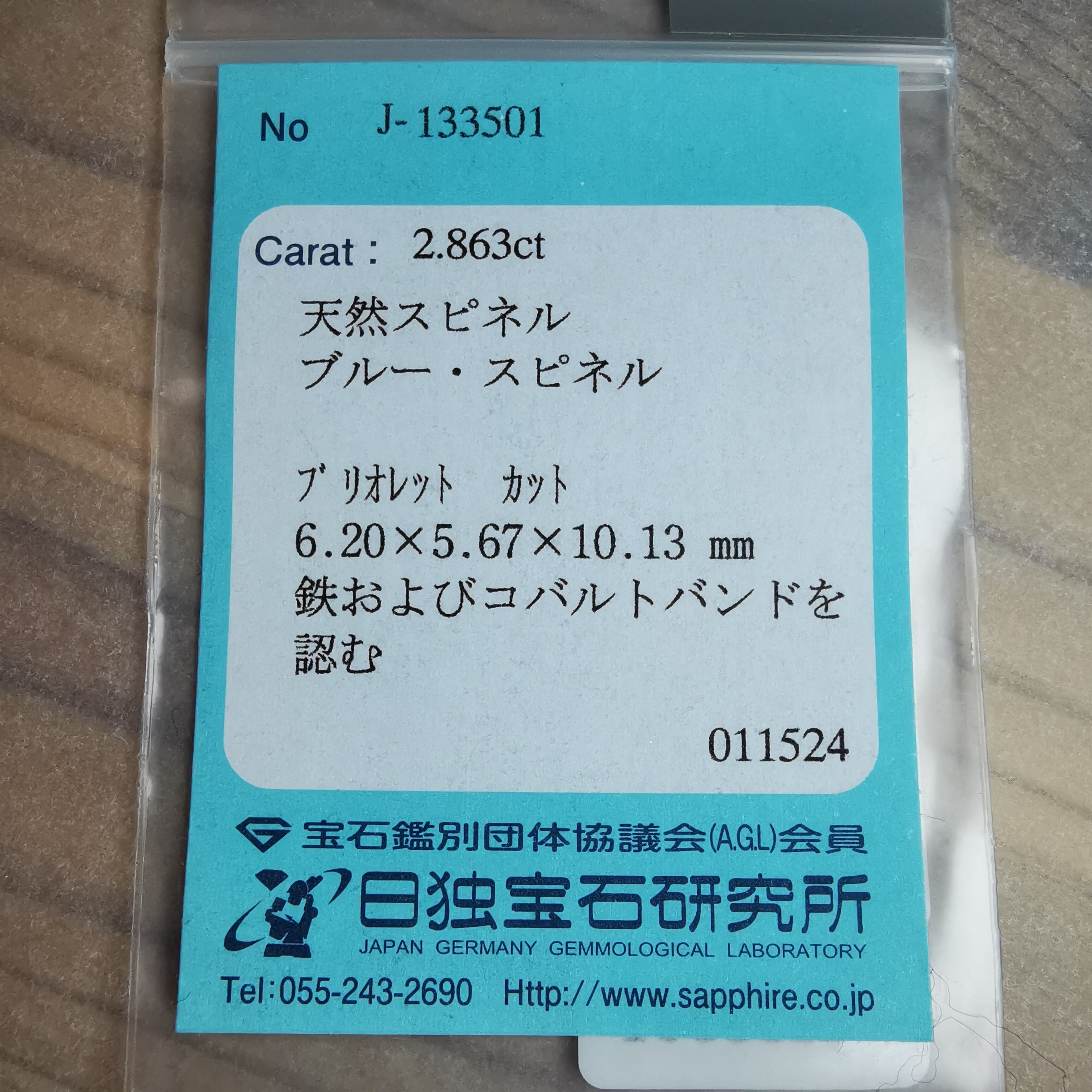 スピネル 2.863ct / P-1101 コバルト含有