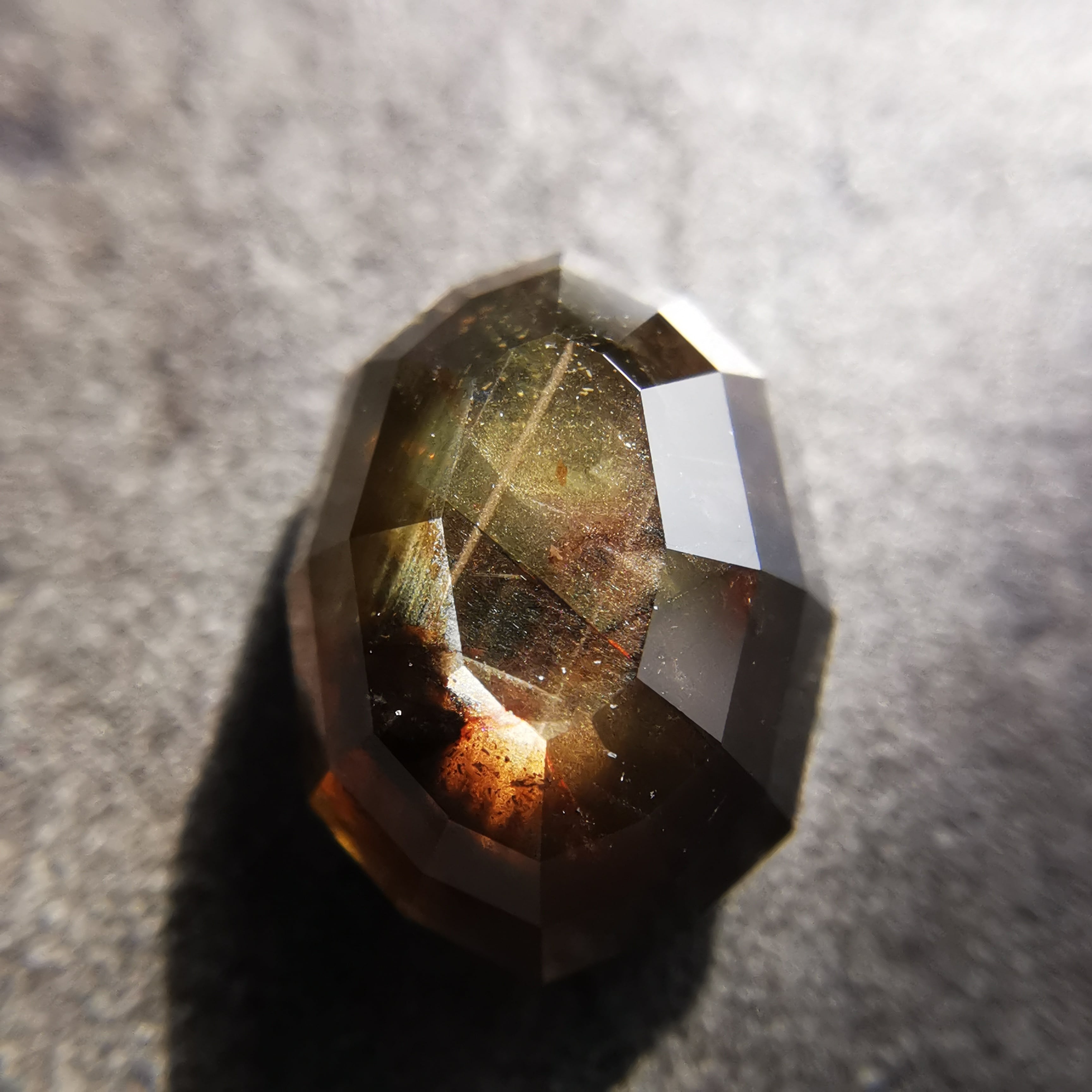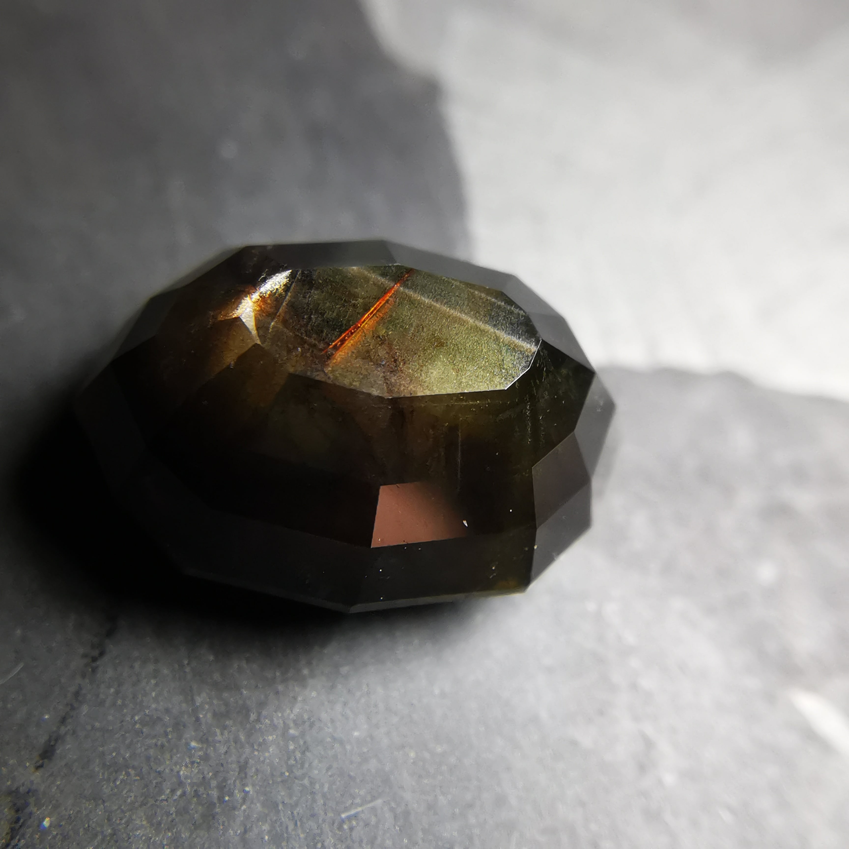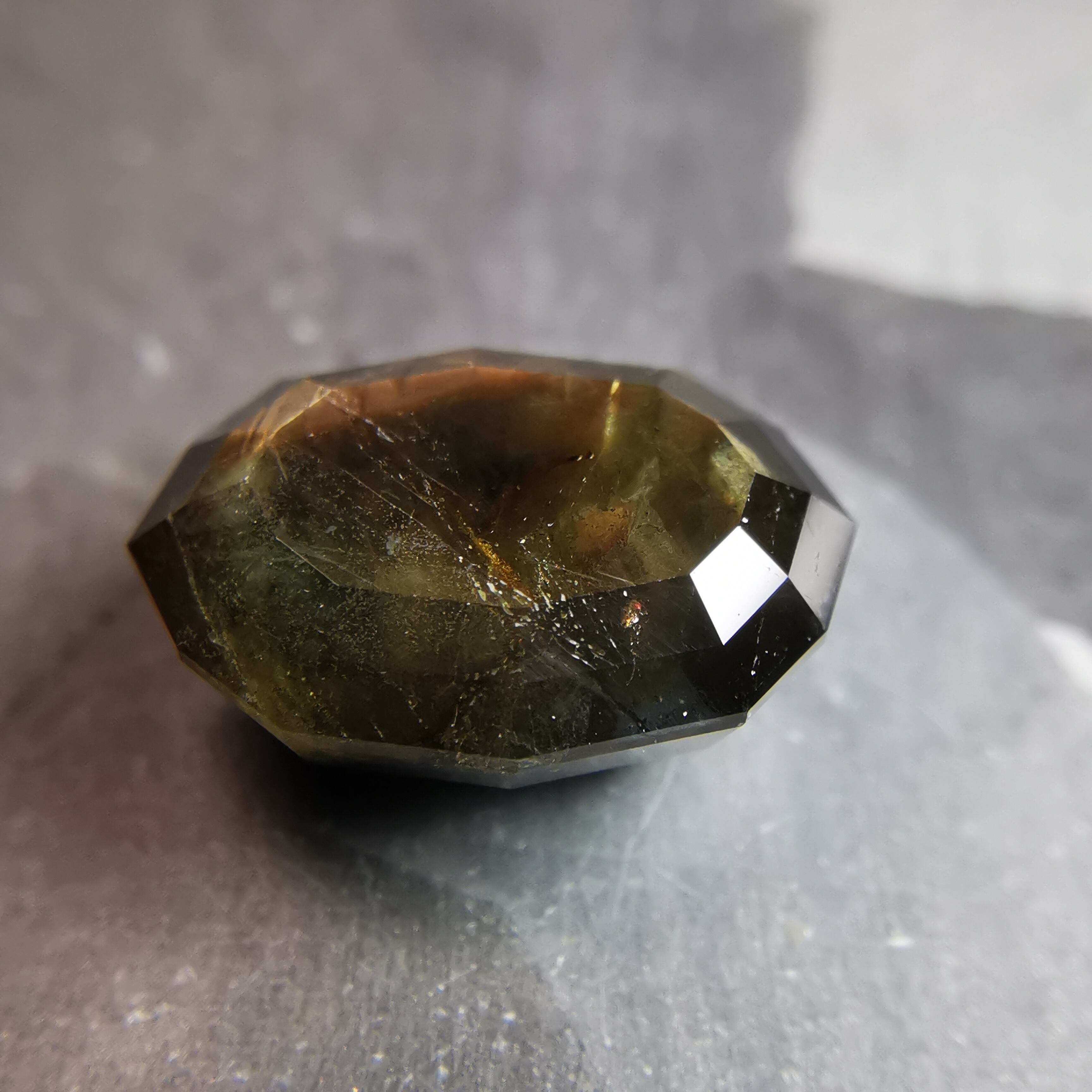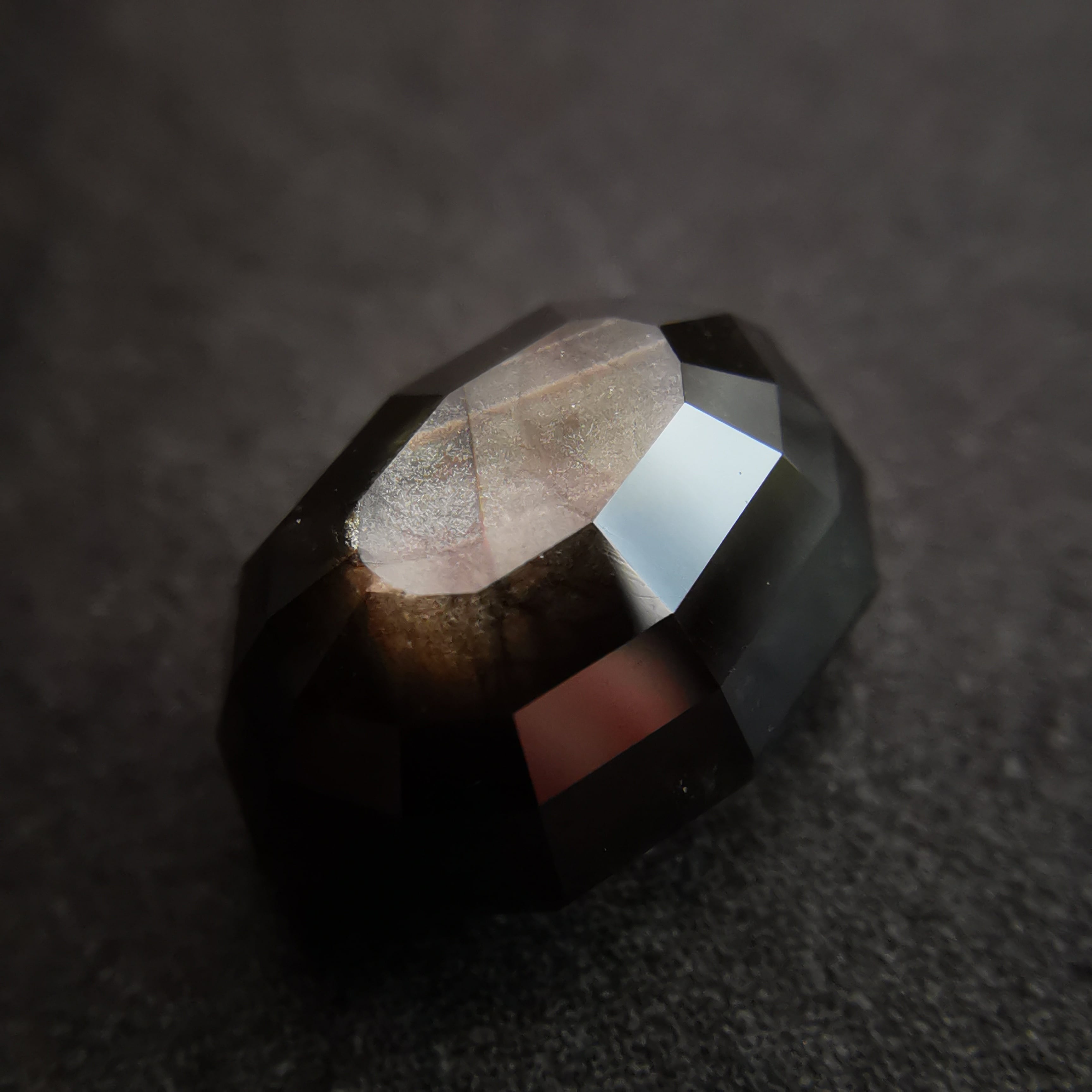 赤みの黄みの黒/憲房色のスターサファイアをフラットバックにリカットしました。
