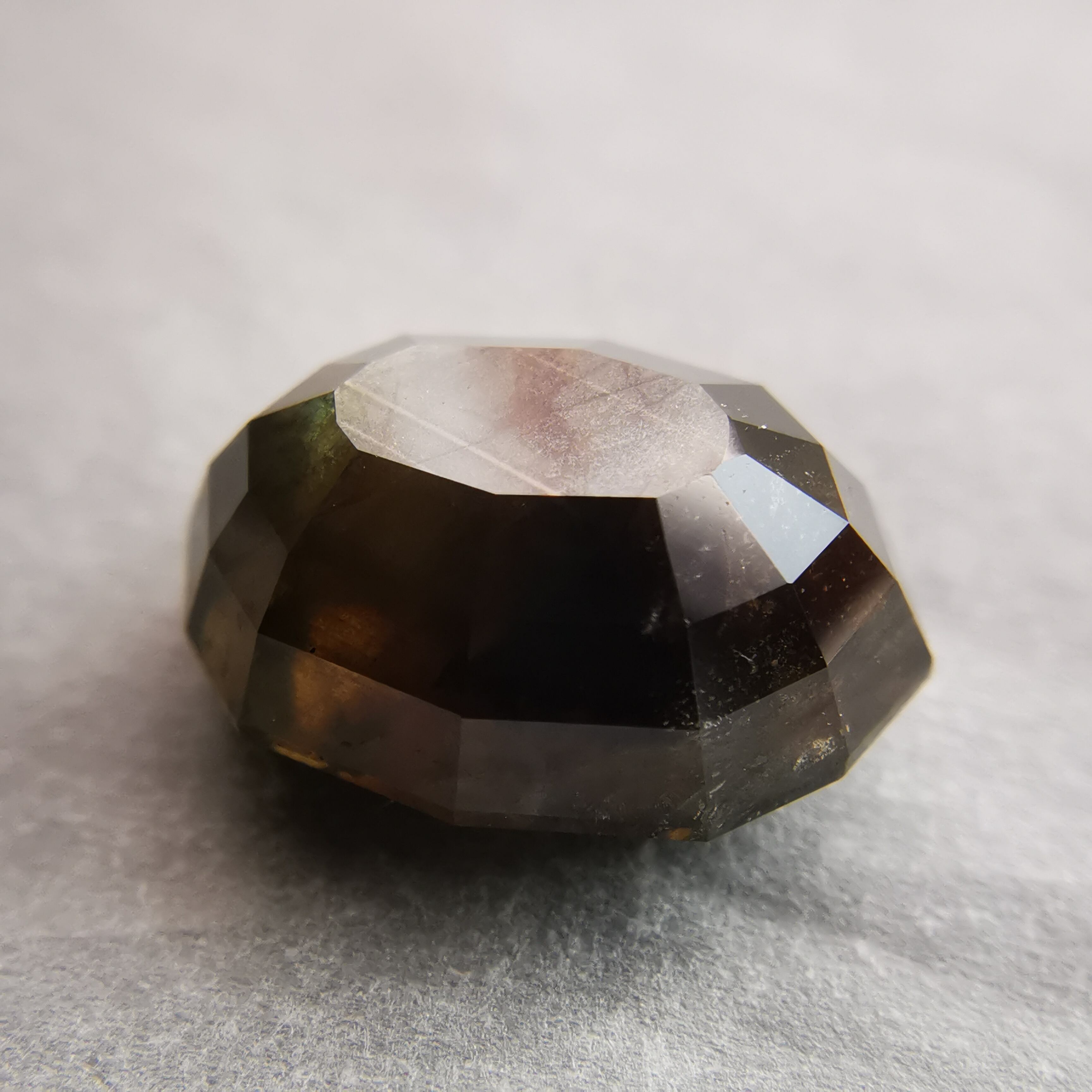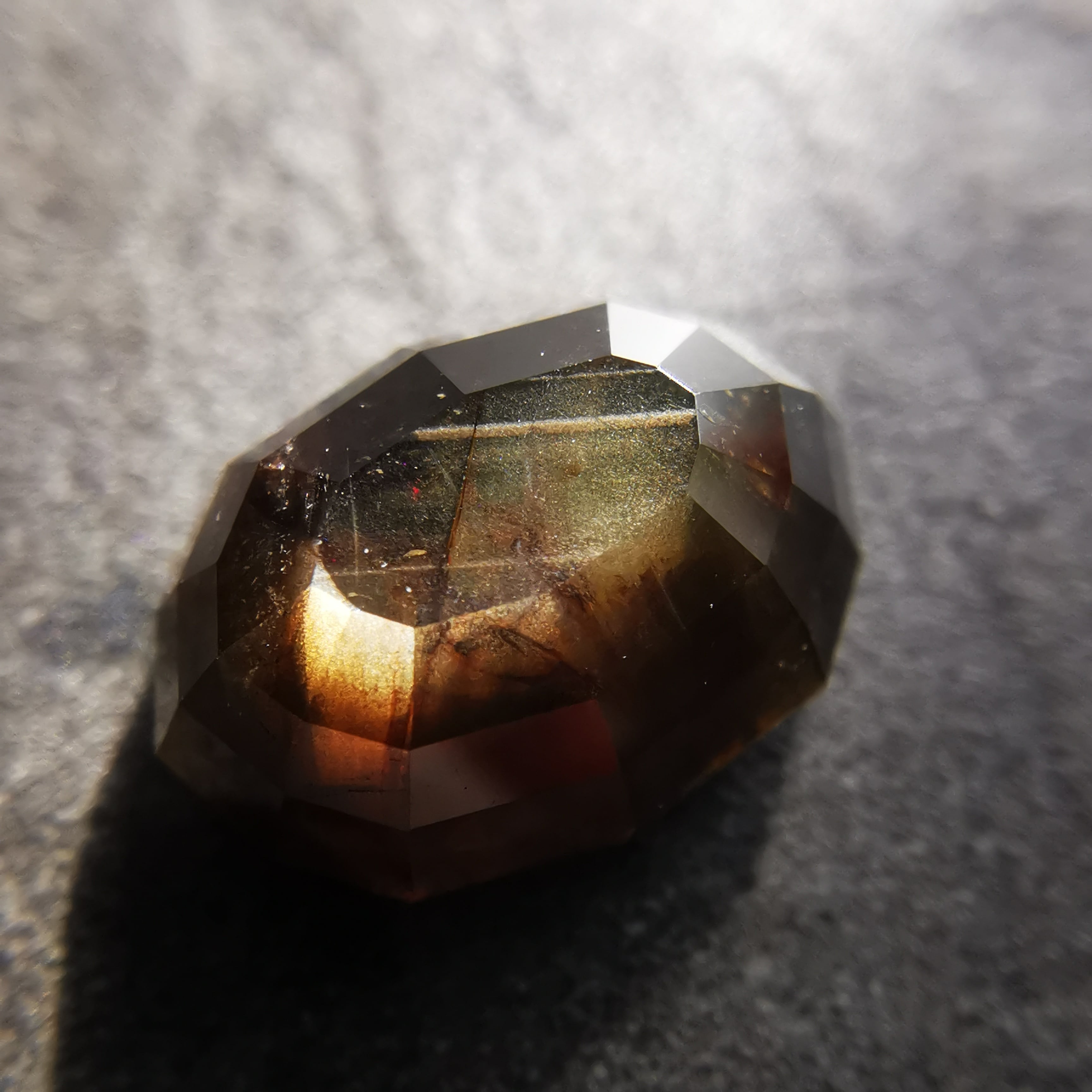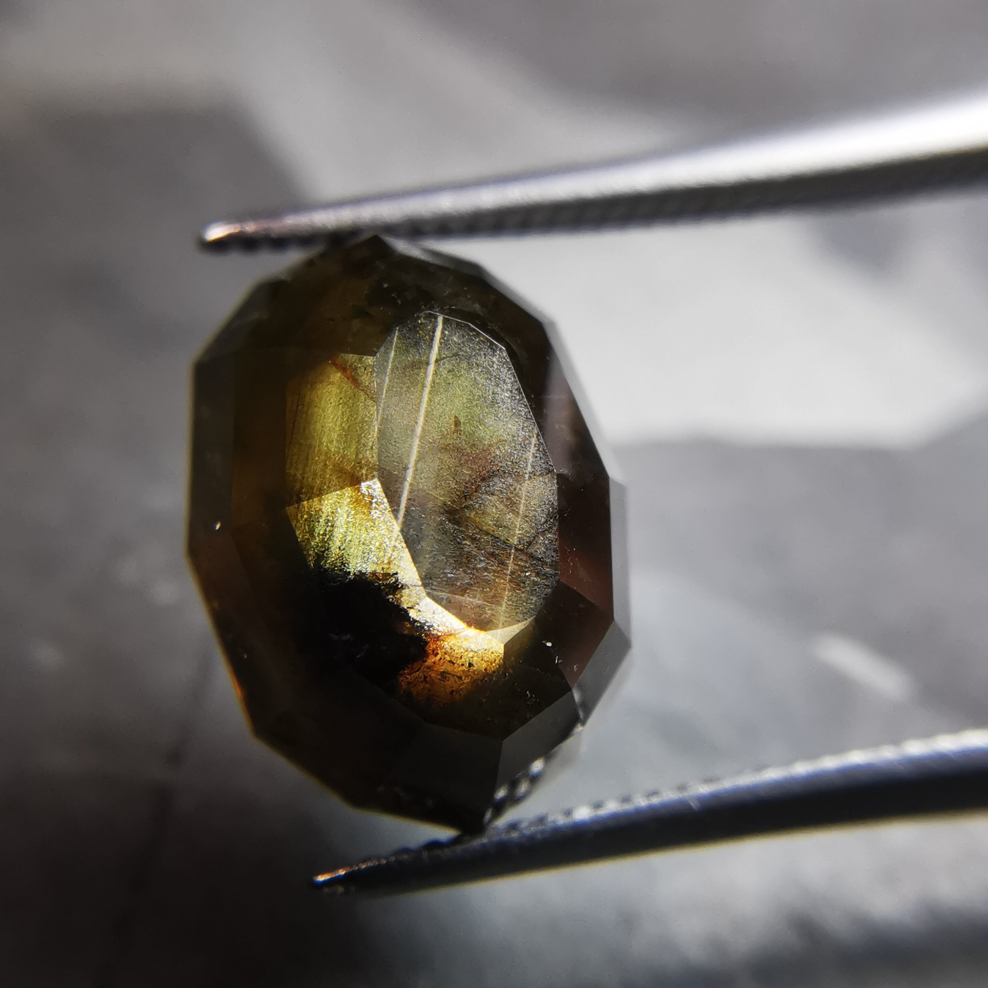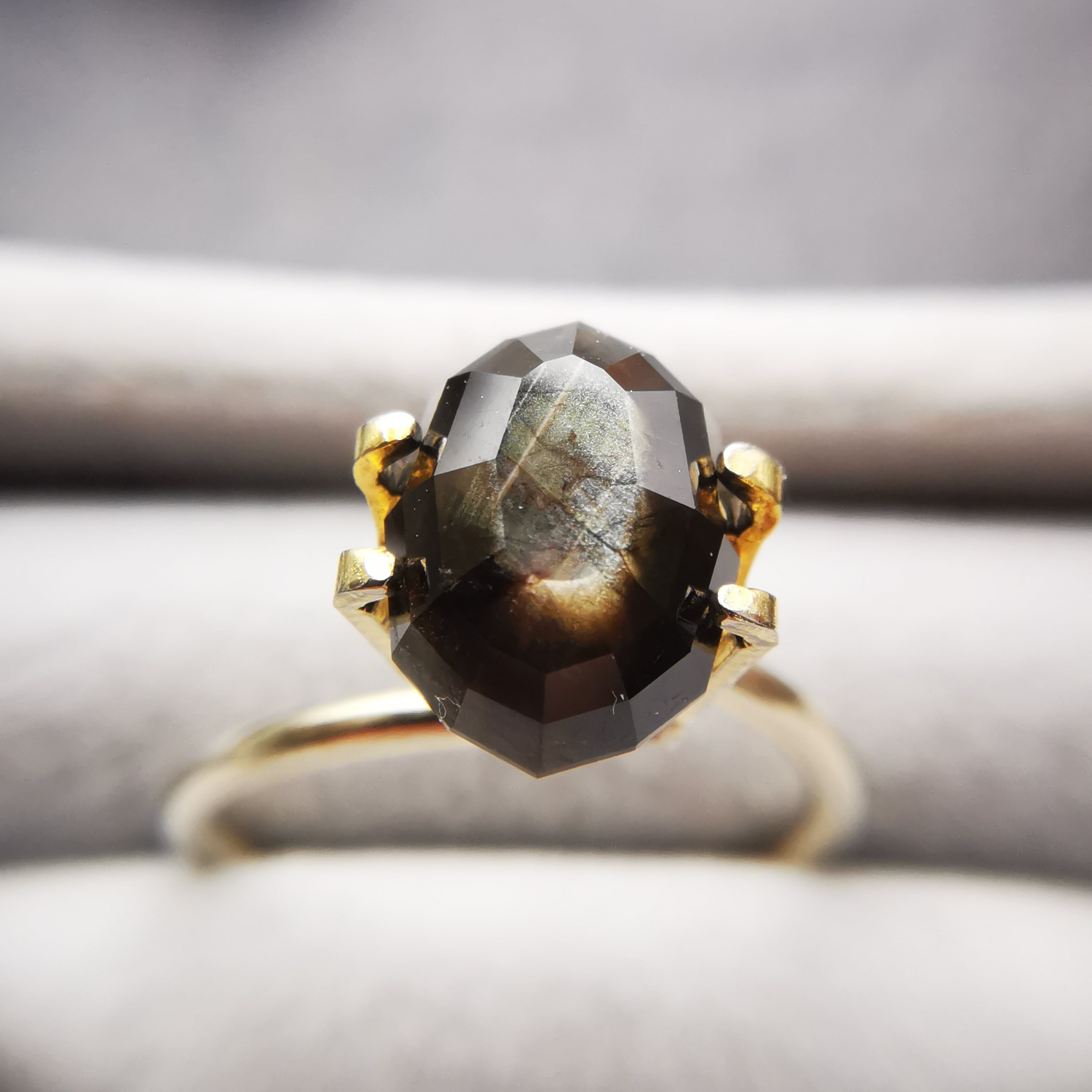赤みの黄みの黒/憲房色のスターサファイアをフラットバックにリカットしました。