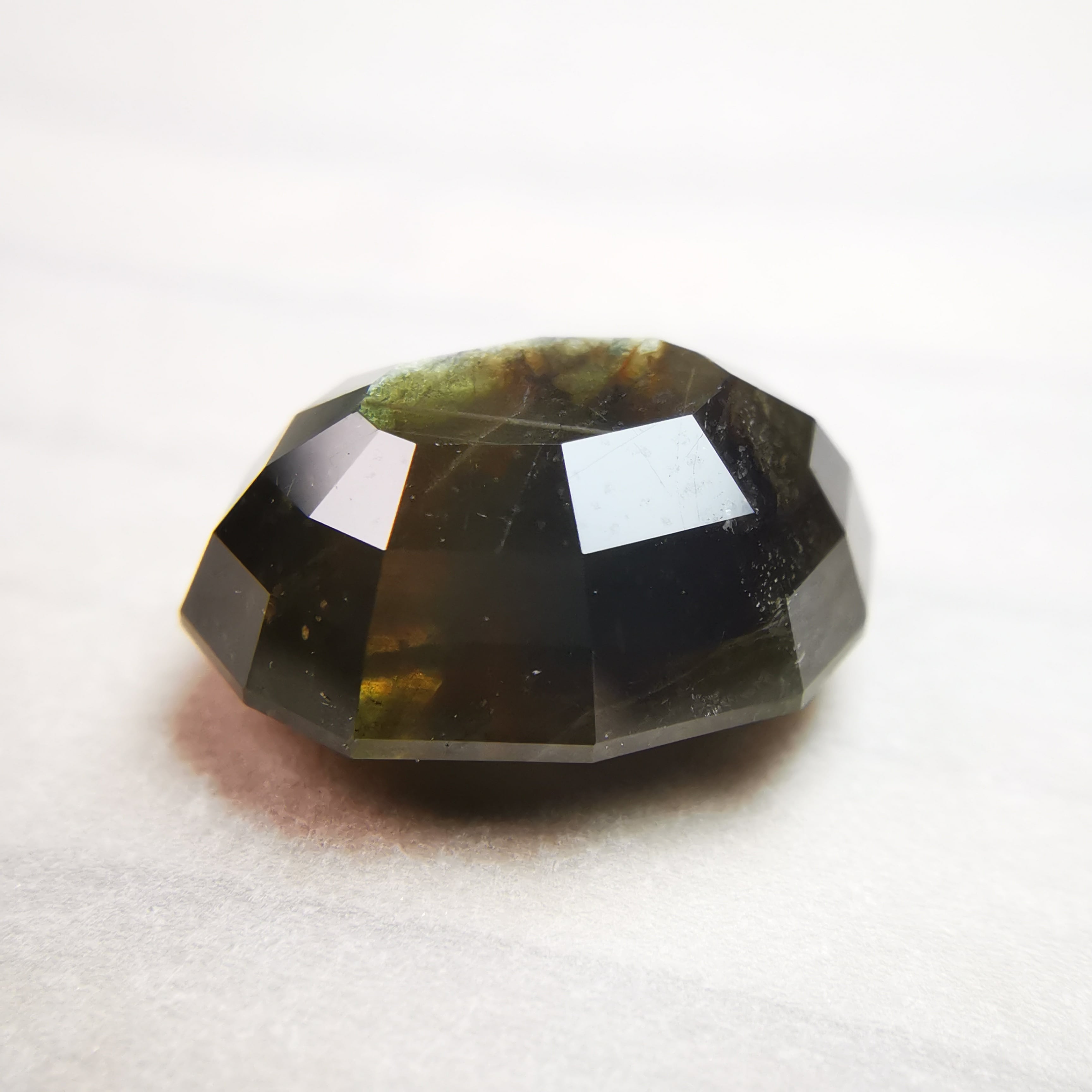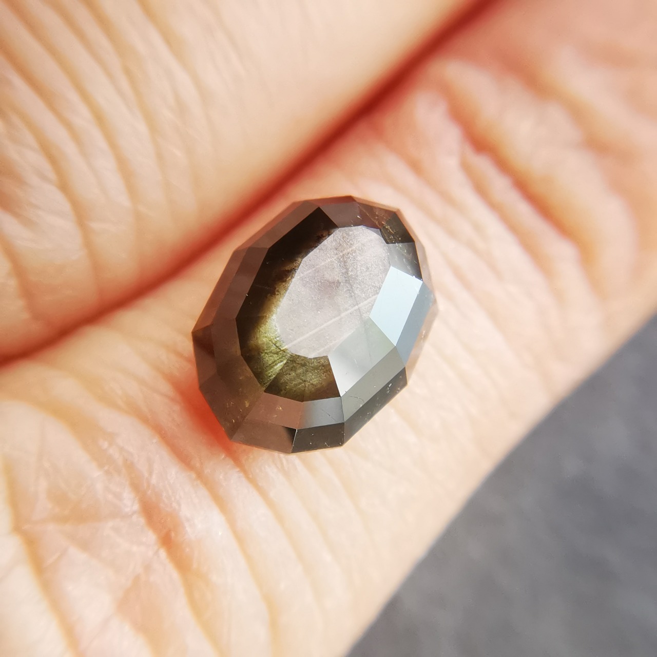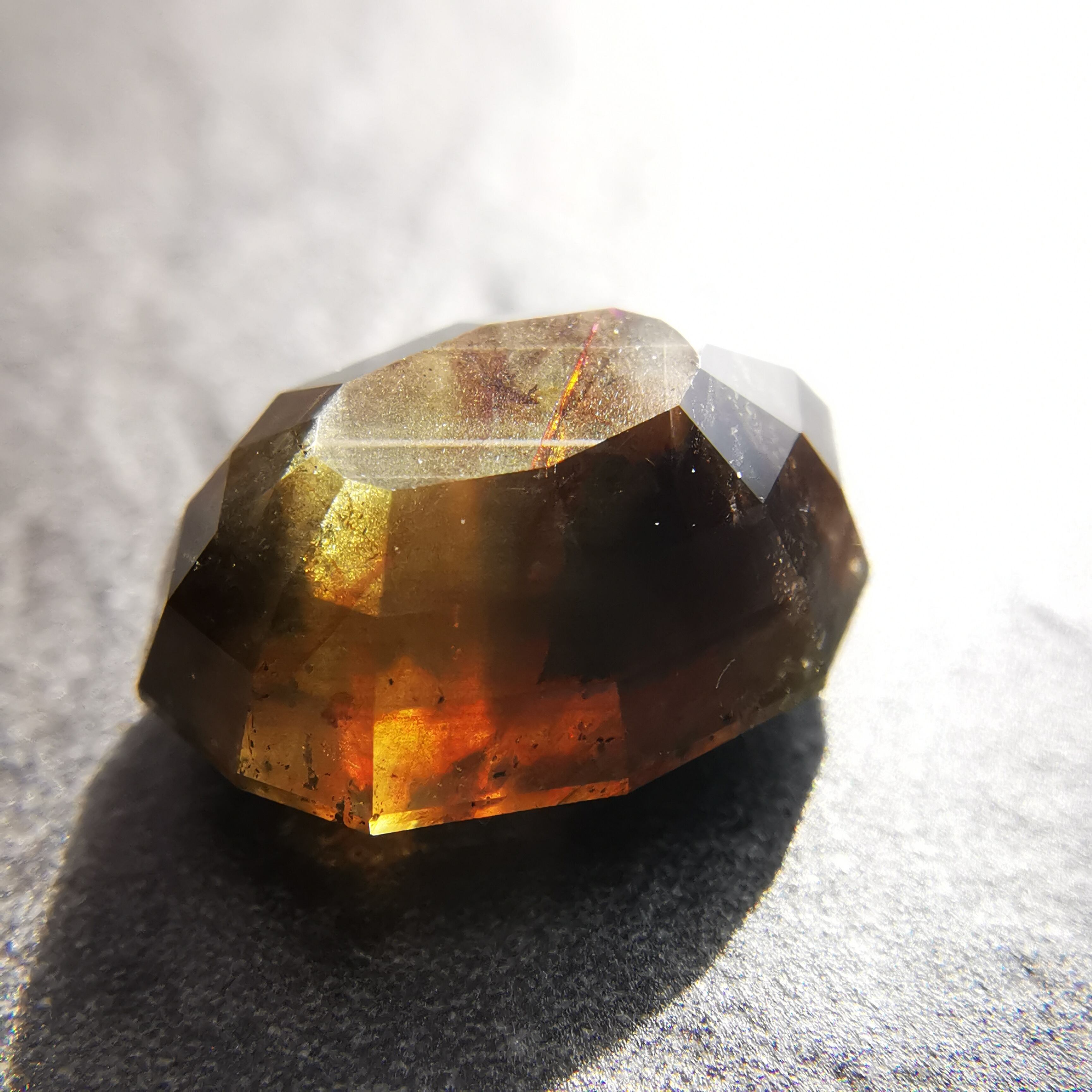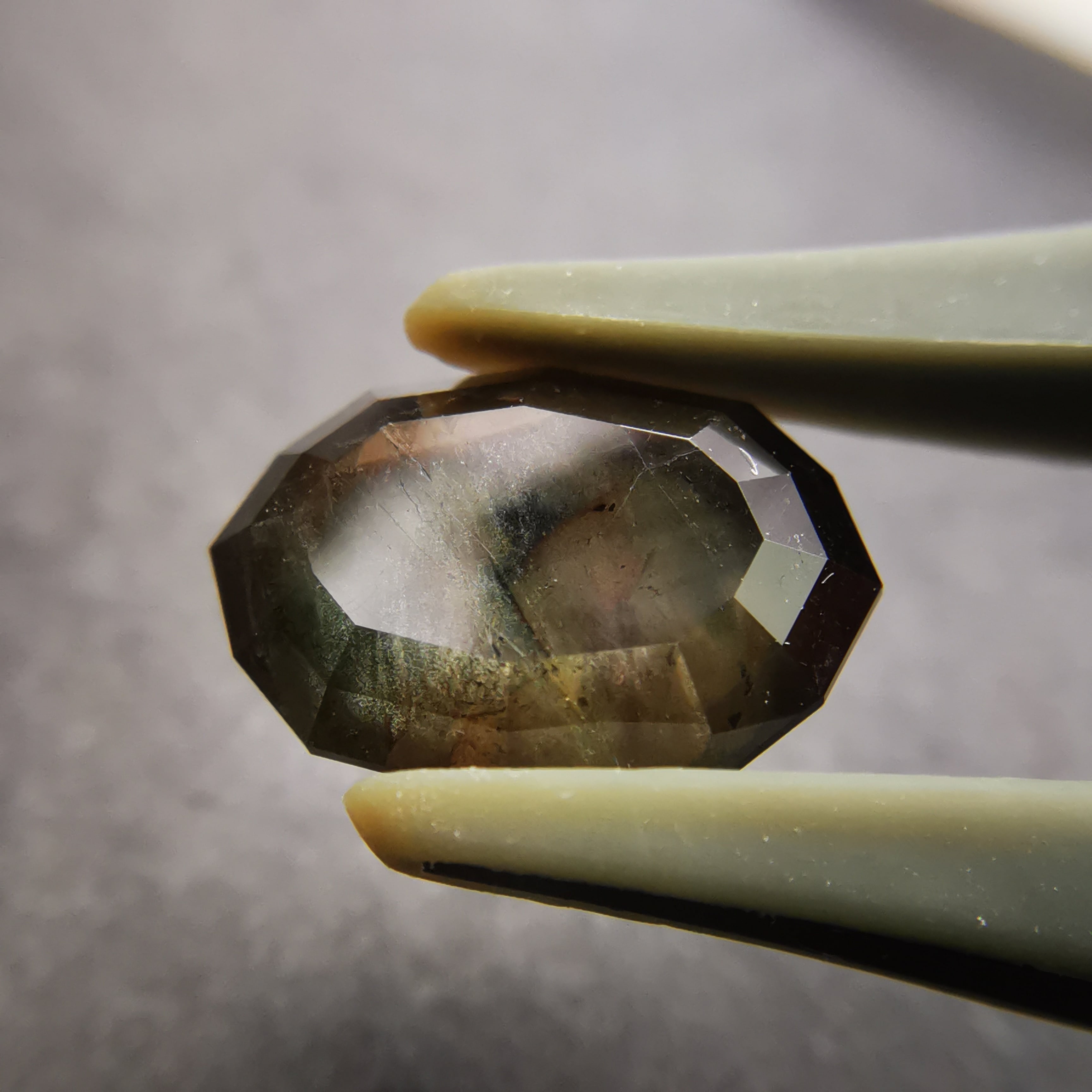 赤みの黄みの黒/憲房色のスターサファイアをフラットバックにリカットしました。