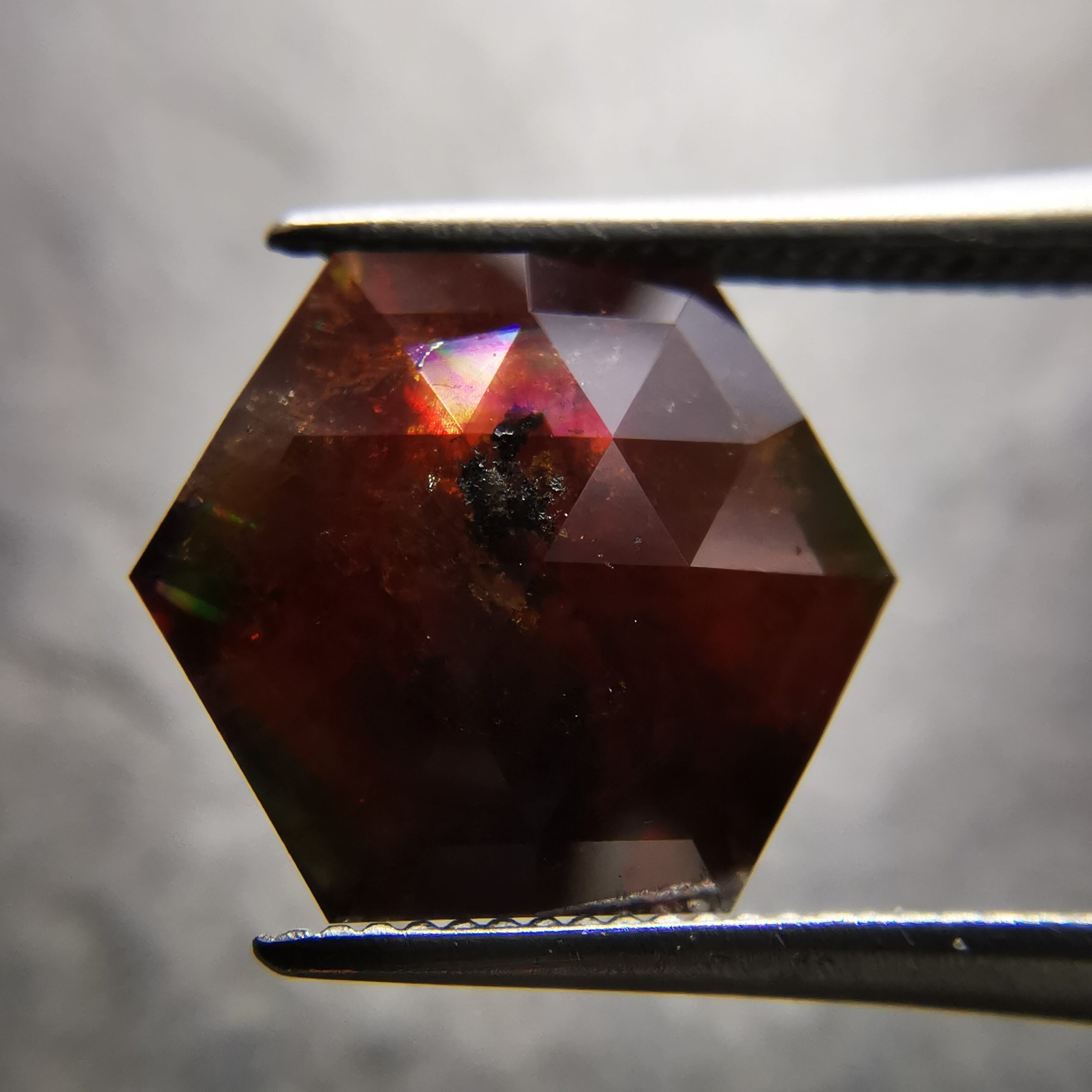 黒茶色のレインボーガーネットです。