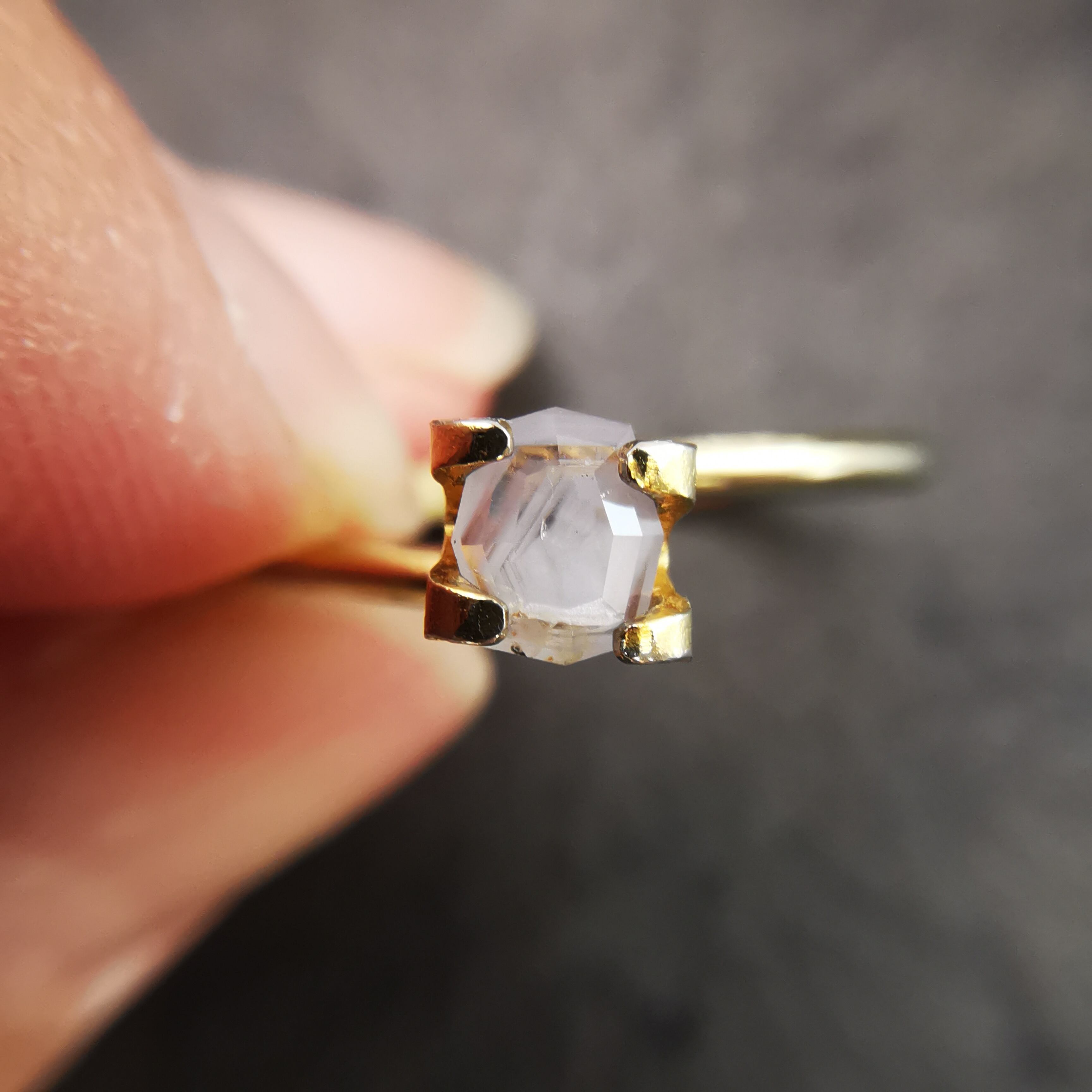肉眼で見える黄みのインクルージョンあり