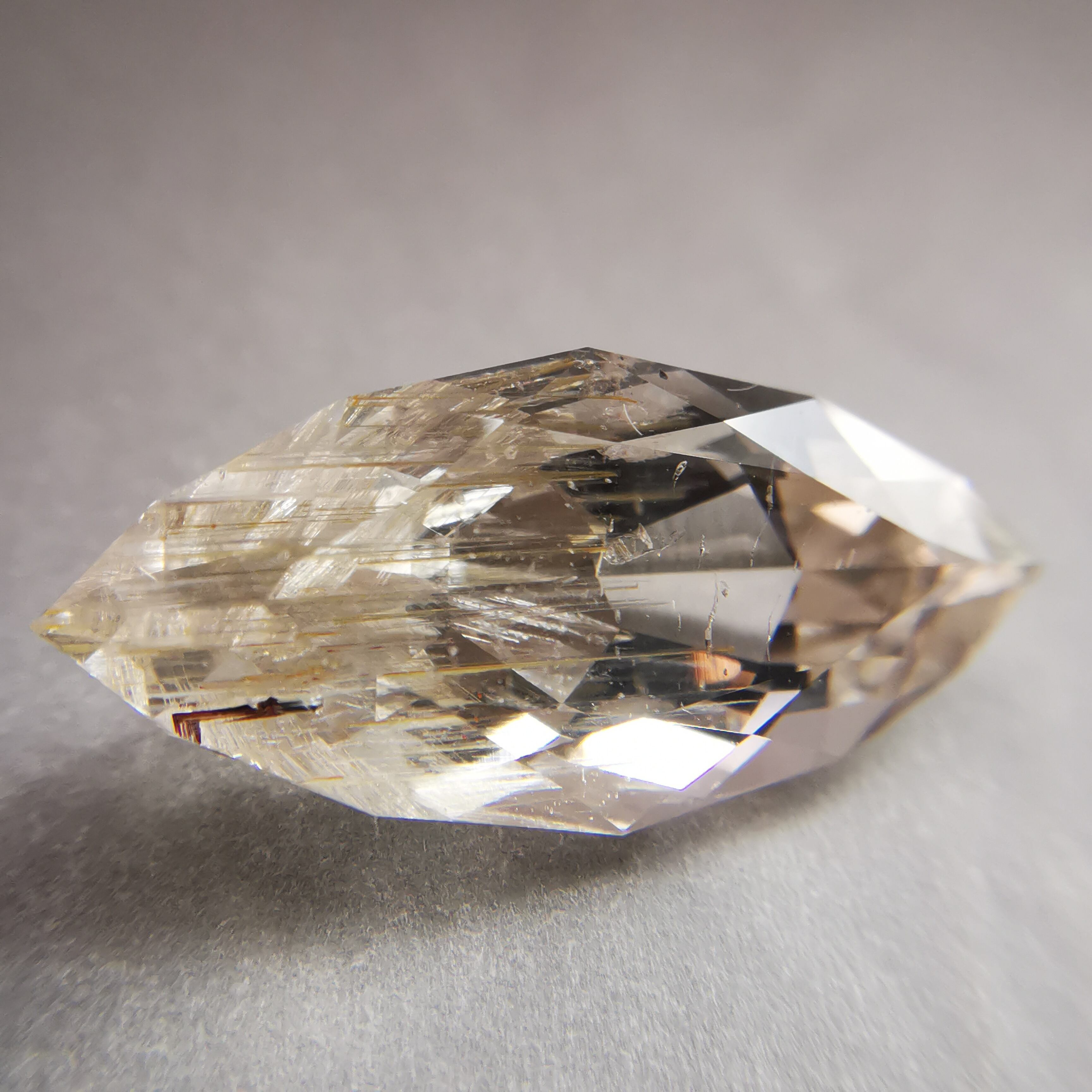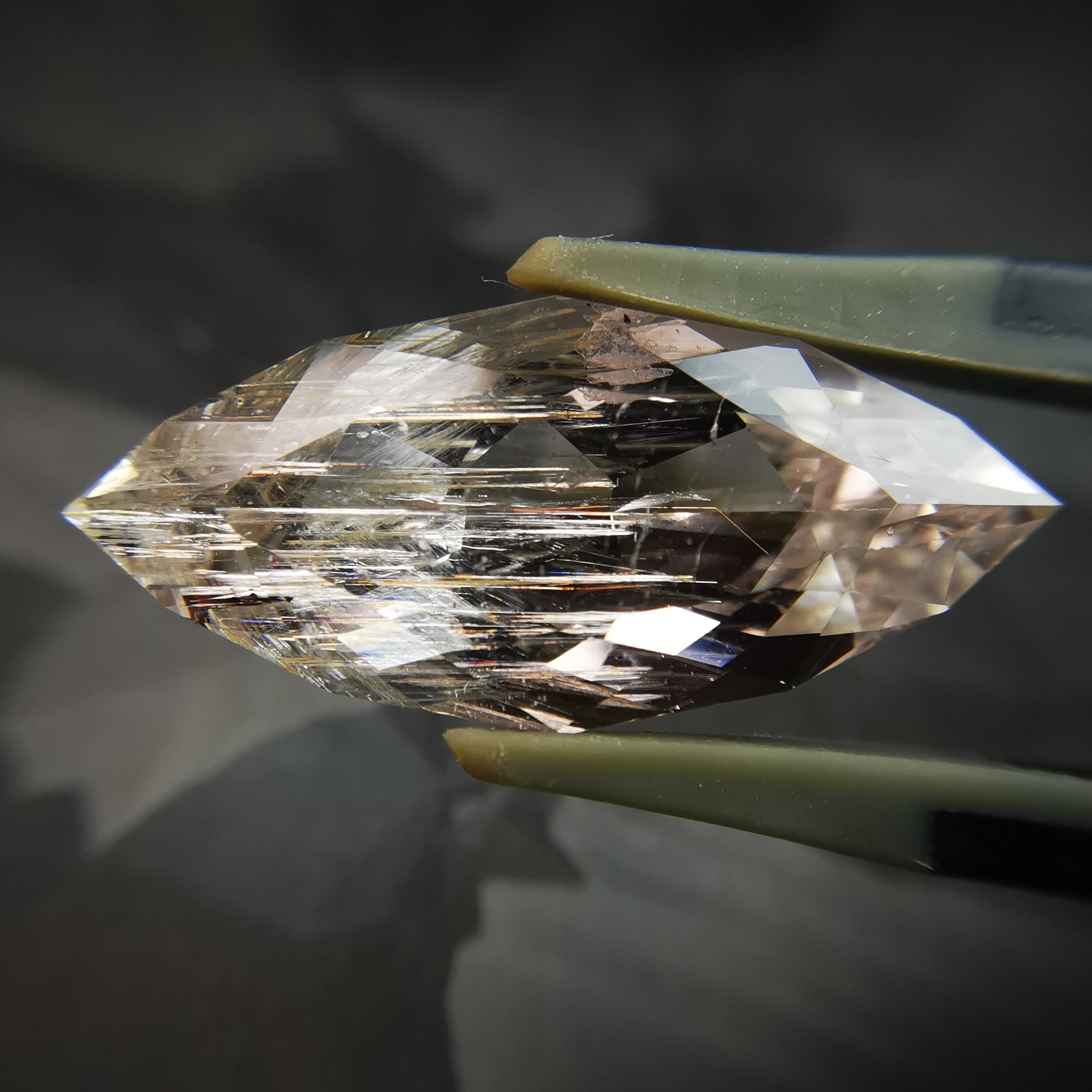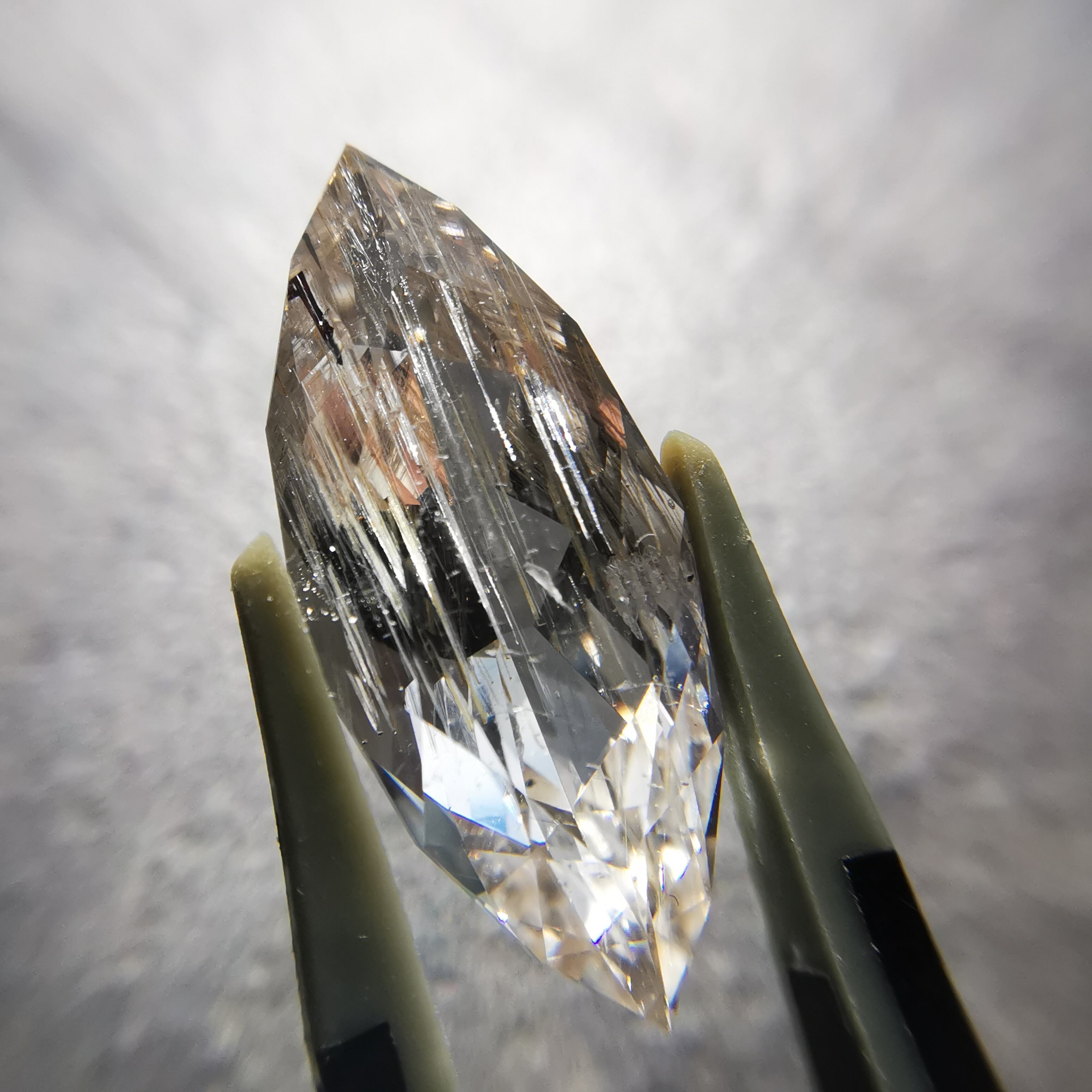 チューブインクルージョンがたっぷりと入ったほぼカラーレスのトパーズです。