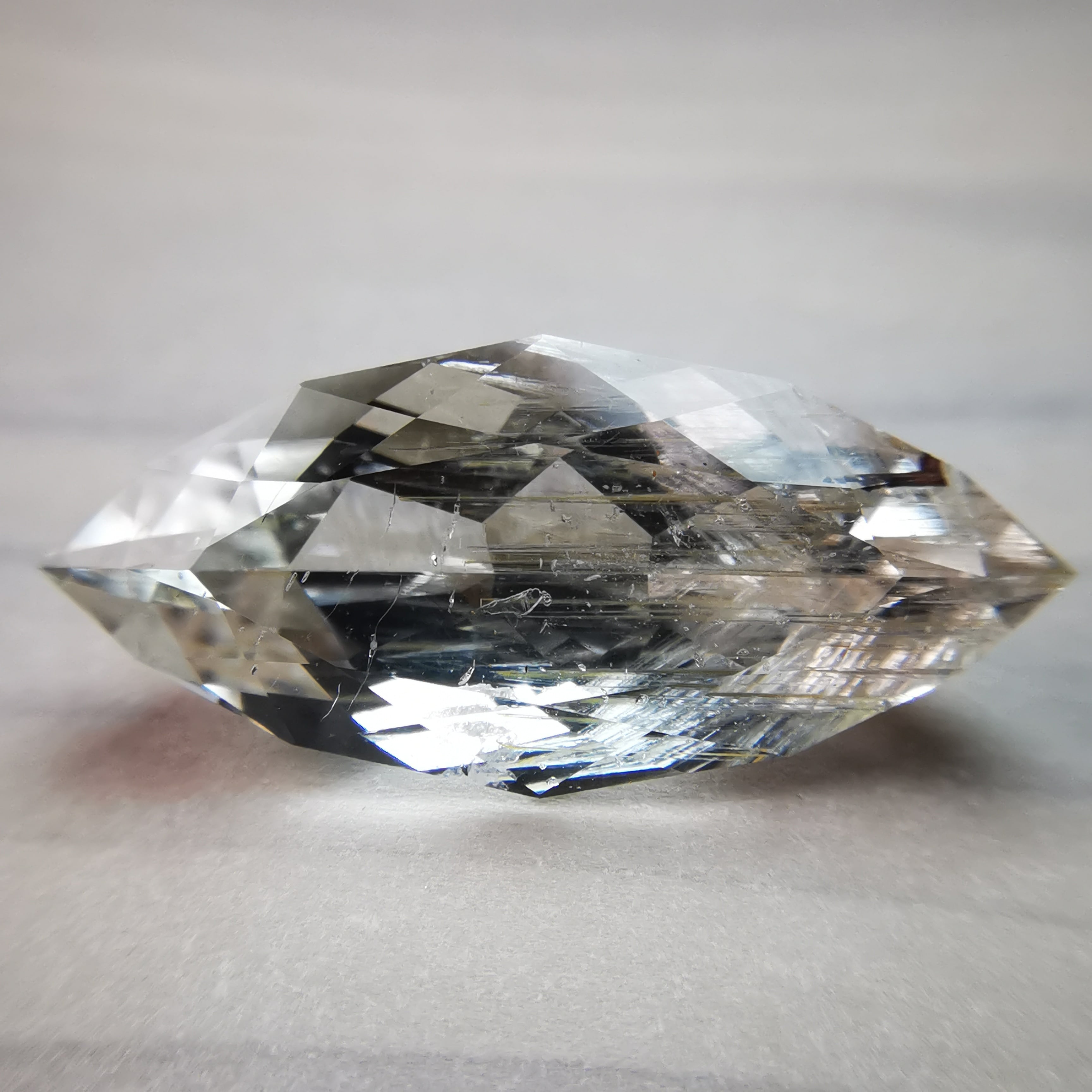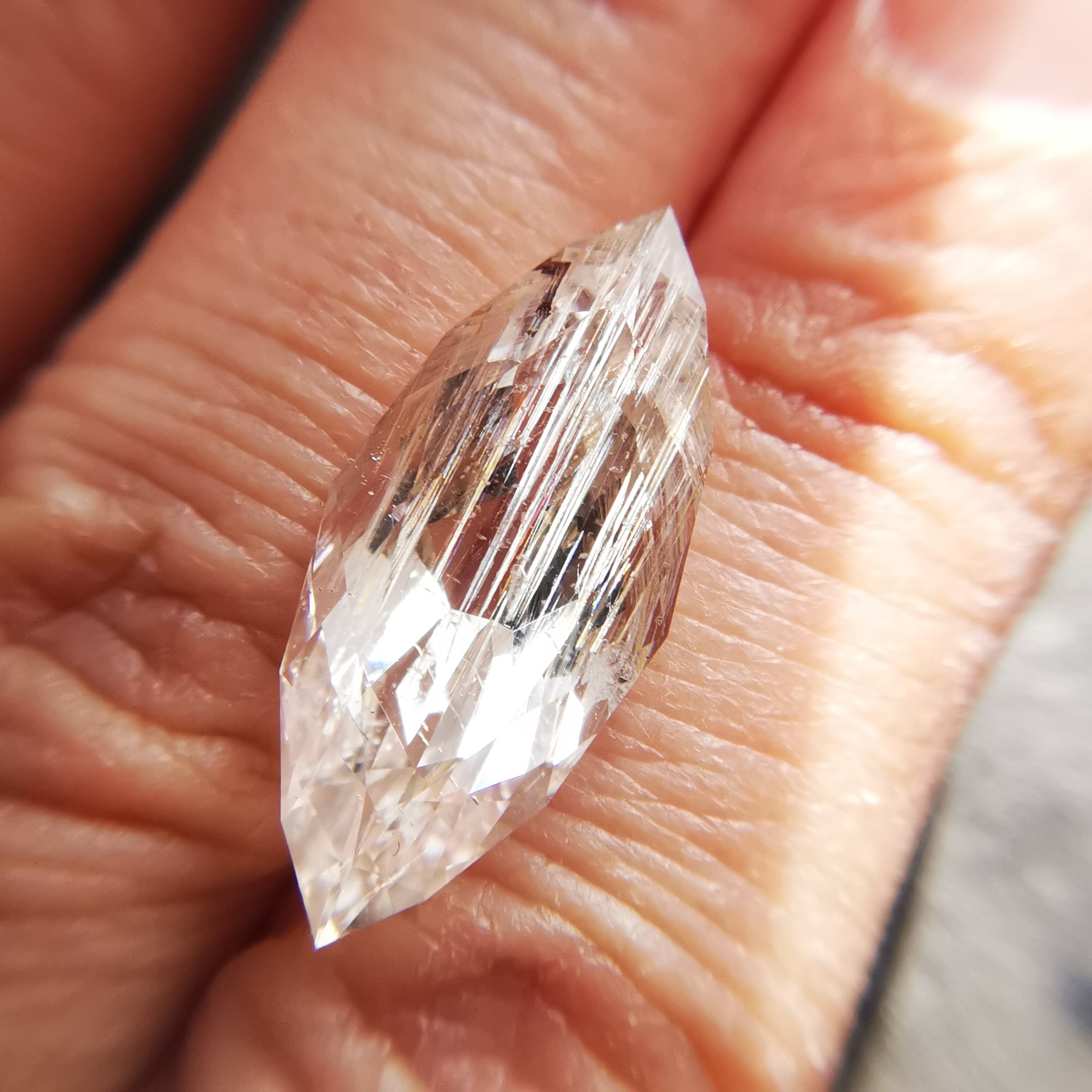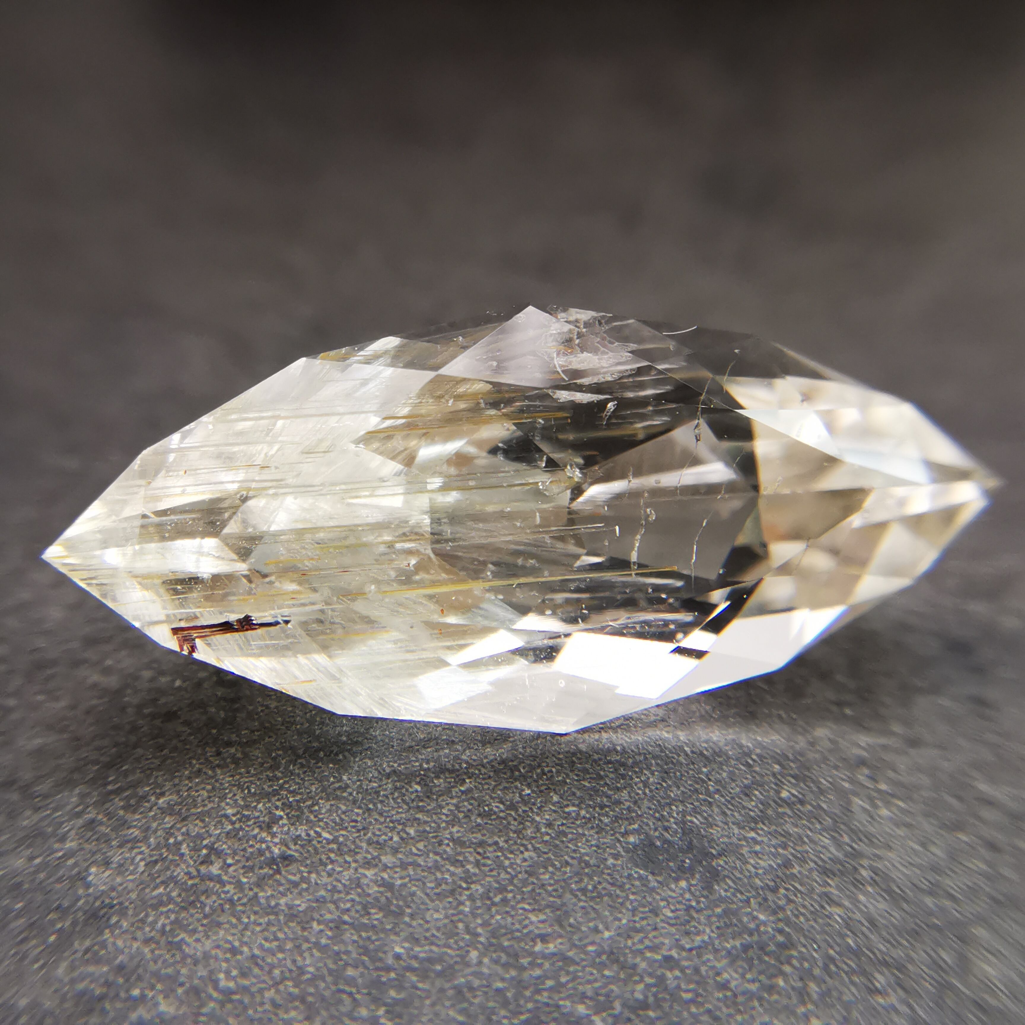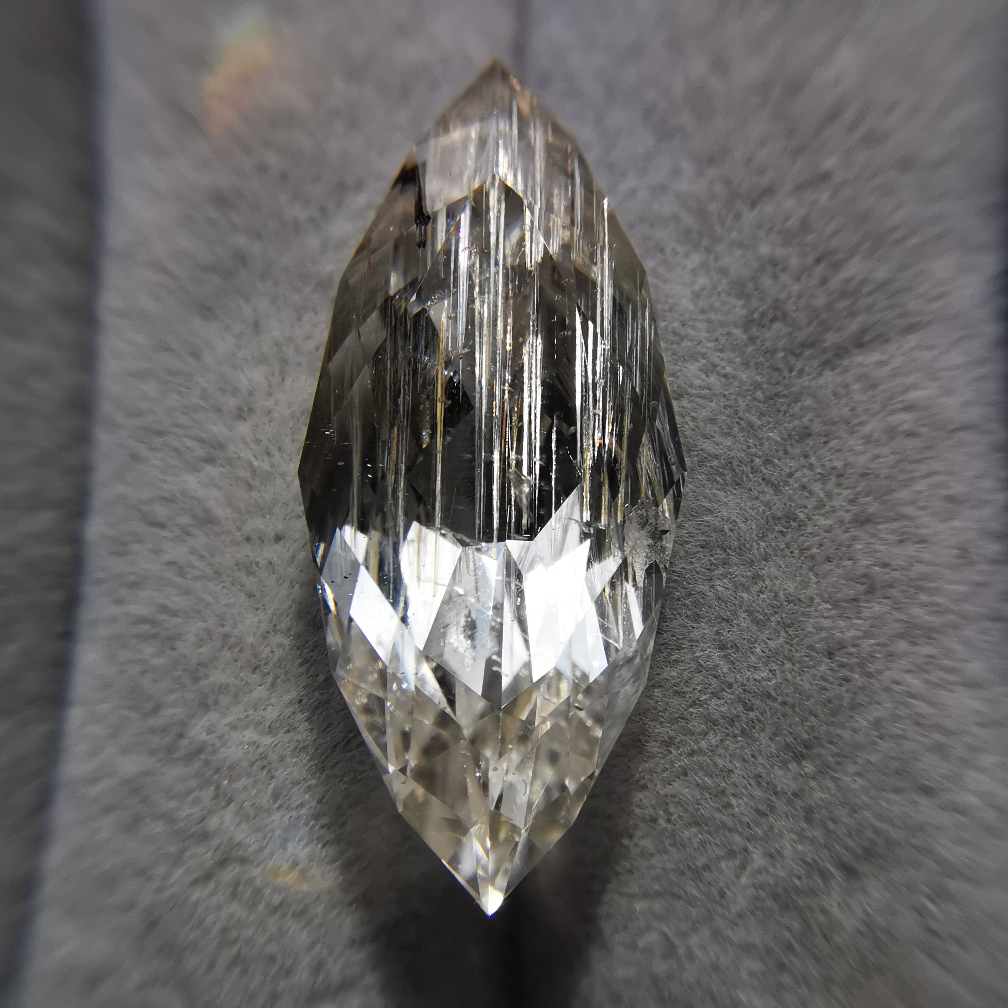 チューブインクルージョンがたっぷりと入ったほぼカラーレスのトパーズです。