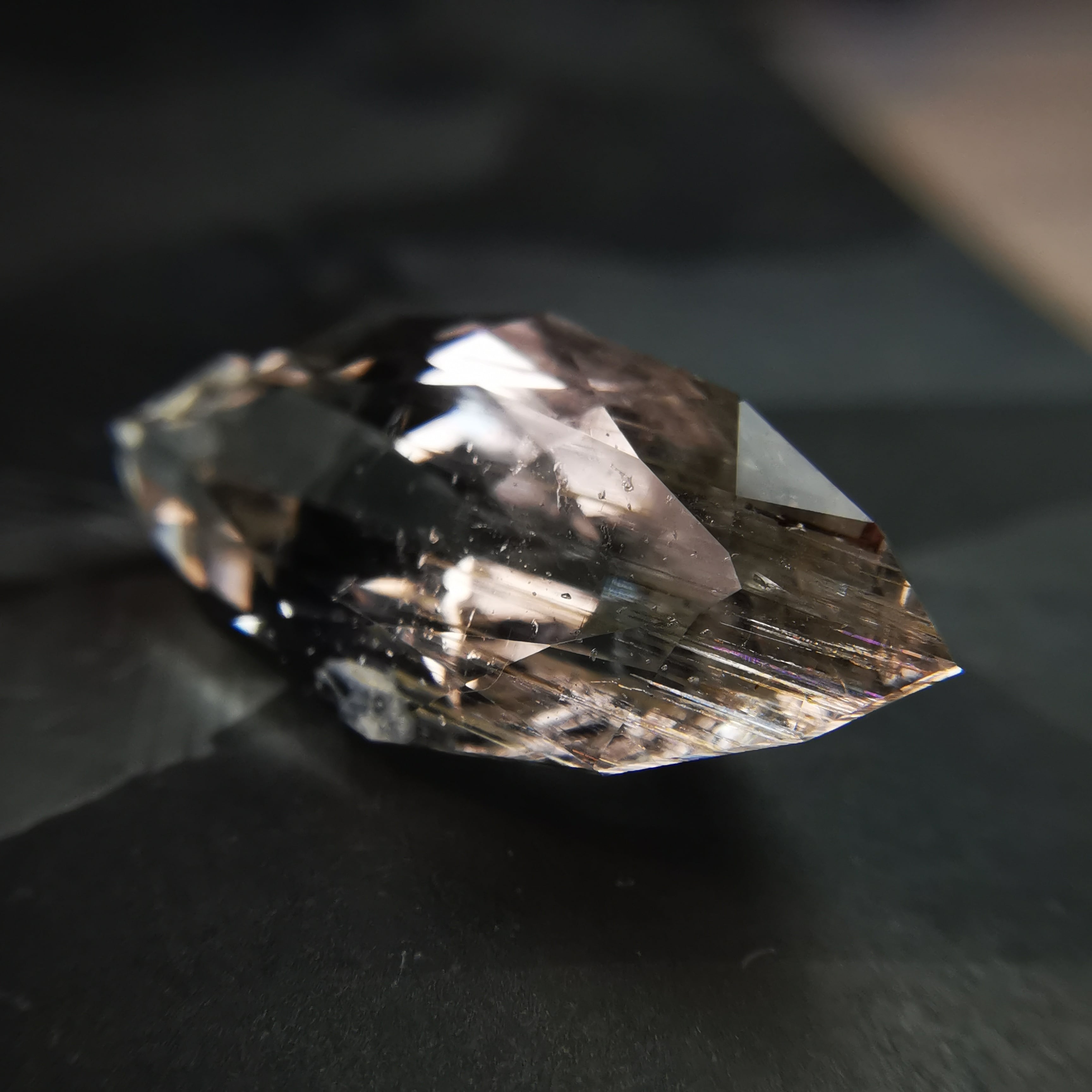 このインクルージョンはシャンパンカラーですが、ある一定の方向で光が当たると、虹色にきらめきます。