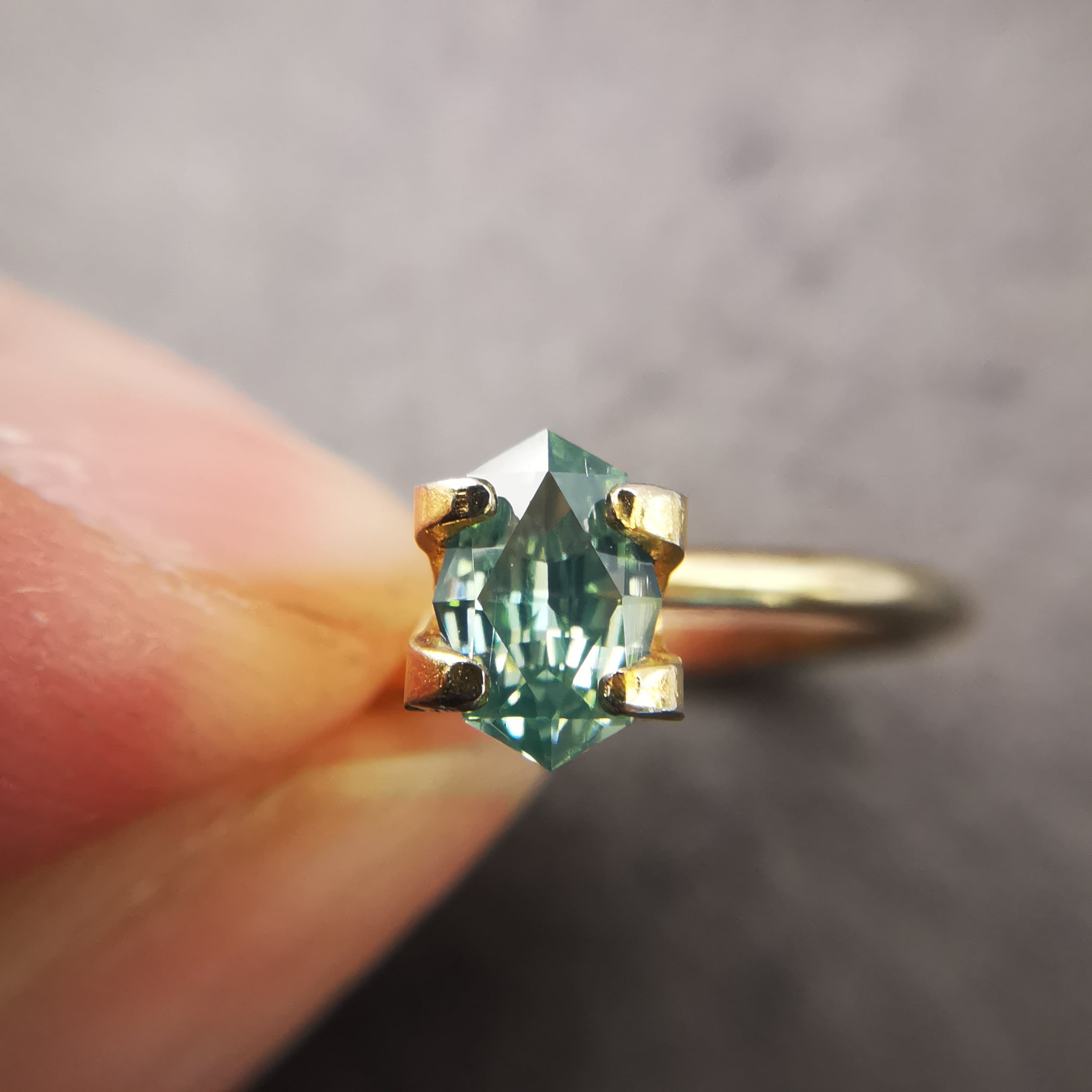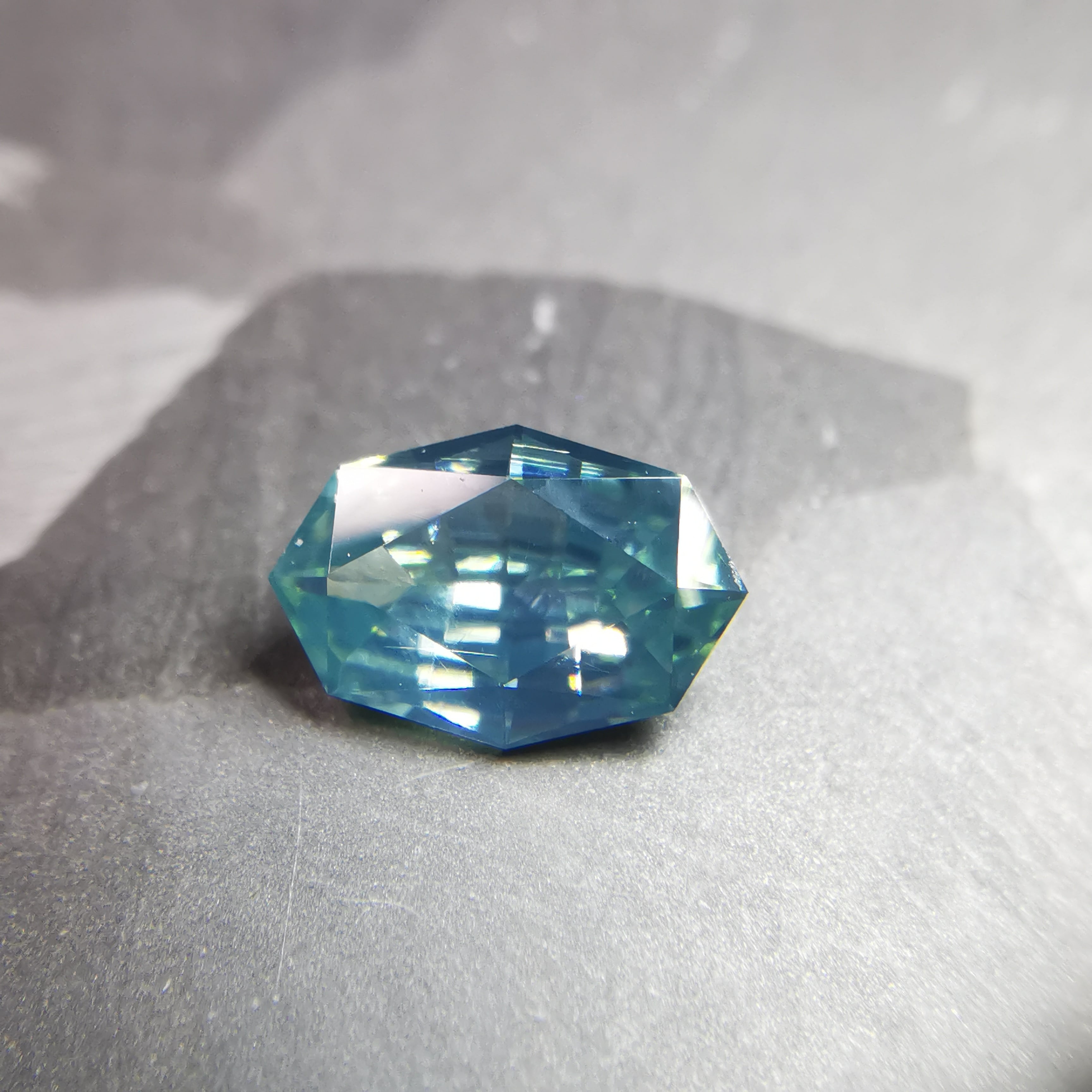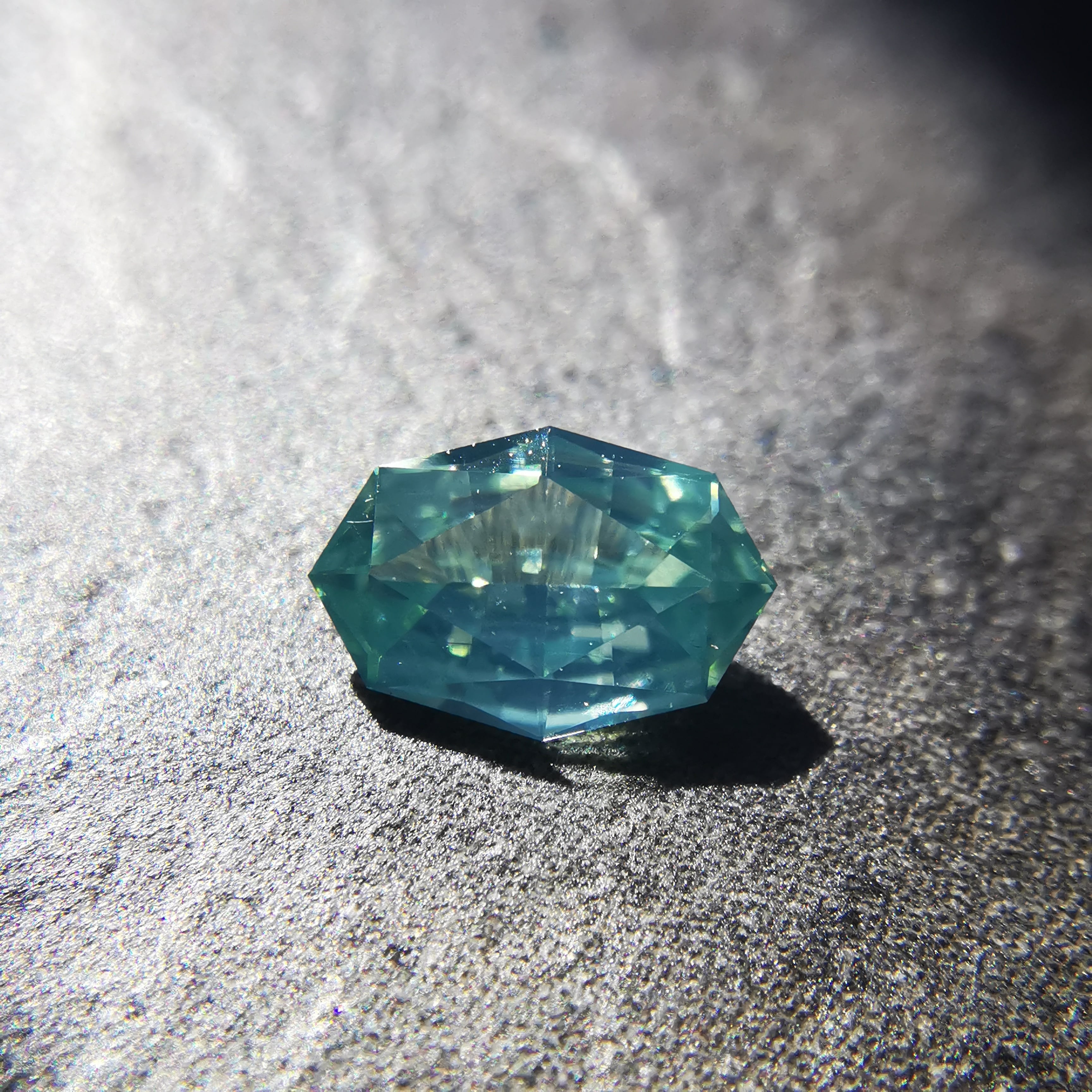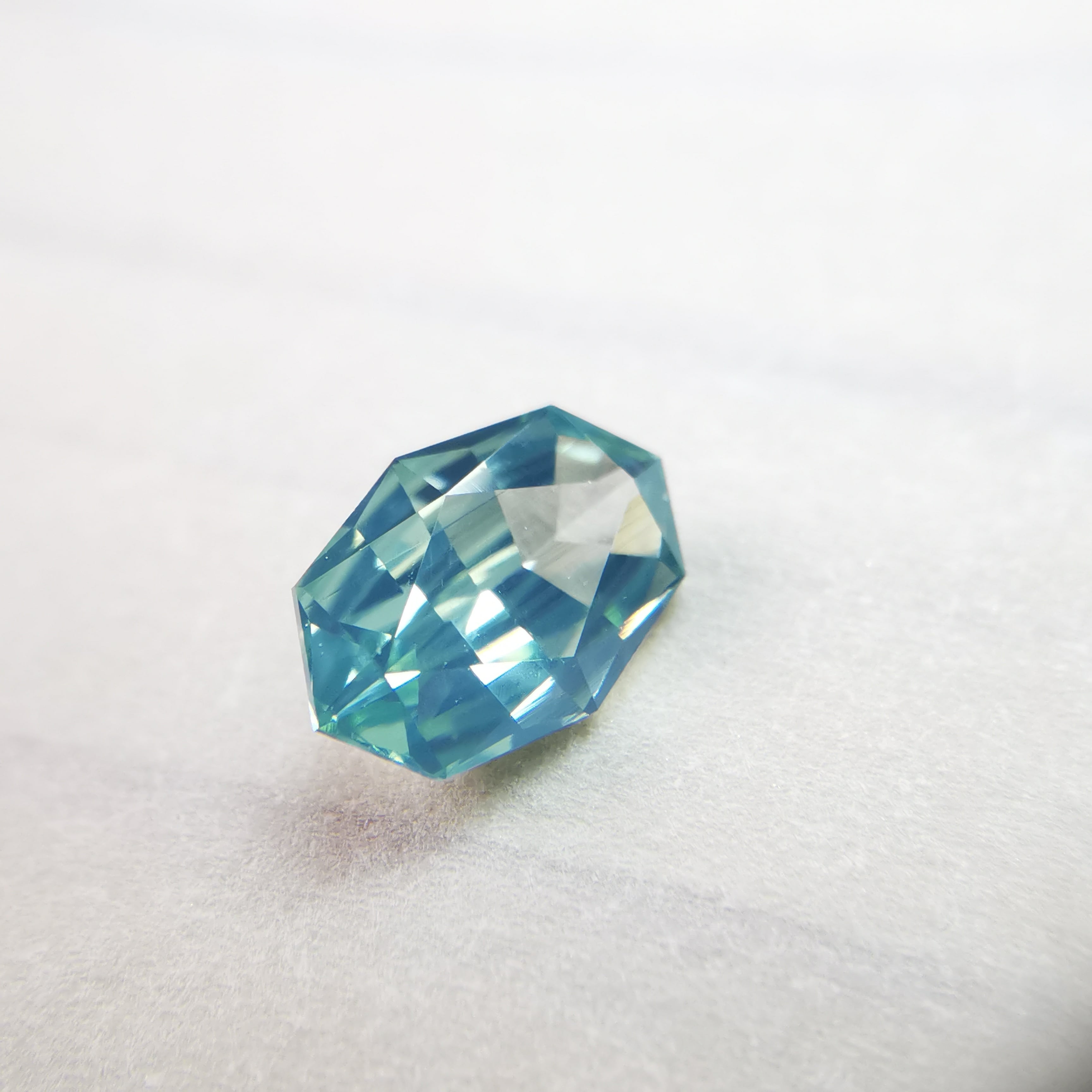 わずかなシルキーさにより、ジルコン特有のギラギラ感は控えめですが、暗さはまったくなく、カットにより明るくきらめく一石です。
