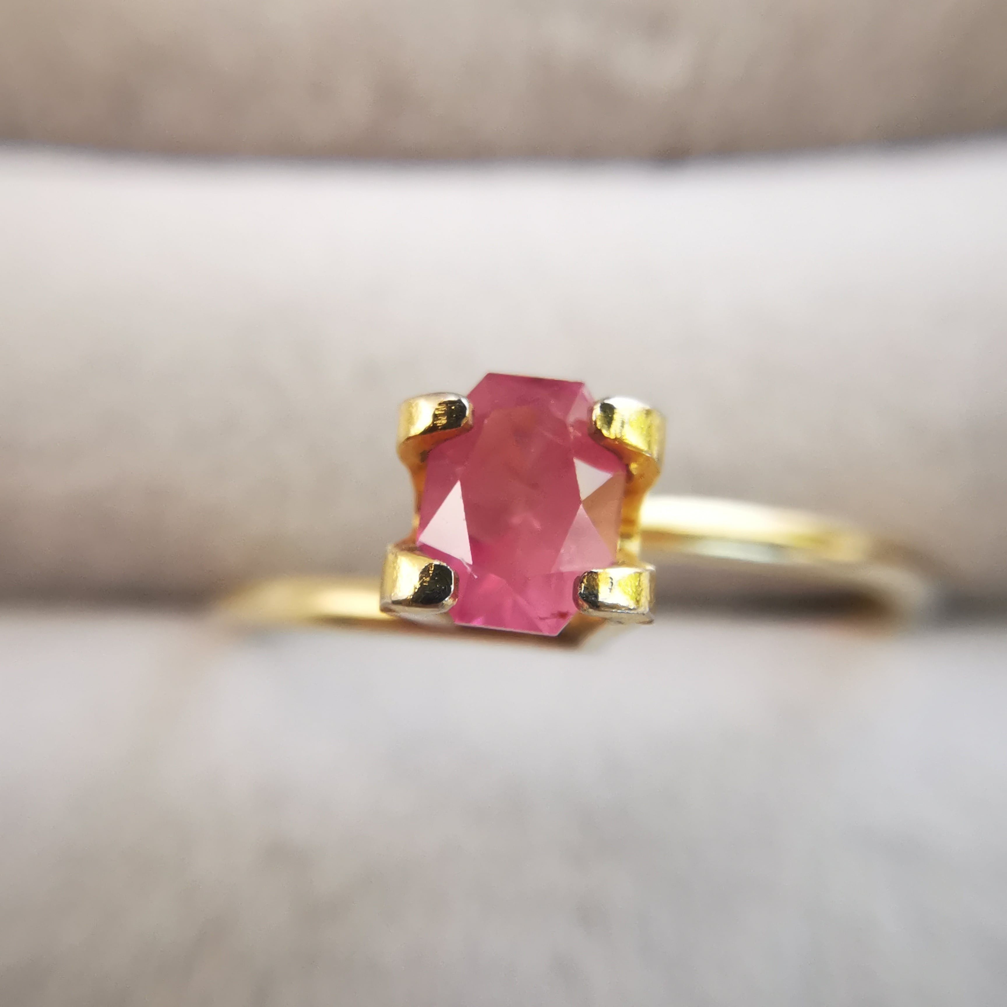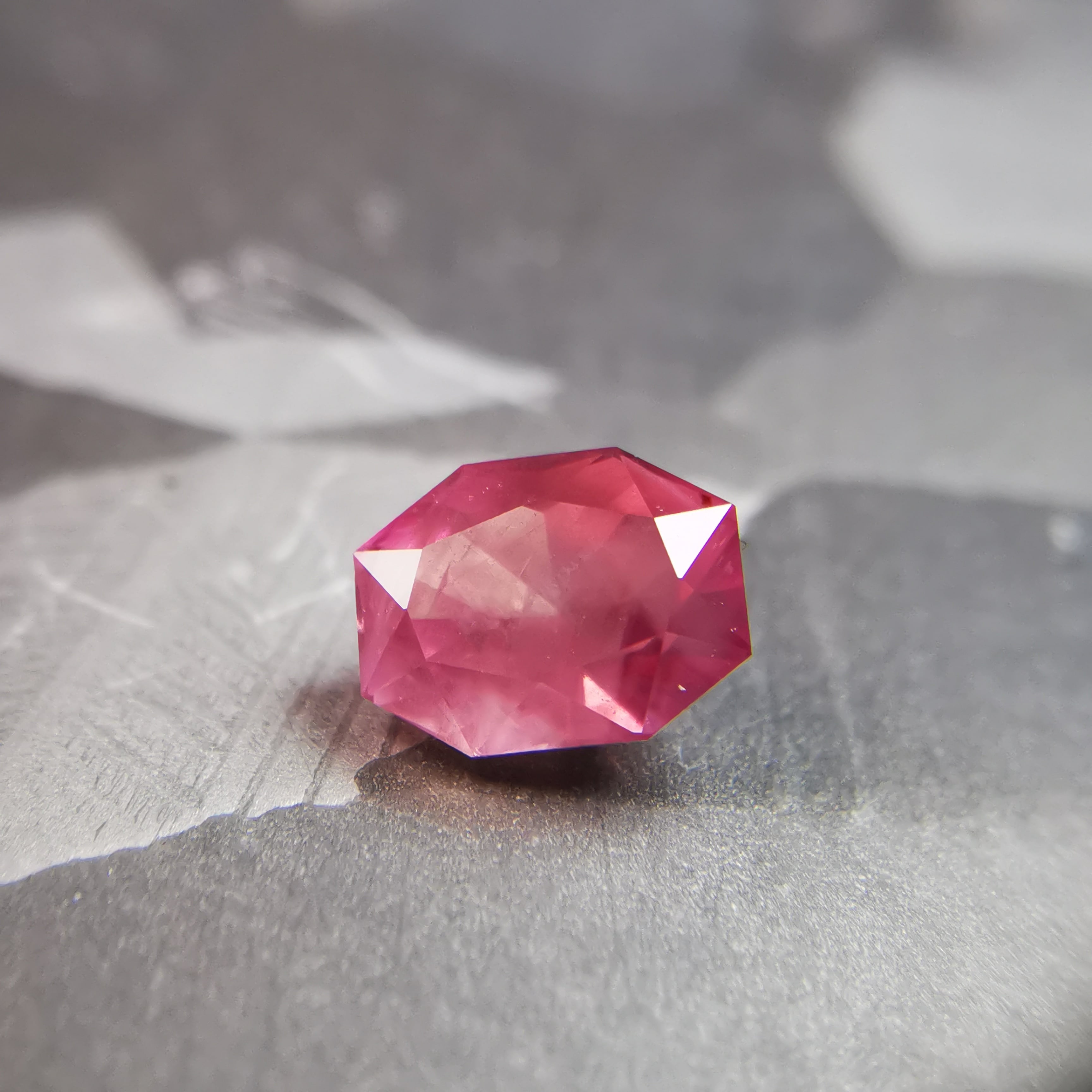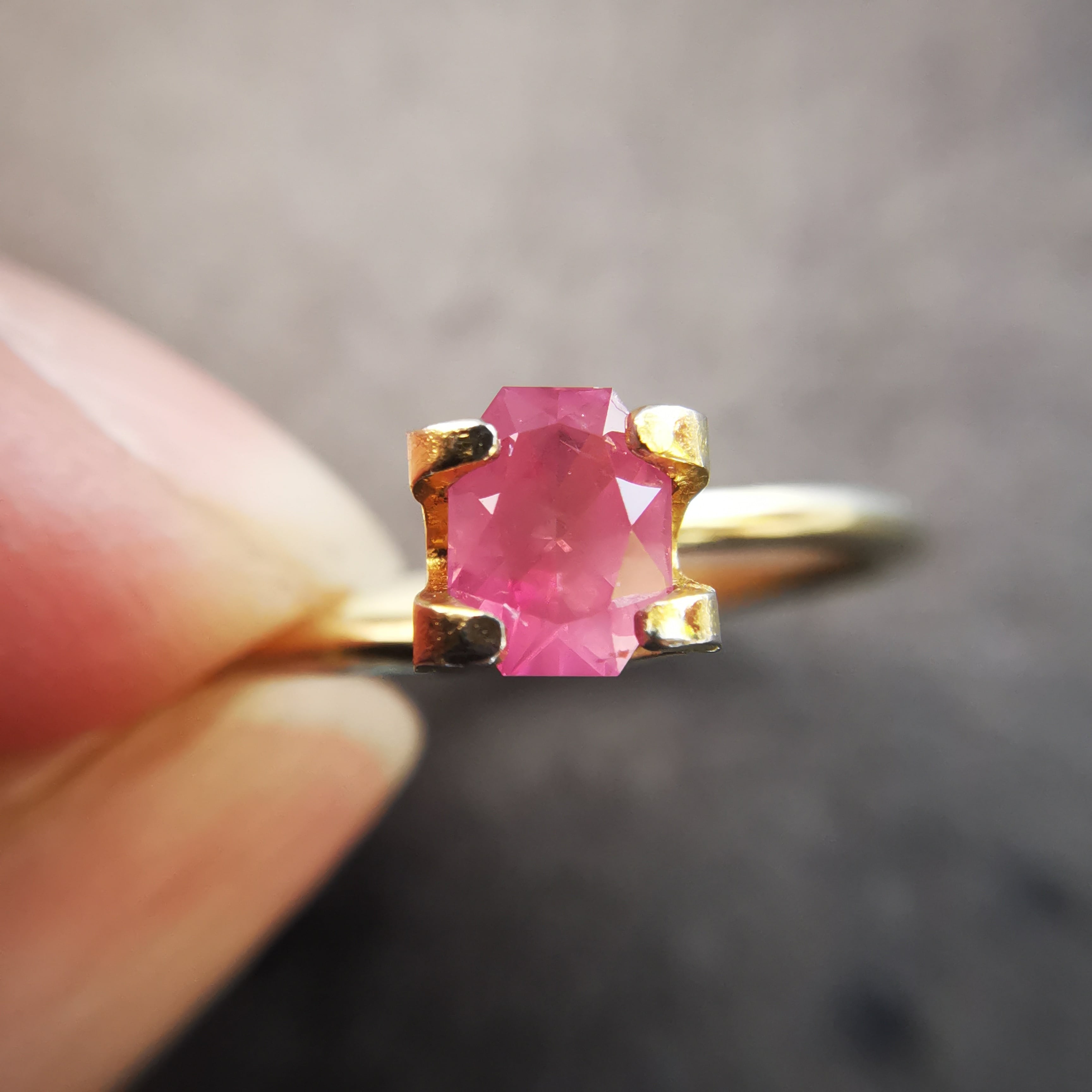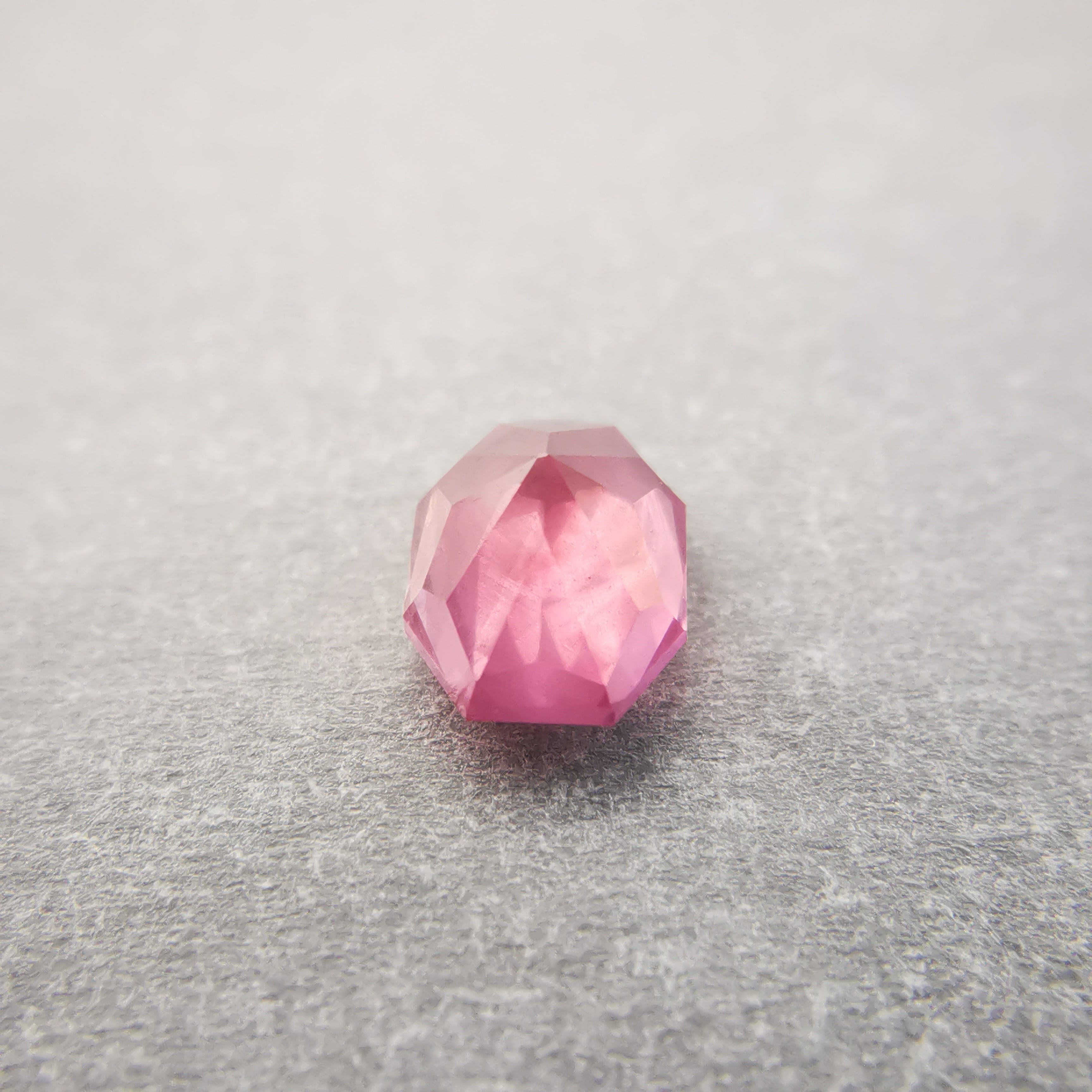 落ち着いたピンク/今様色に、シャンパンカラーのシルクインクルージョンが入ったサファイアです。